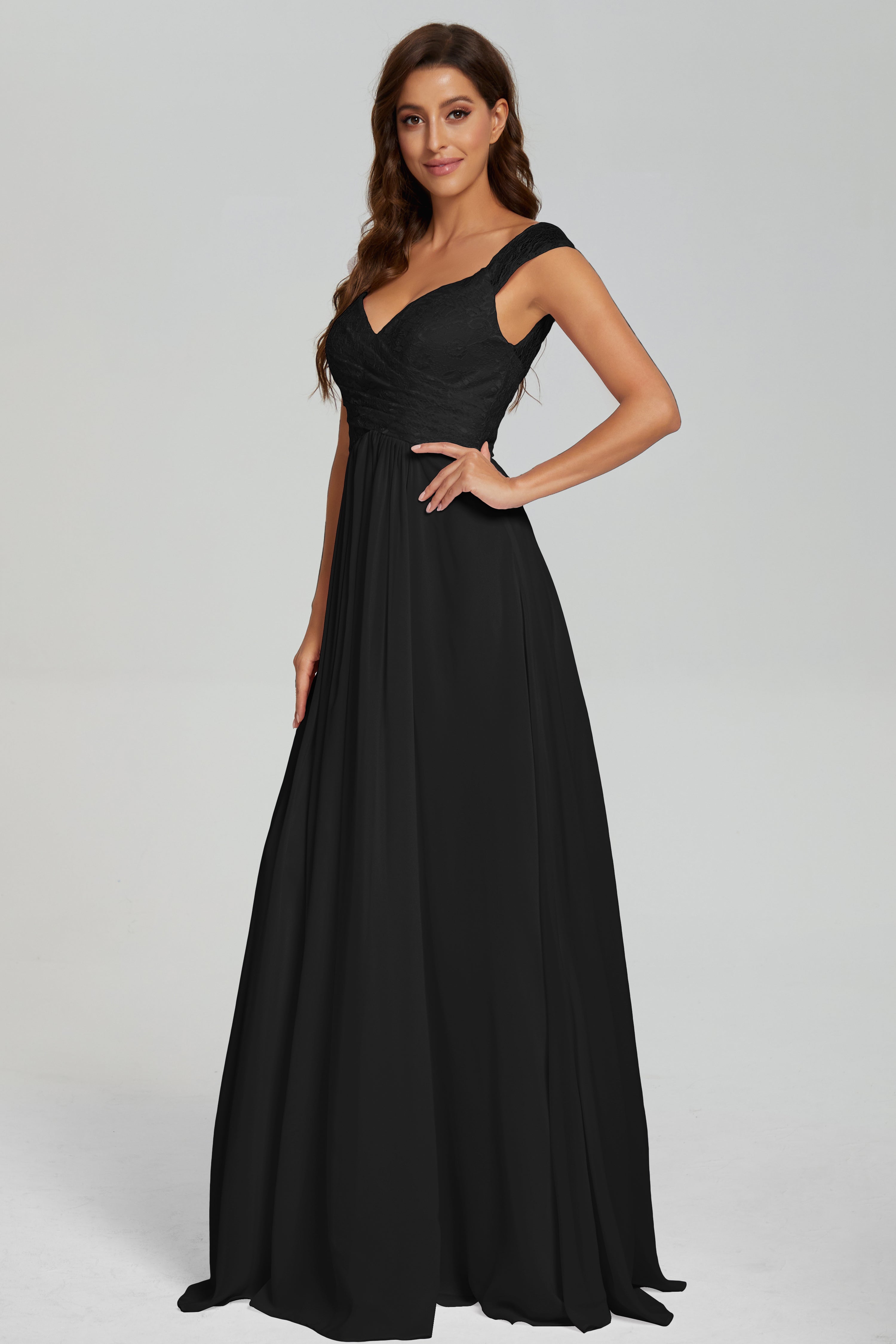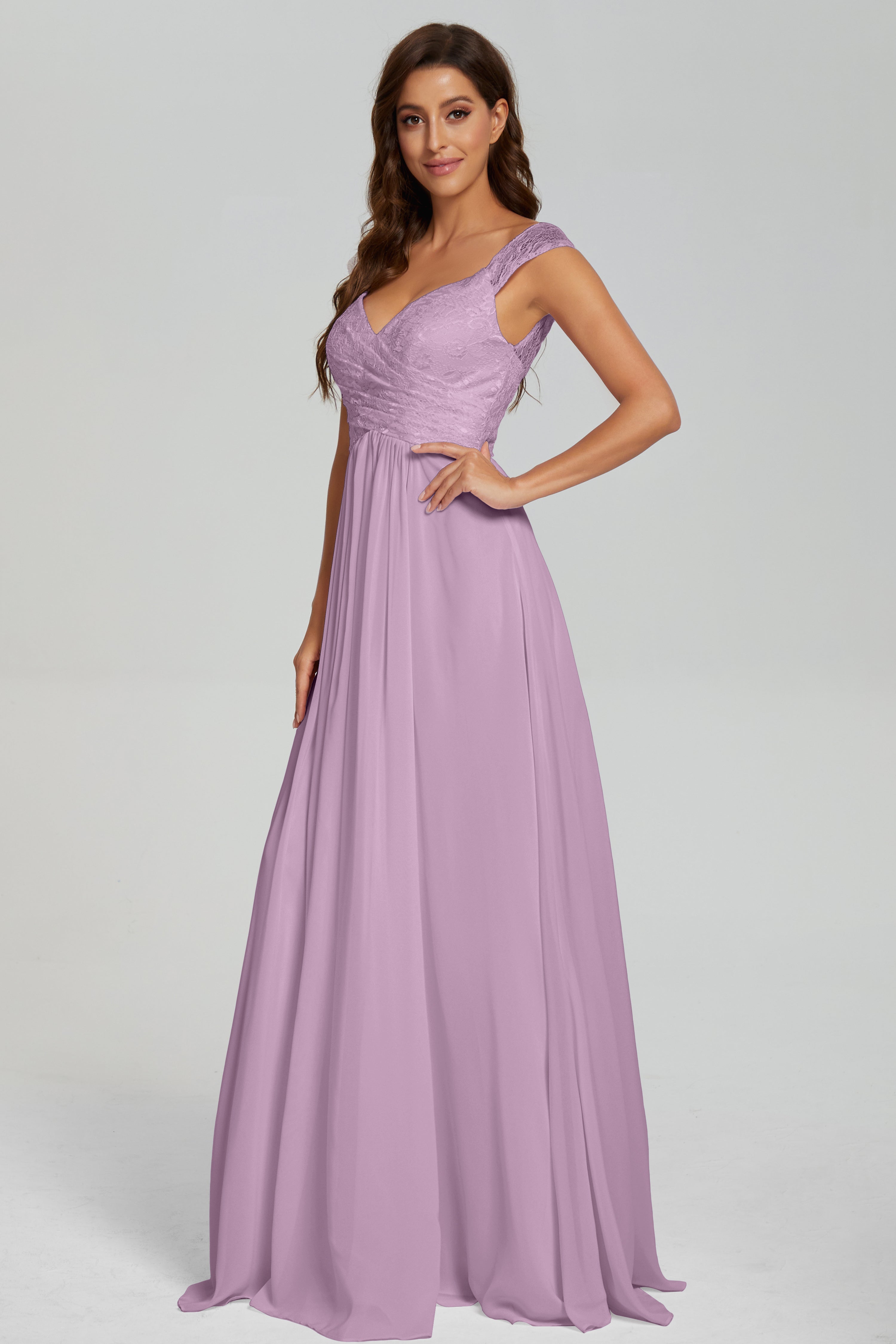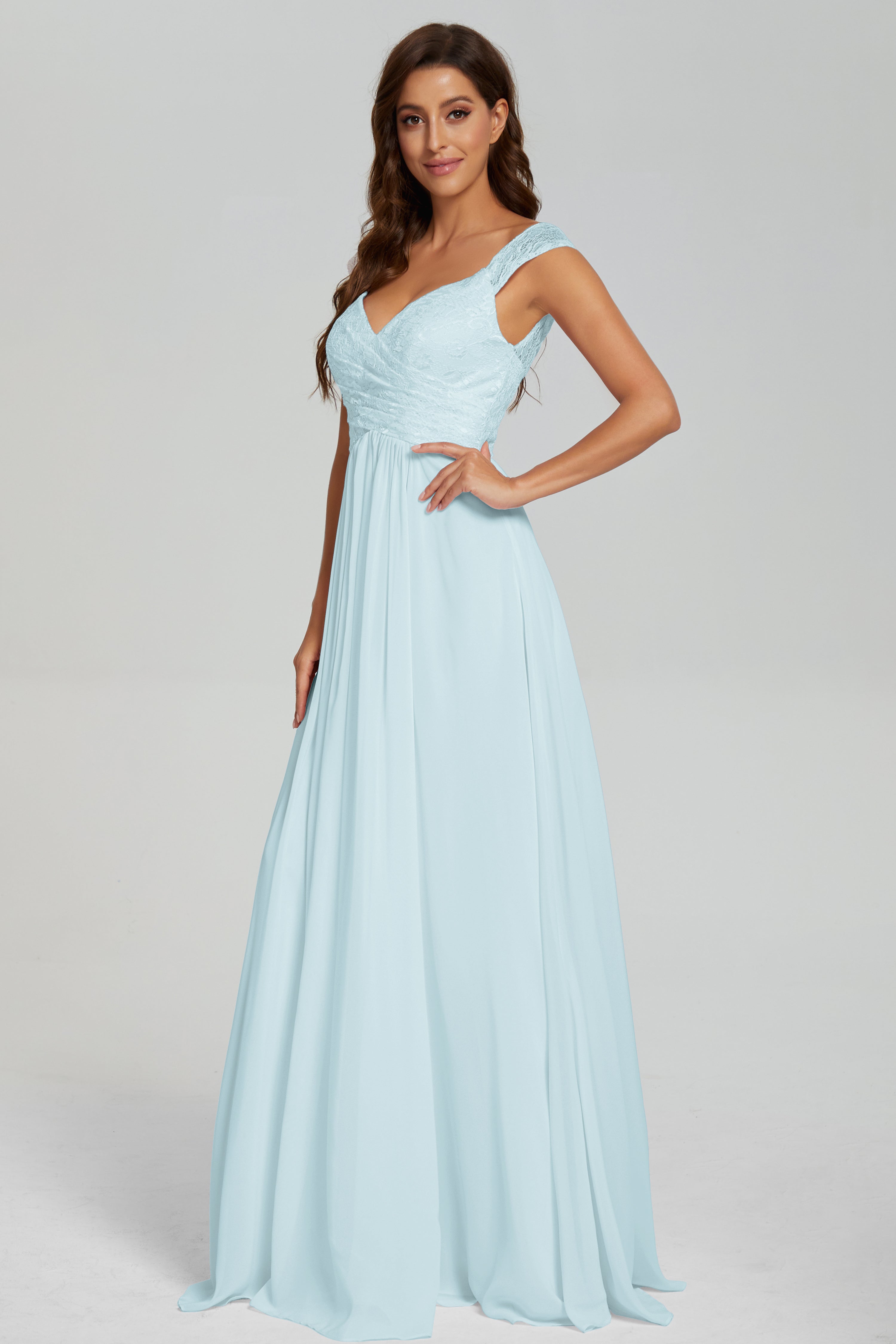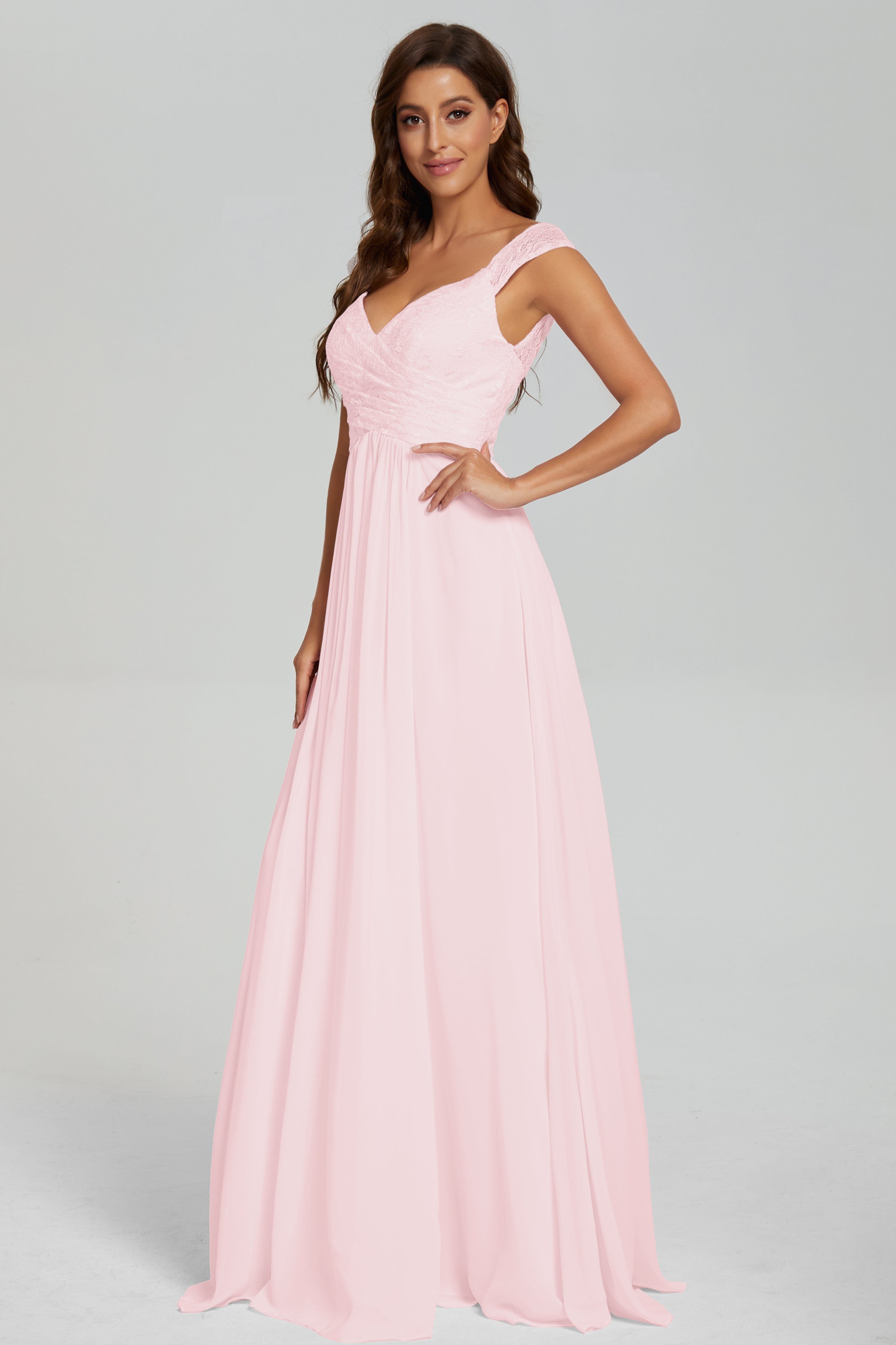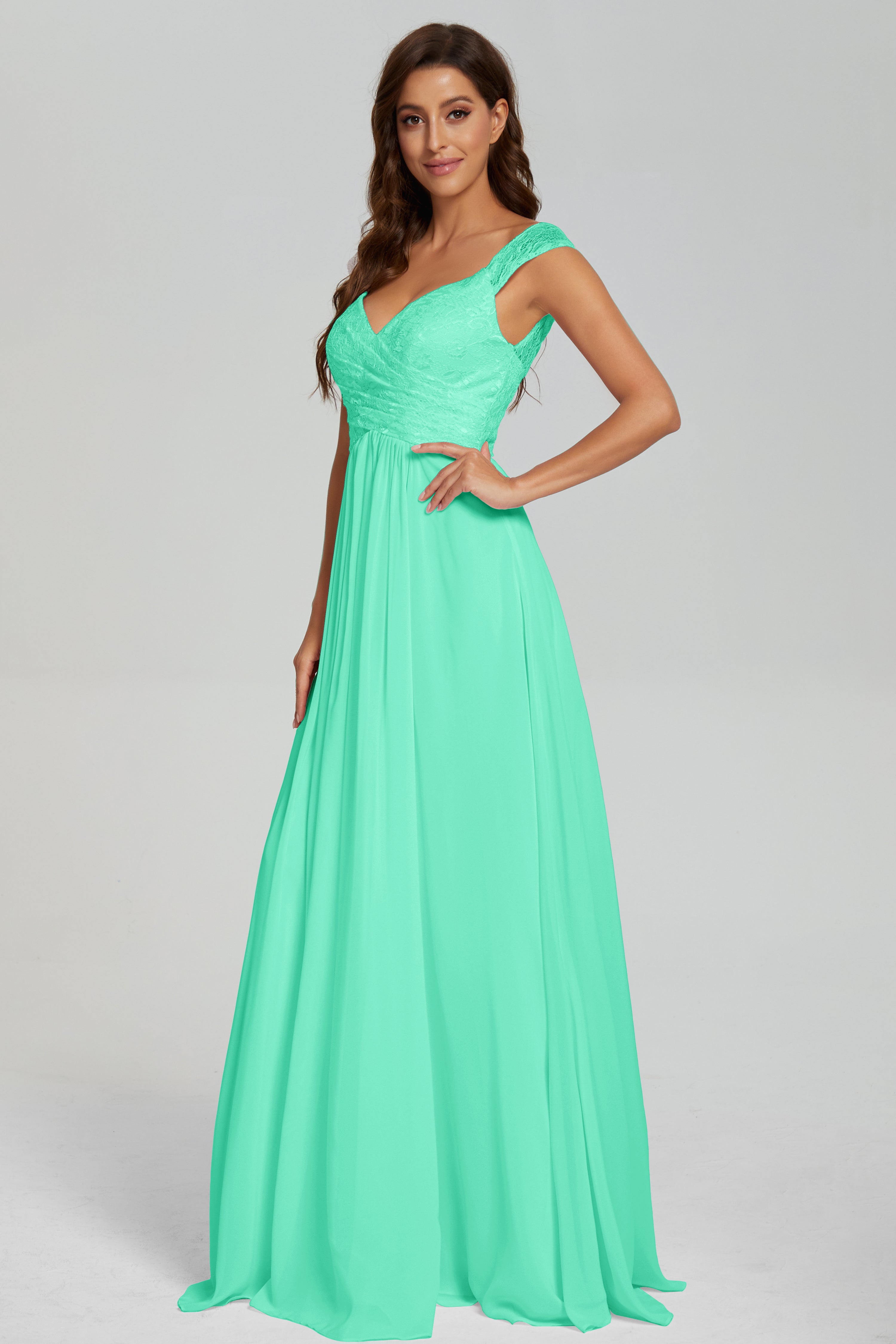 Short Sleeves Chiffon Lace Prom Dresses with Pockets