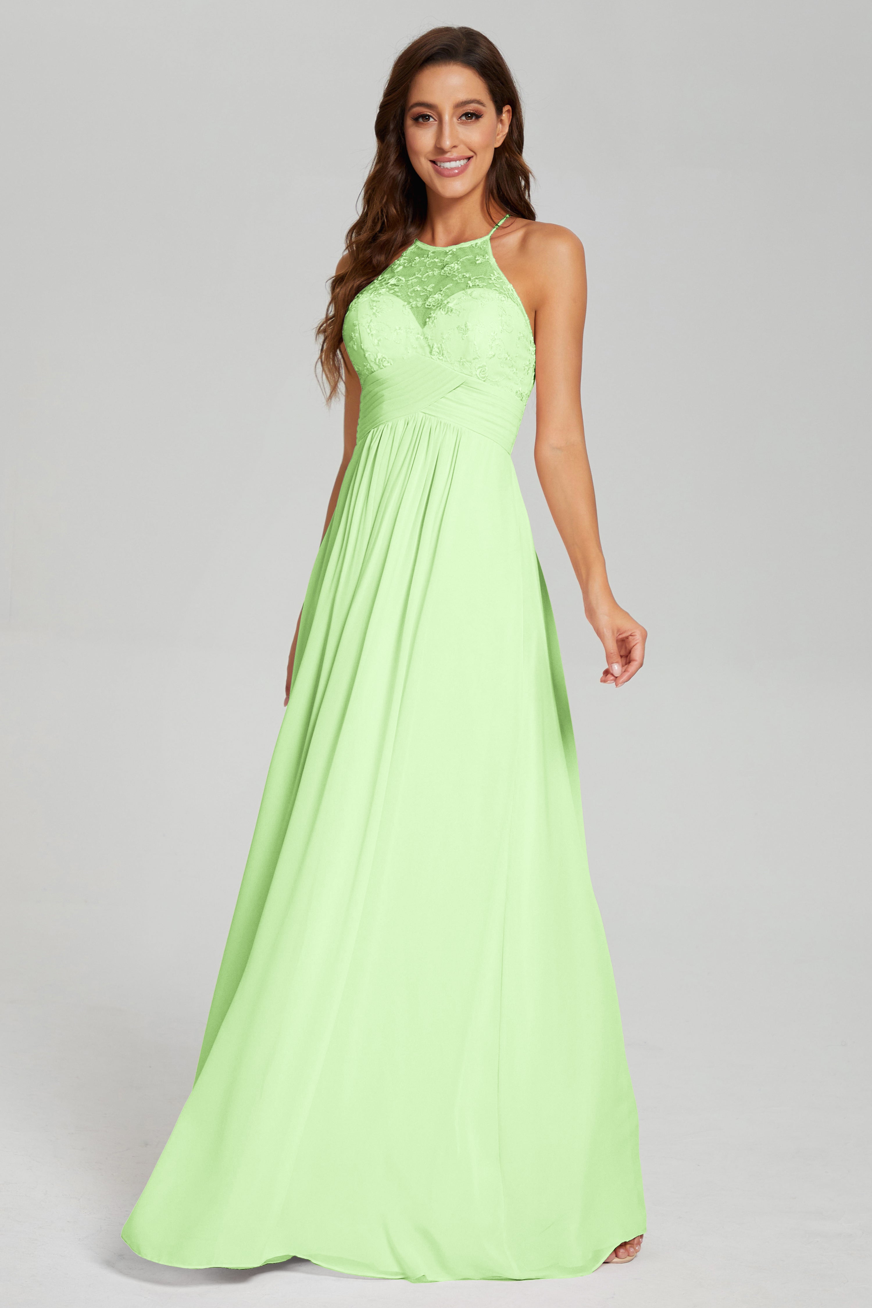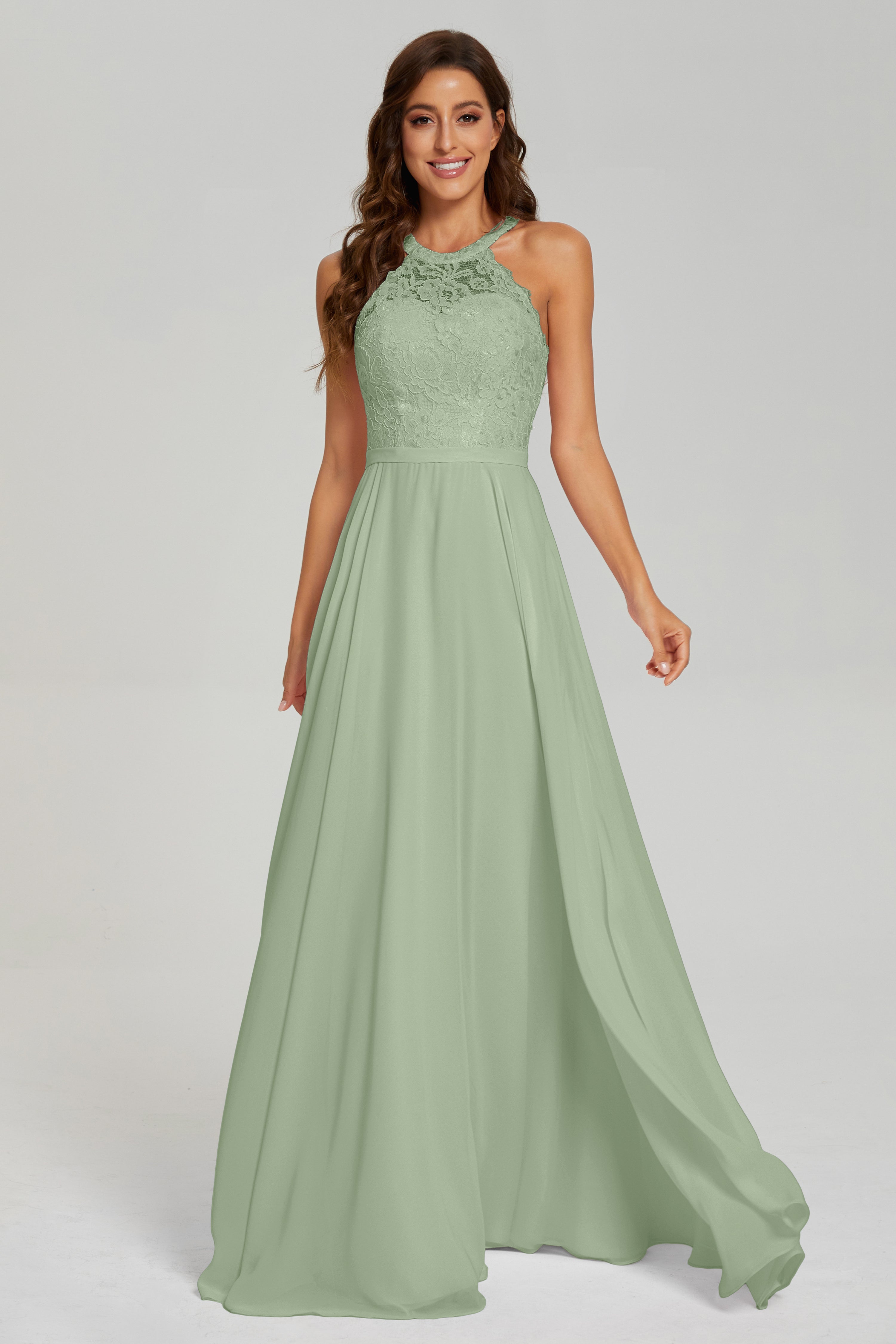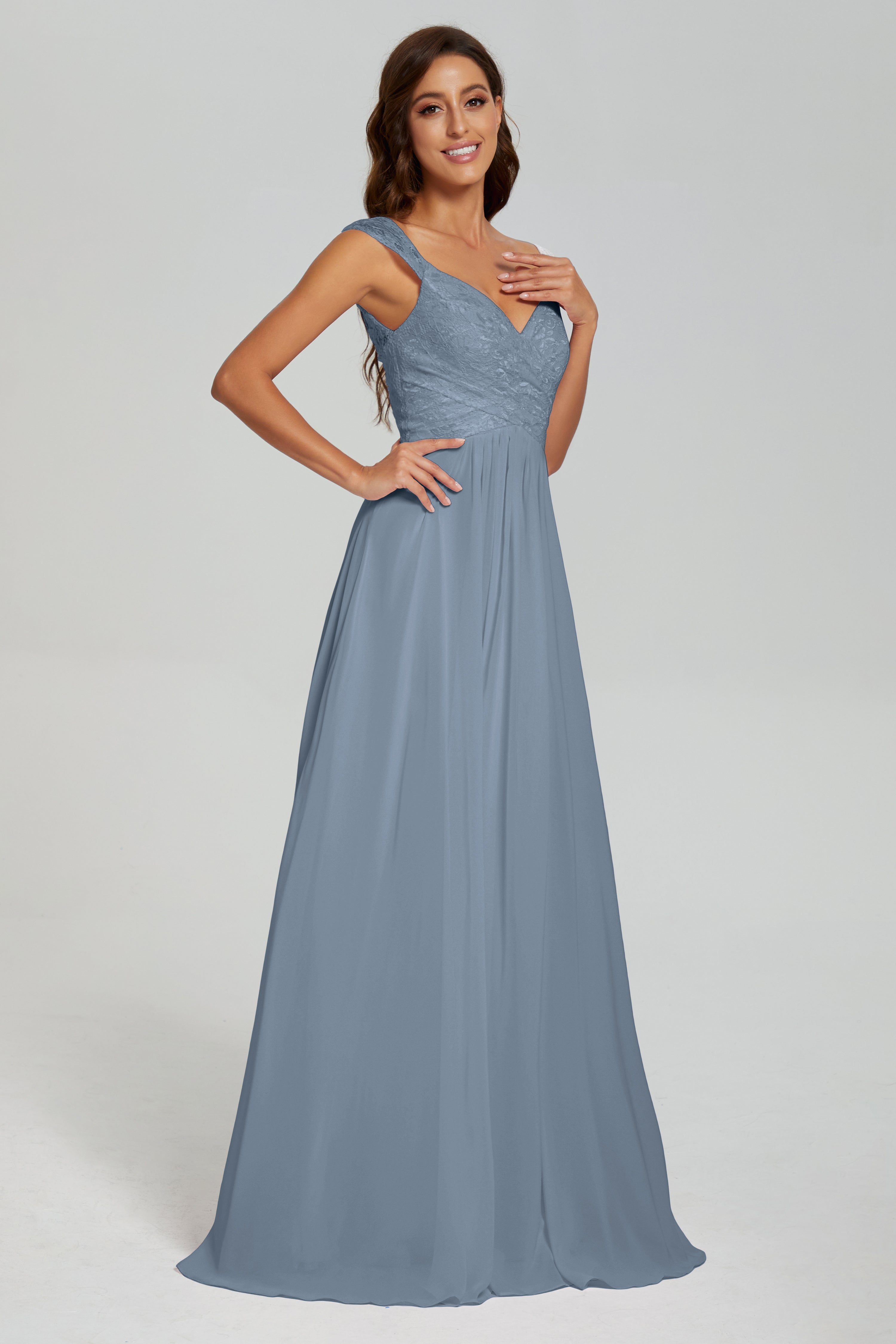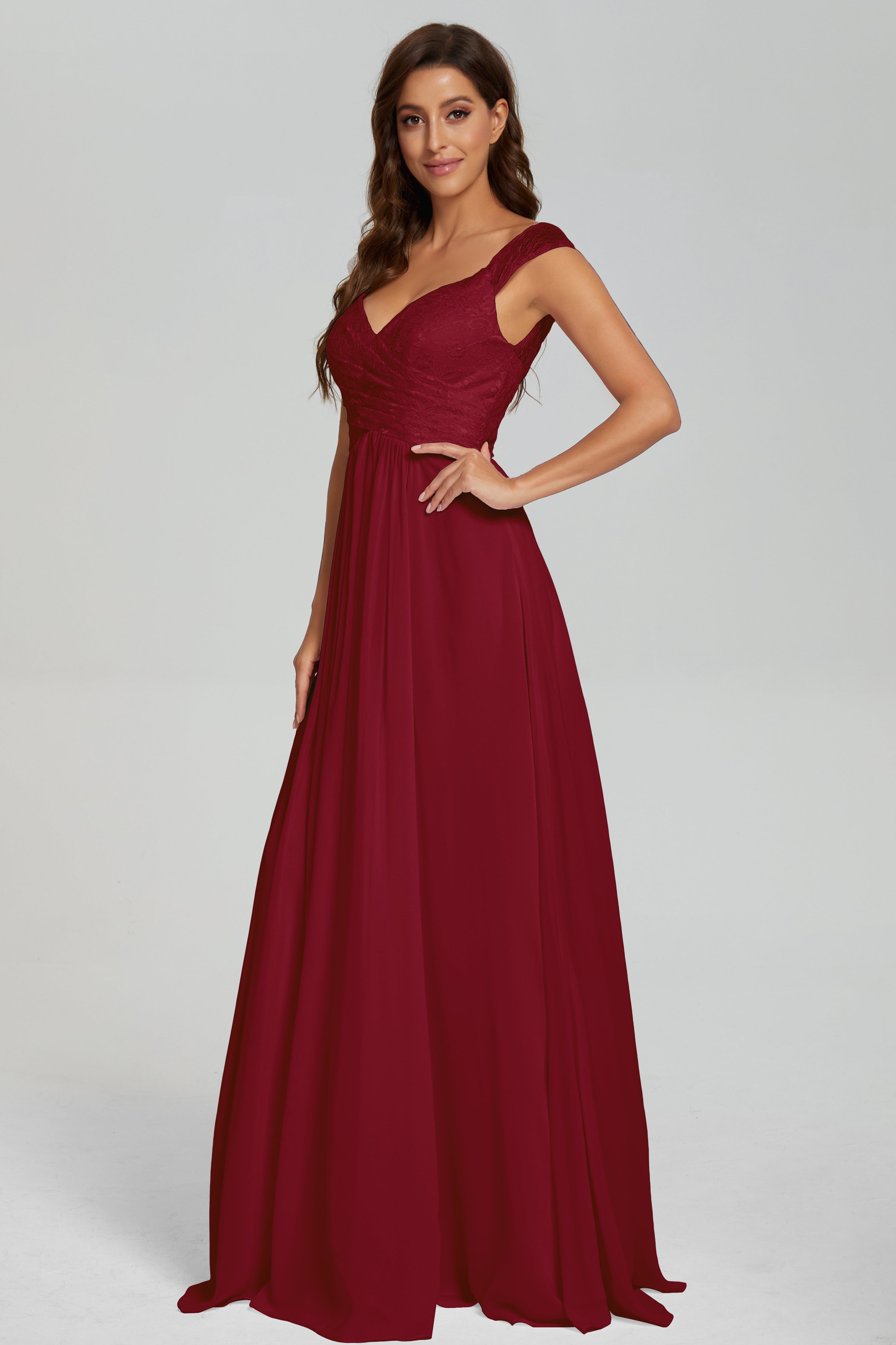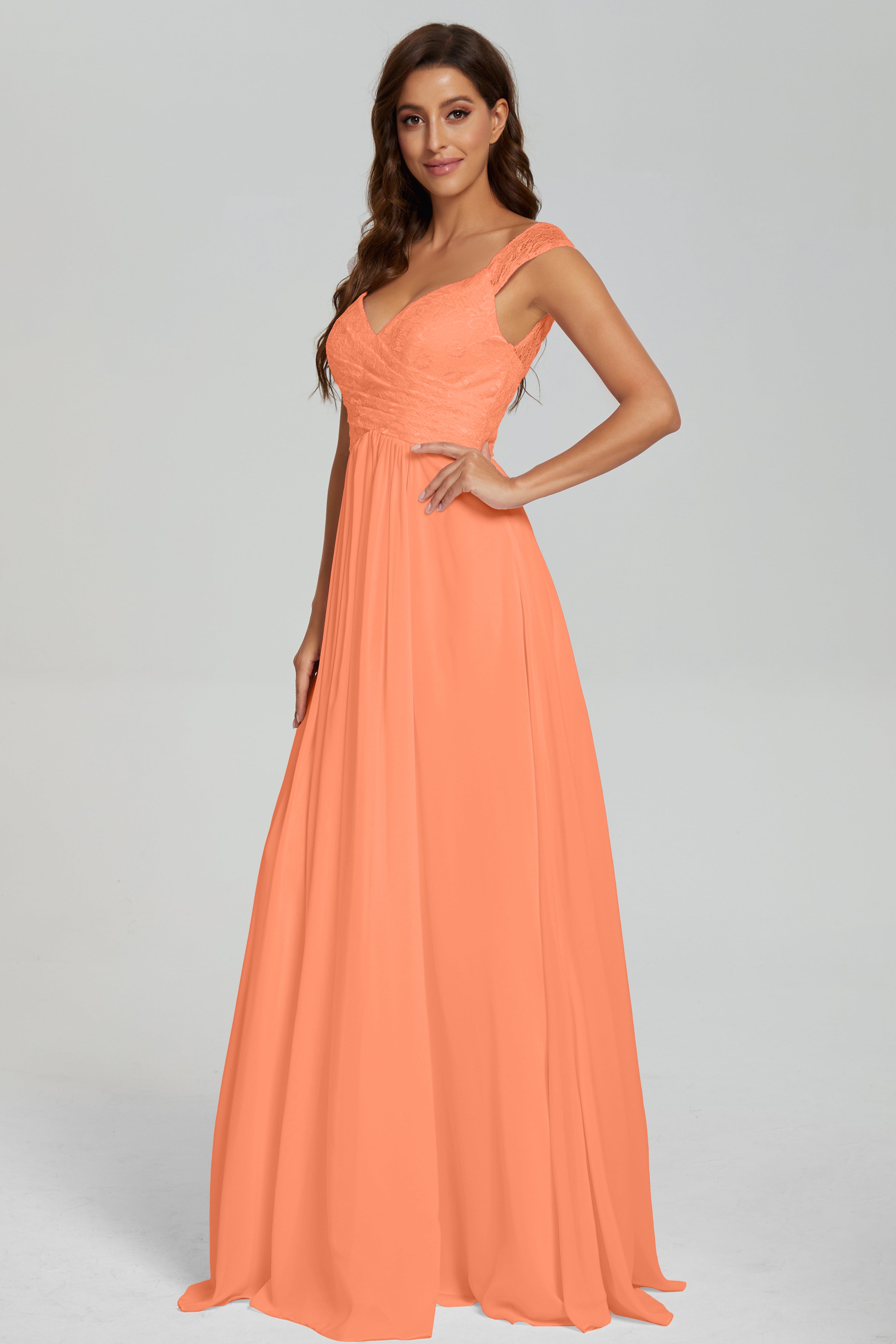 Short Sleeves Chiffon Lace Prom Dresses with Pockets