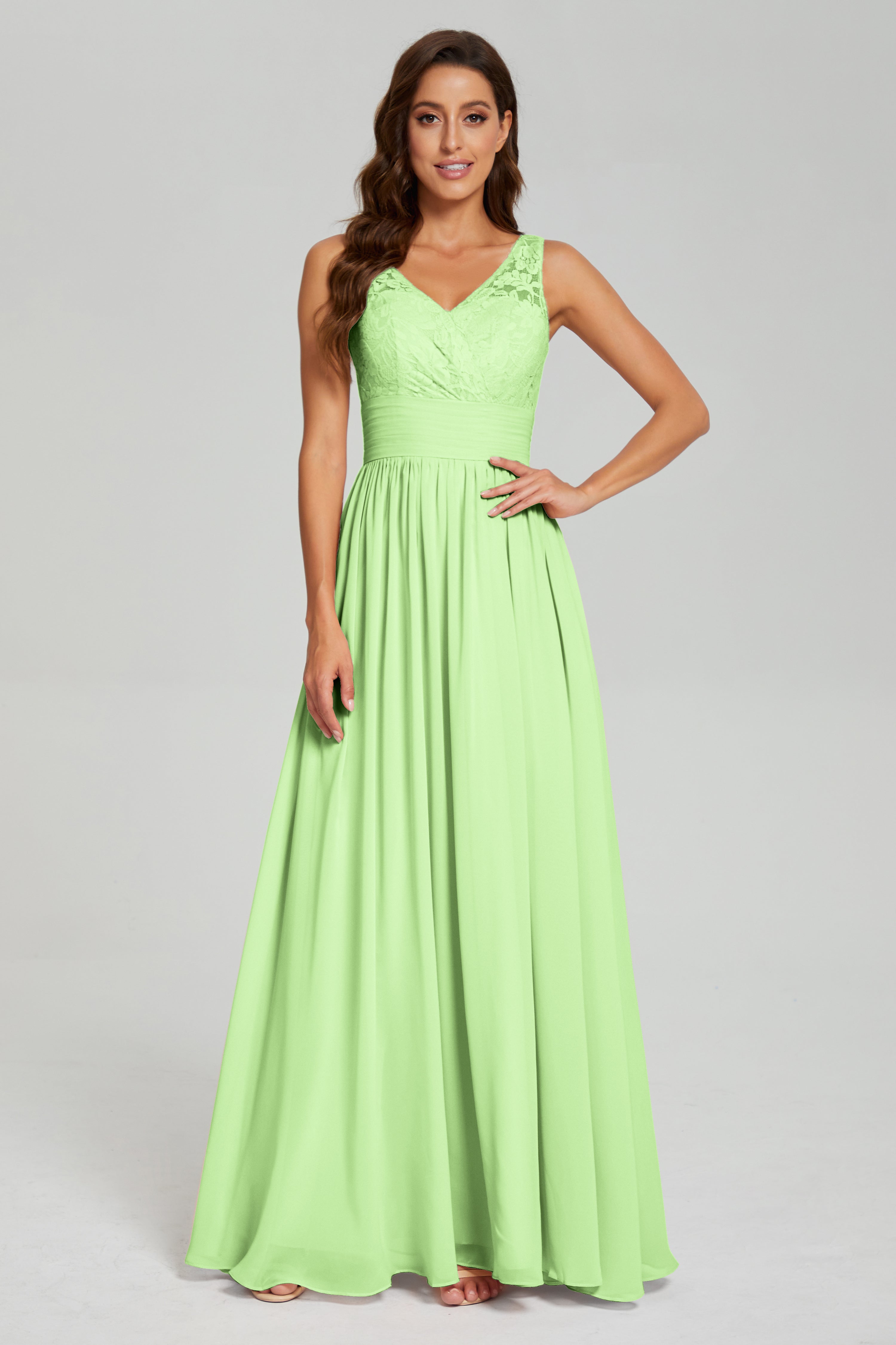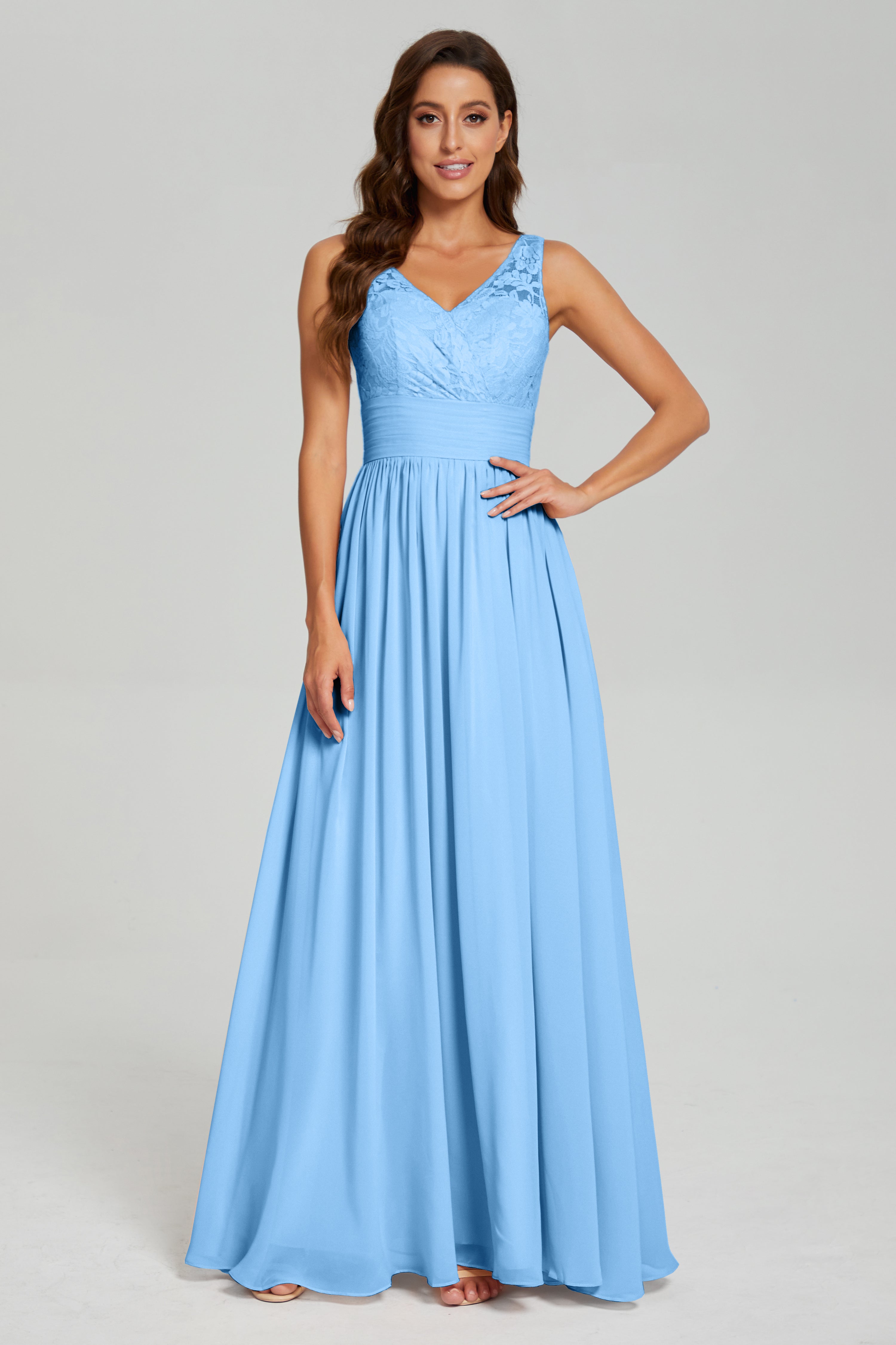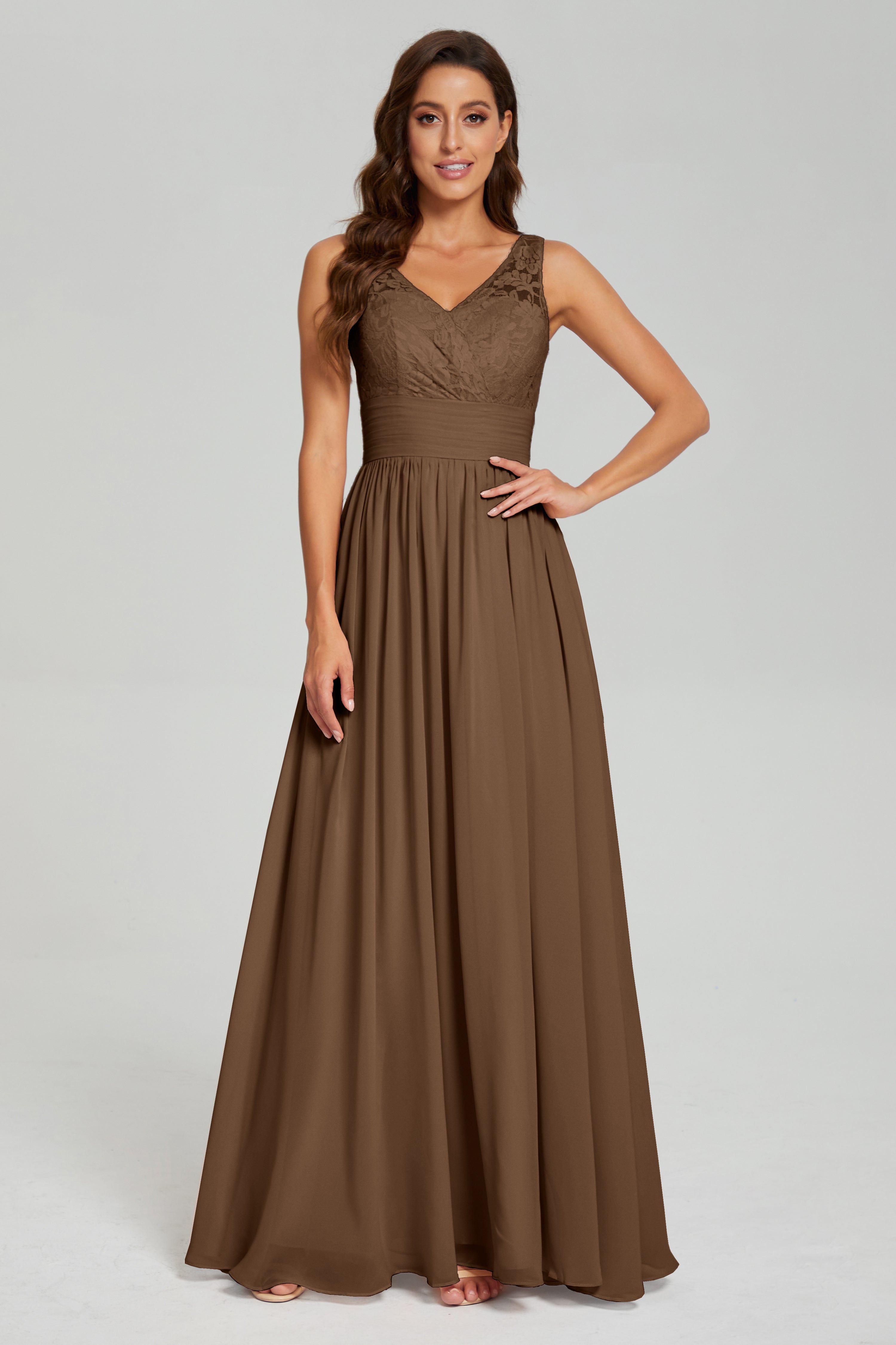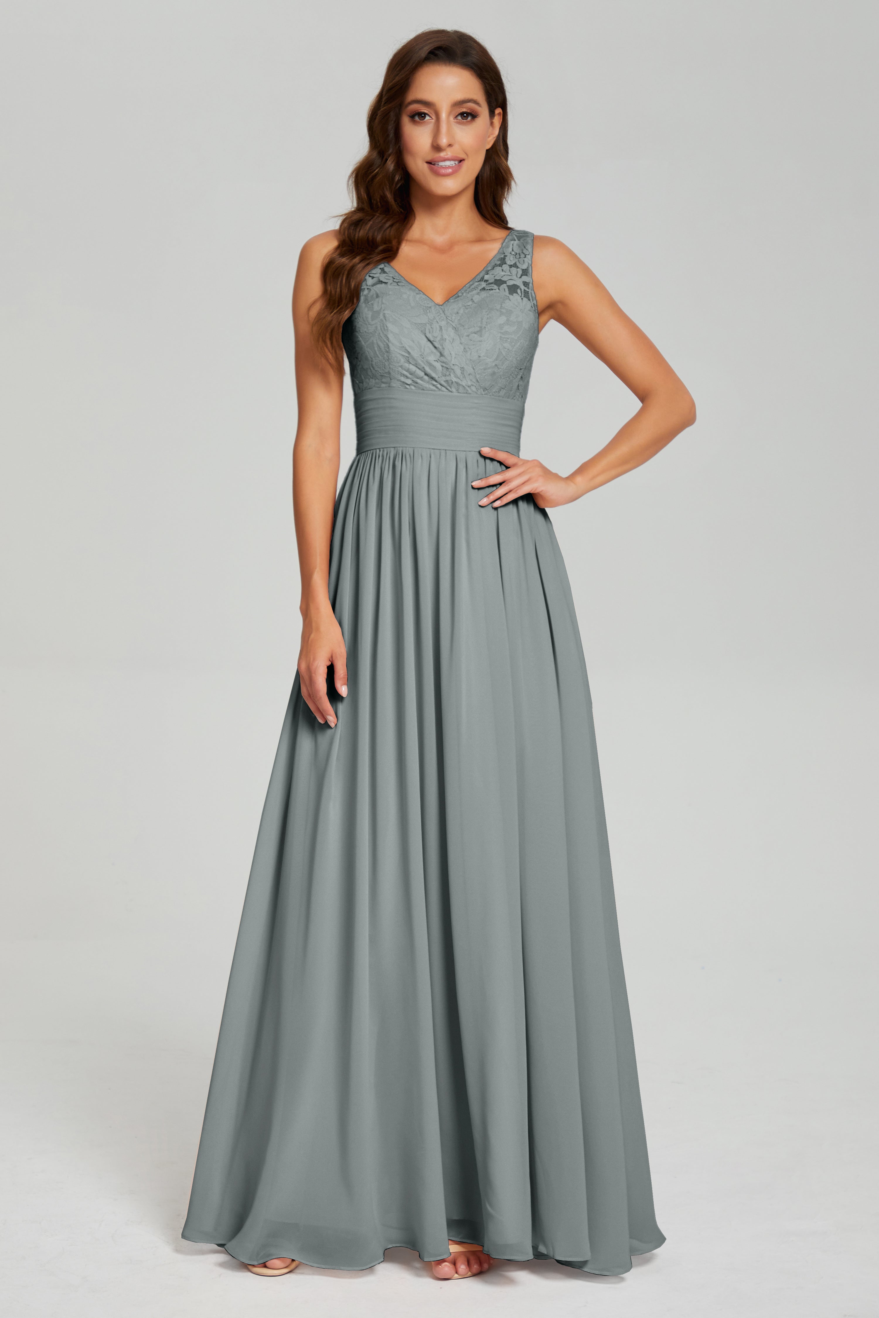 Short Sleeves Chiffon Lace Prom Dresses with Pockets