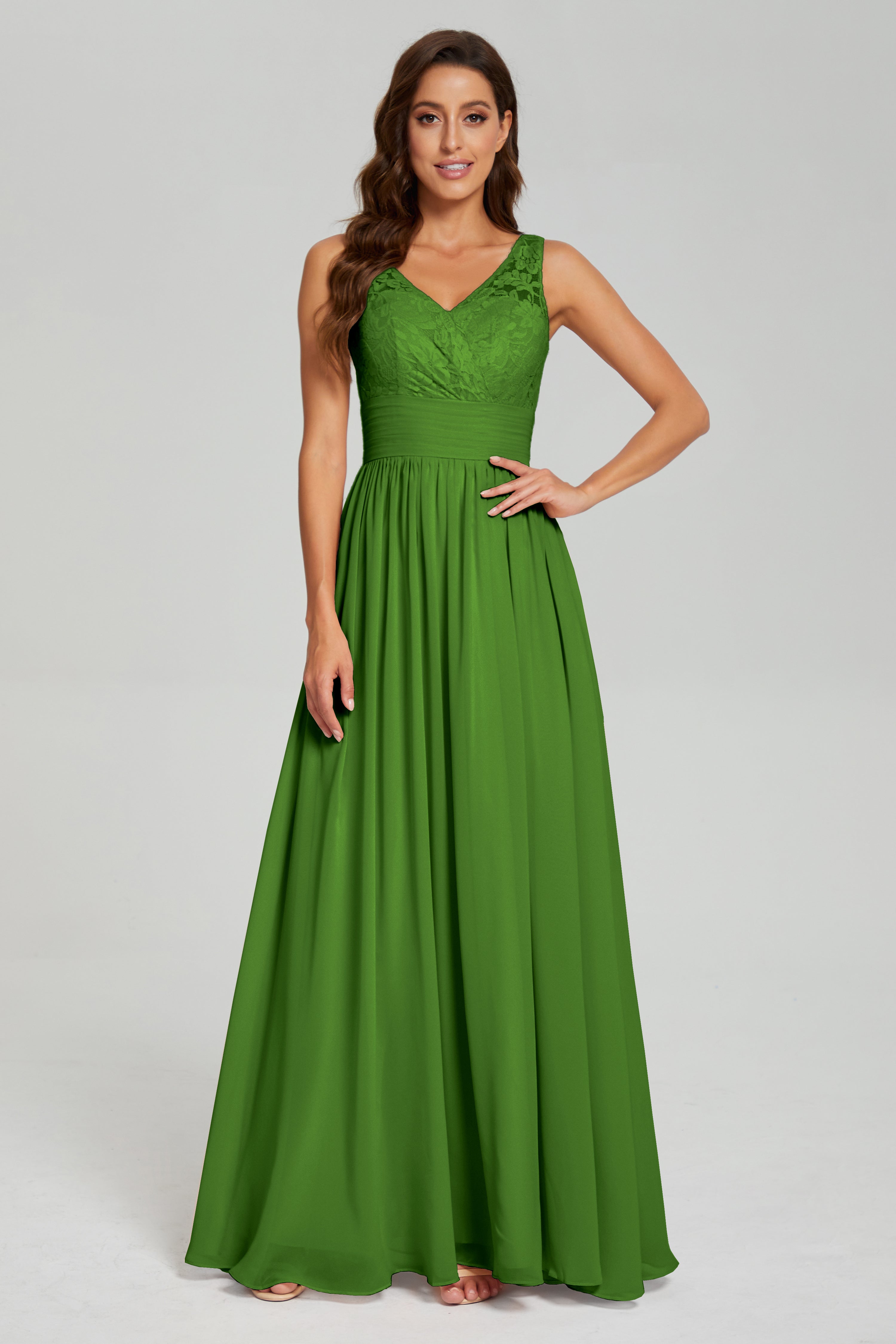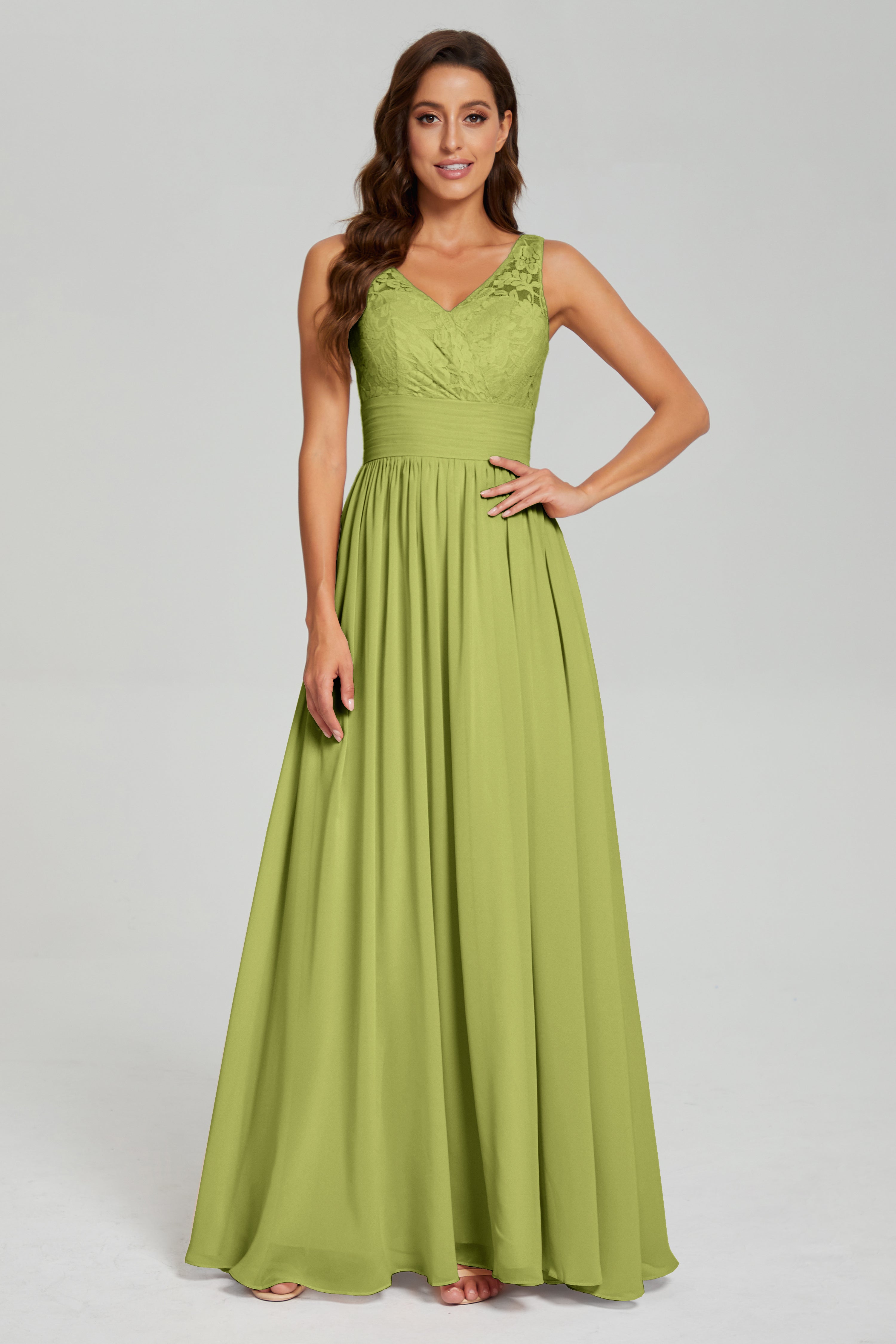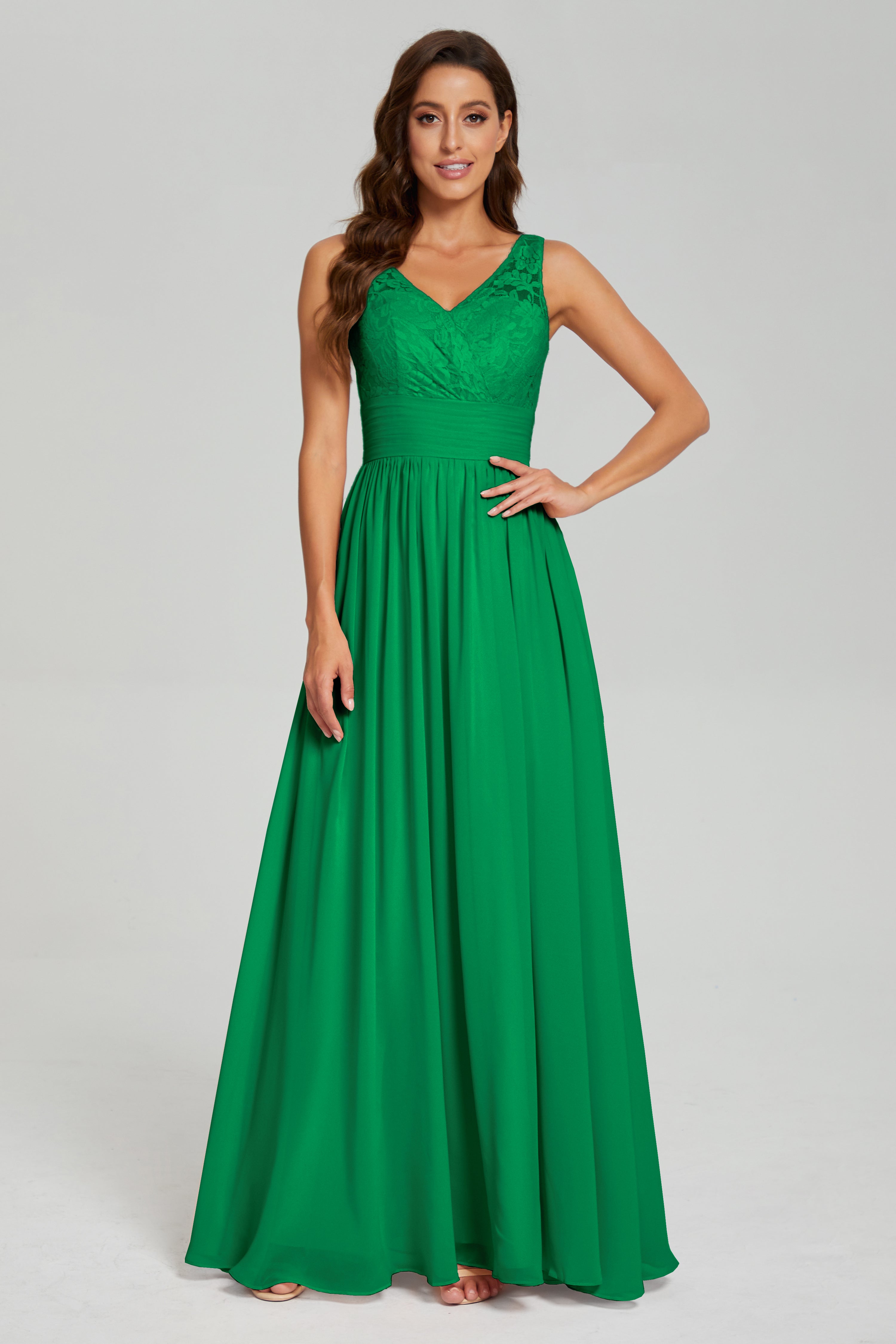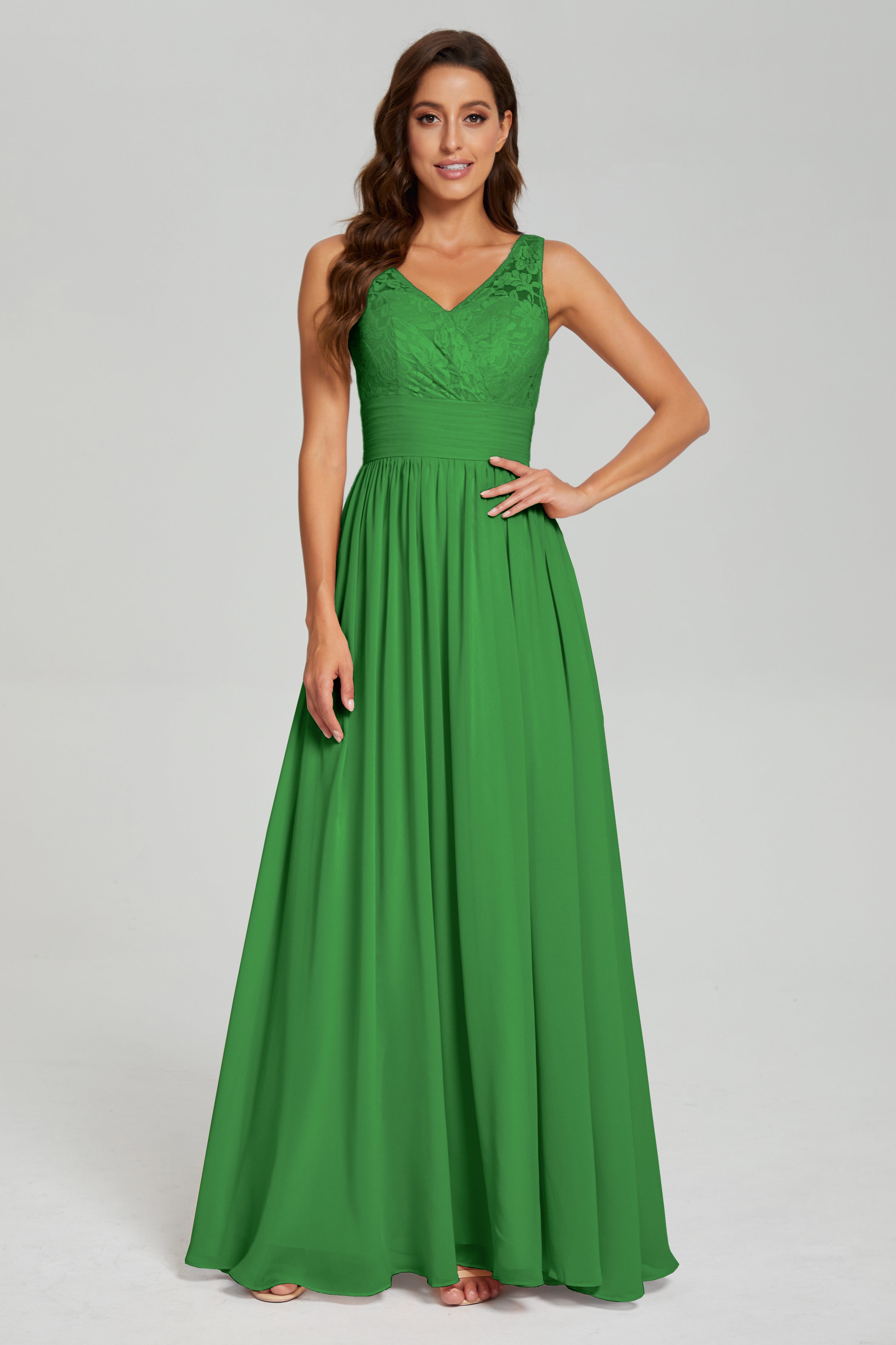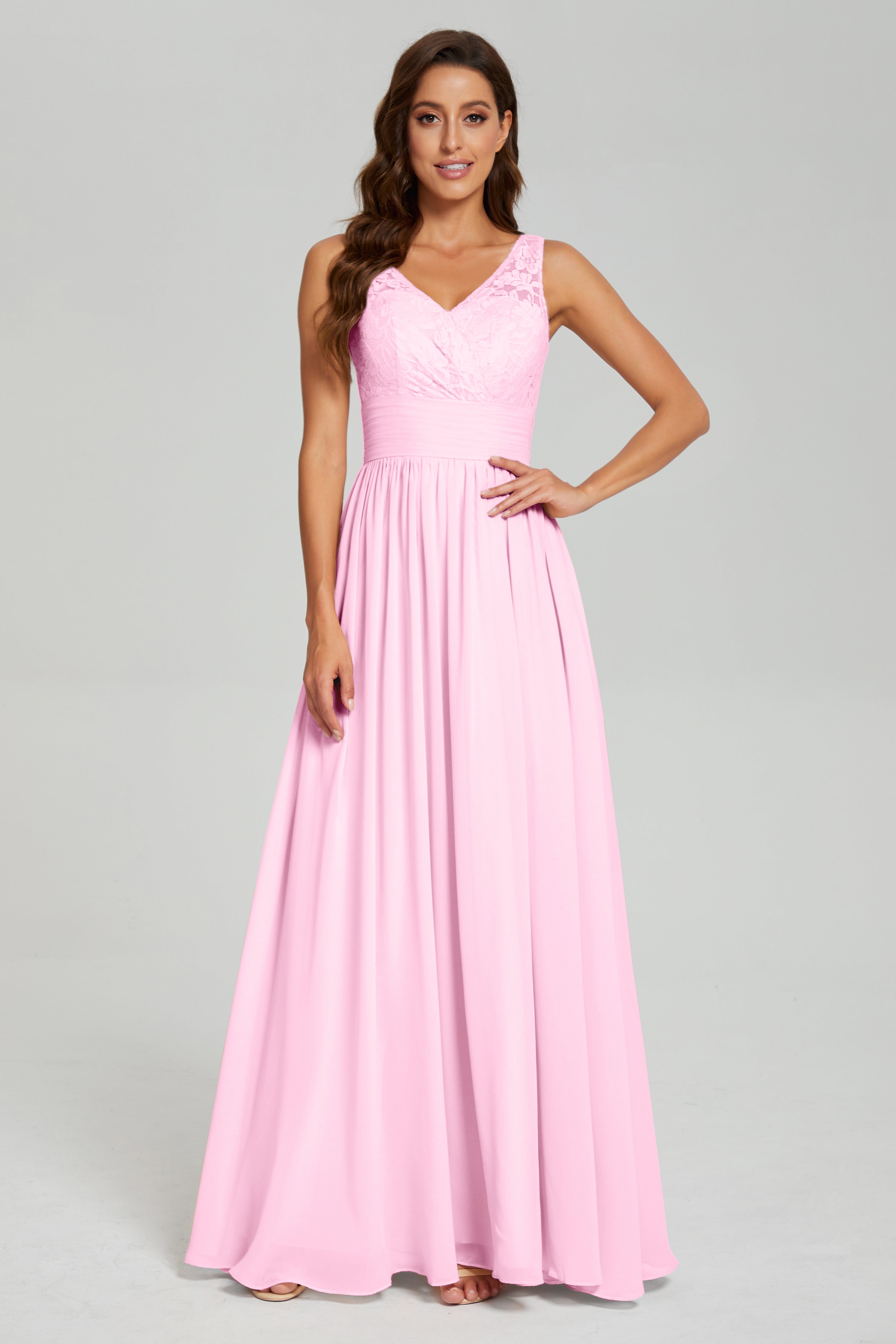 Short Sleeves Chiffon Lace Prom Dresses with Pockets