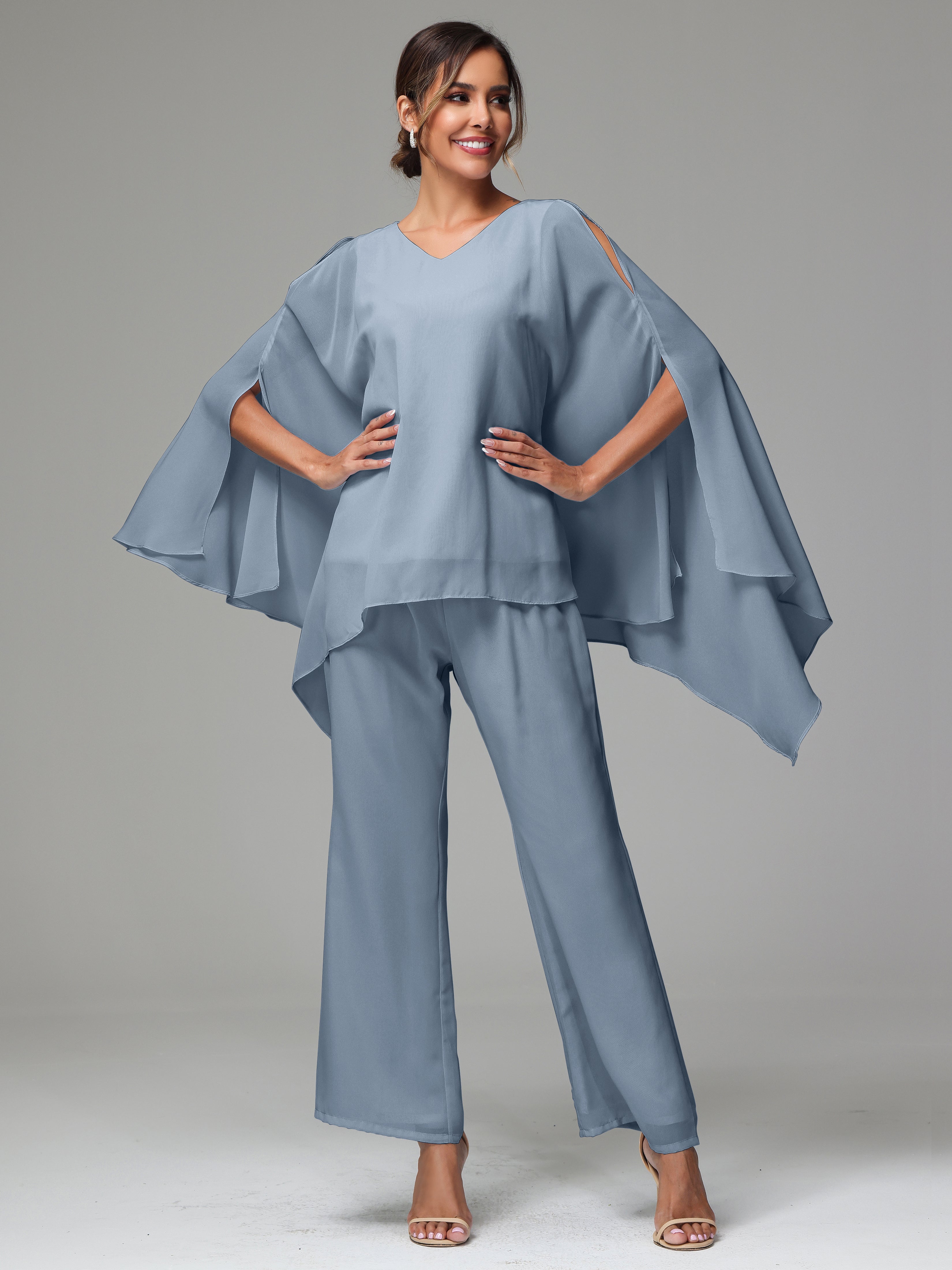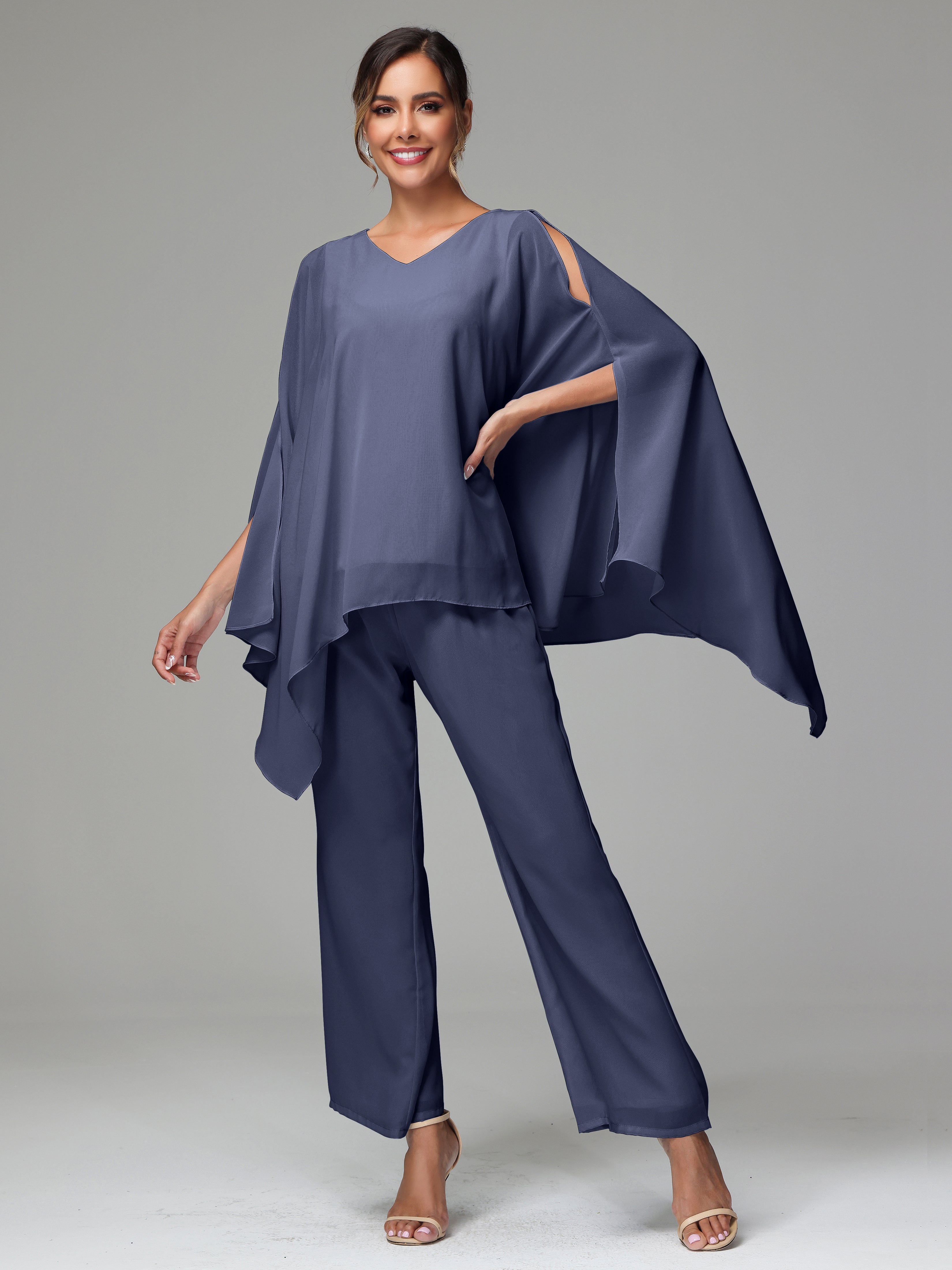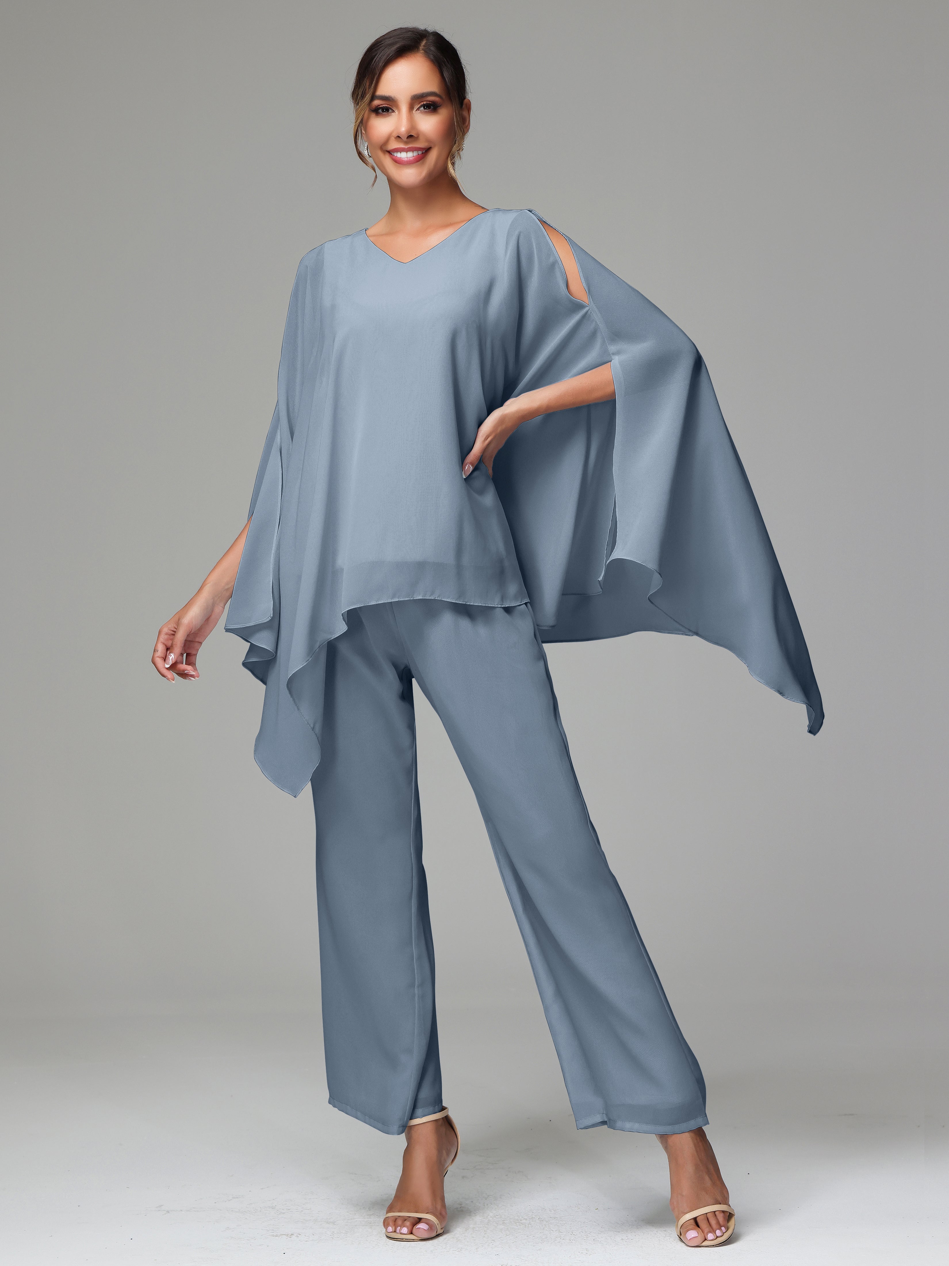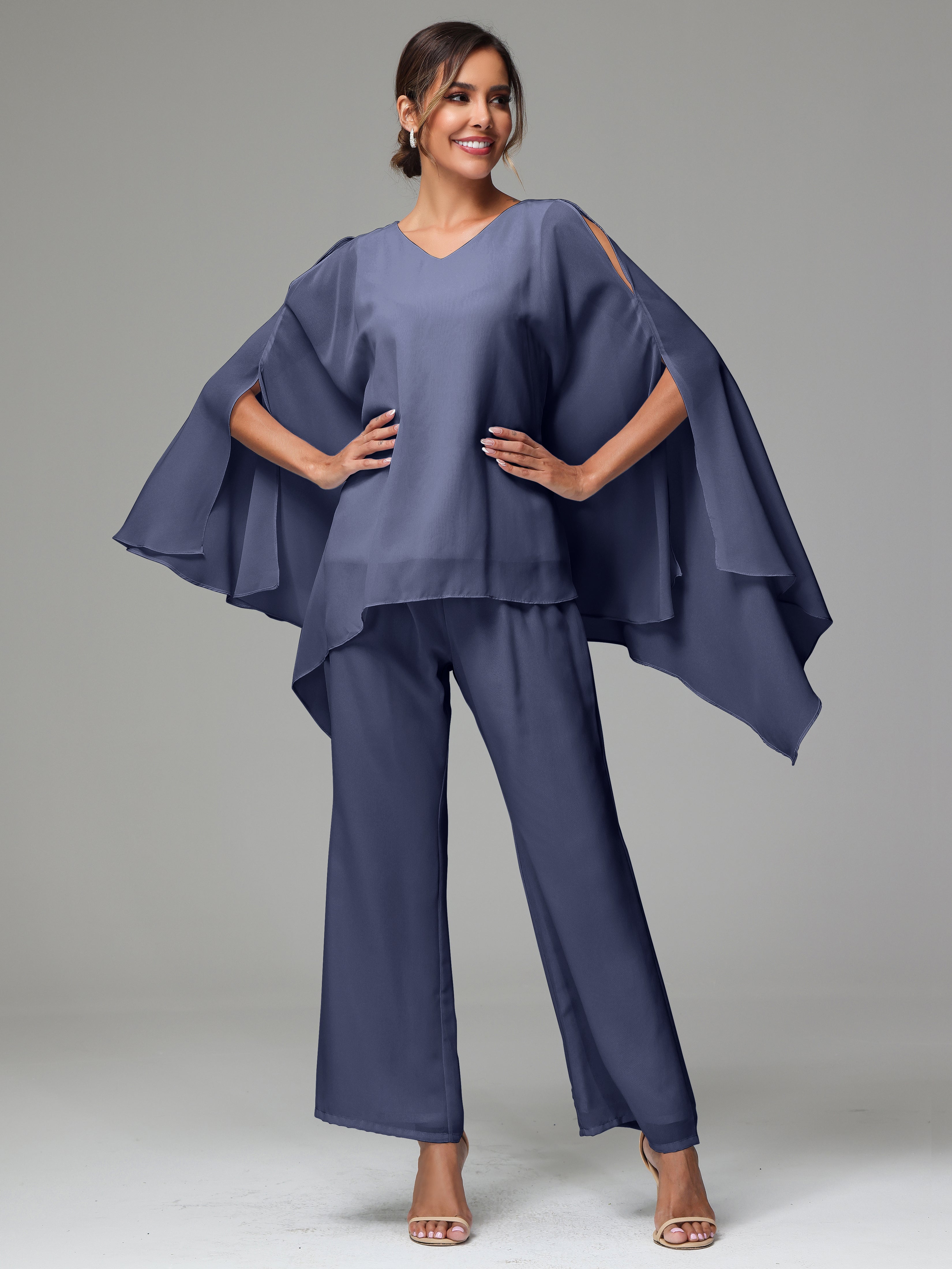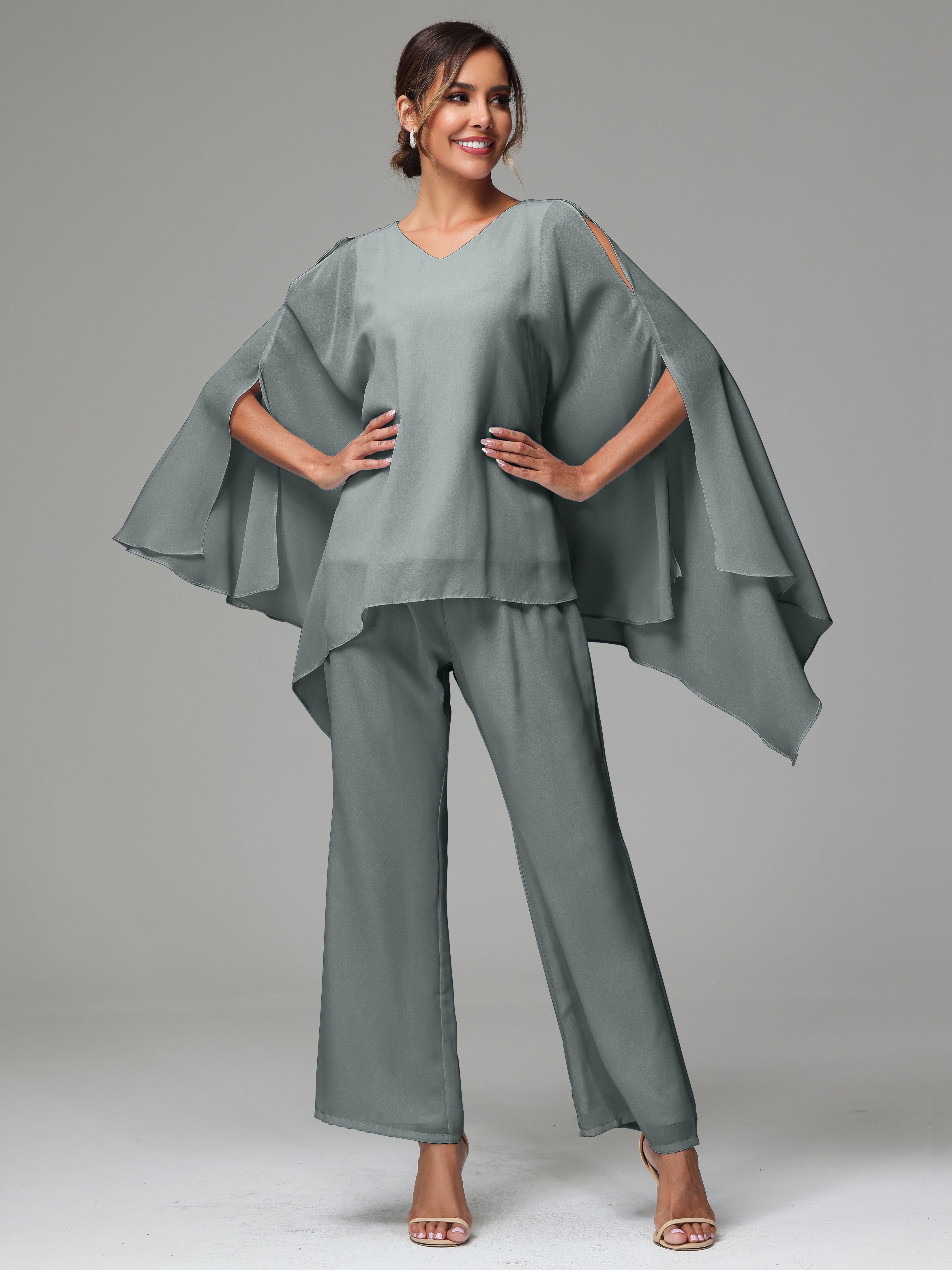 2 Pieces Flowy Split Sleeves Chiffon Mother Of The Bride Dress Pants Suits