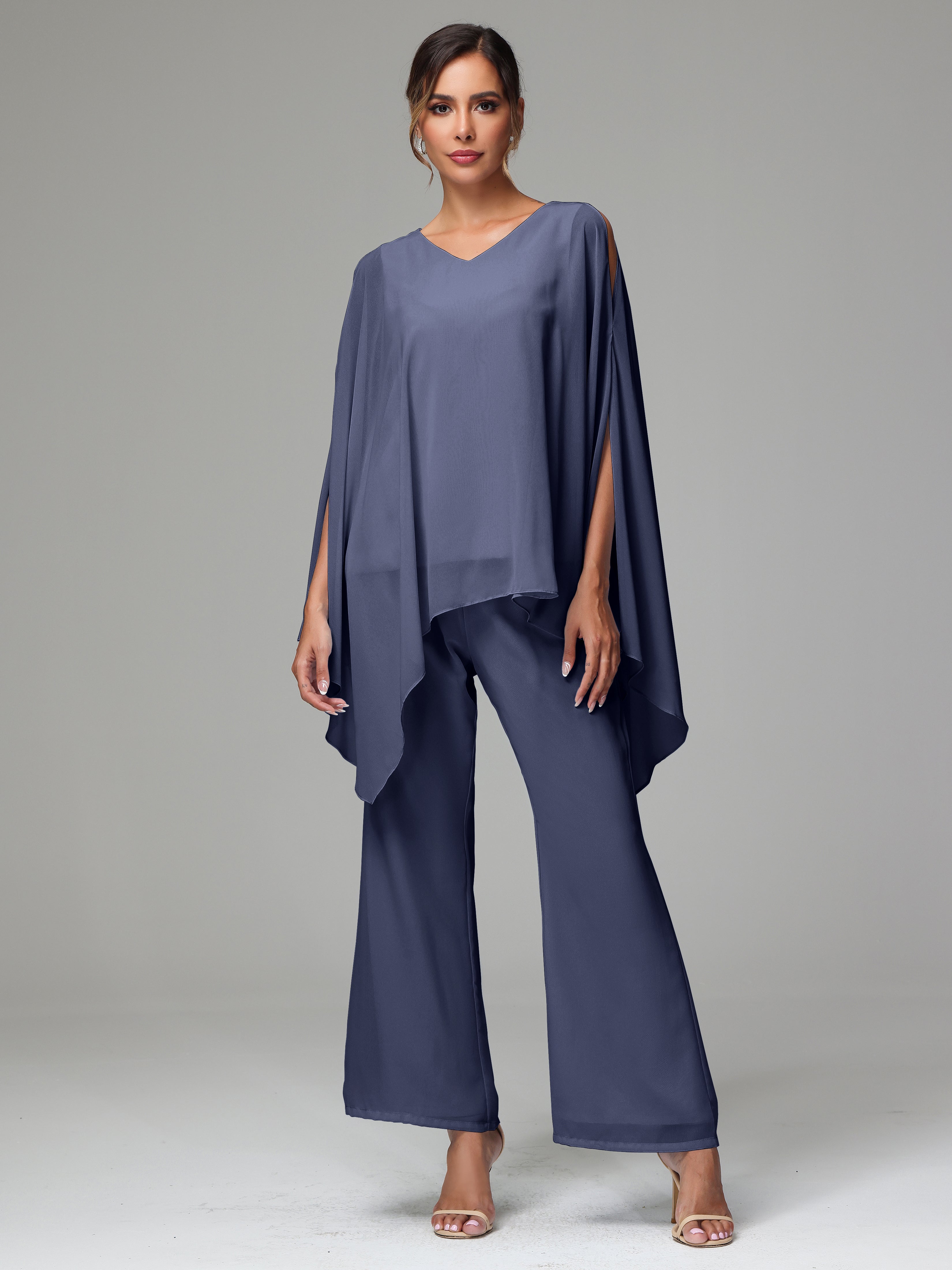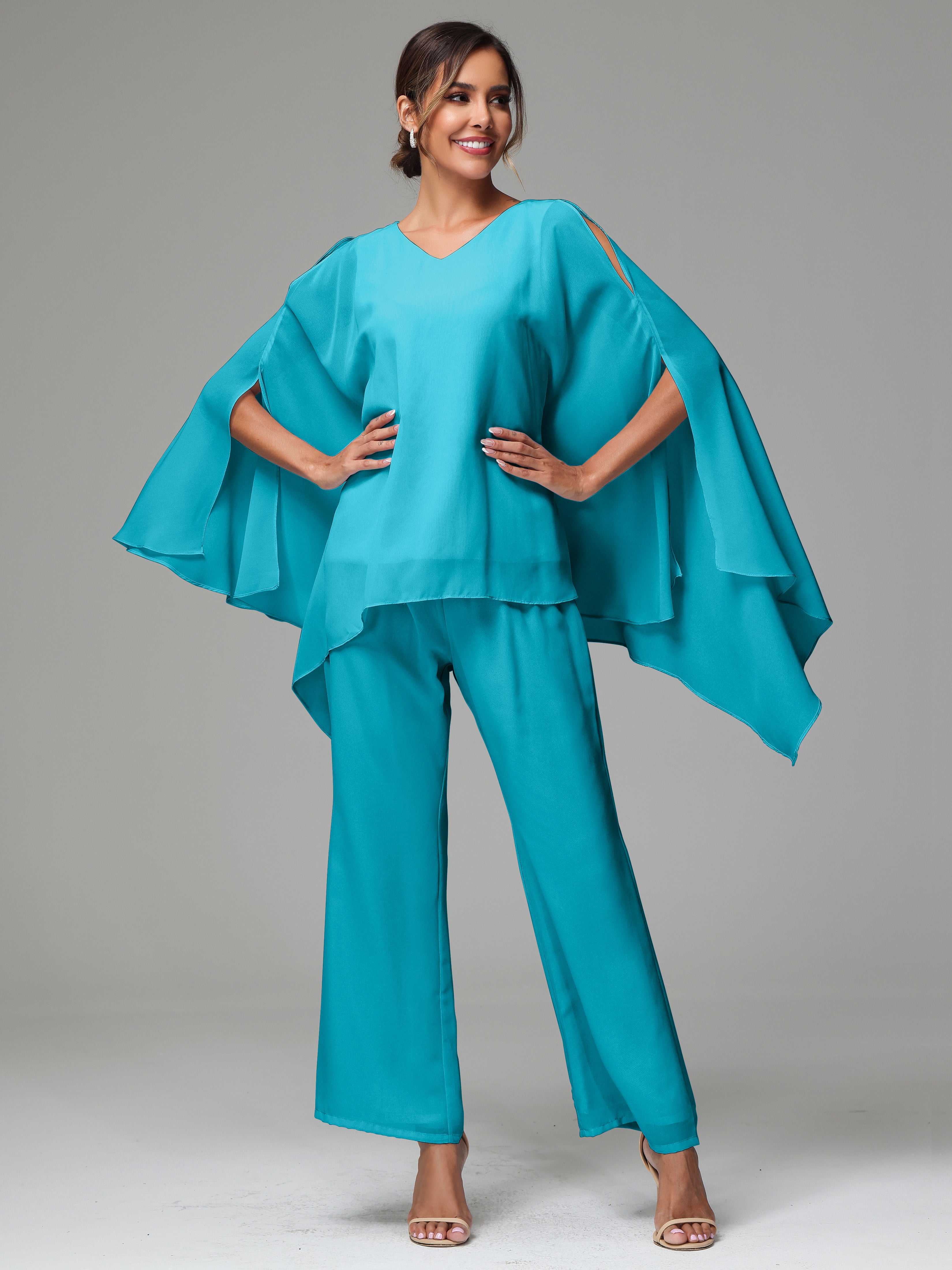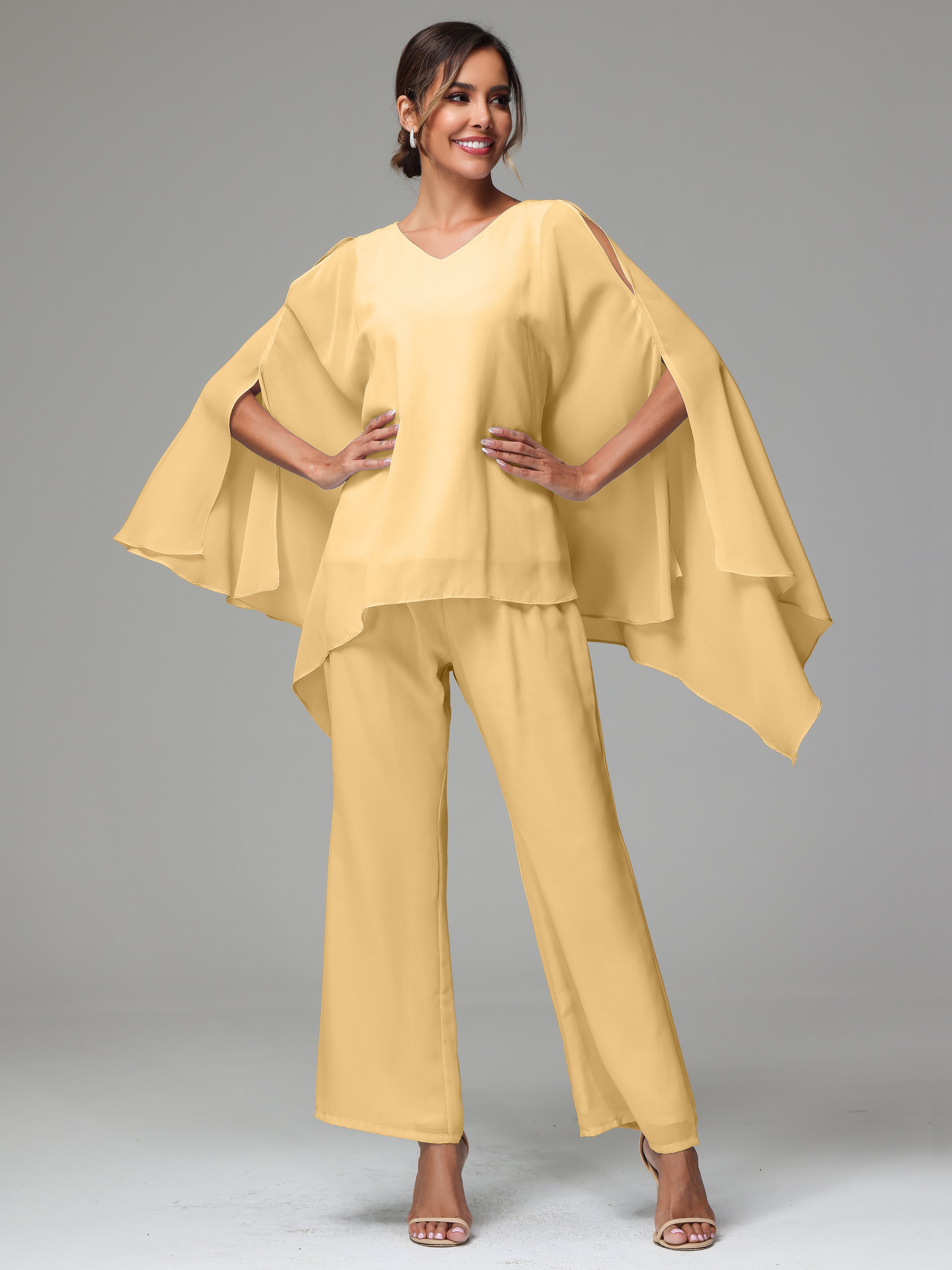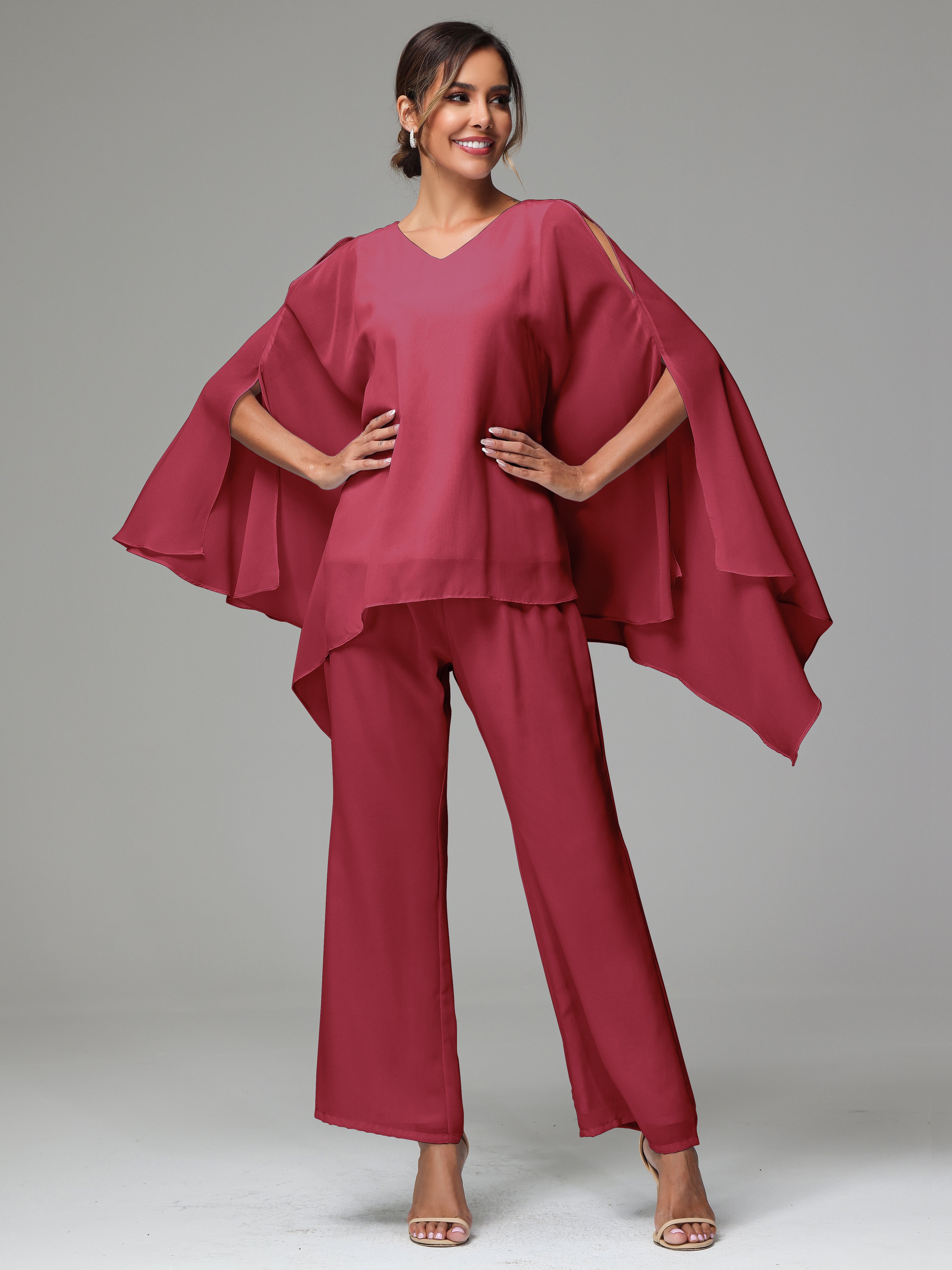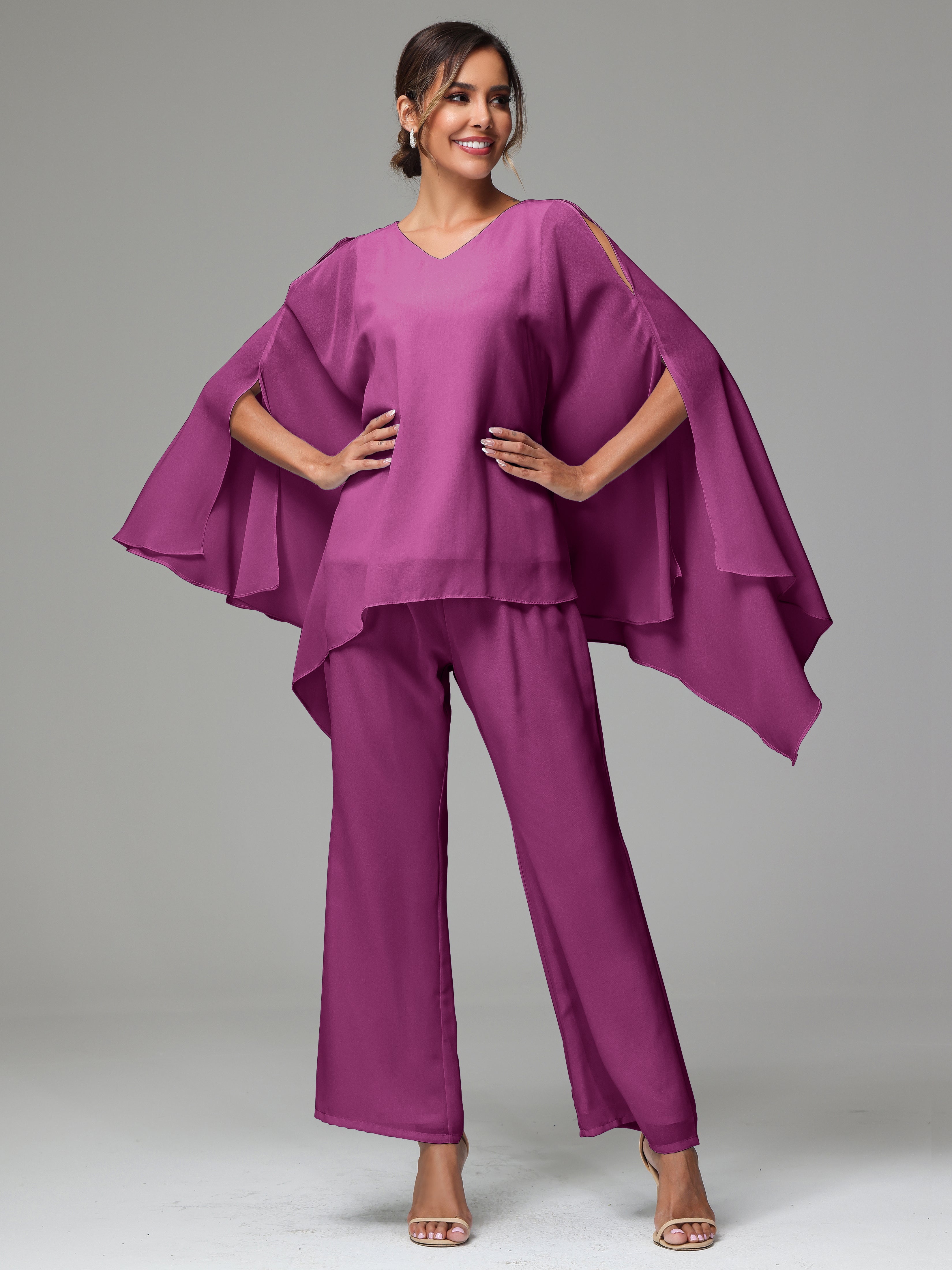 2 Pieces Flowy Split Sleeves Chiffon Mother Of The Bride Dress Pants Suits