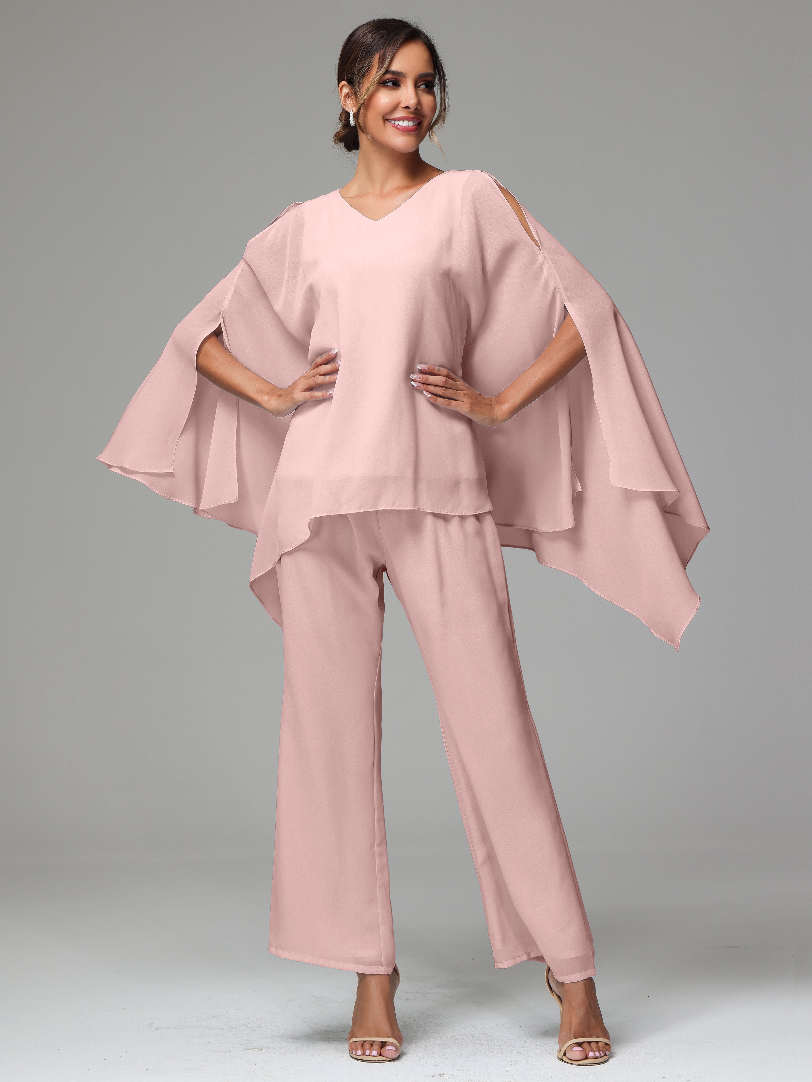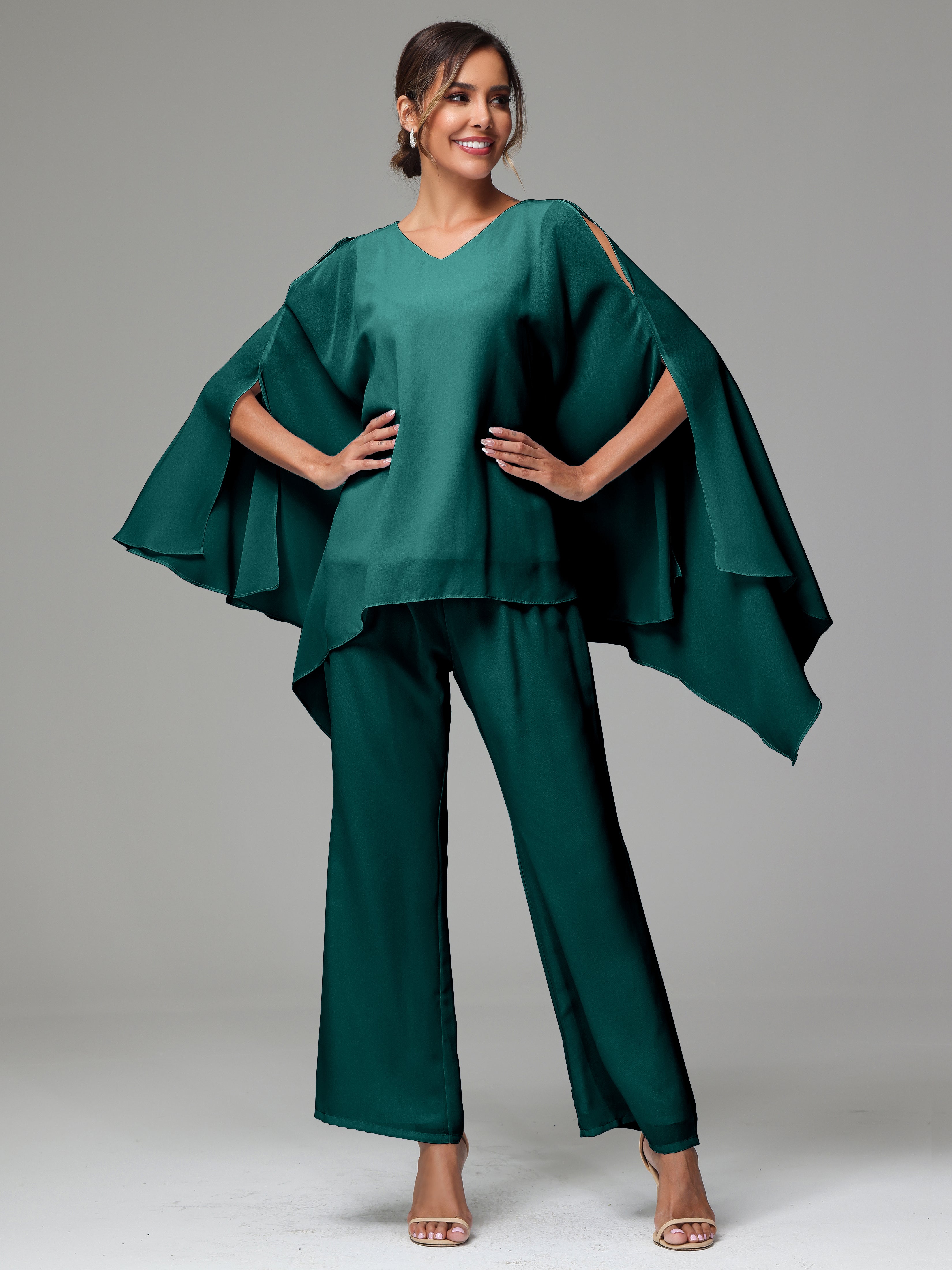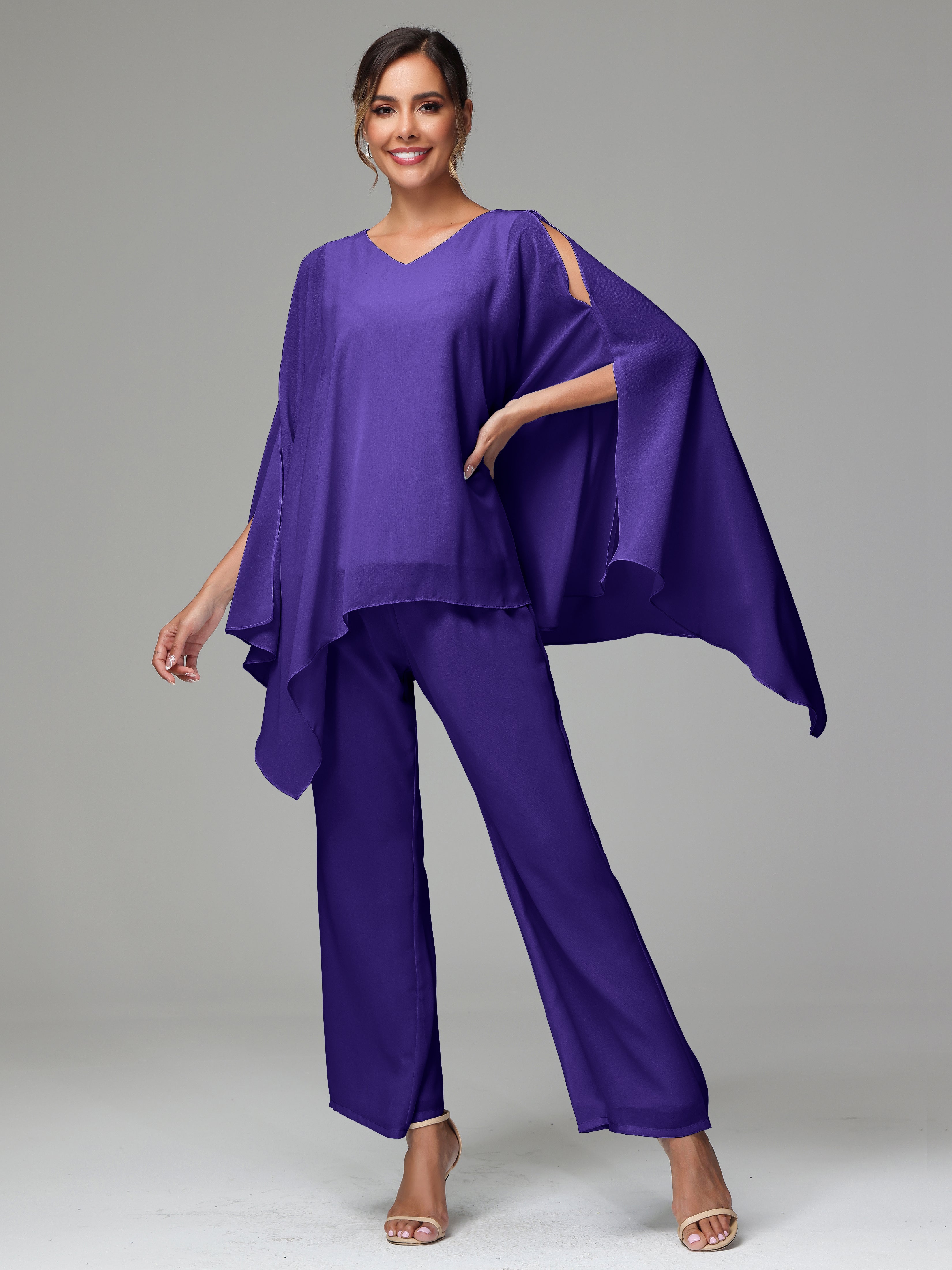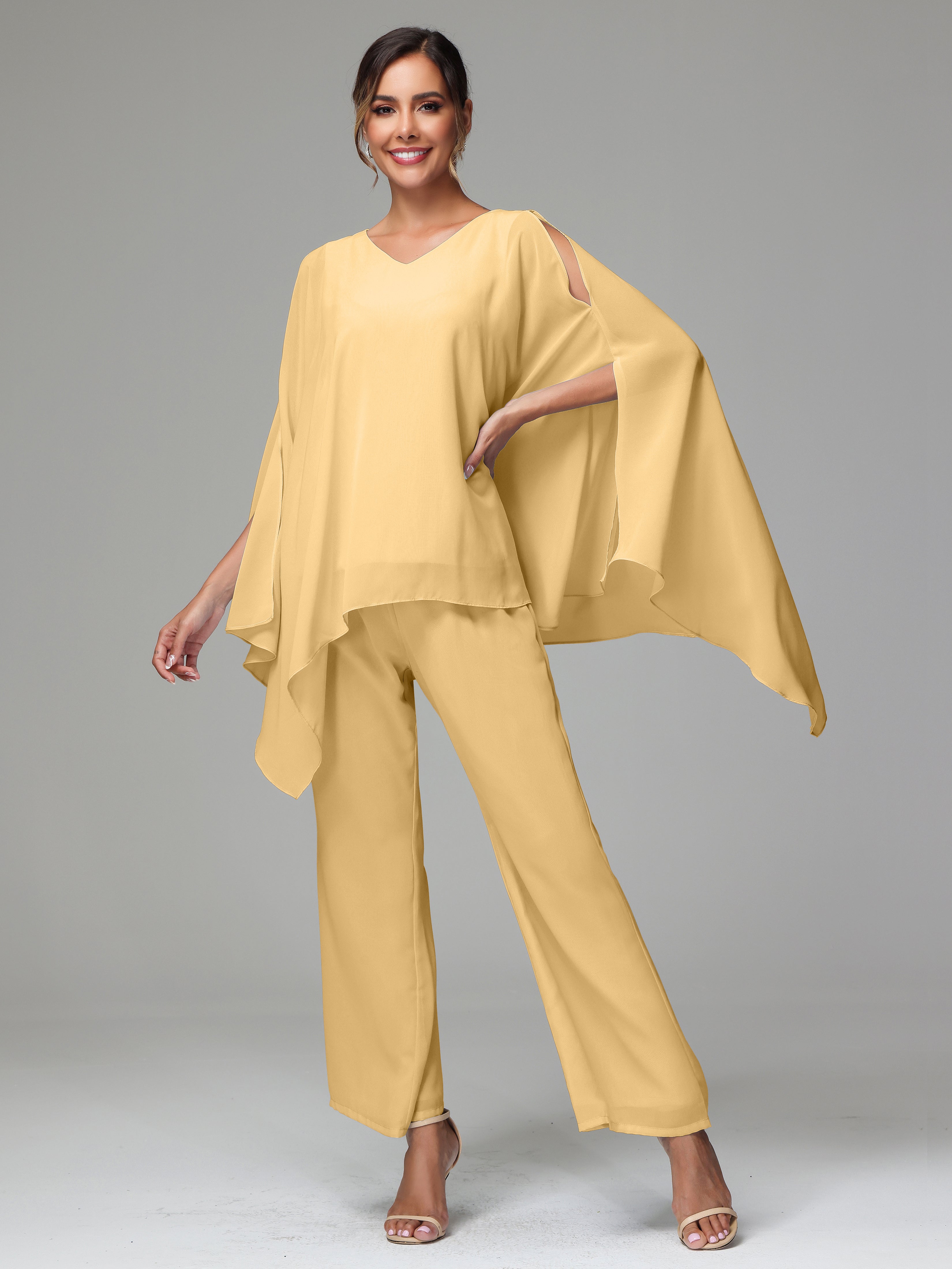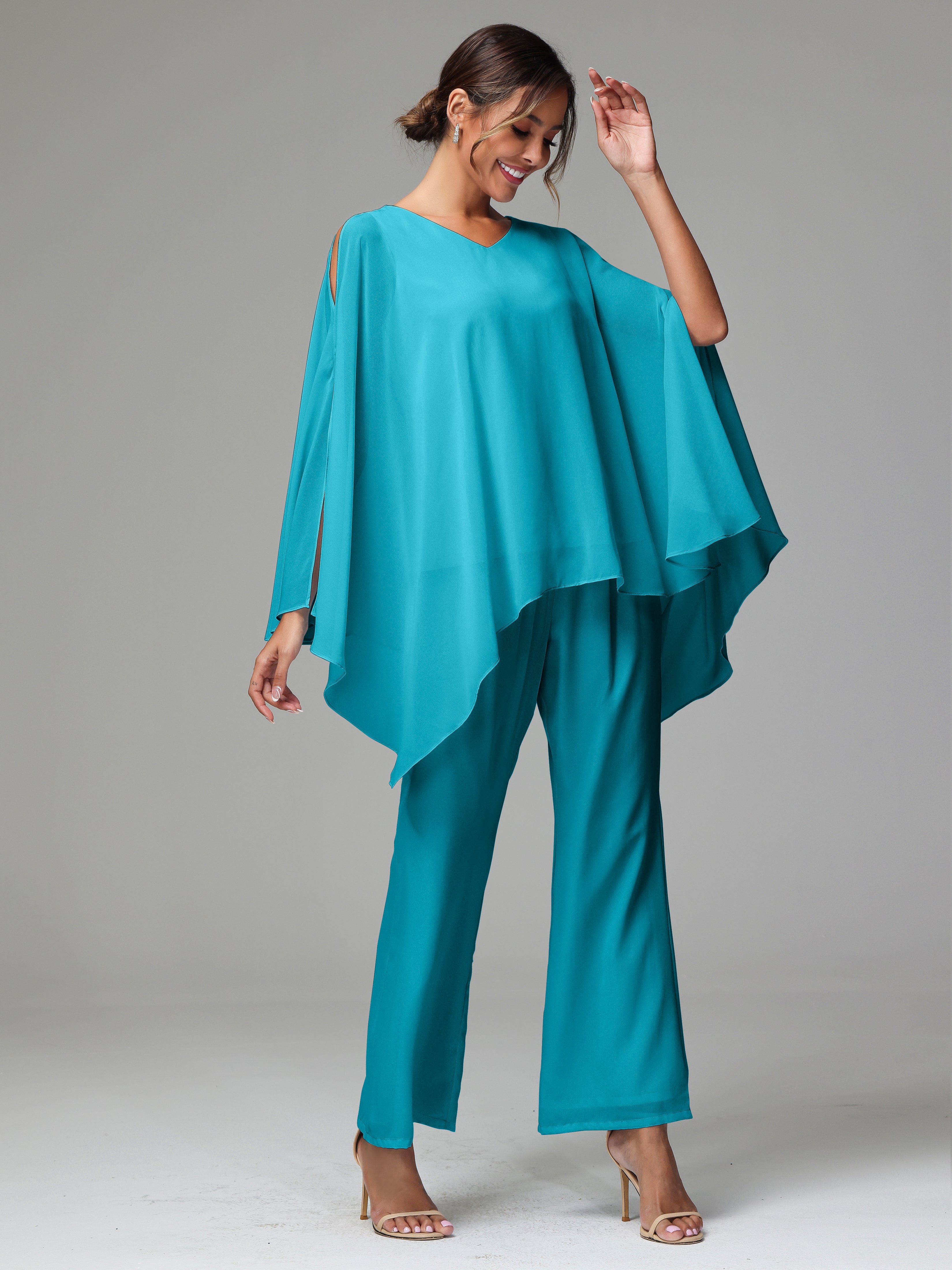 2 Pieces Flowy Split Sleeves Chiffon Mother Of The Bride Dress Pants Suits