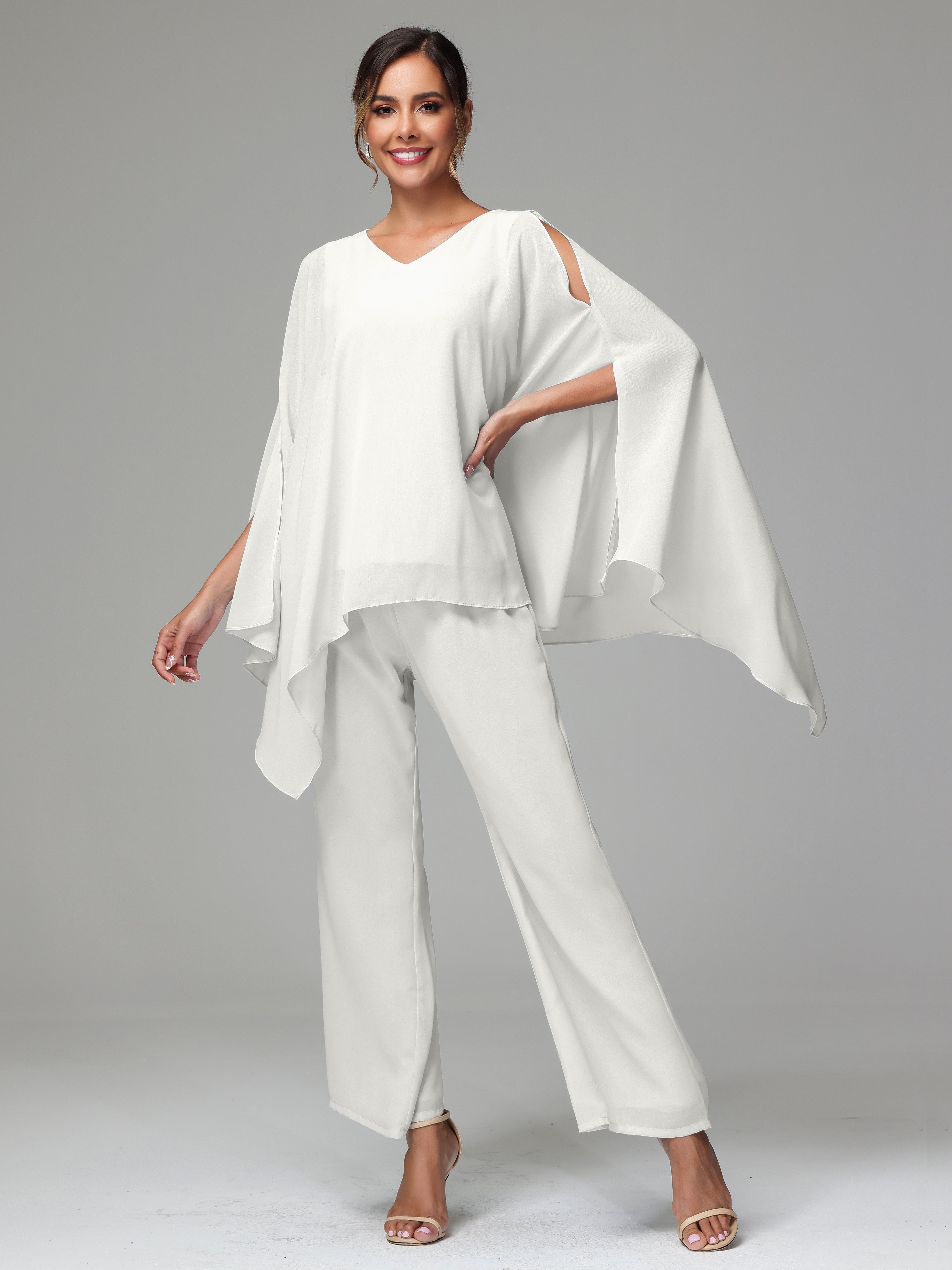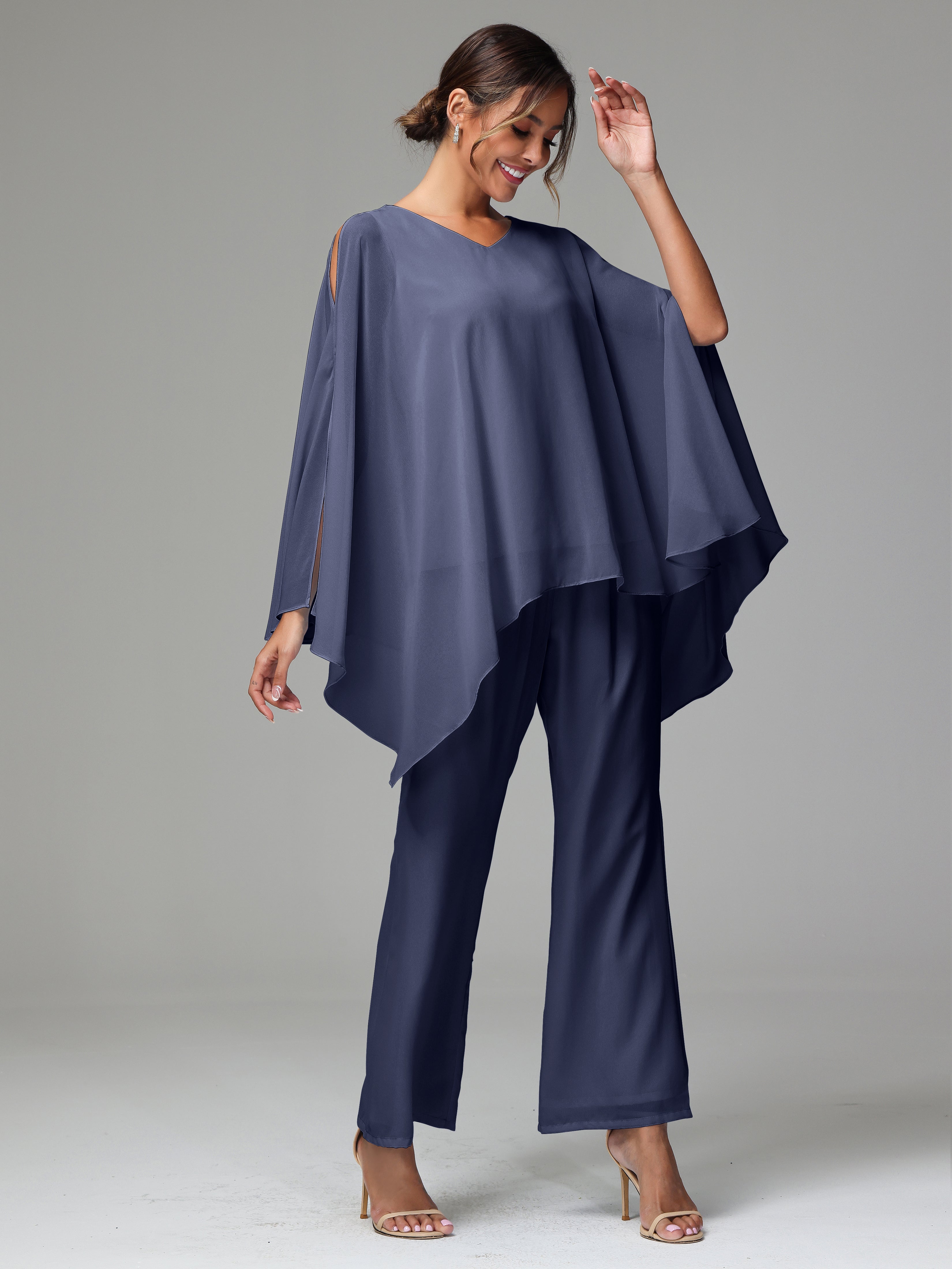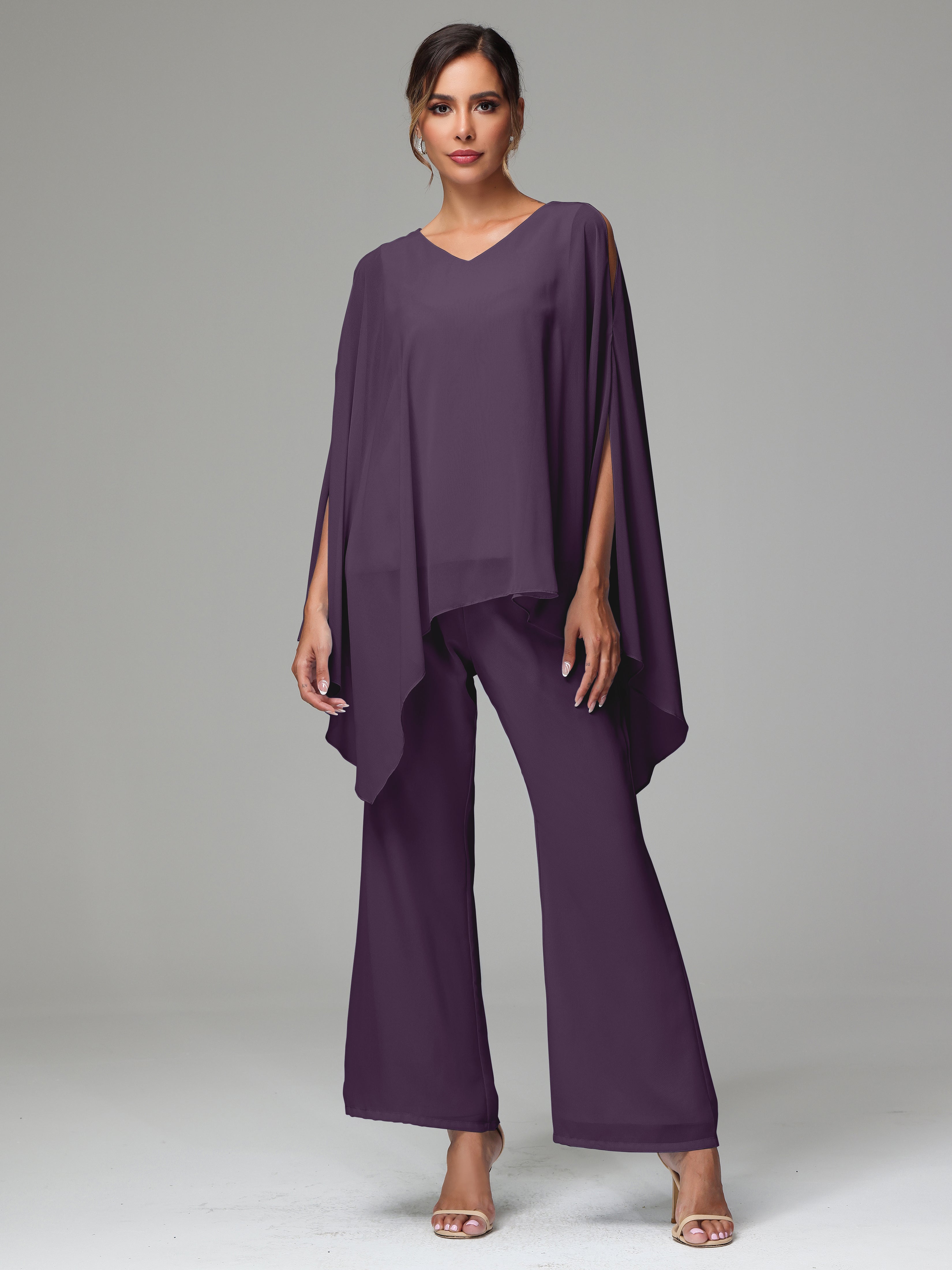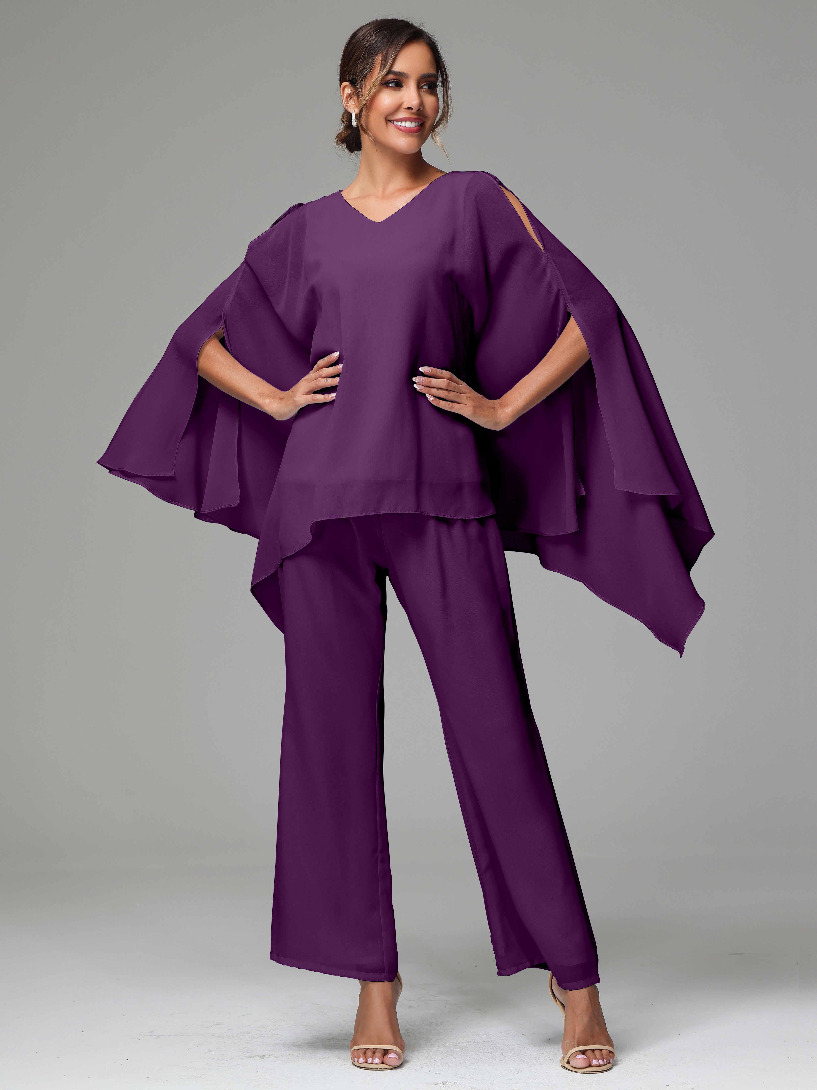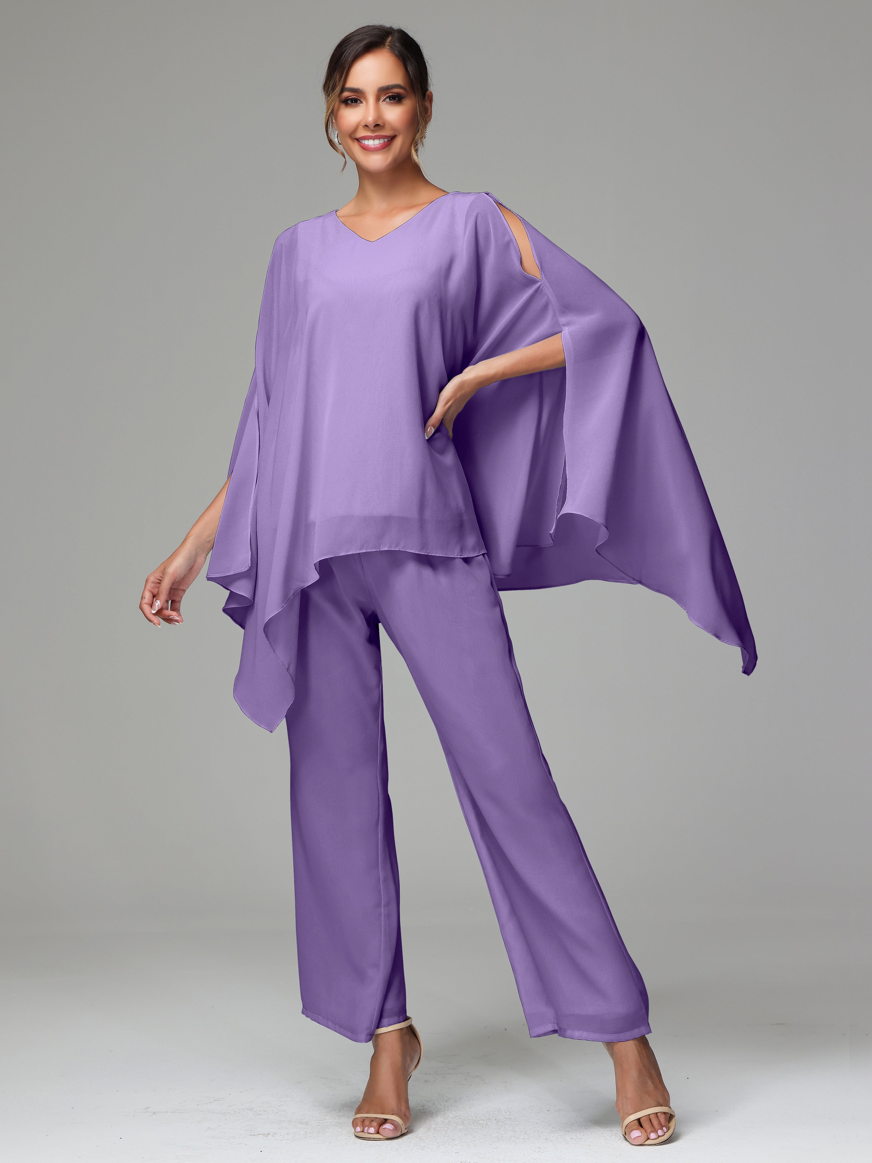 2 Pieces Flowy Split Sleeves Chiffon Mother Of The Bride Dress Pants Suits