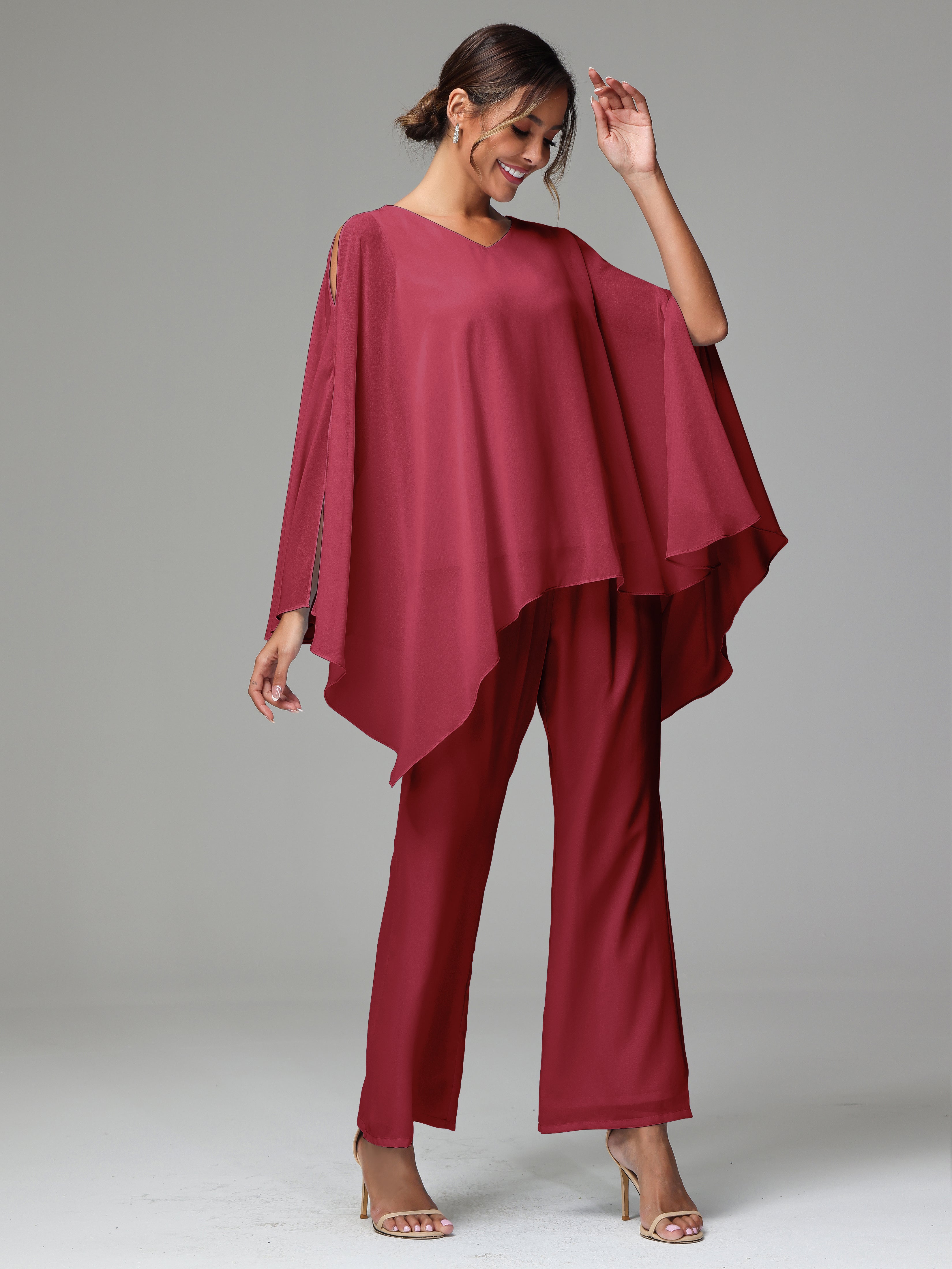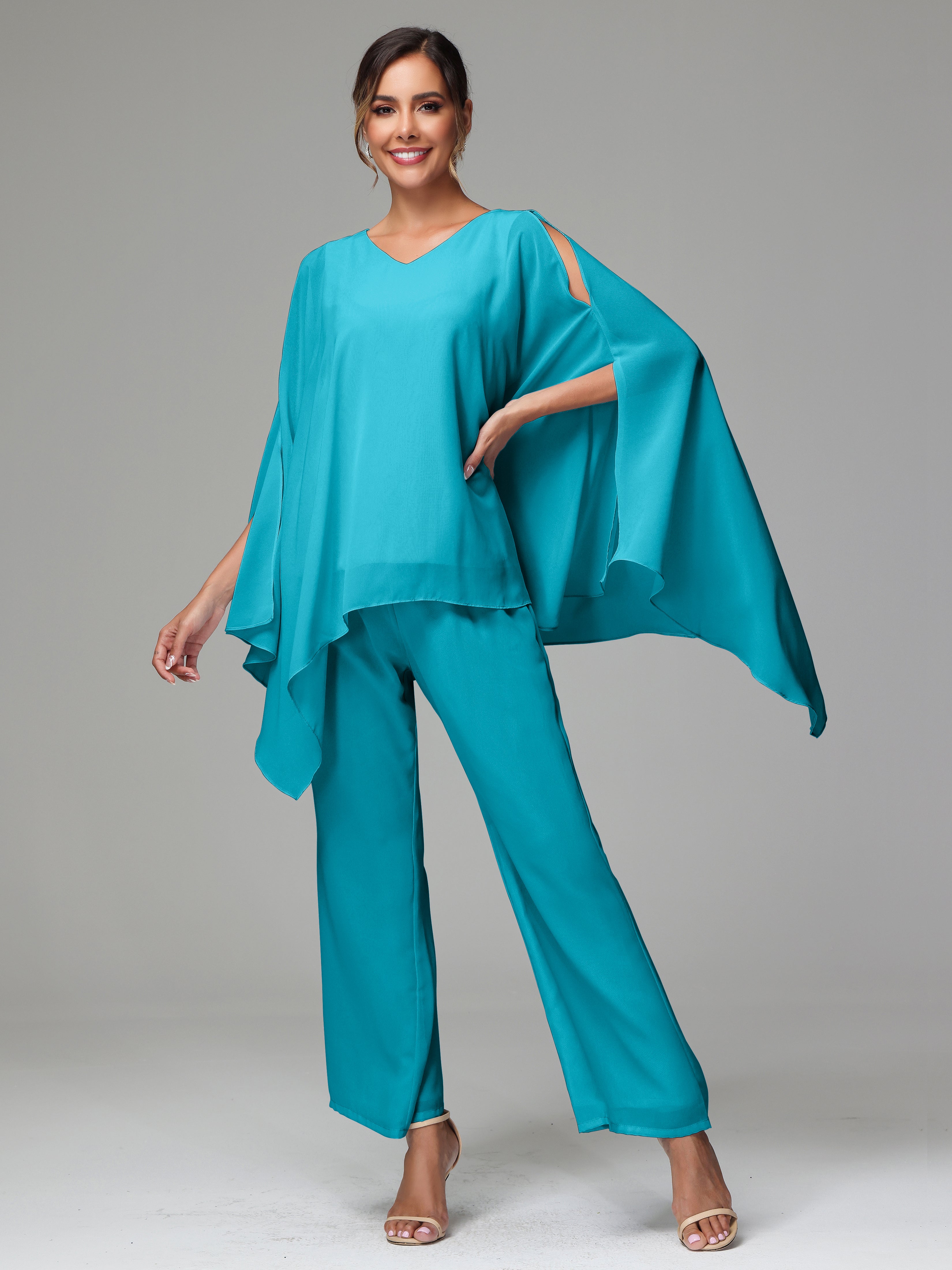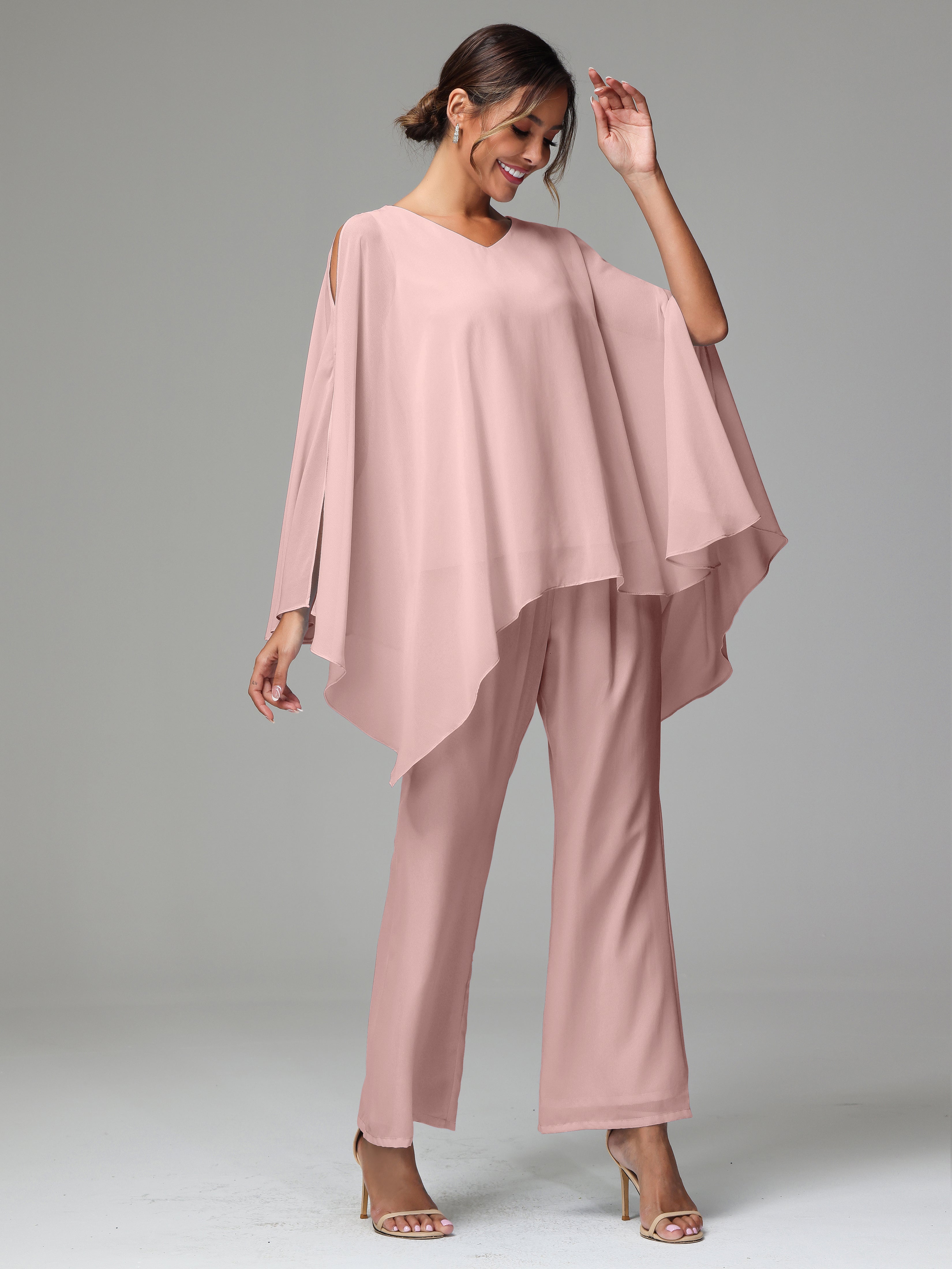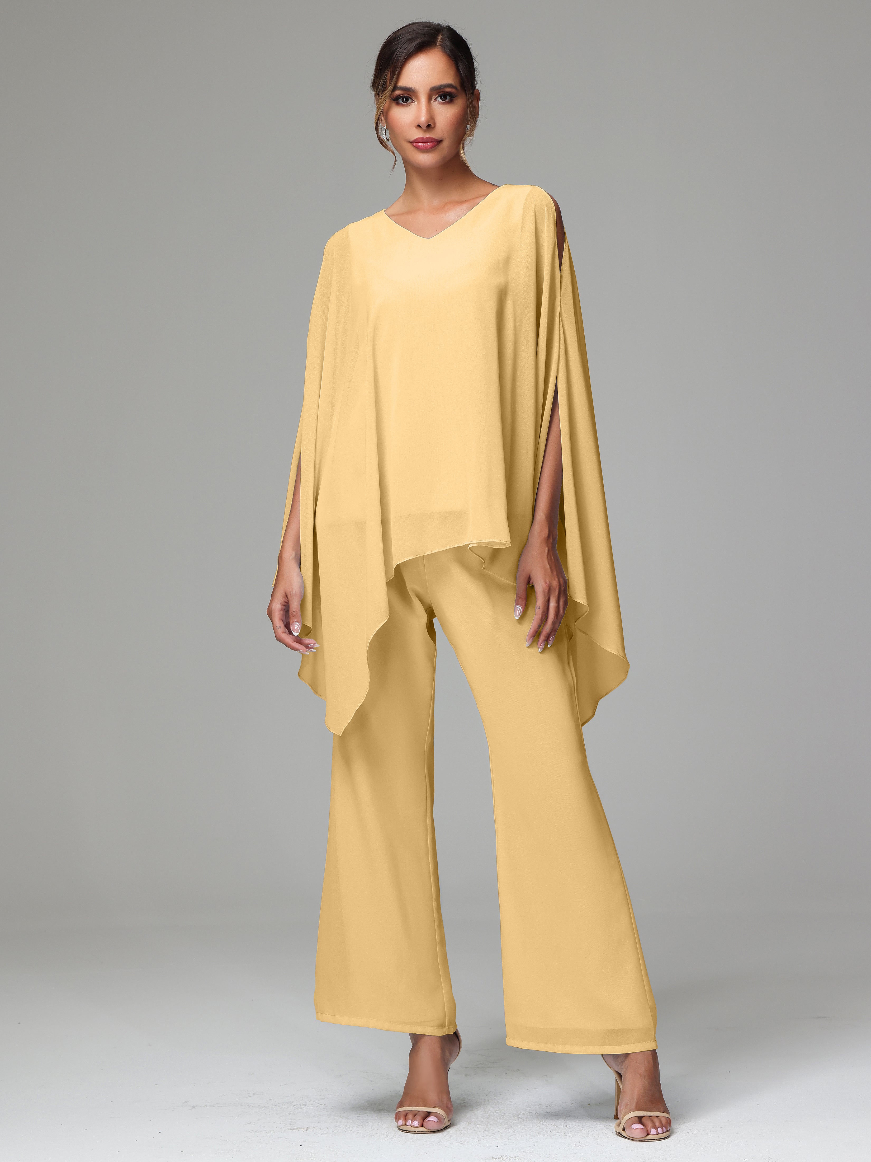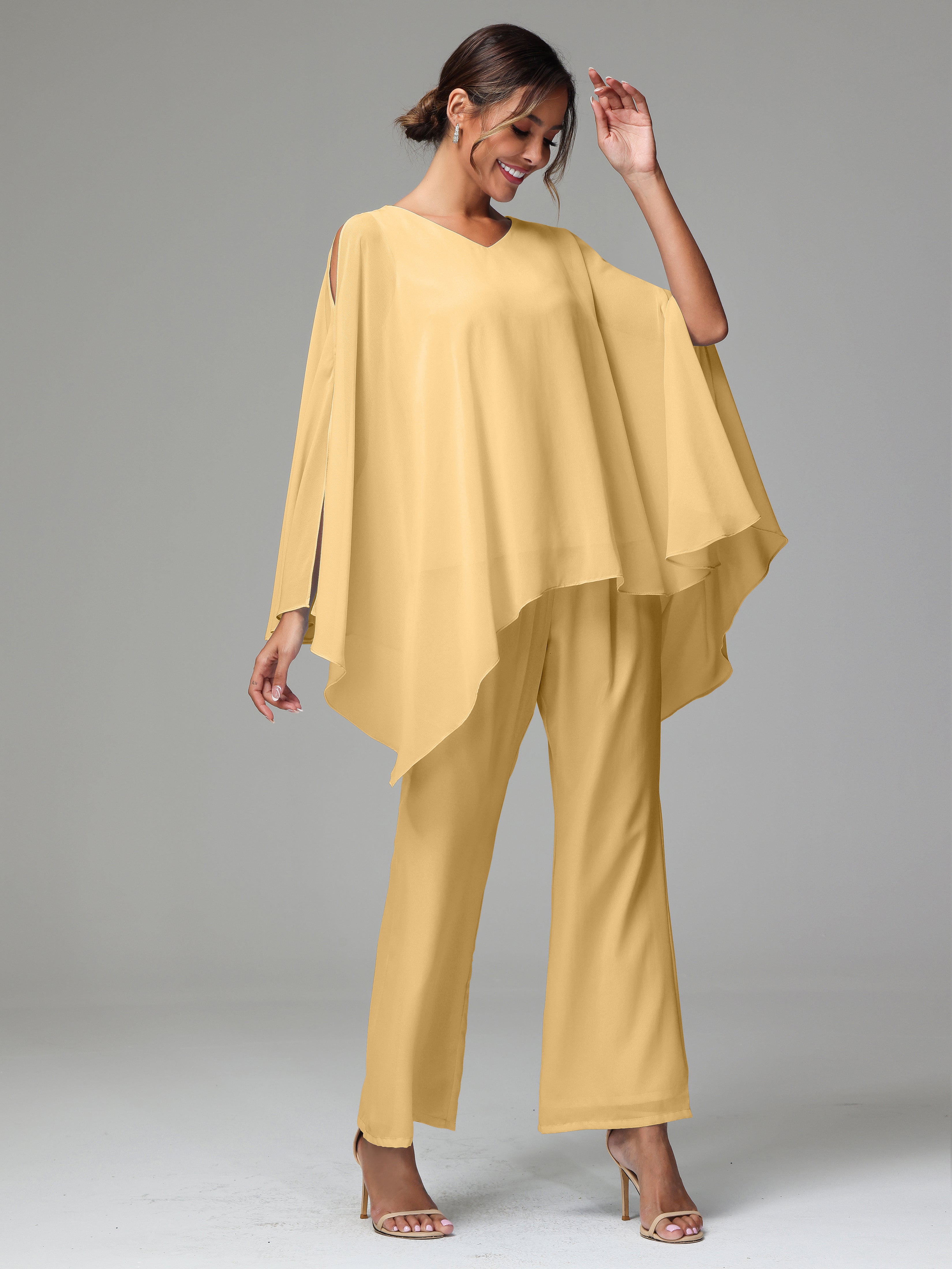 2 Pieces Flowy Split Sleeves Chiffon Mother Of The Bride Dress Pants Suits