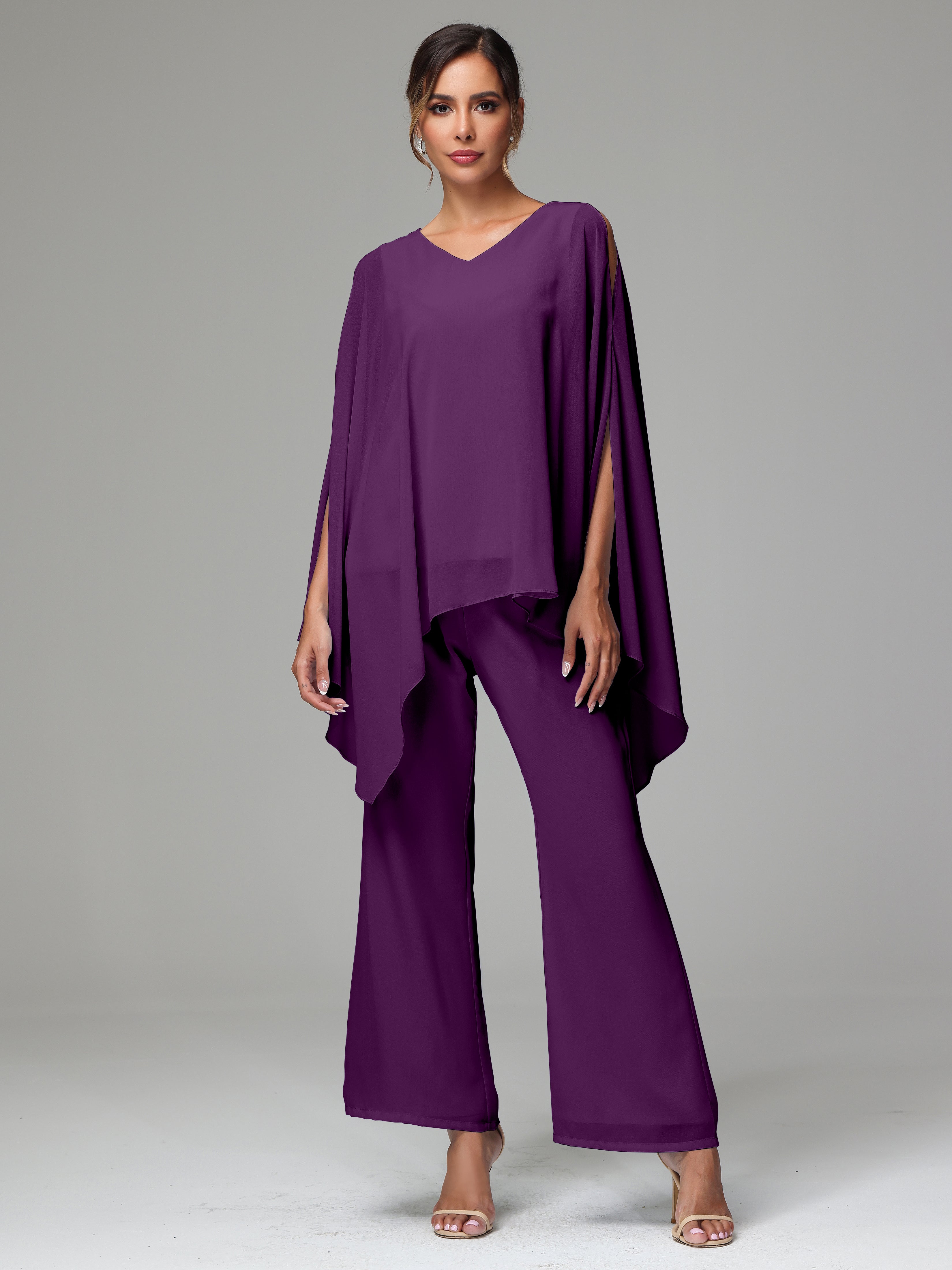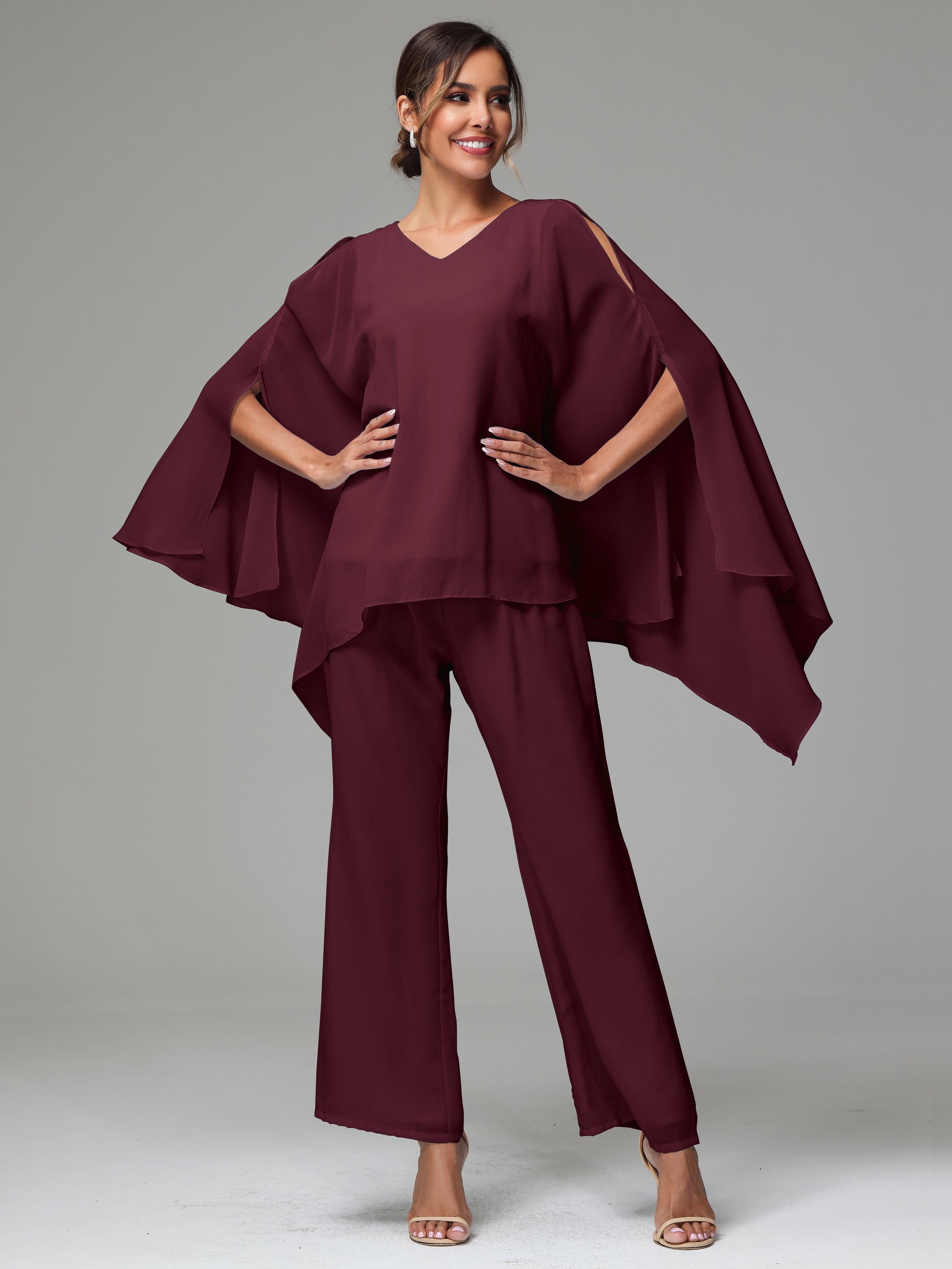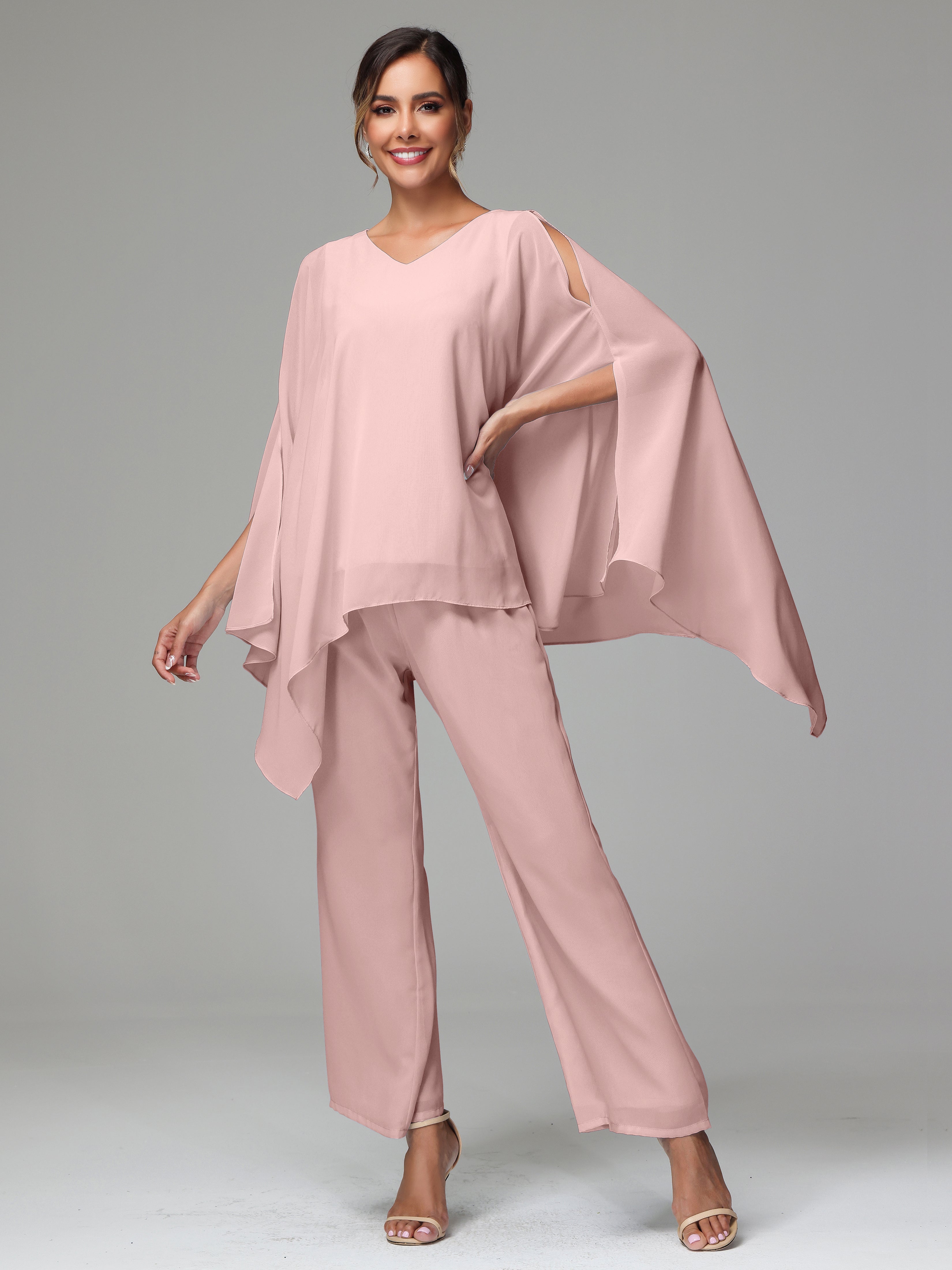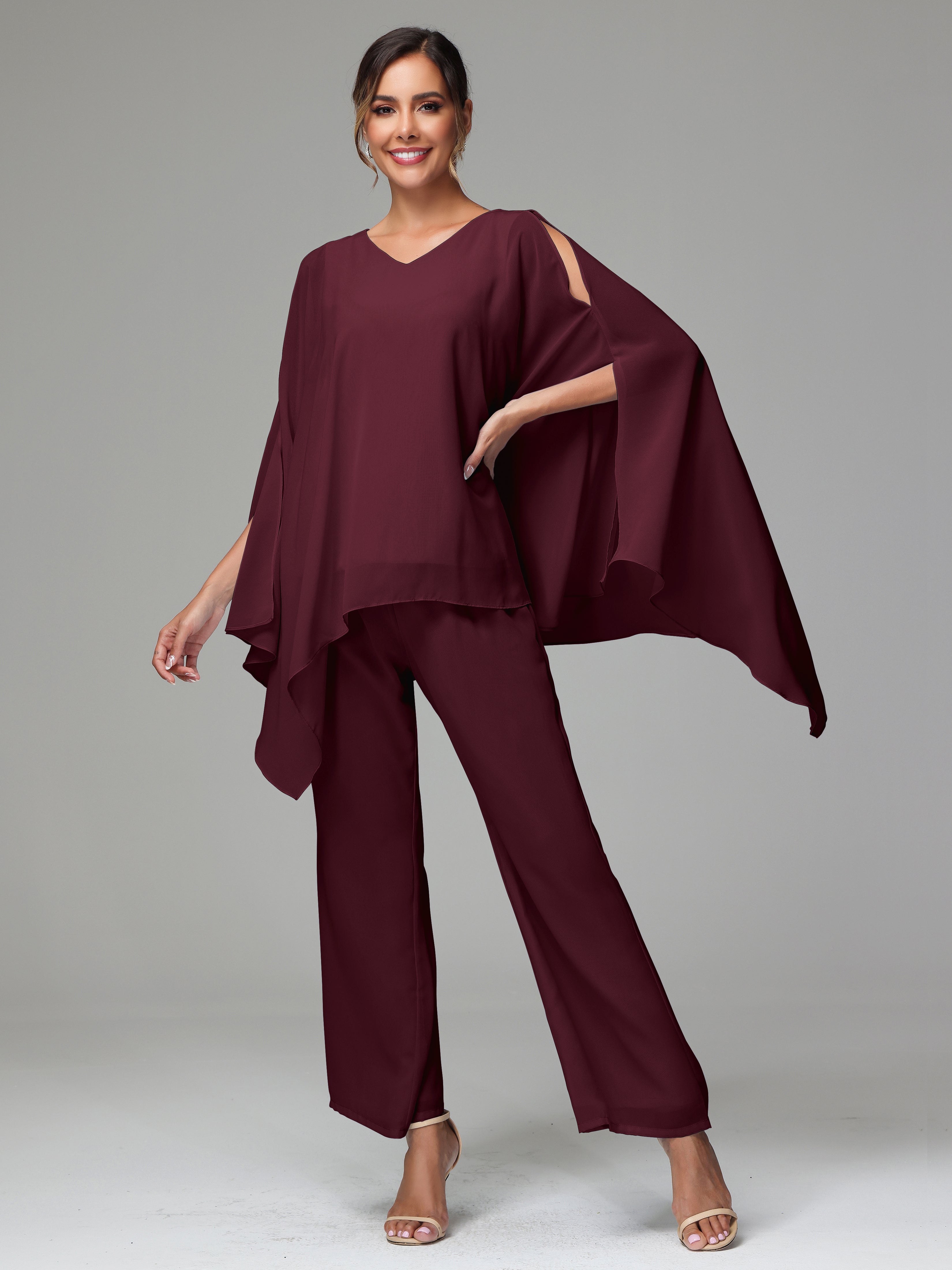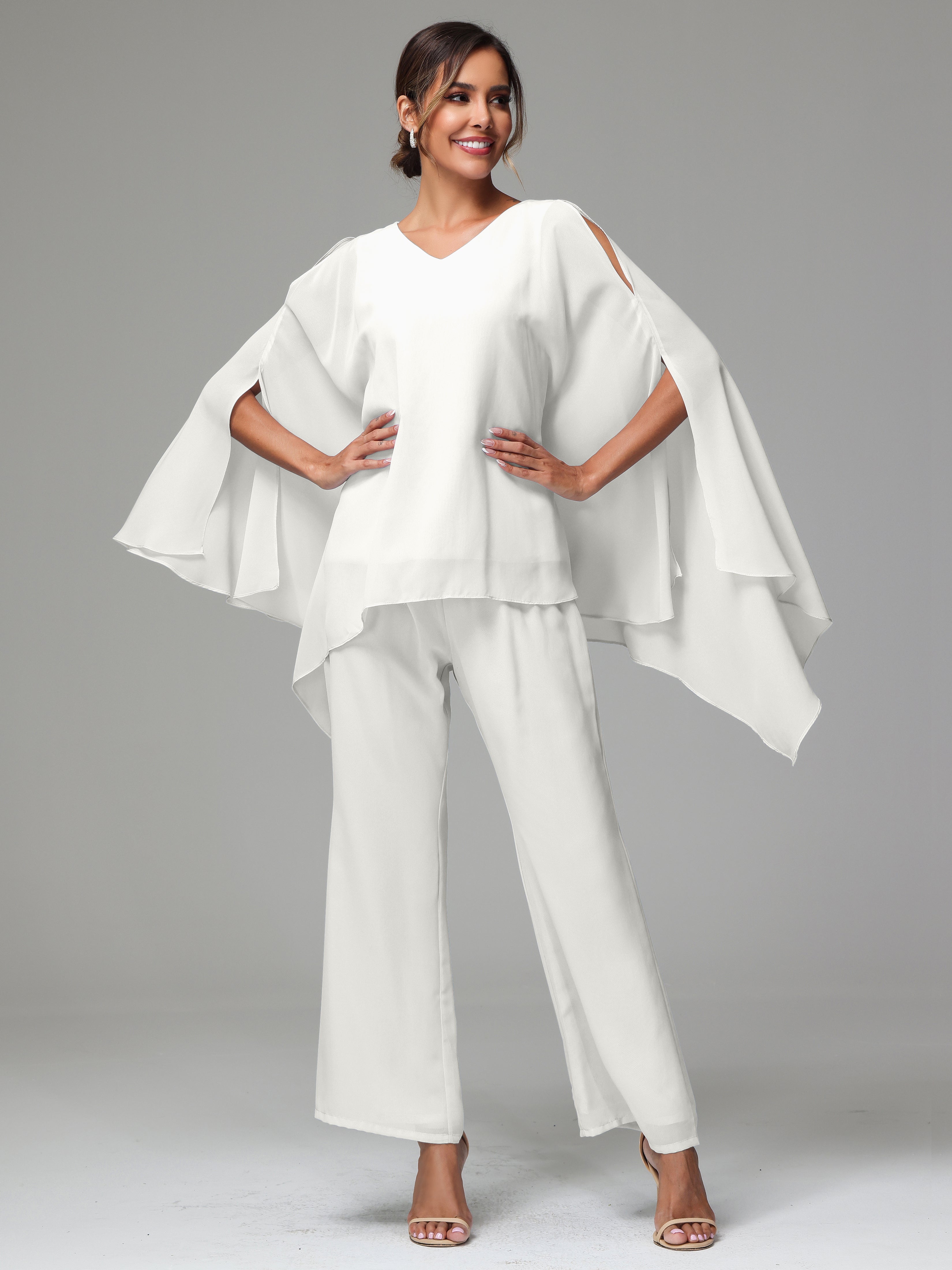 2 Pieces Flowy Split Sleeves Chiffon Mother Of The Bride Dress Pants Suits