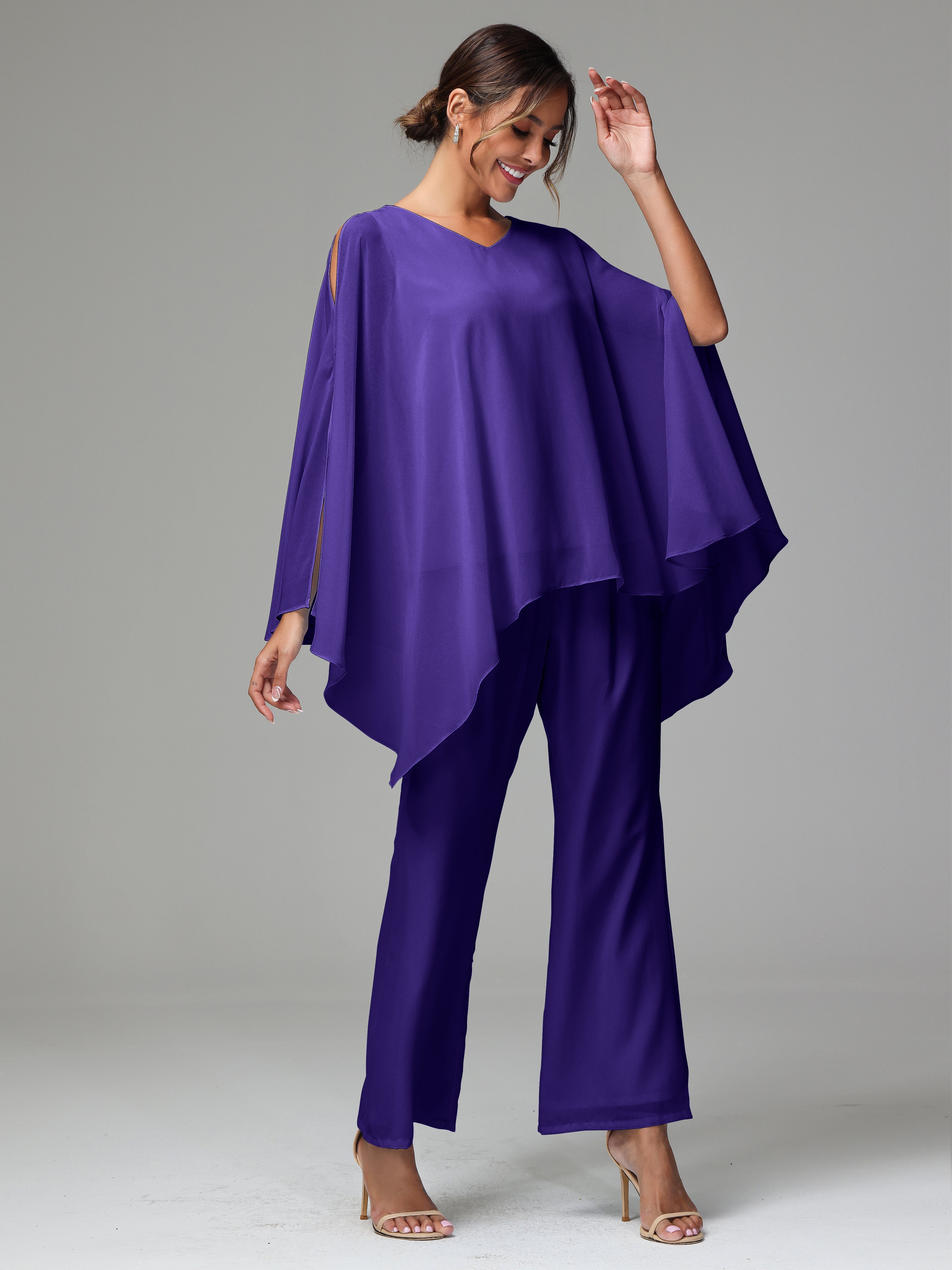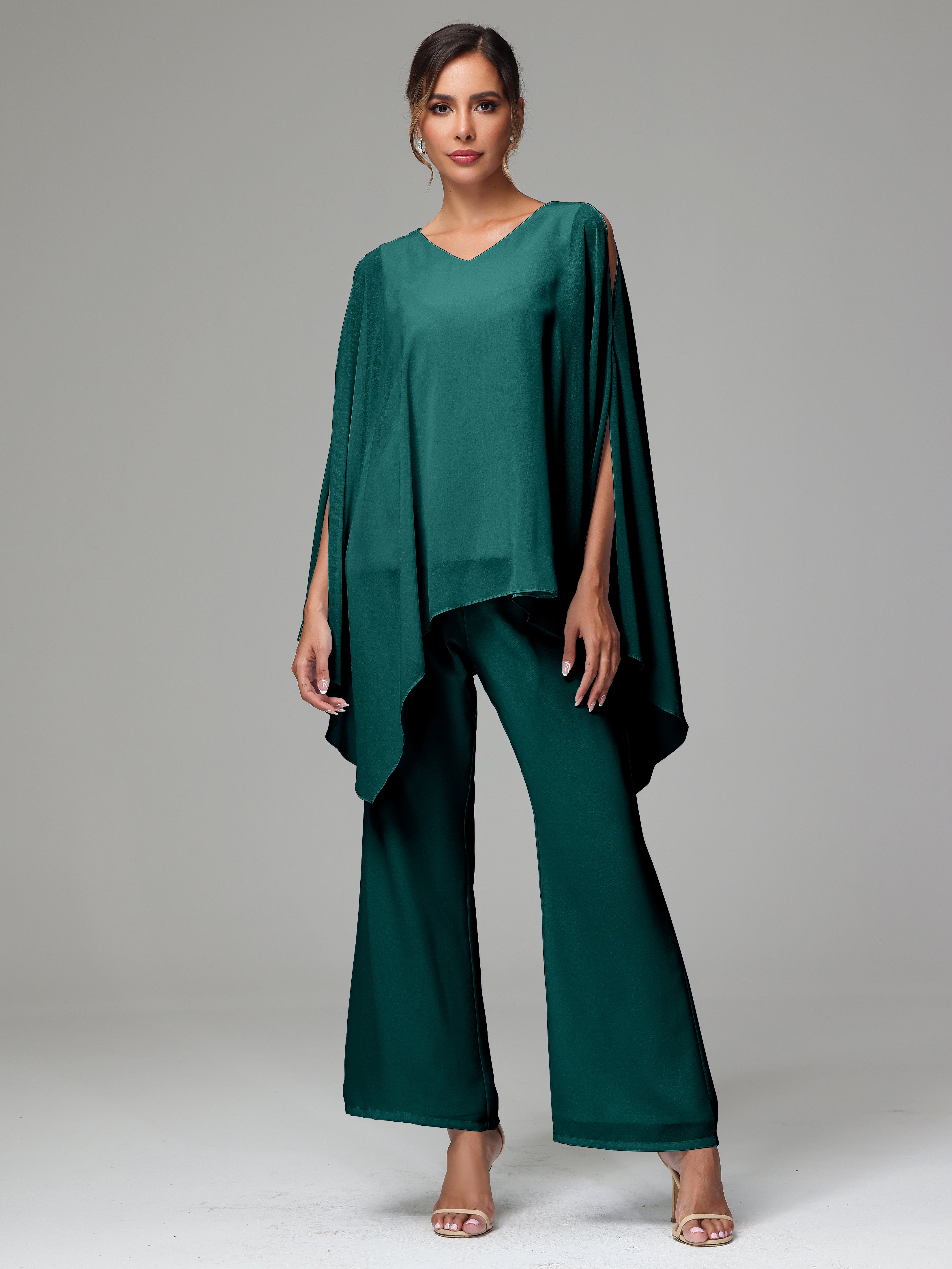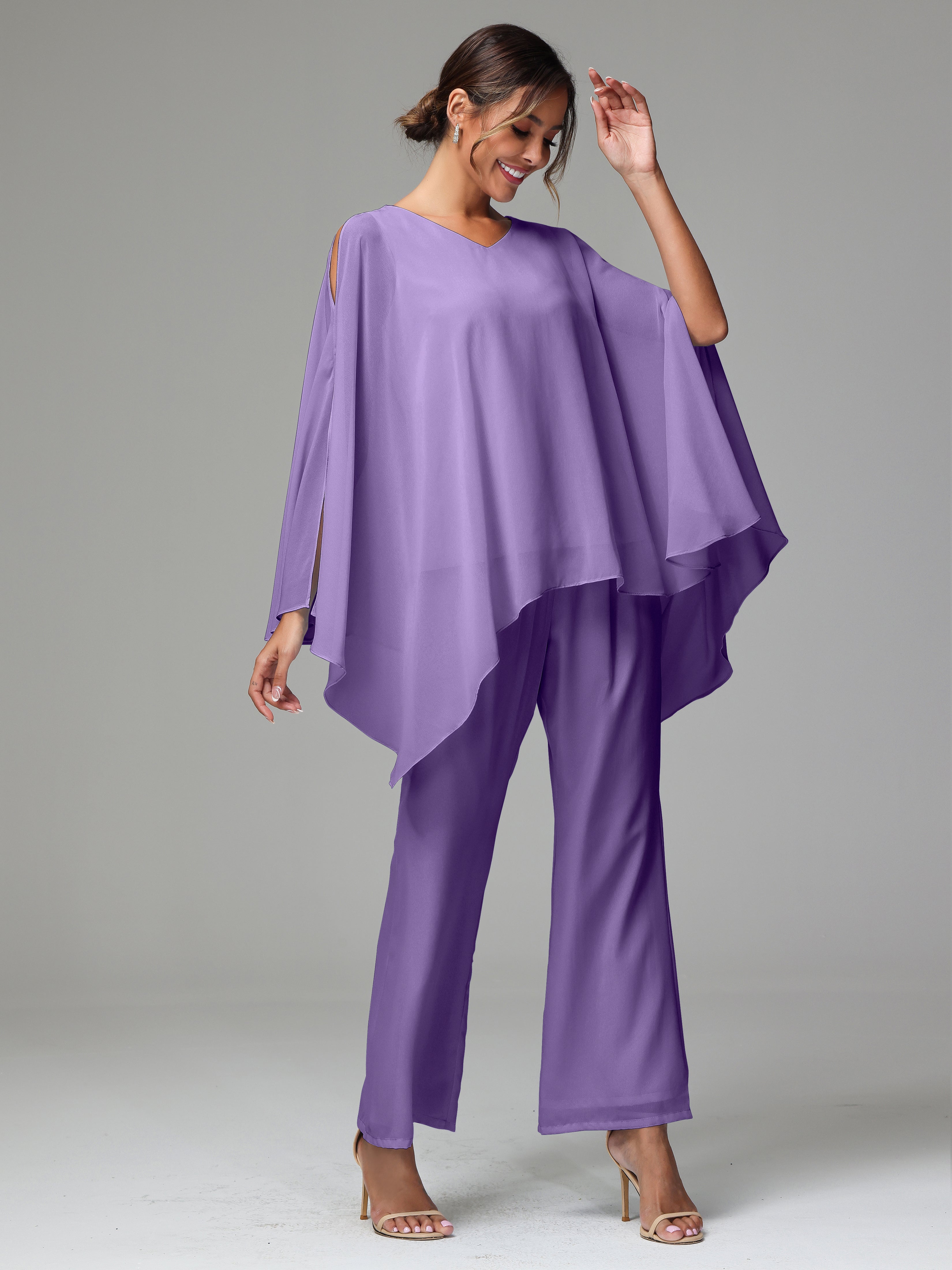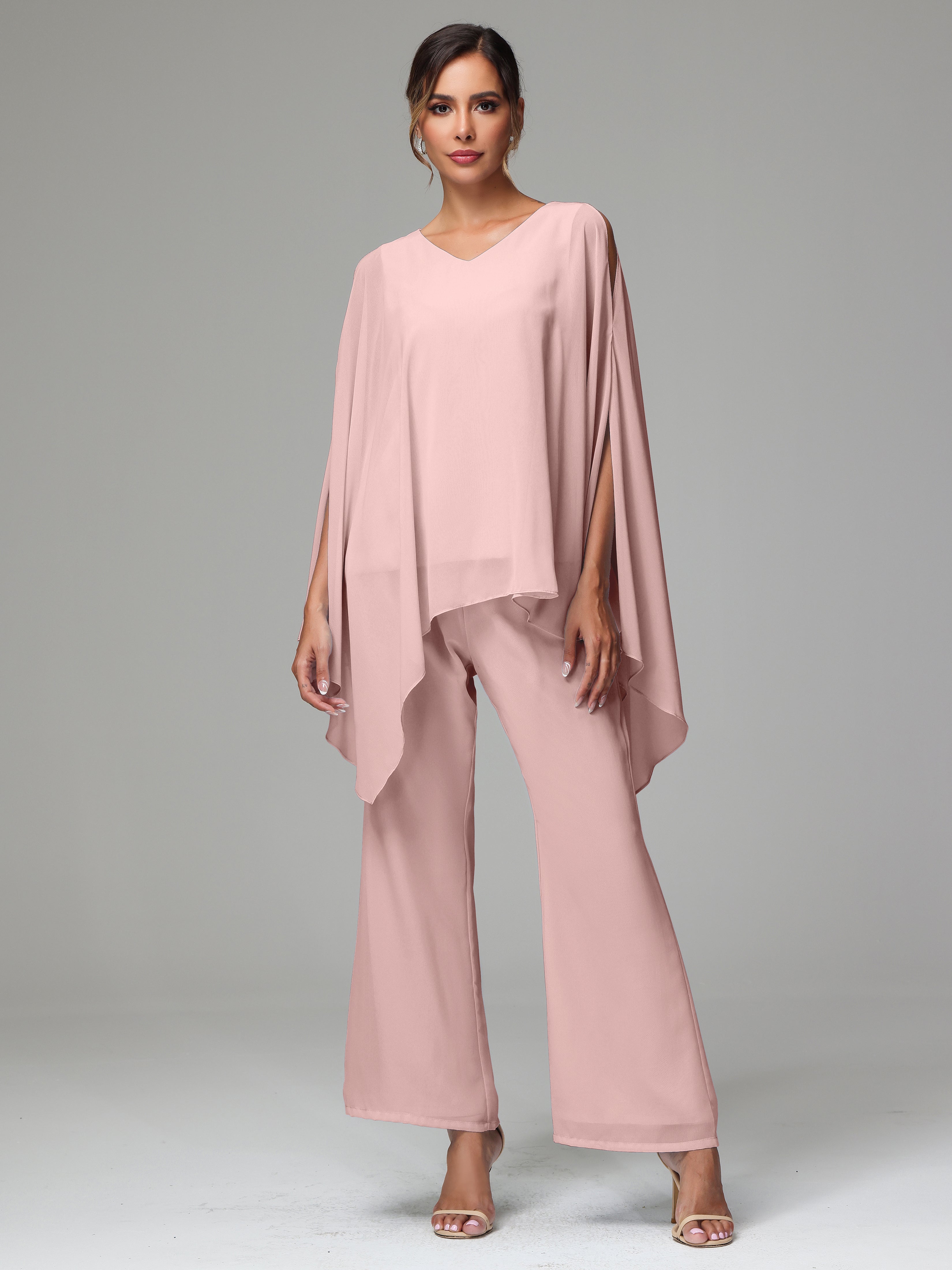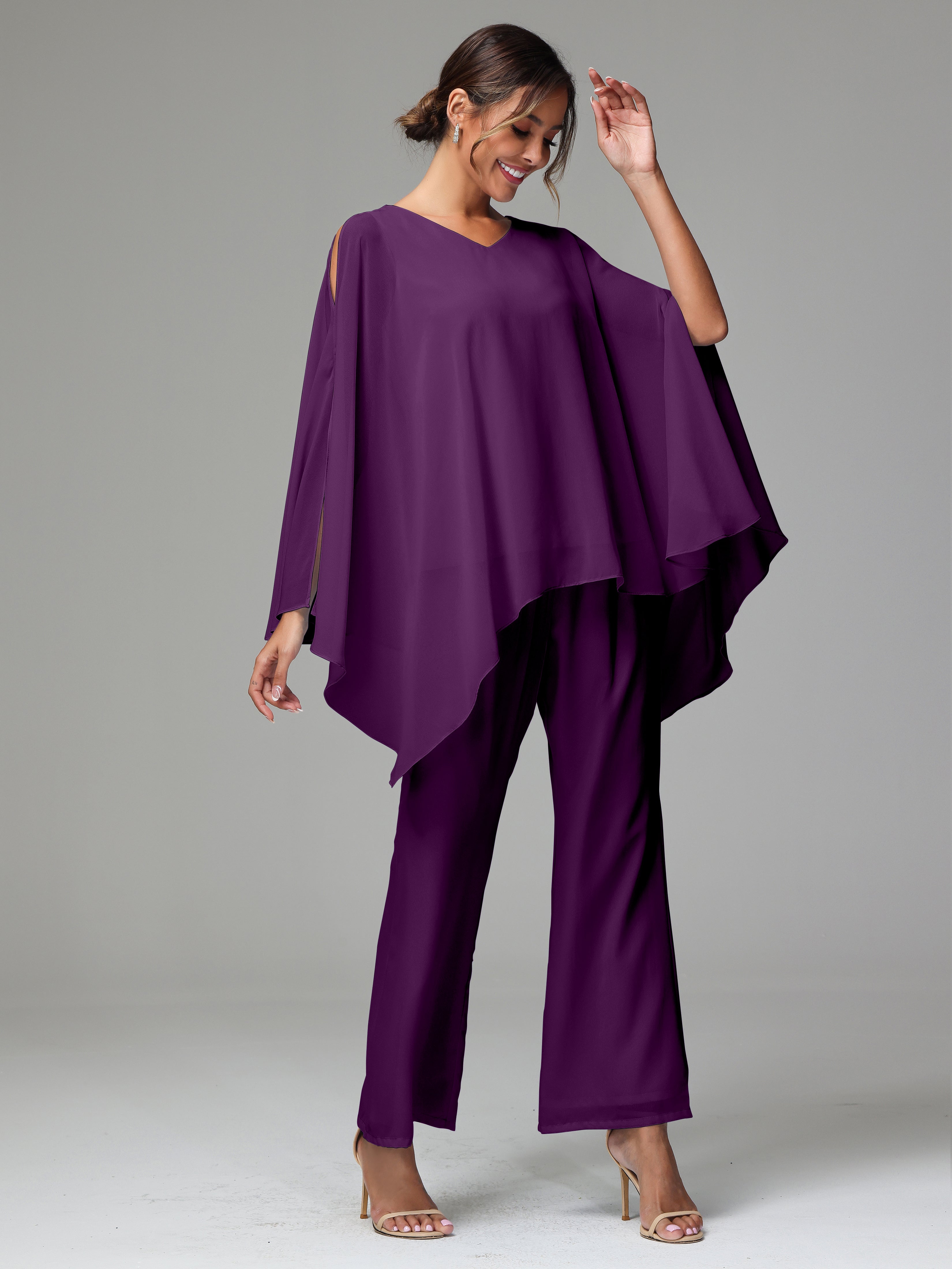 2 Pieces Flowy Split Sleeves Chiffon Mother Of The Bride Dress Pants Suits