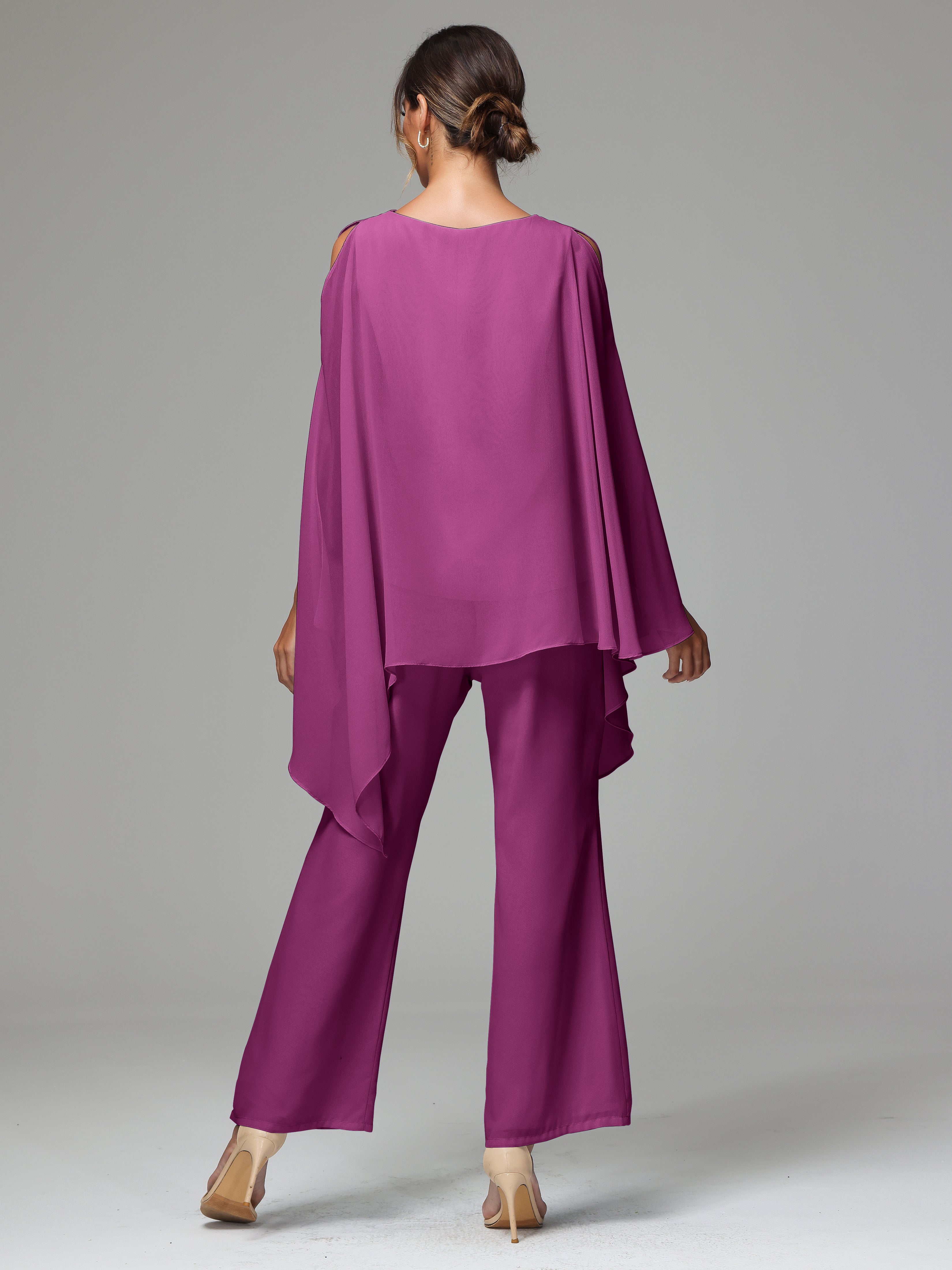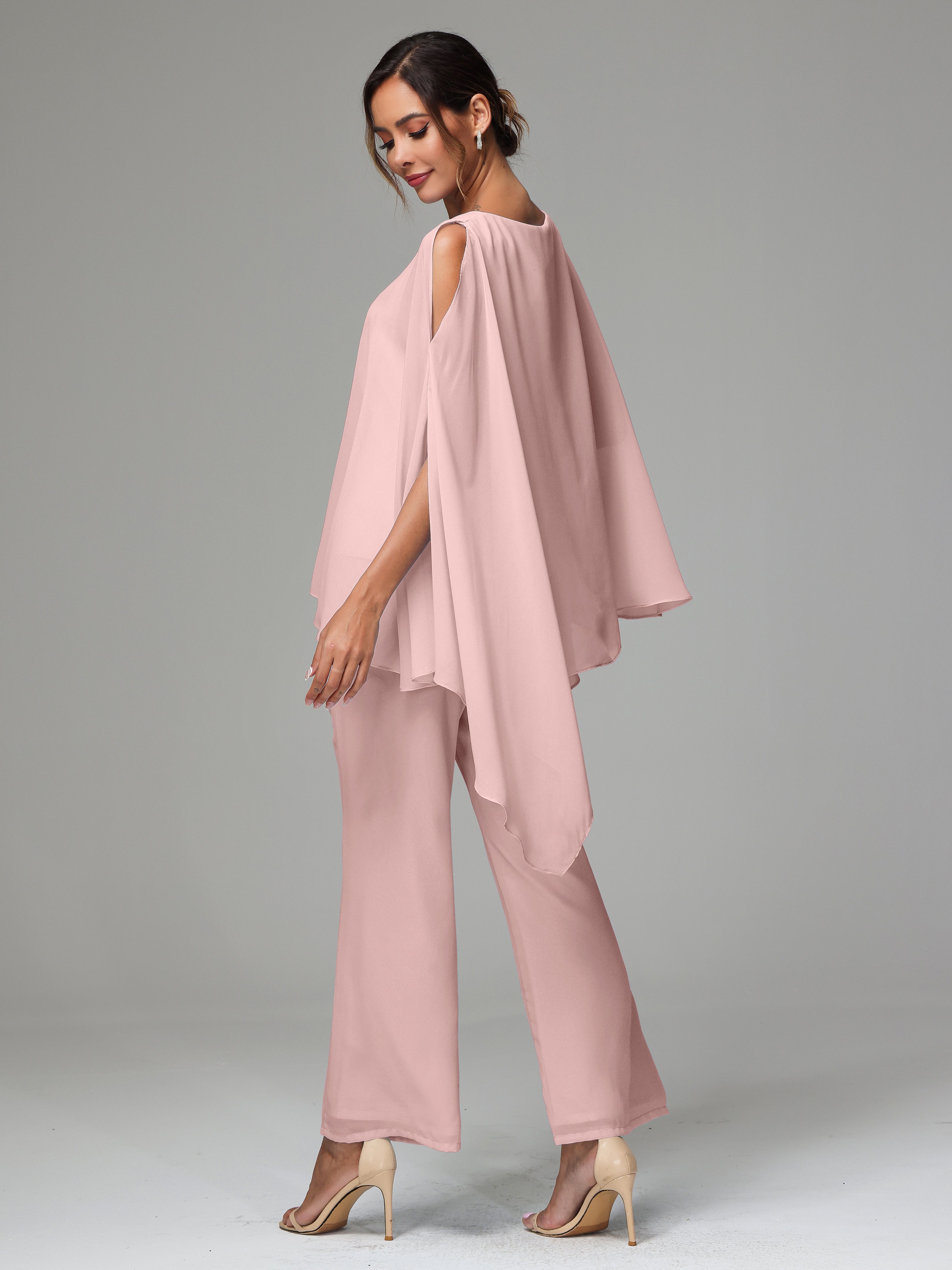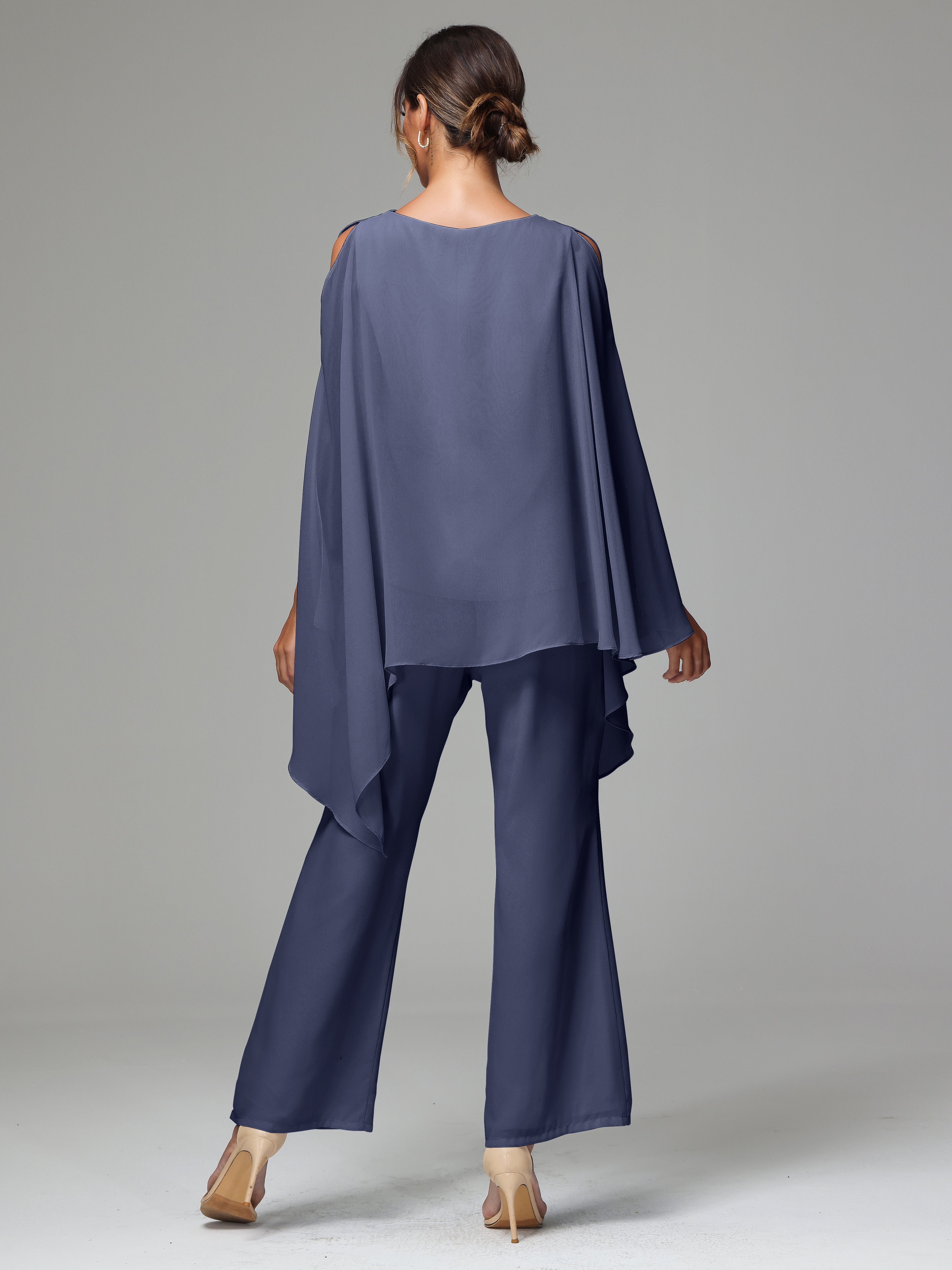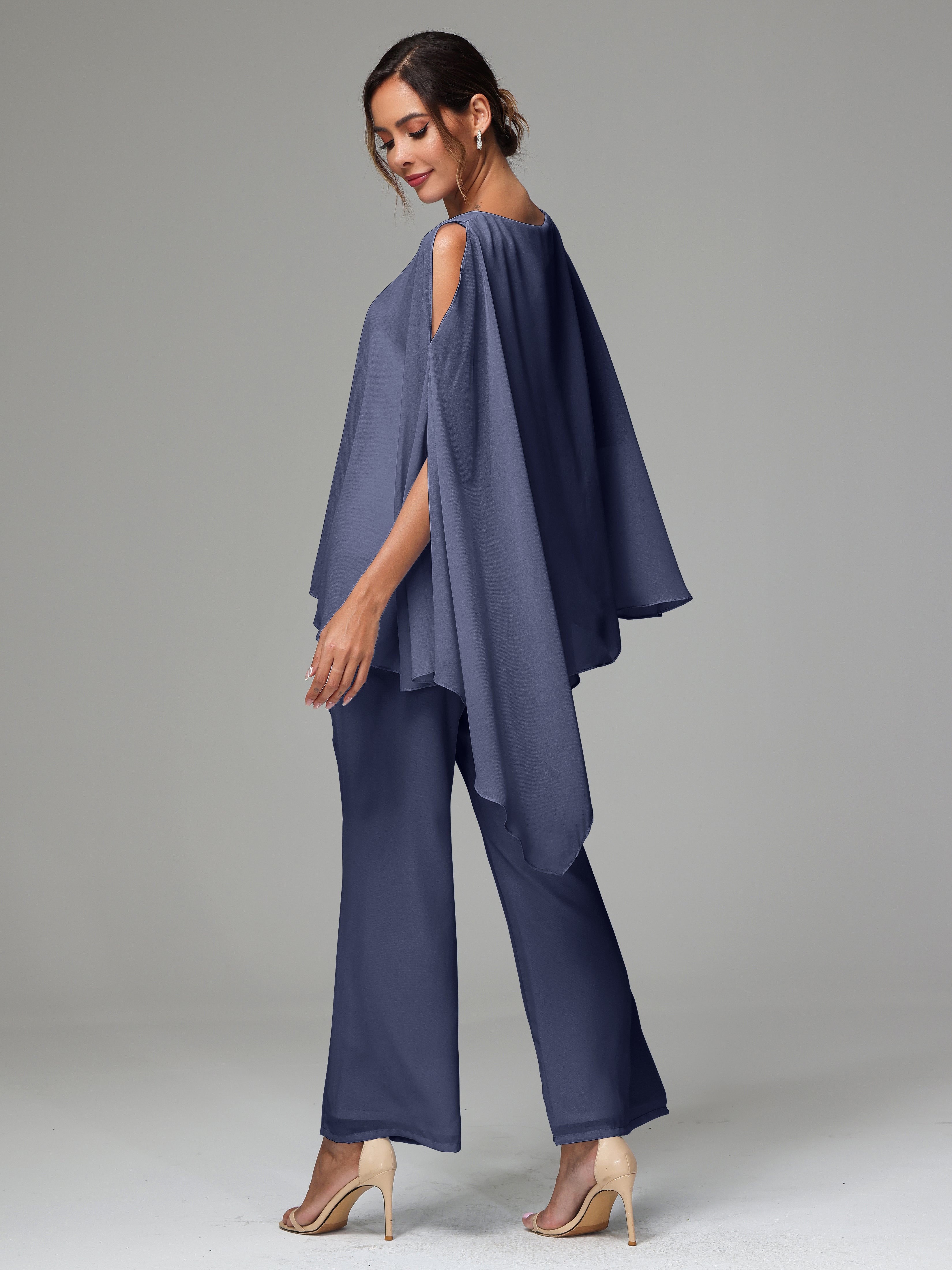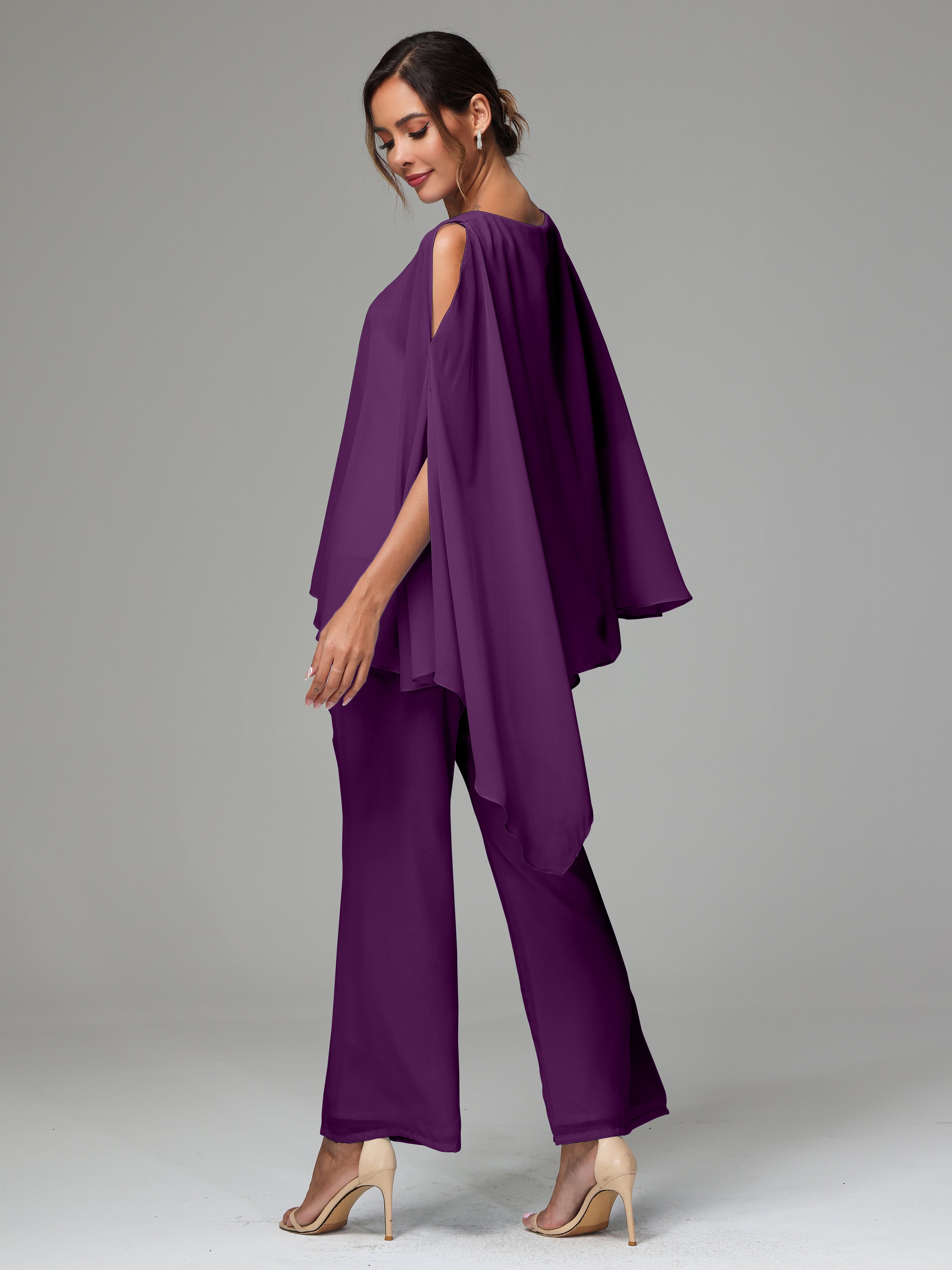 2 Pieces Flowy Split Sleeves Chiffon Mother Of The Bride Dress Pants Suits