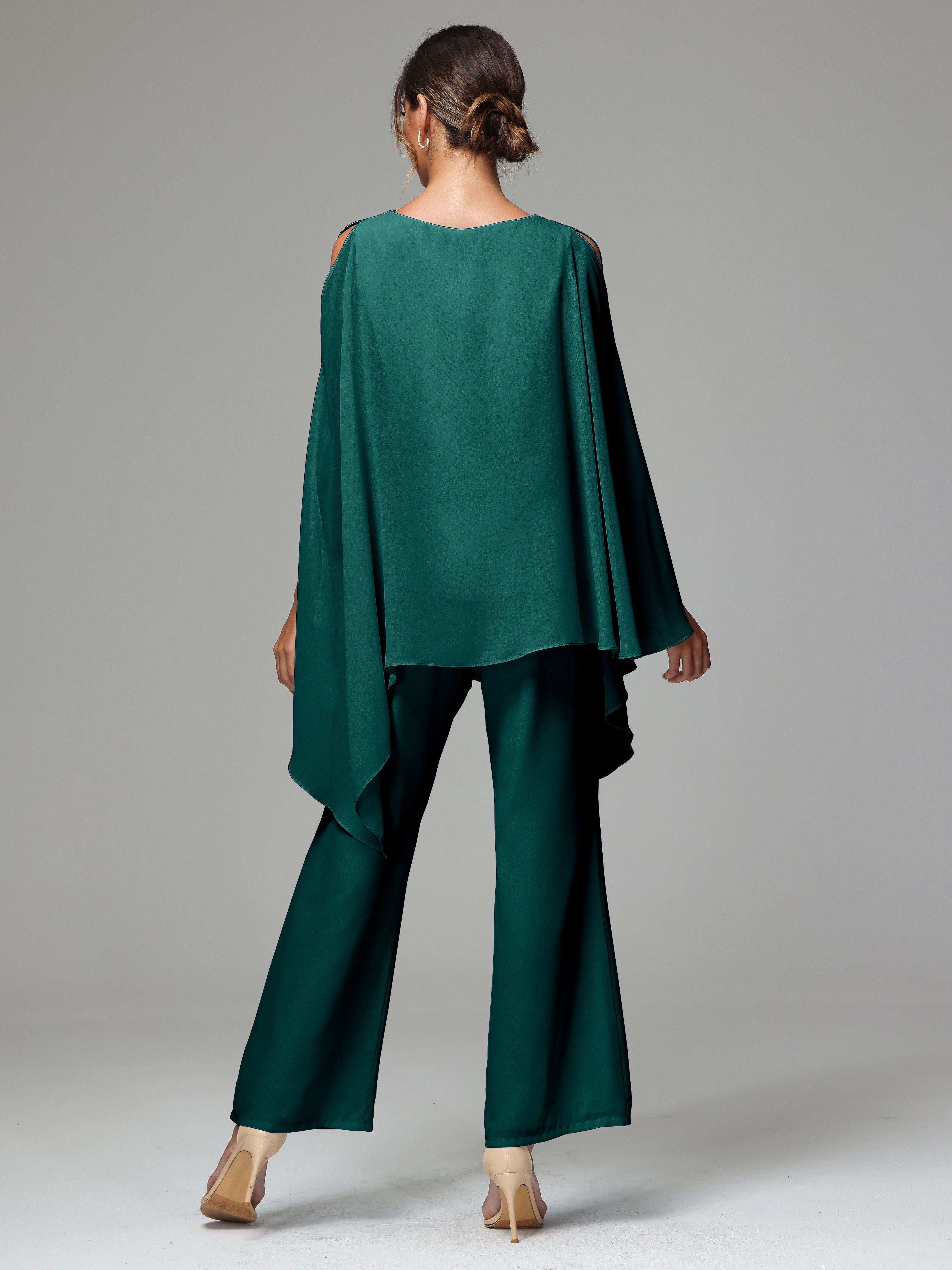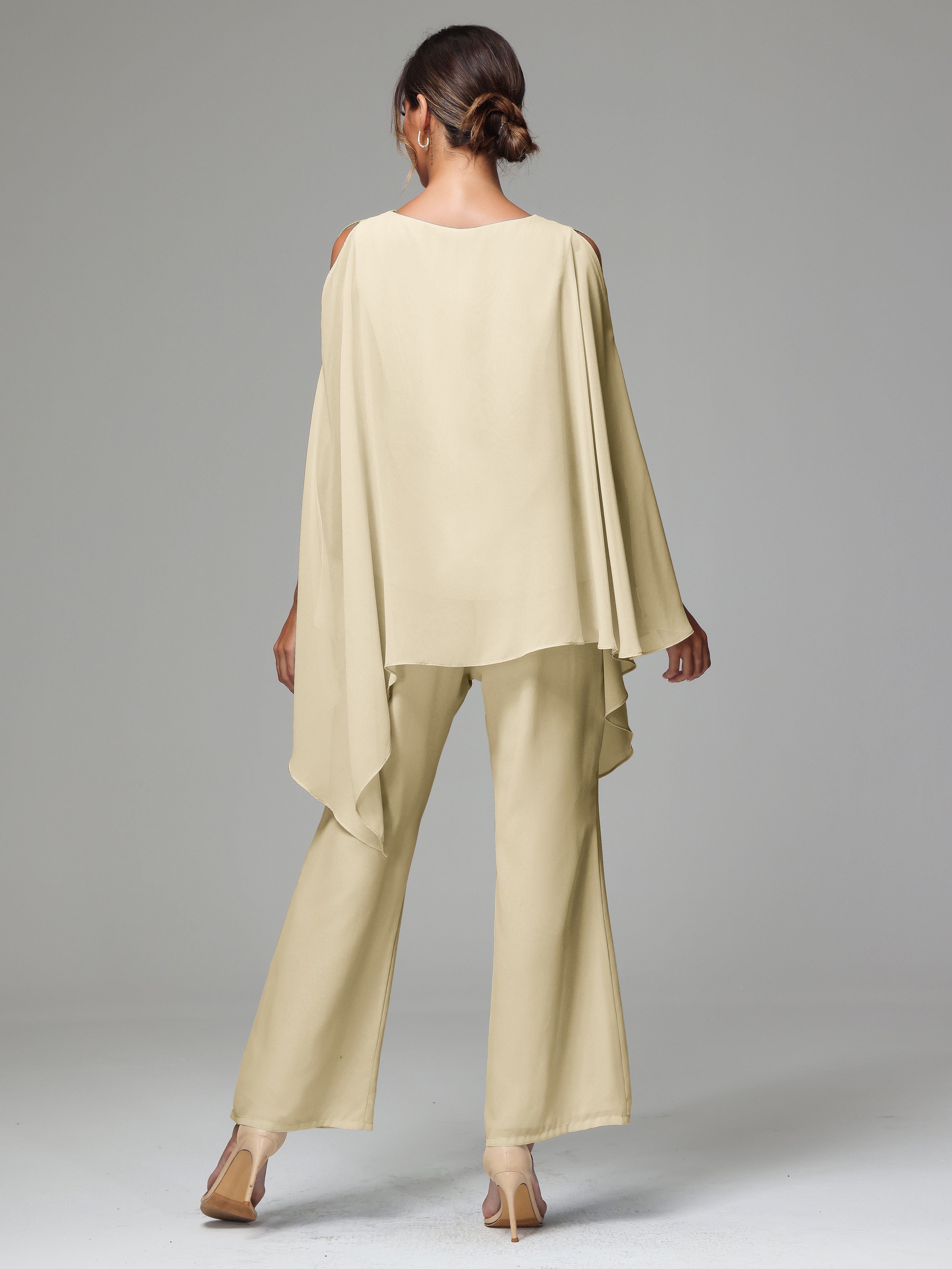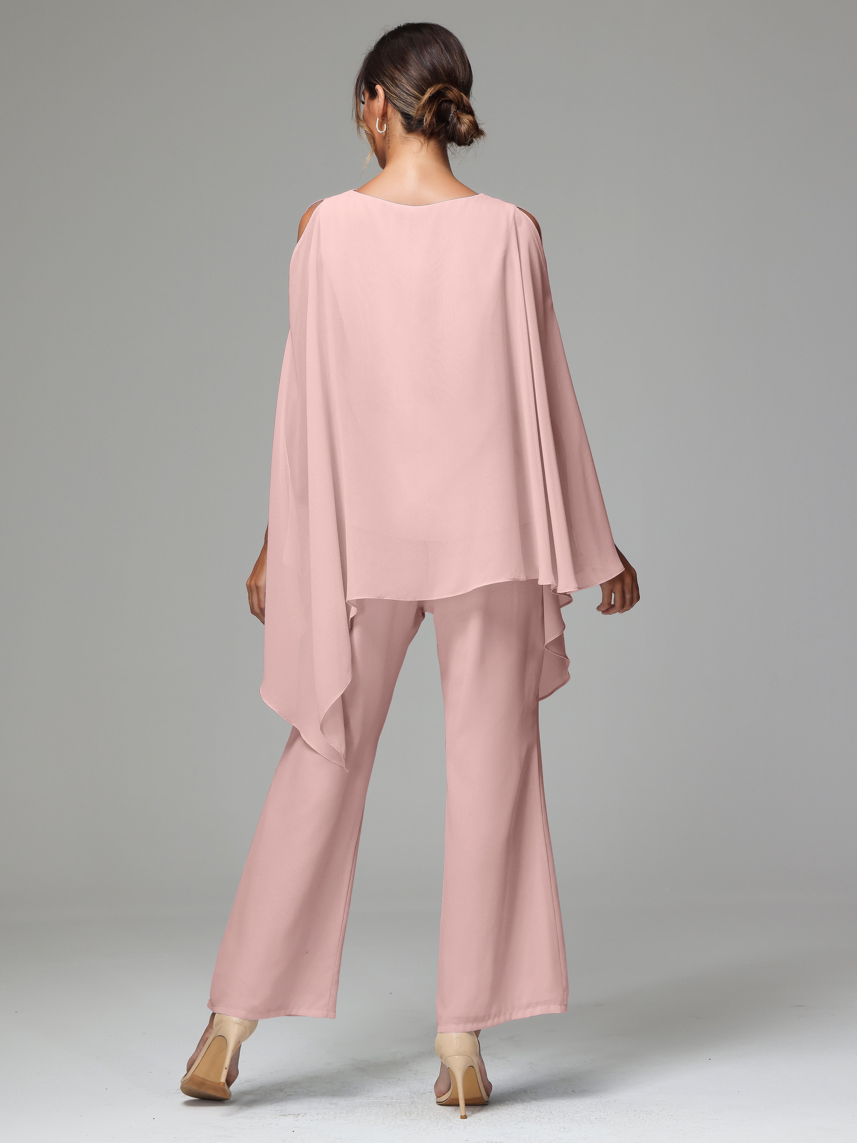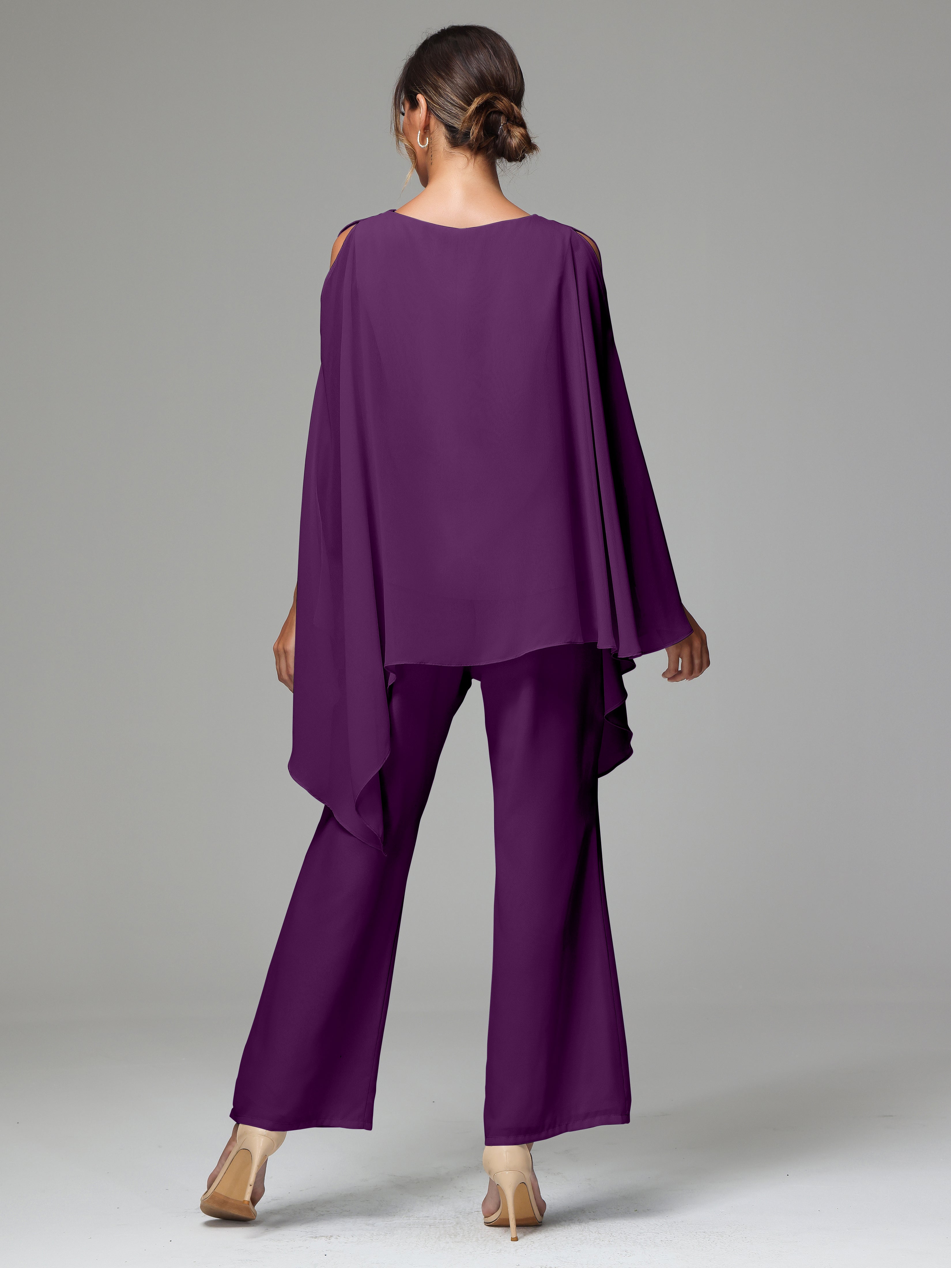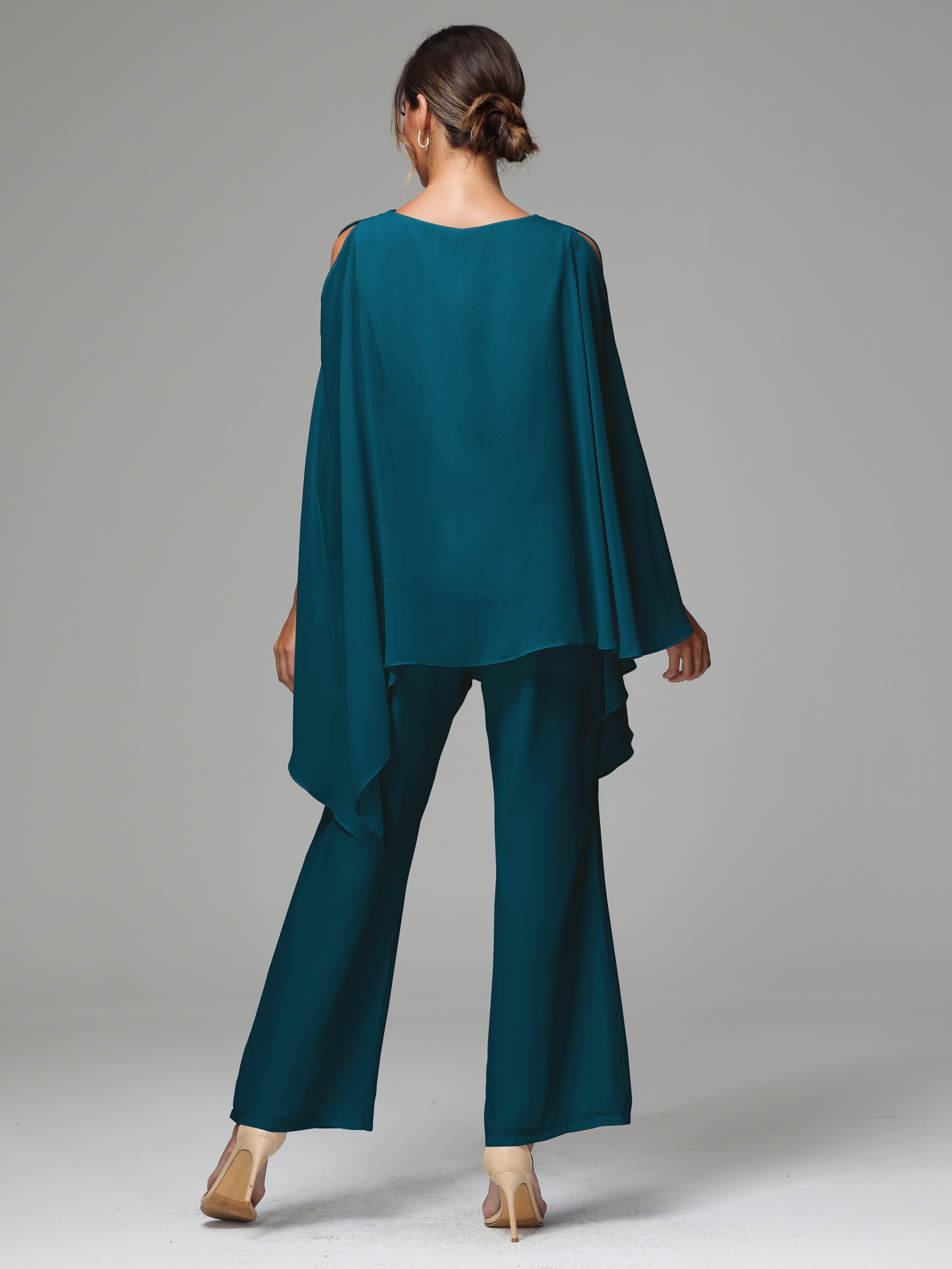 2 Pieces Flowy Split Sleeves Chiffon Mother Of The Bride Dress Pants Suits