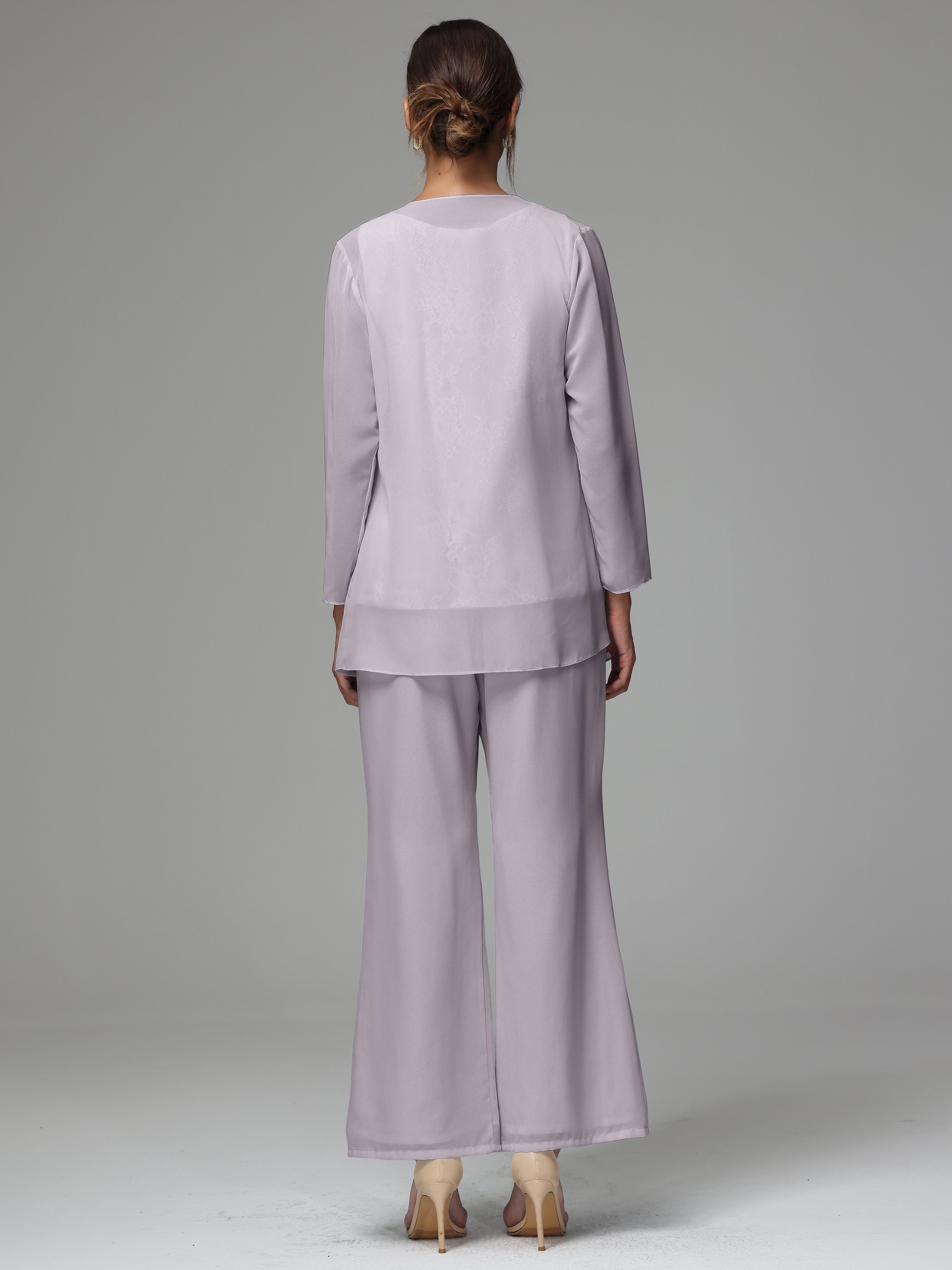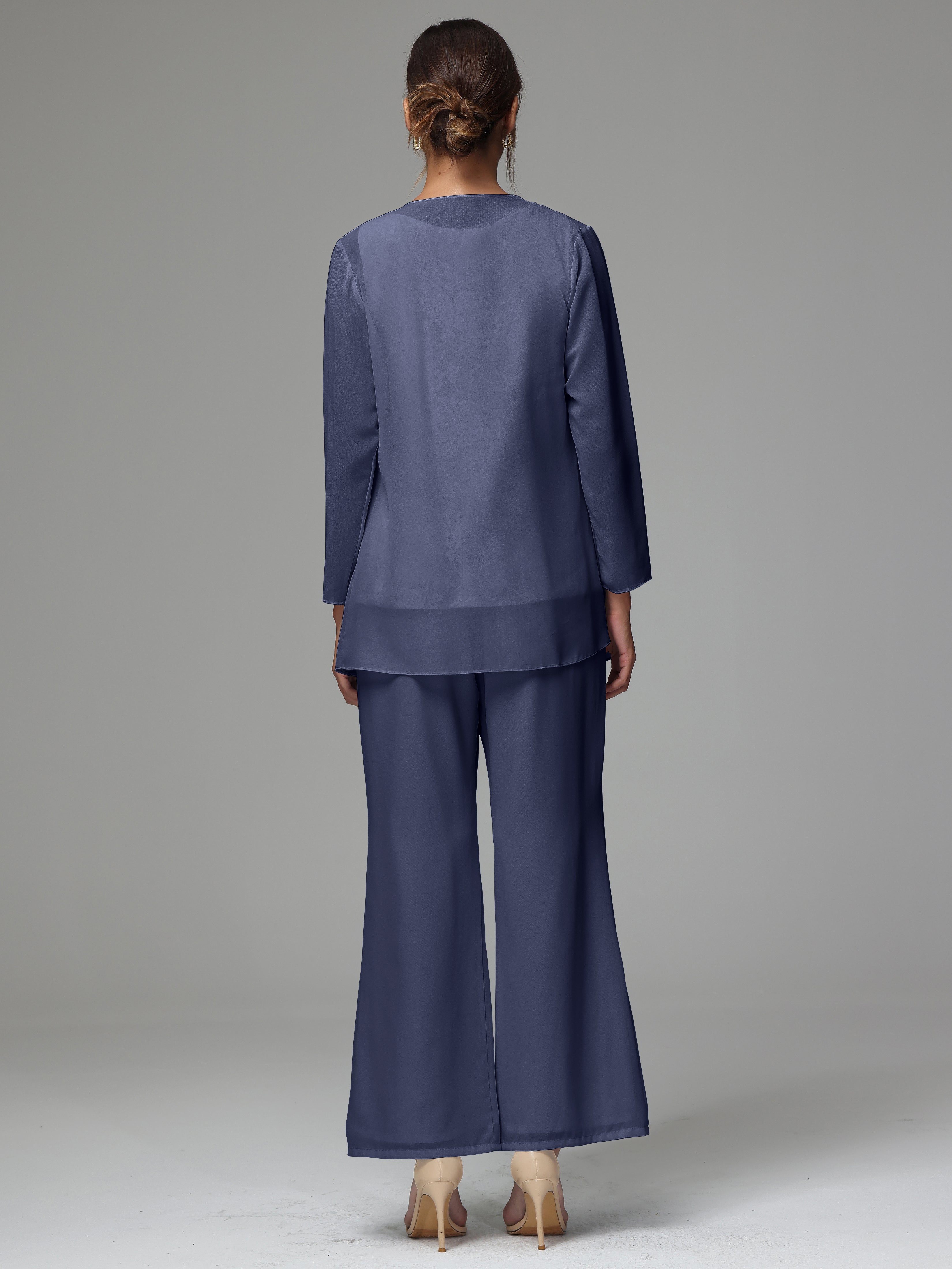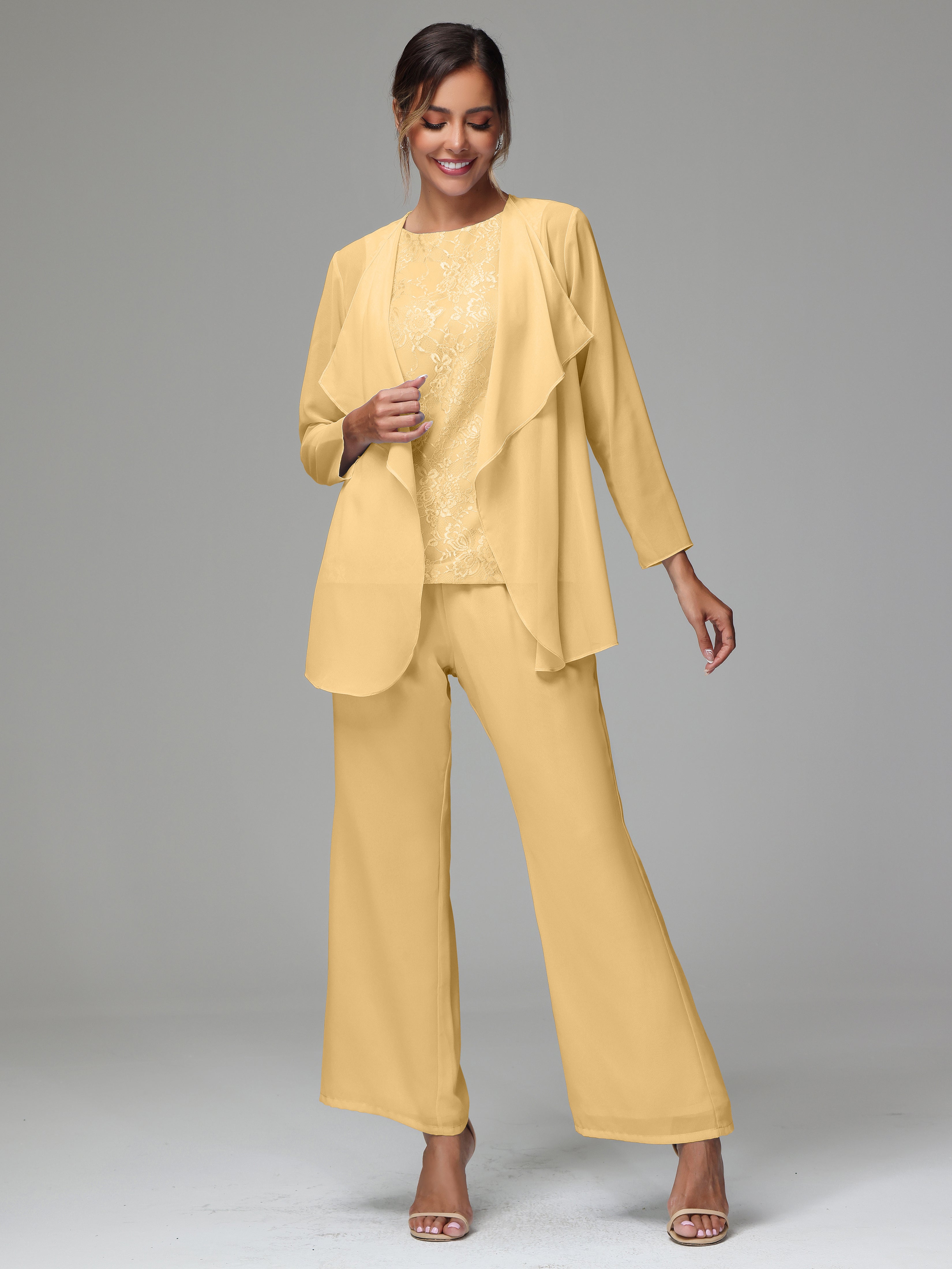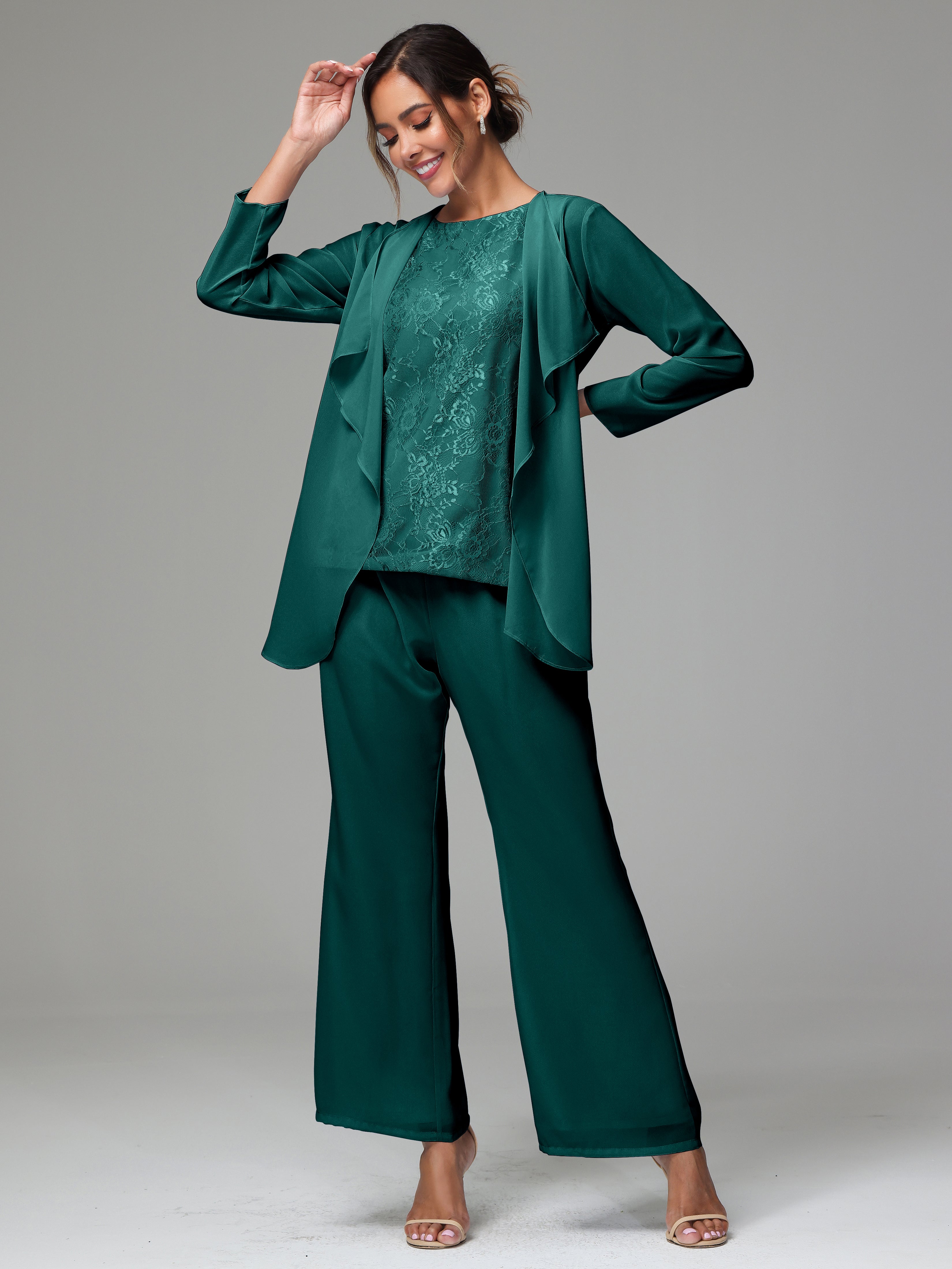 3 Pieces Long Sleeves Chiffon Lace Mother Of The Bride Dress Pants Suits