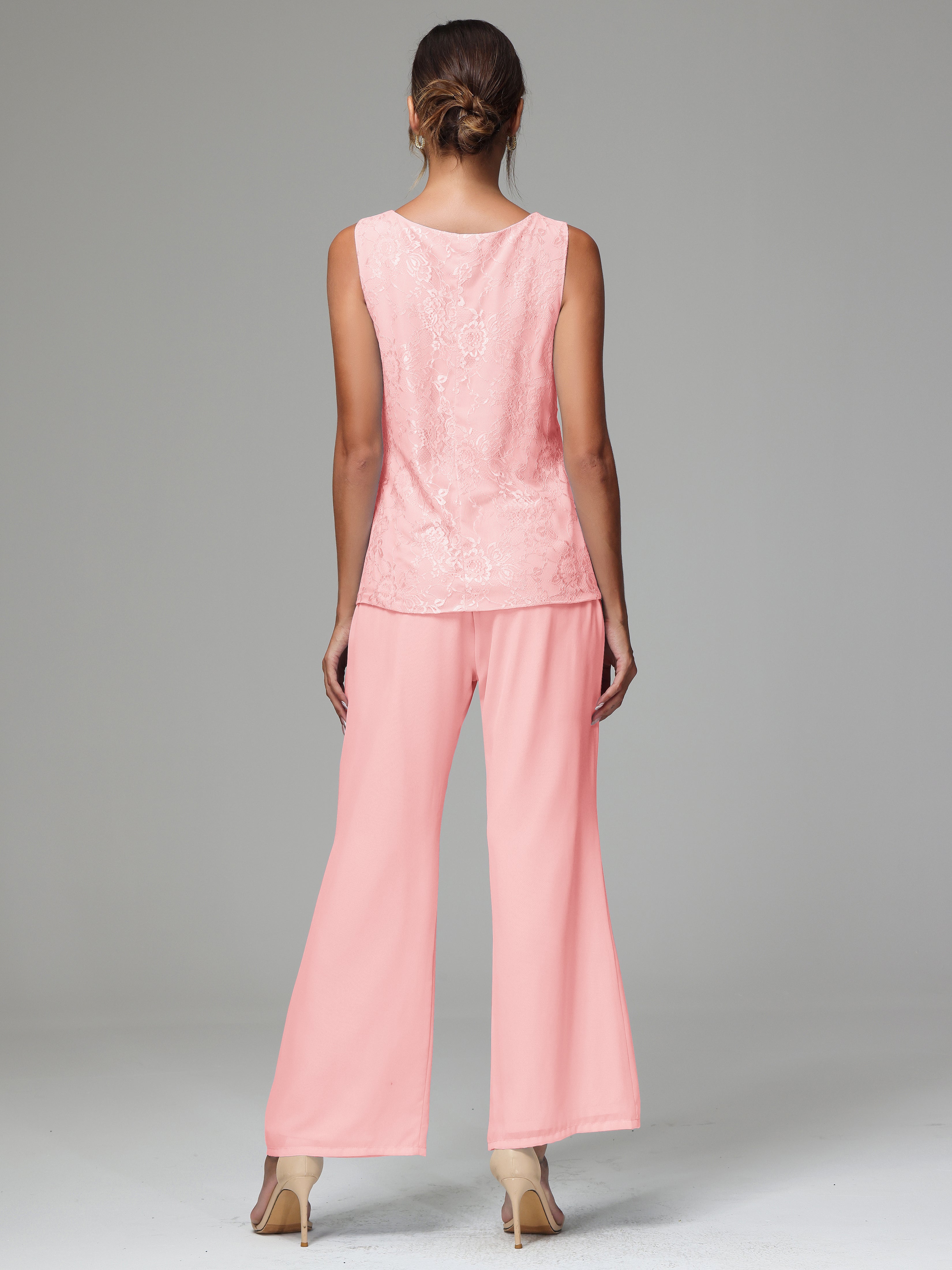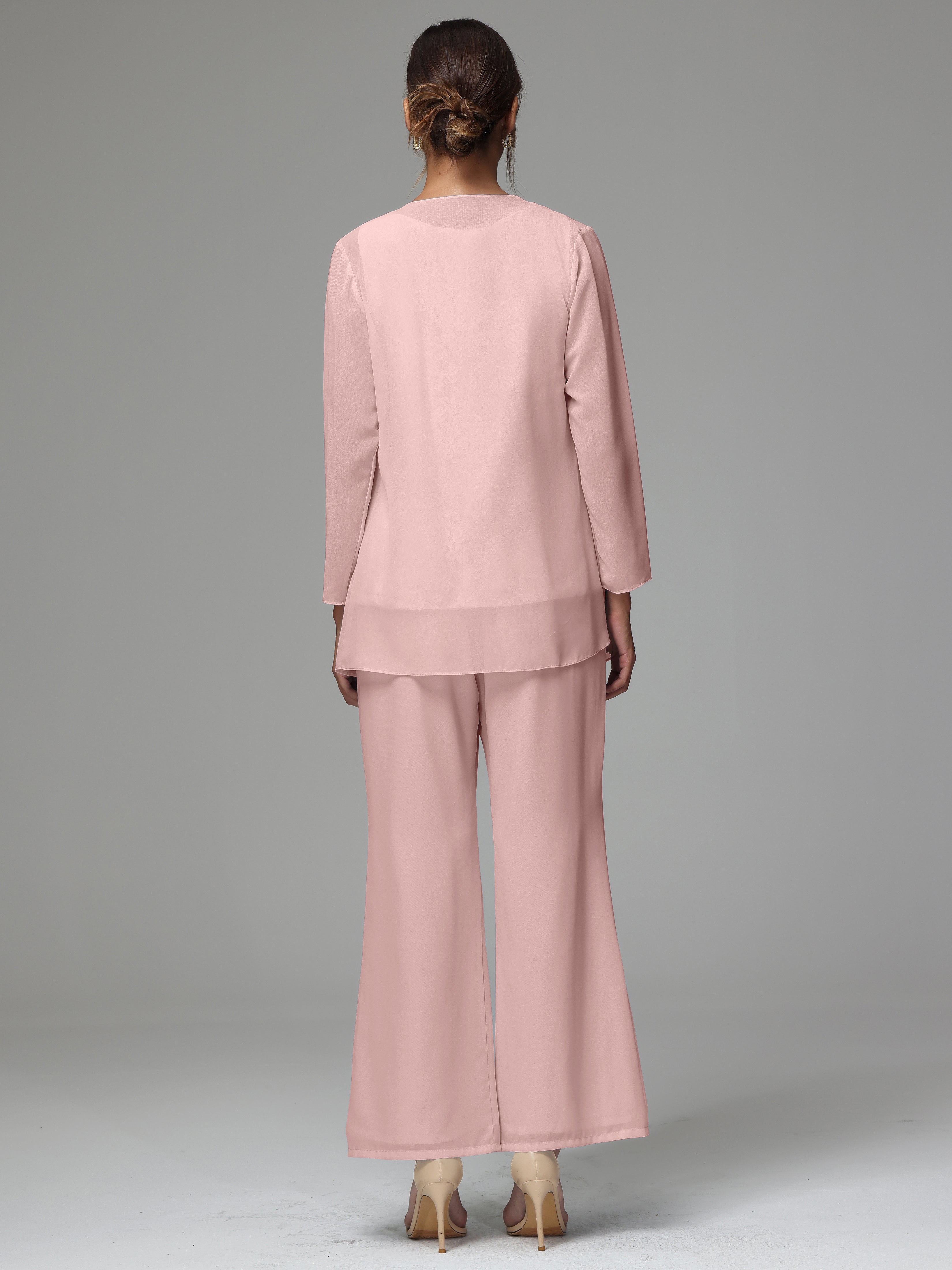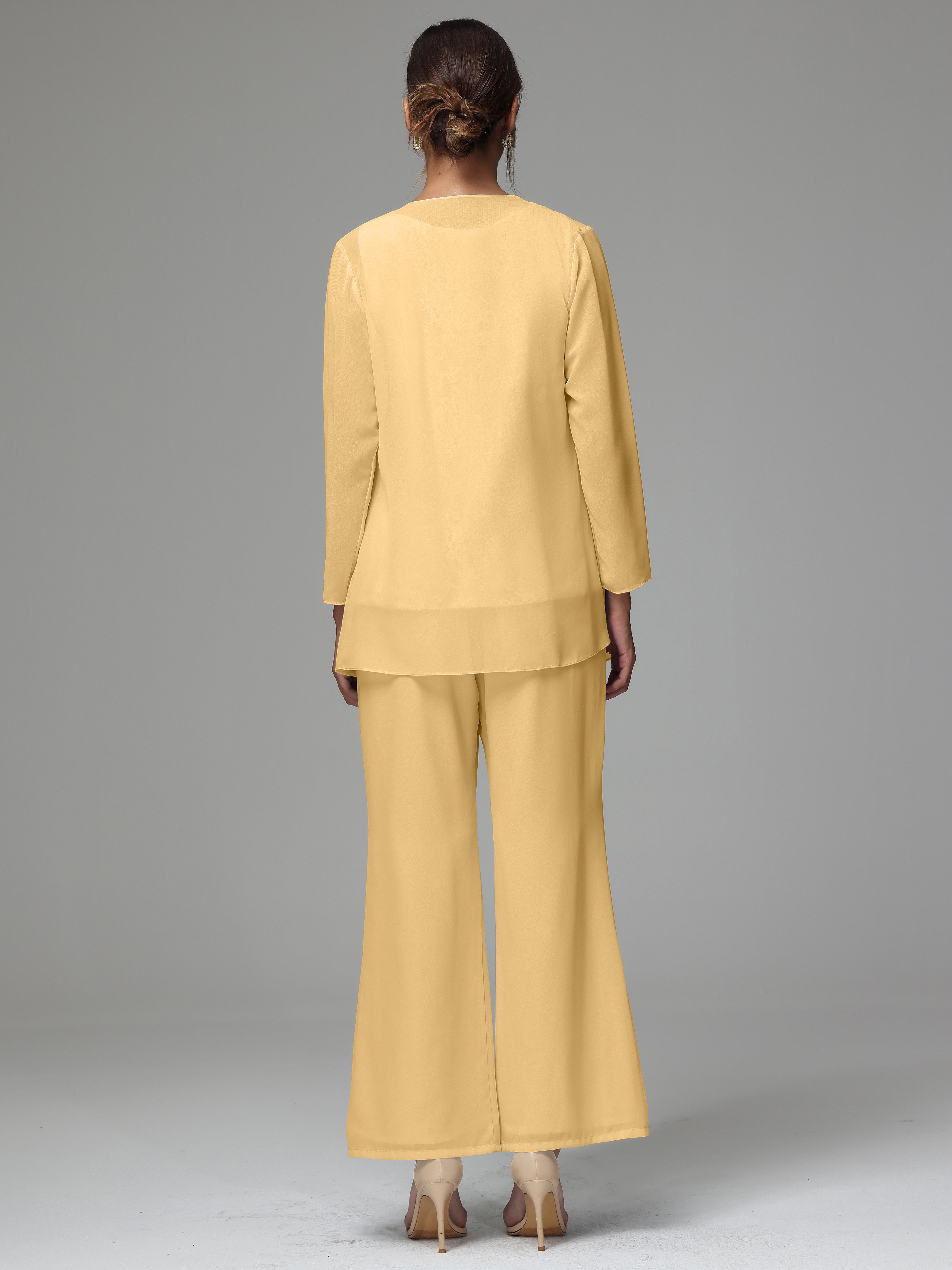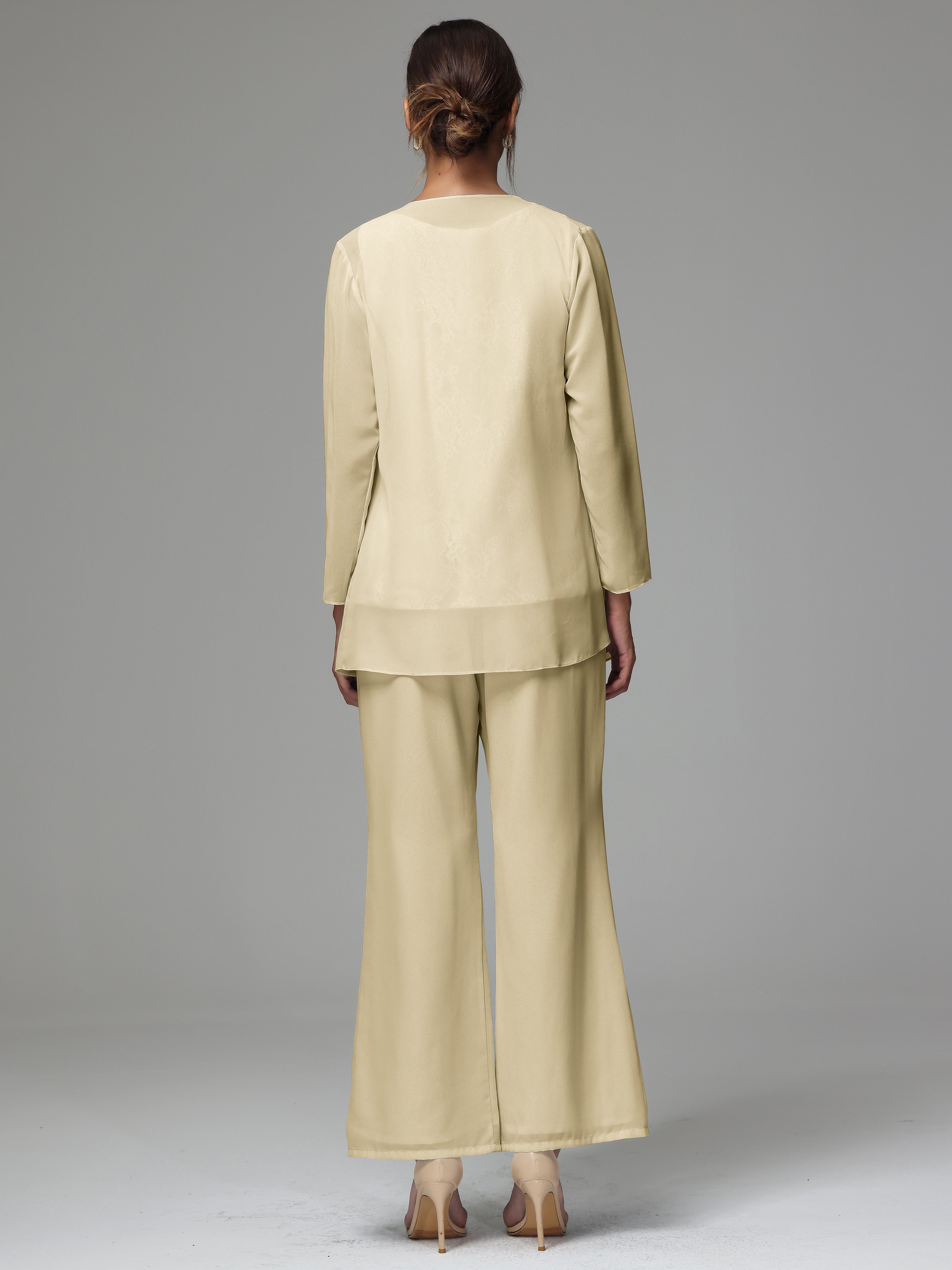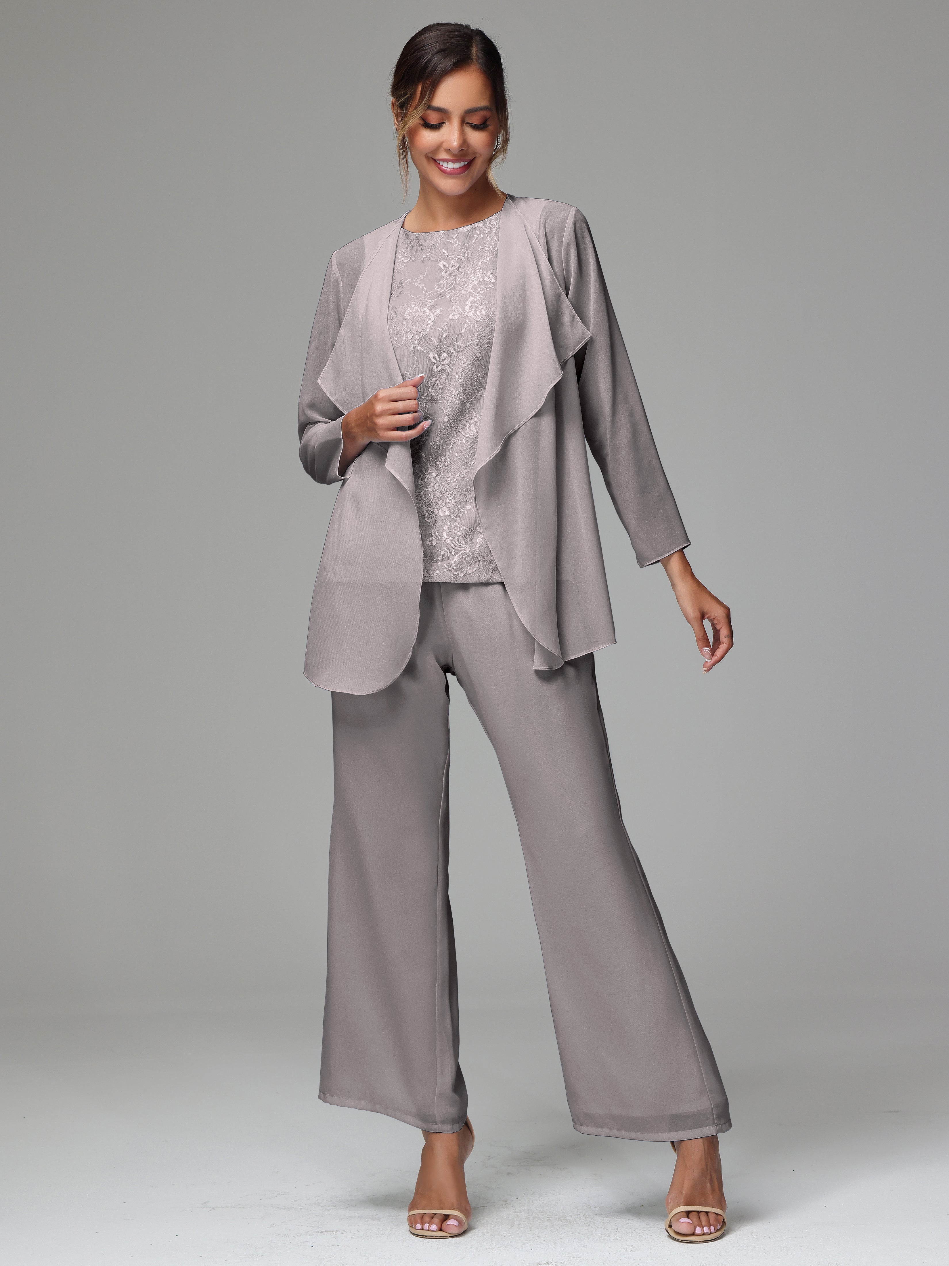 3 Pieces Long Sleeves Chiffon Lace Mother Of The Bride Dress Pants Suits