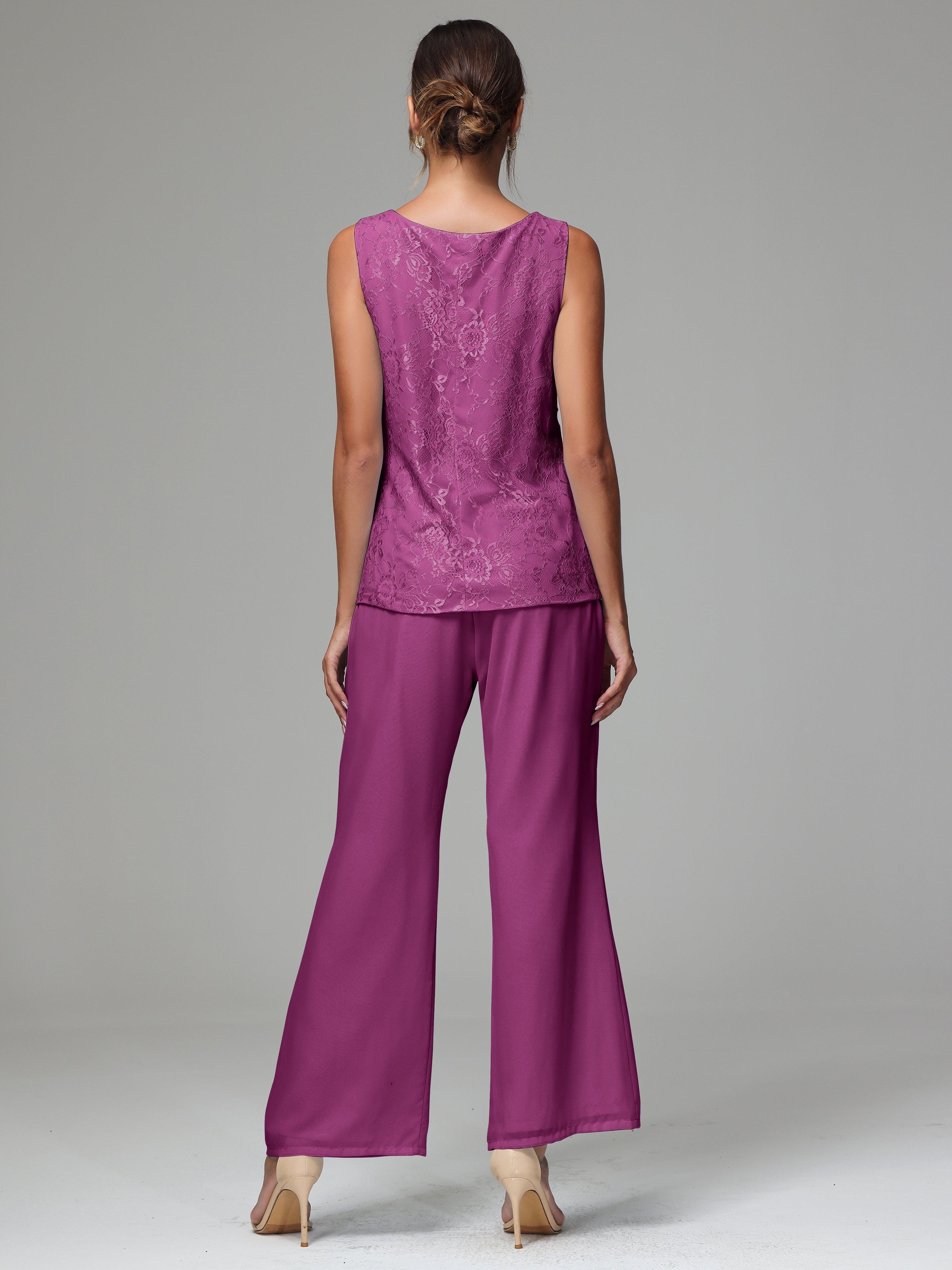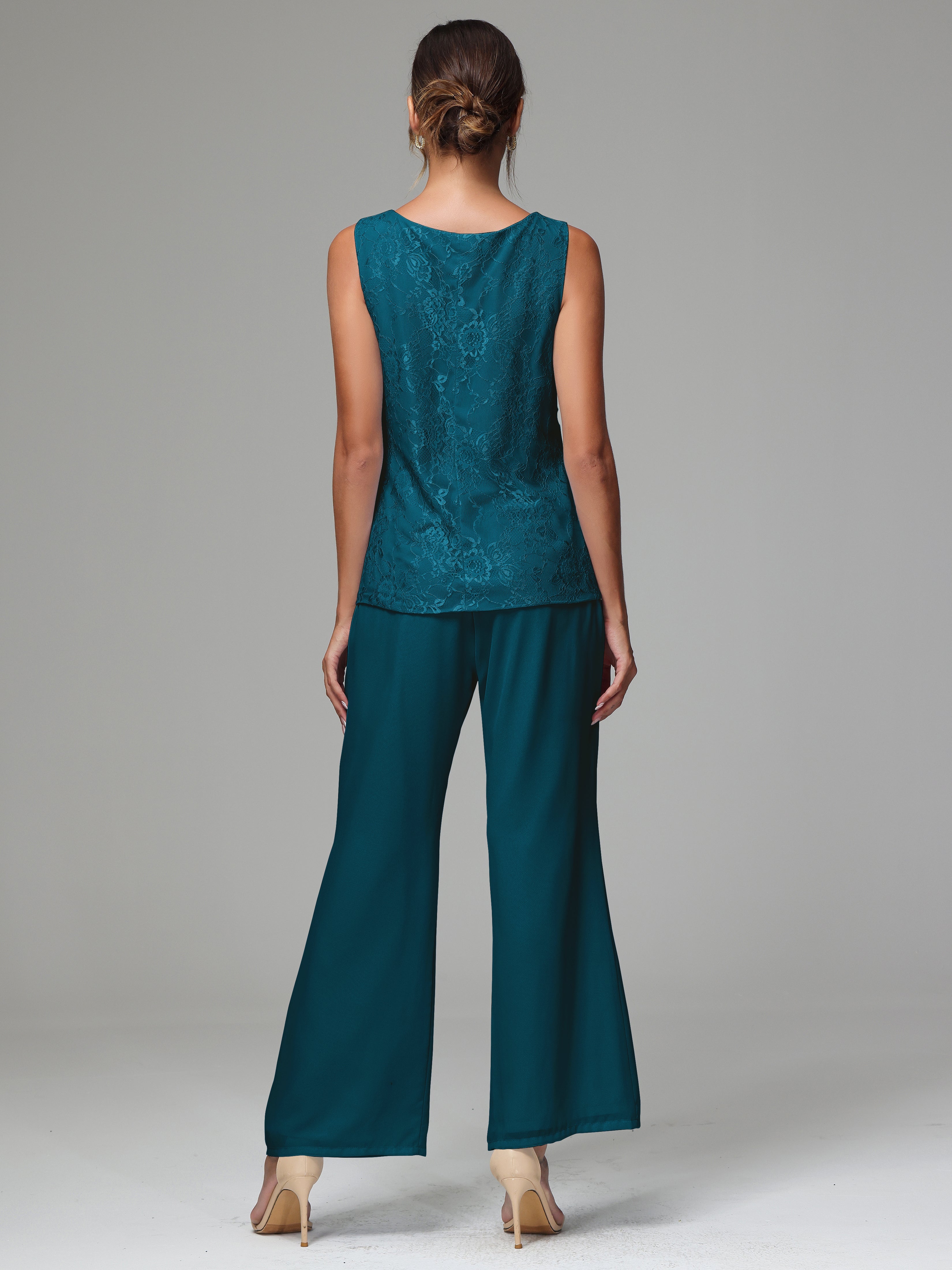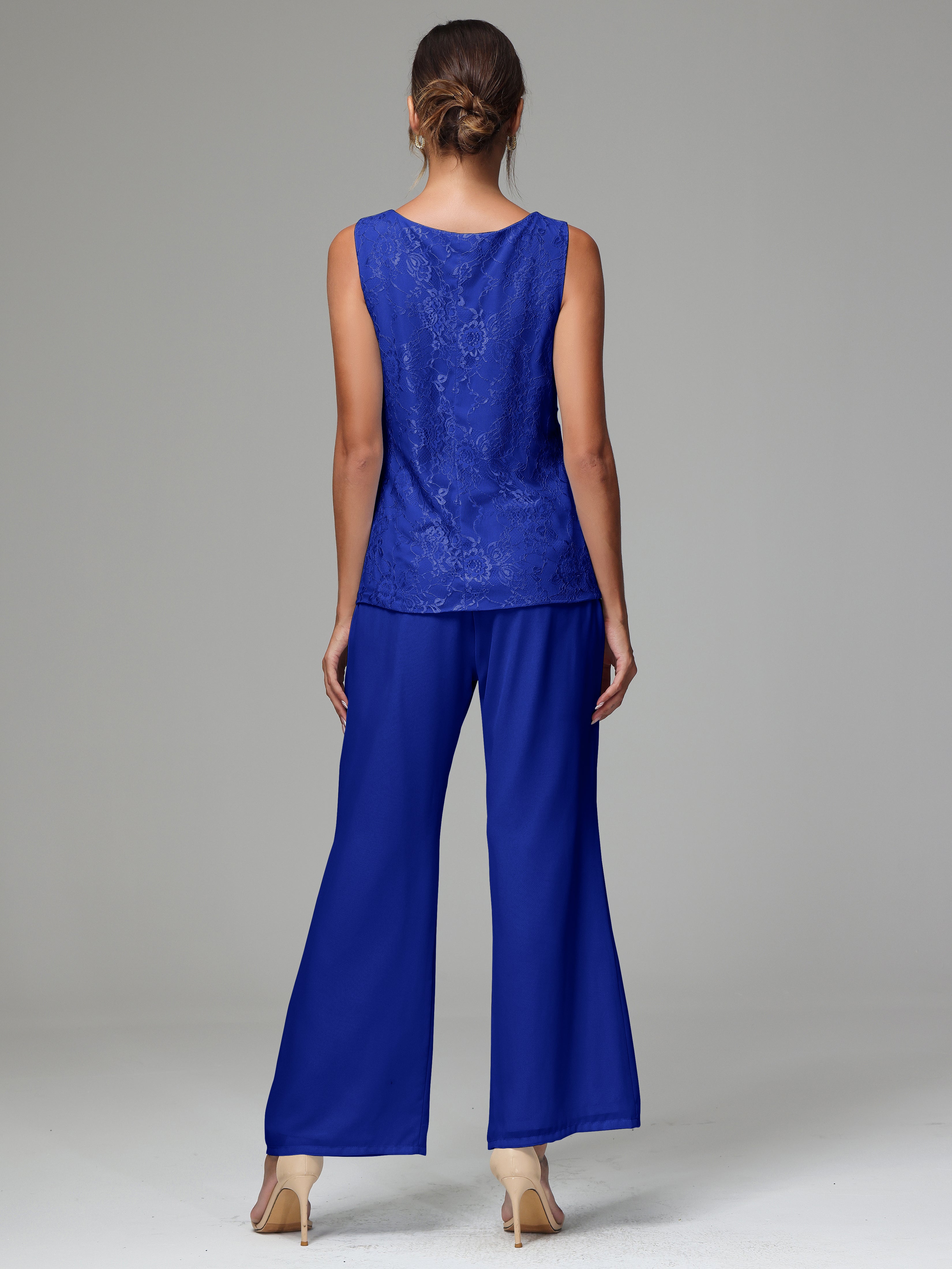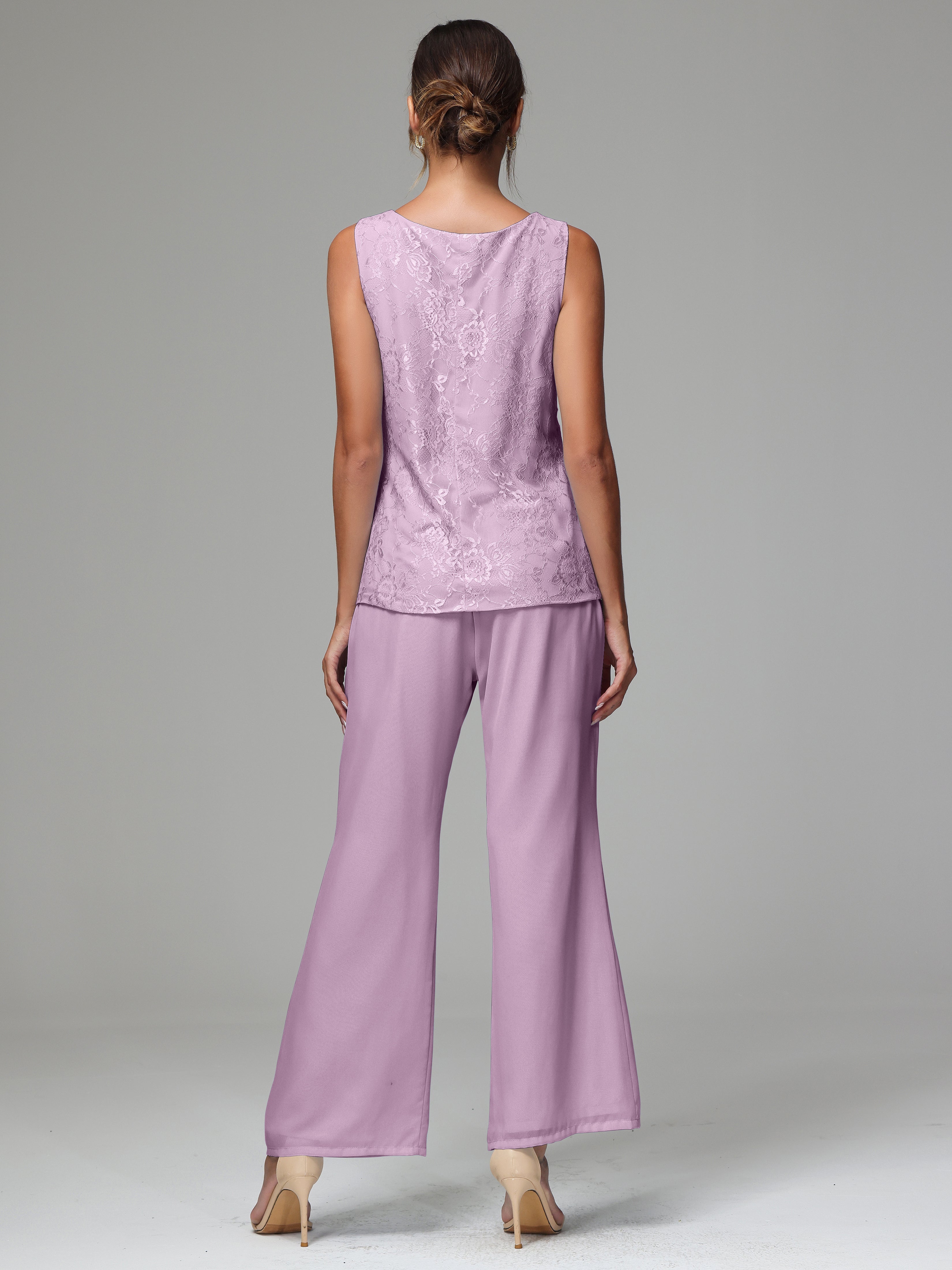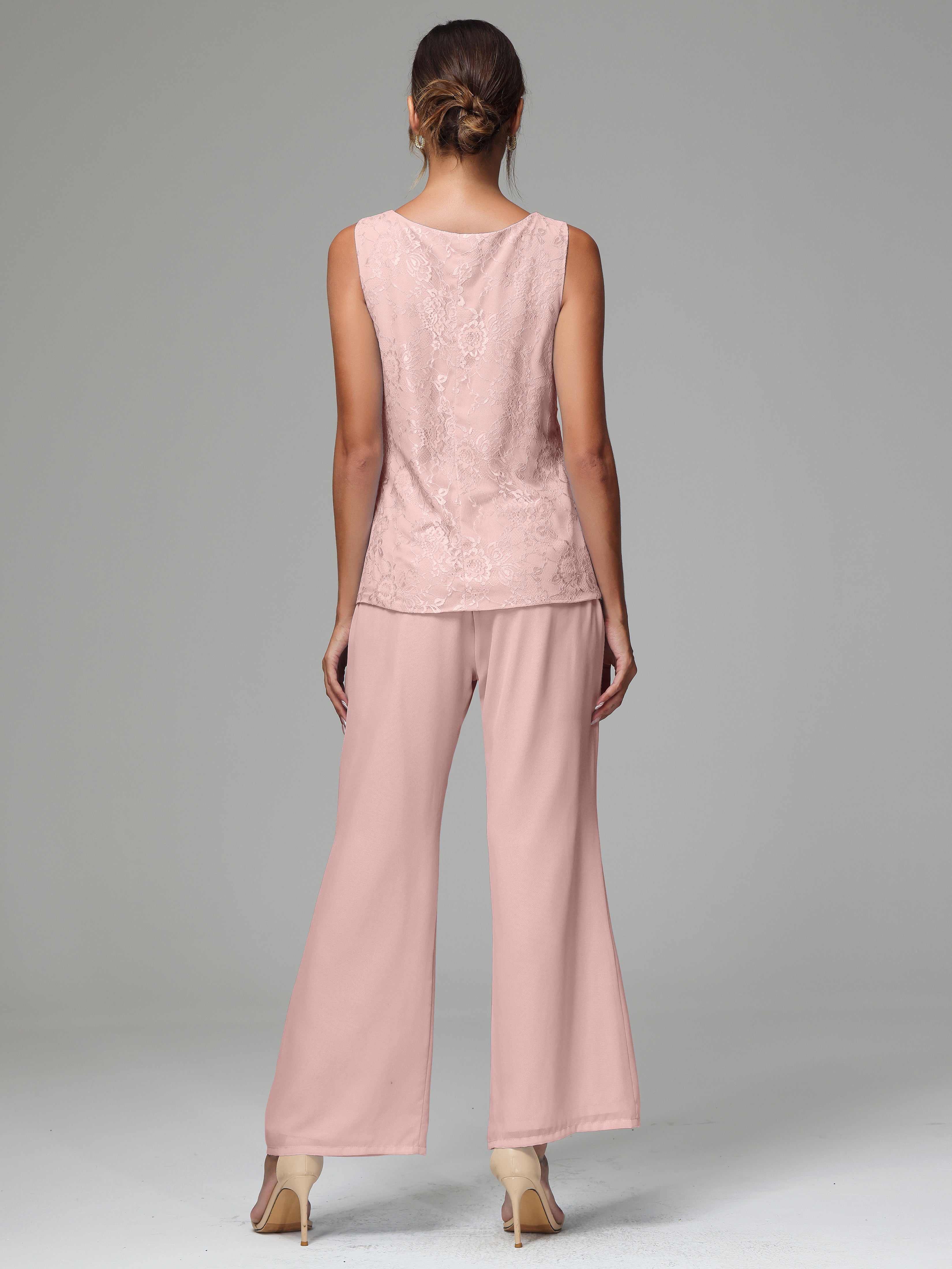 3 Pieces Long Sleeves Chiffon Lace Mother Of The Bride Dress Pants Suits