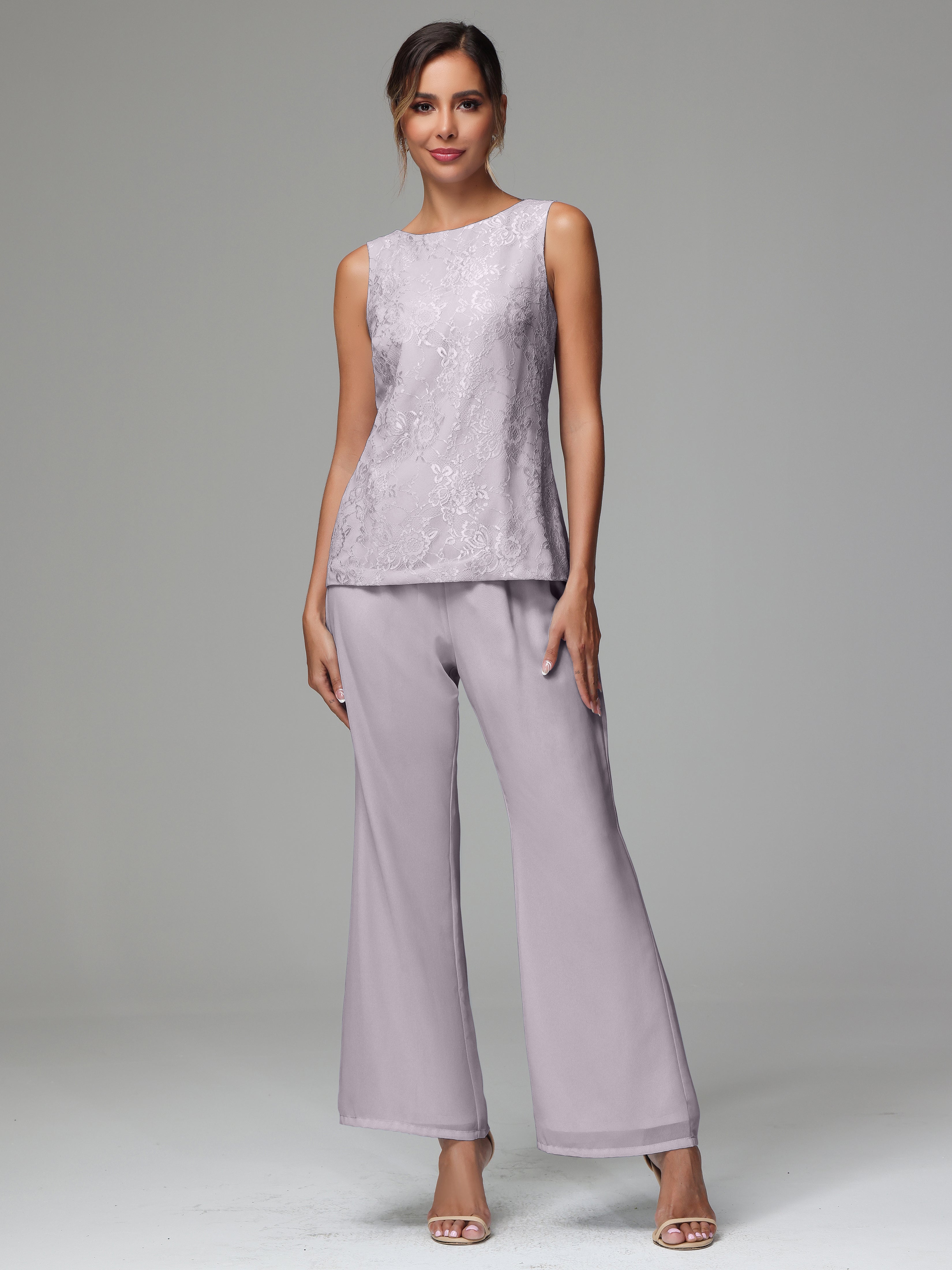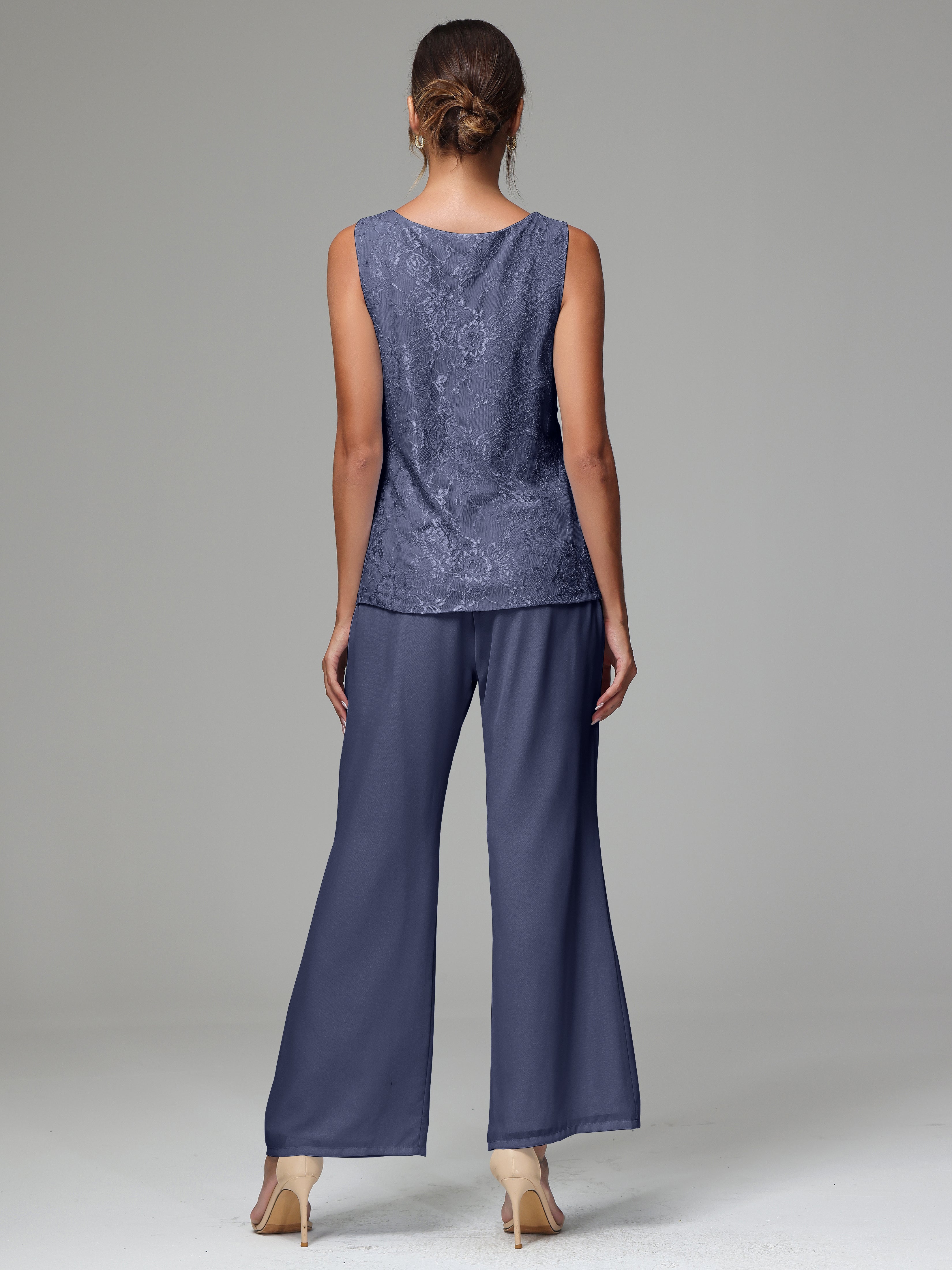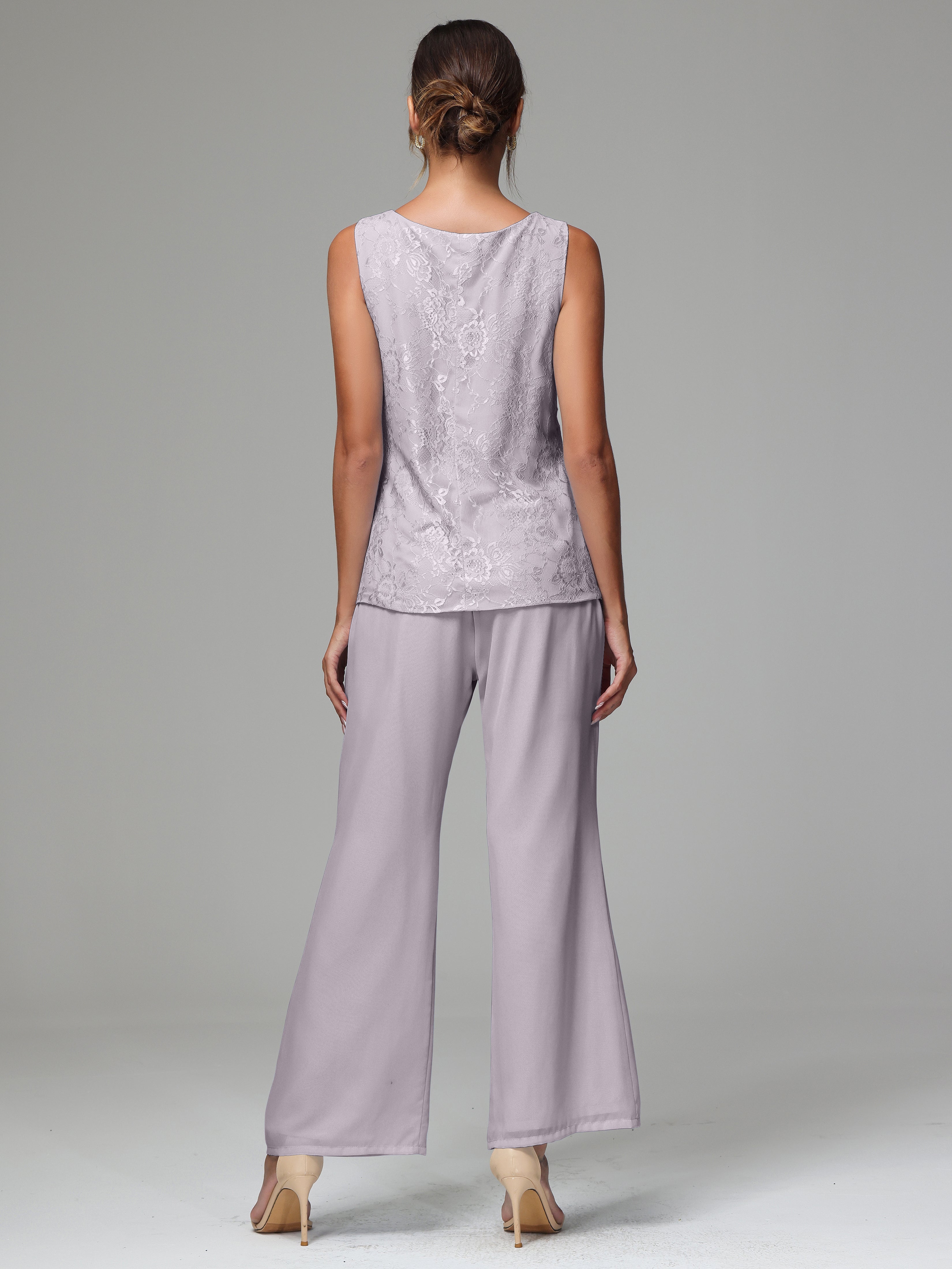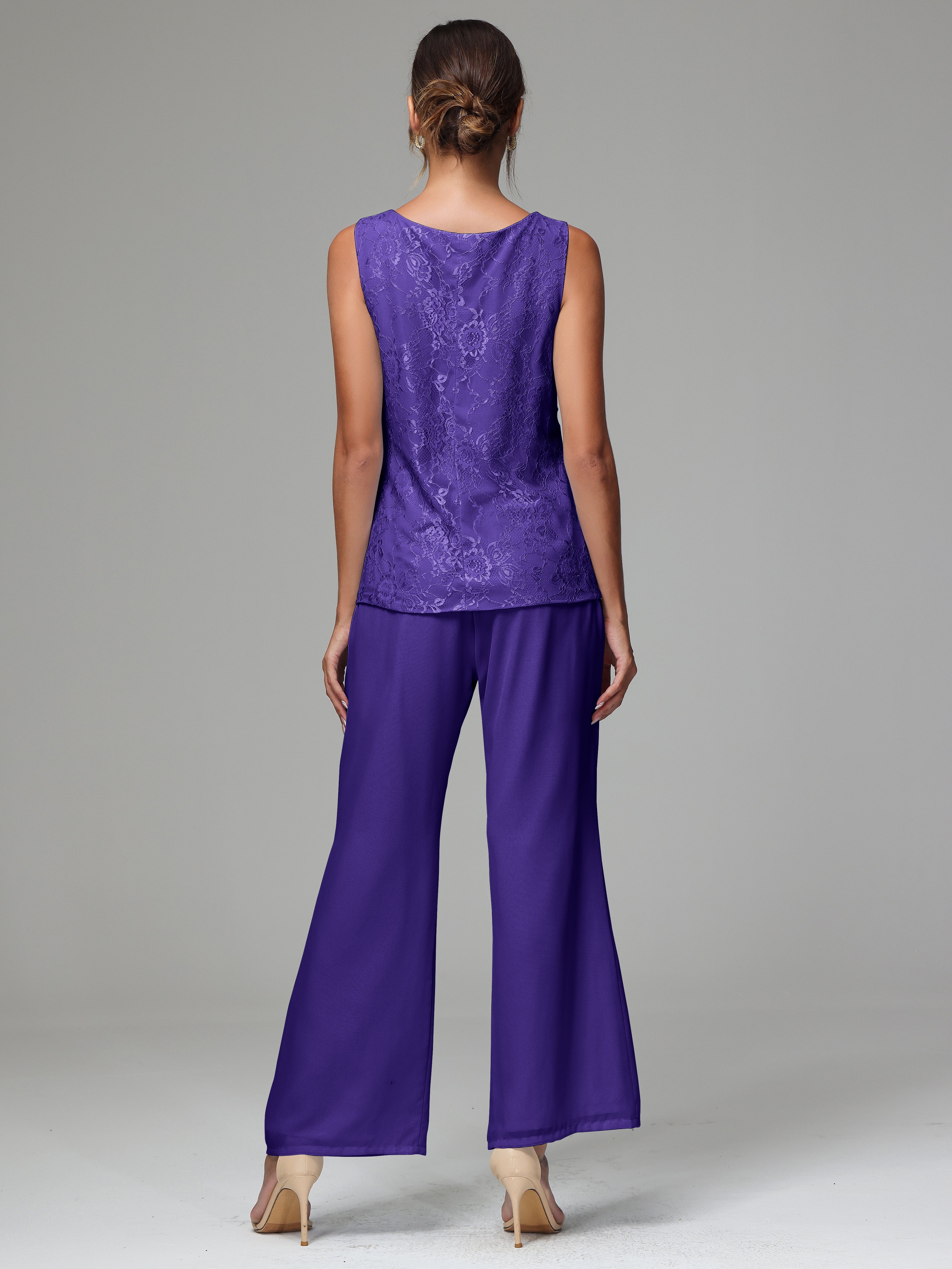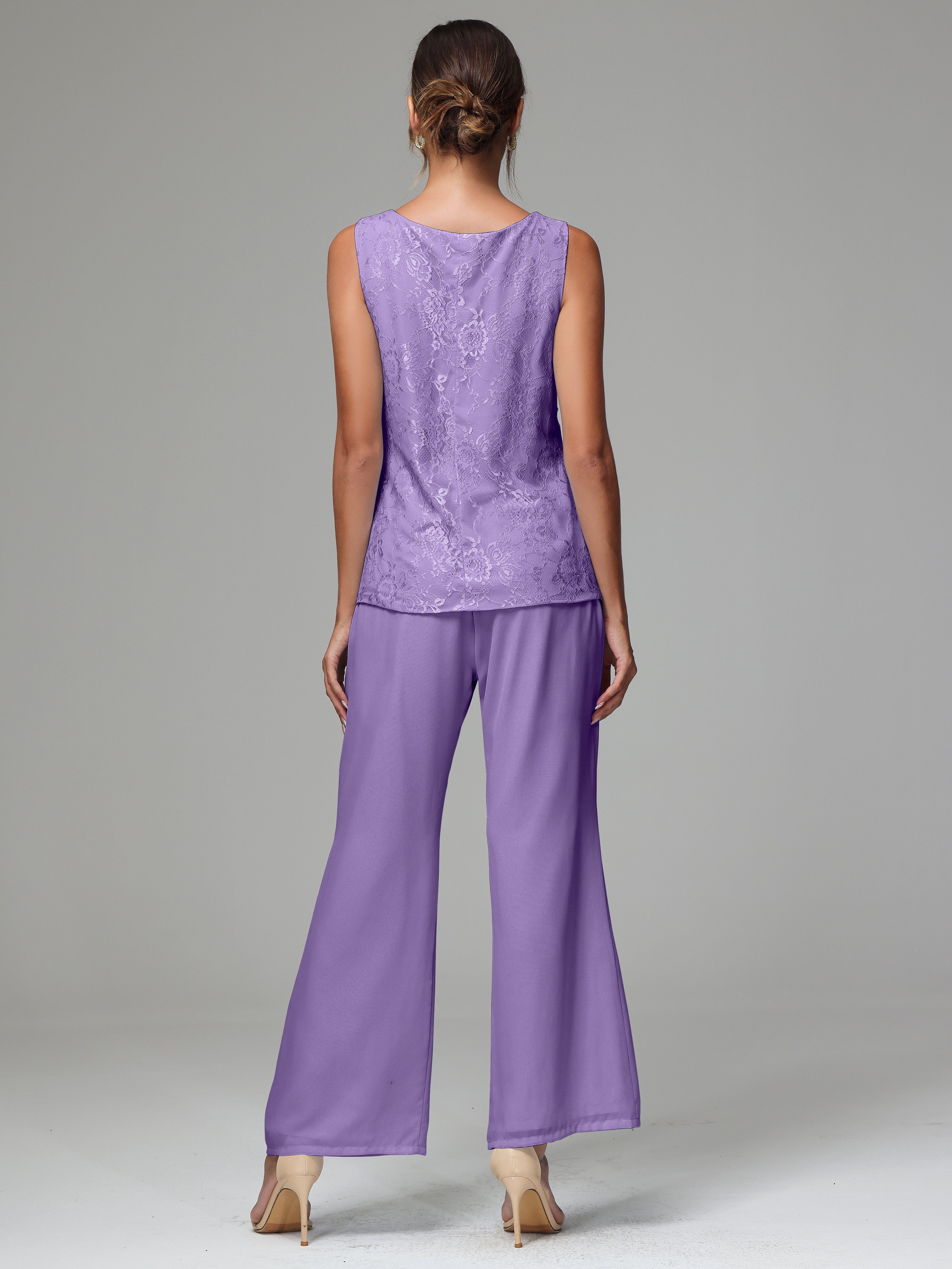 3 Pieces Long Sleeves Chiffon Lace Mother Of The Bride Dress Pants Suits