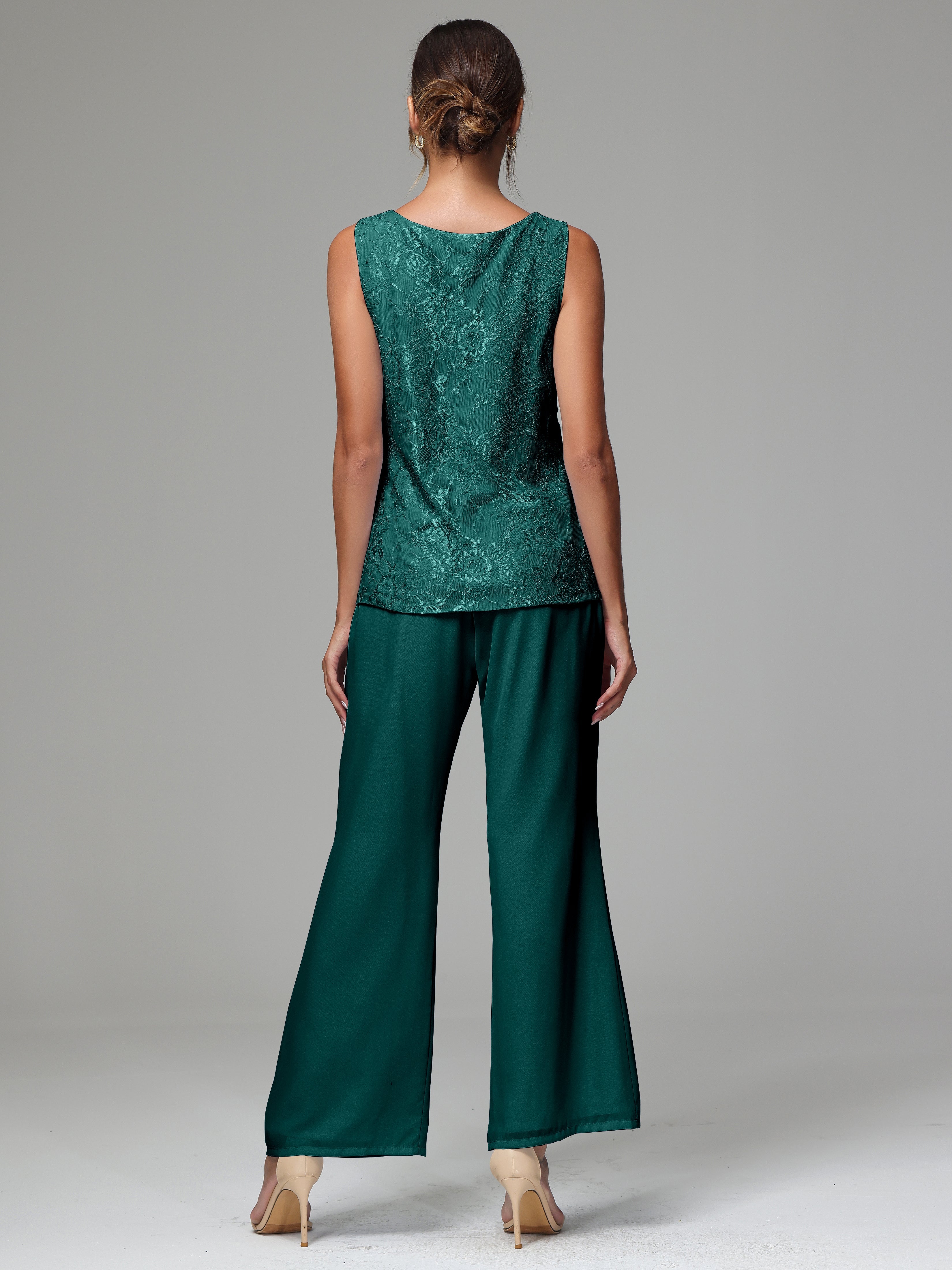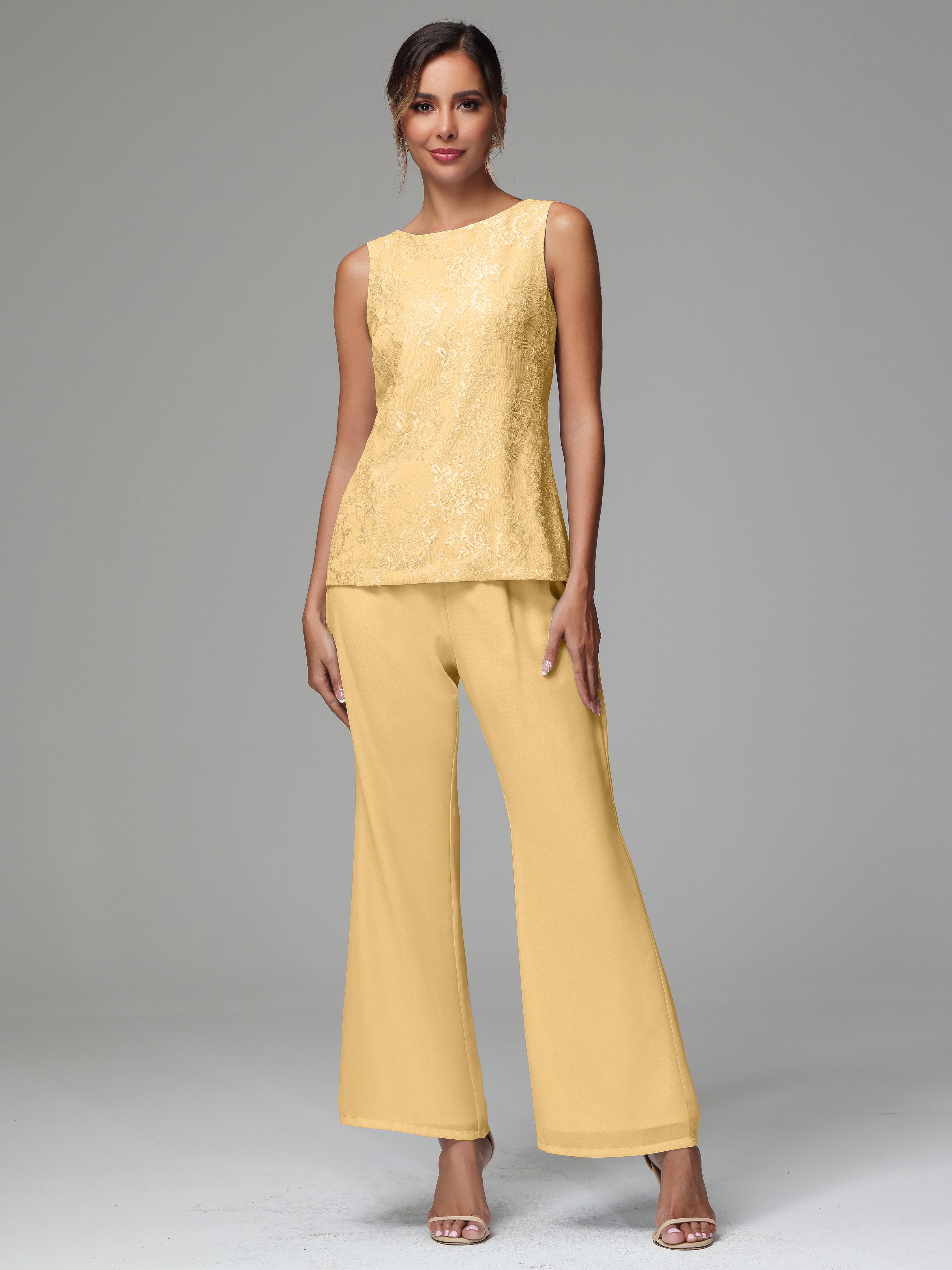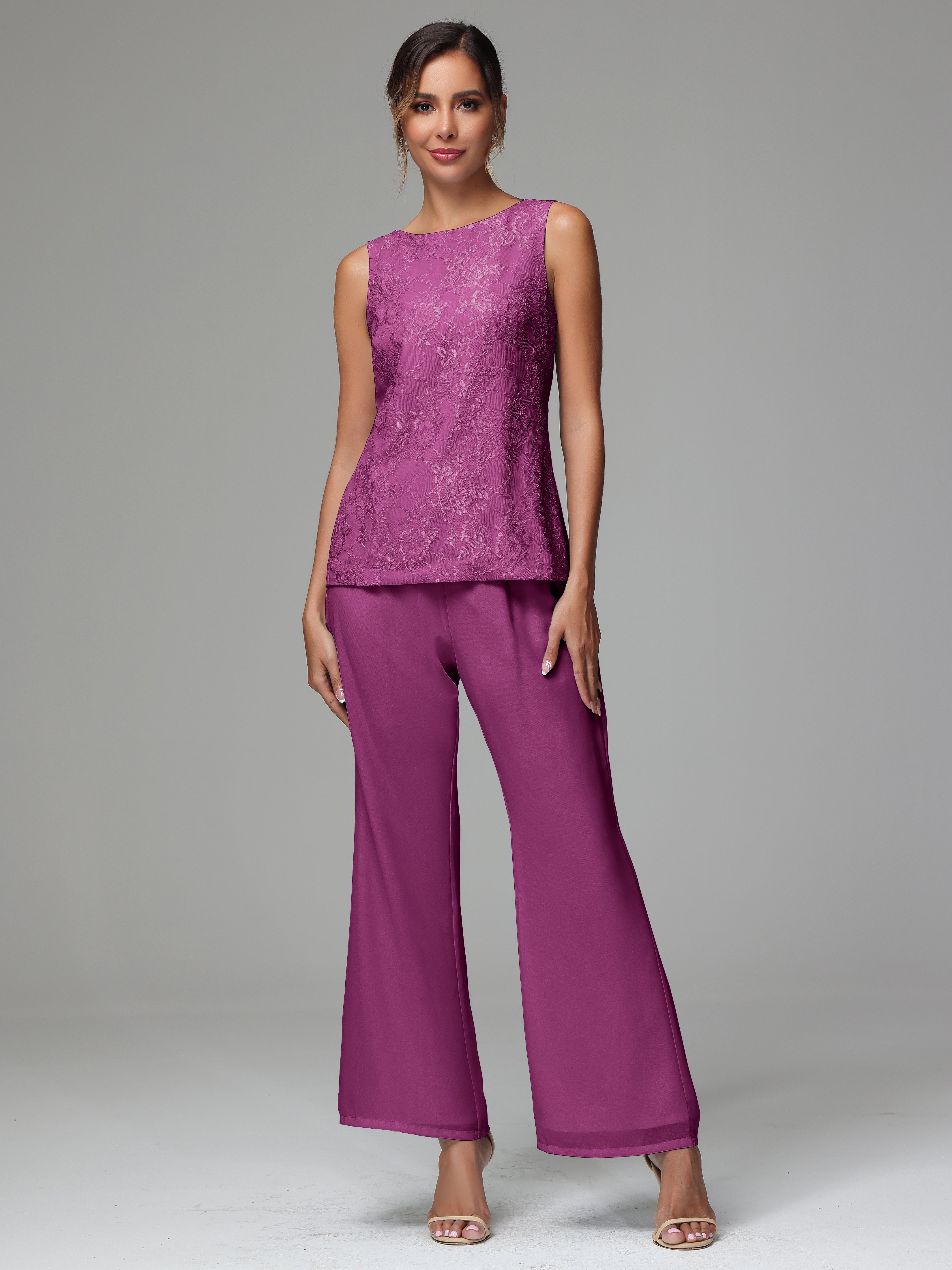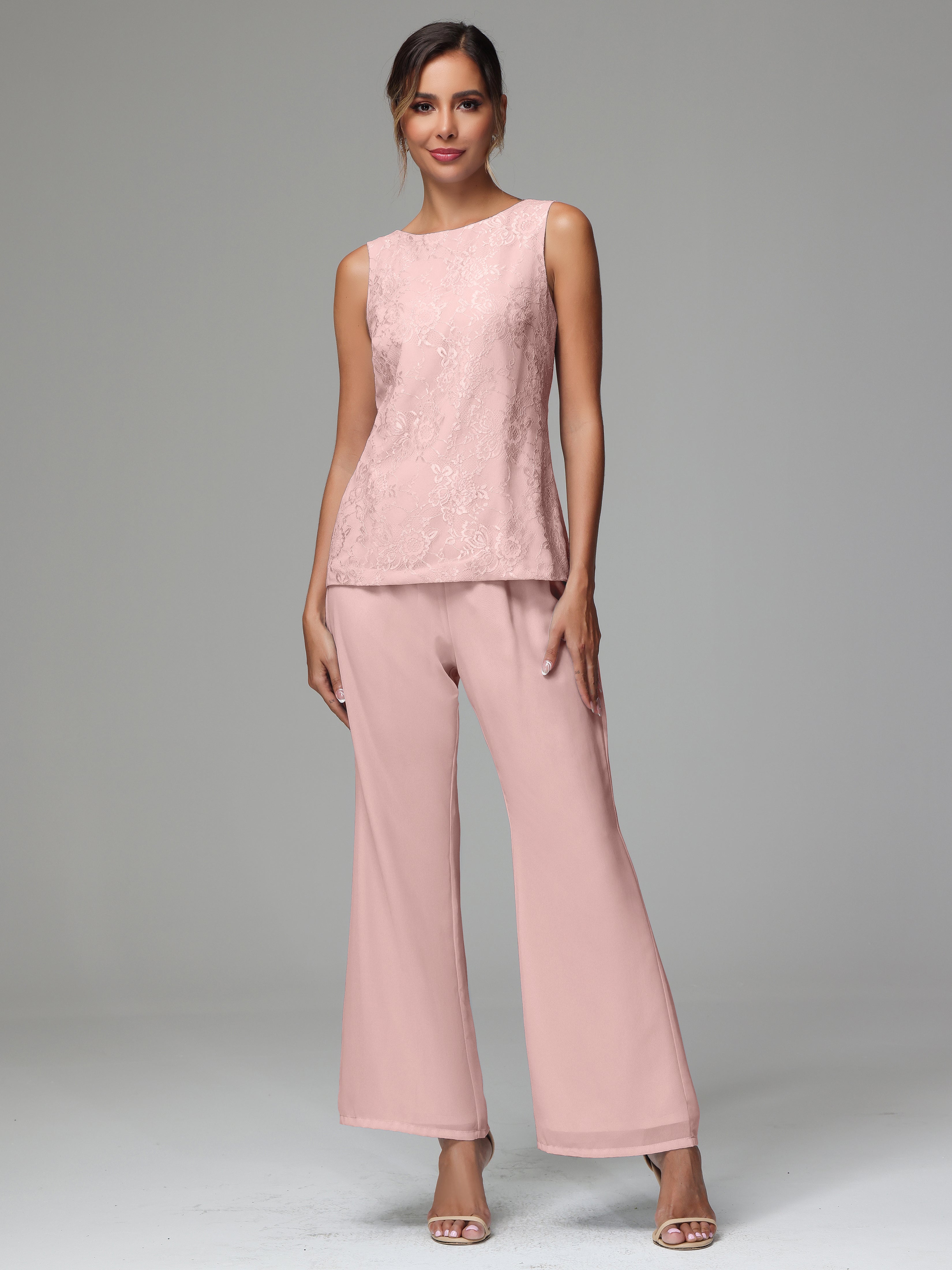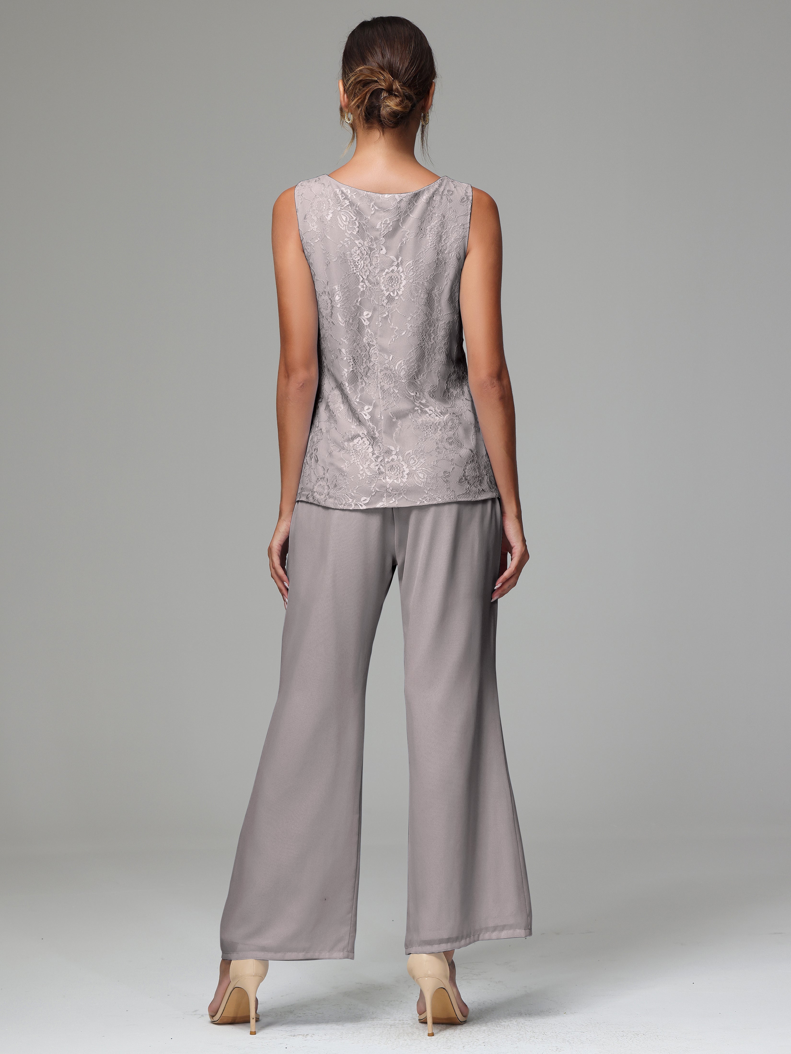 3 Pieces Long Sleeves Chiffon Lace Mother Of The Bride Dress Pants Suits