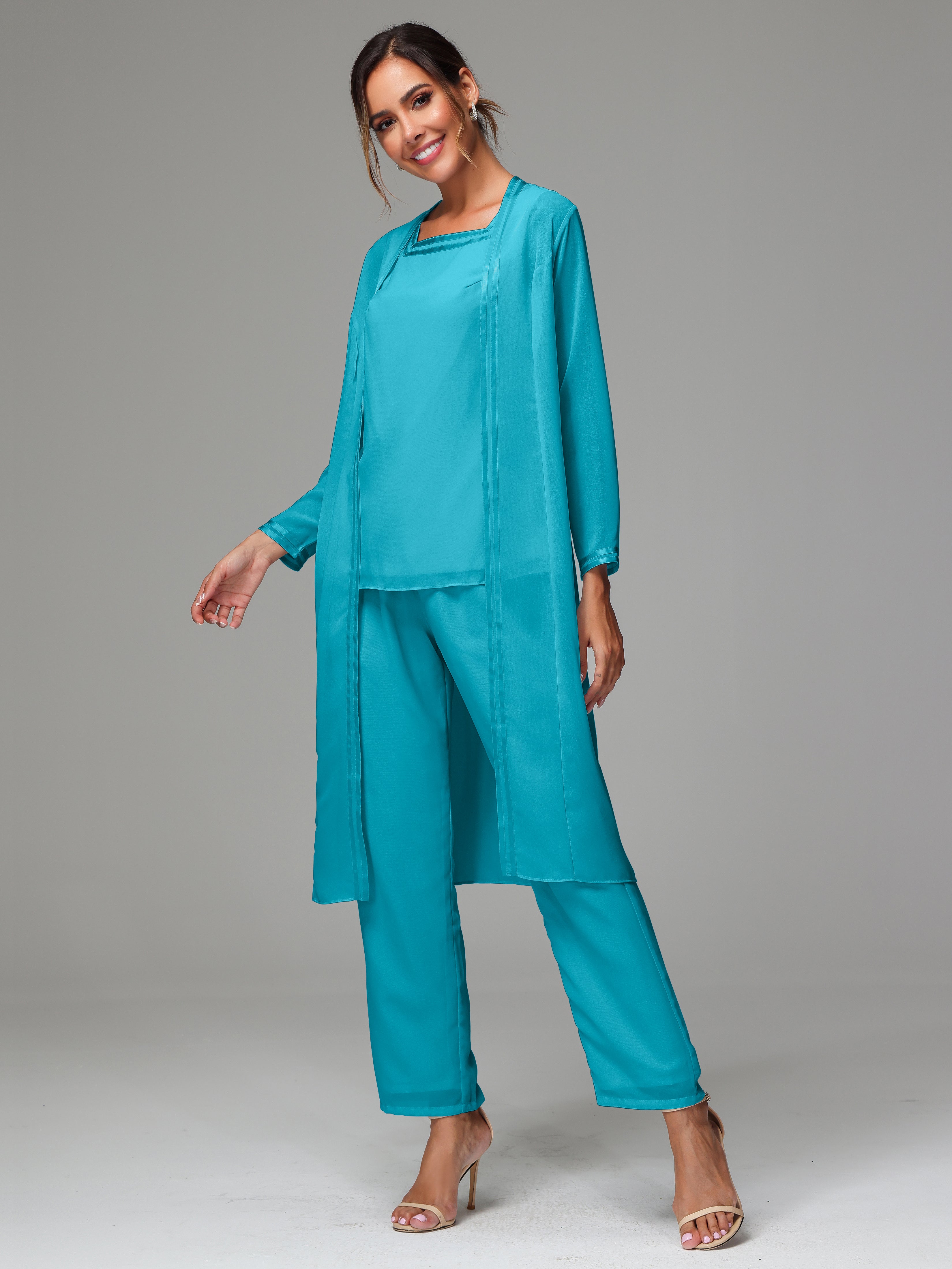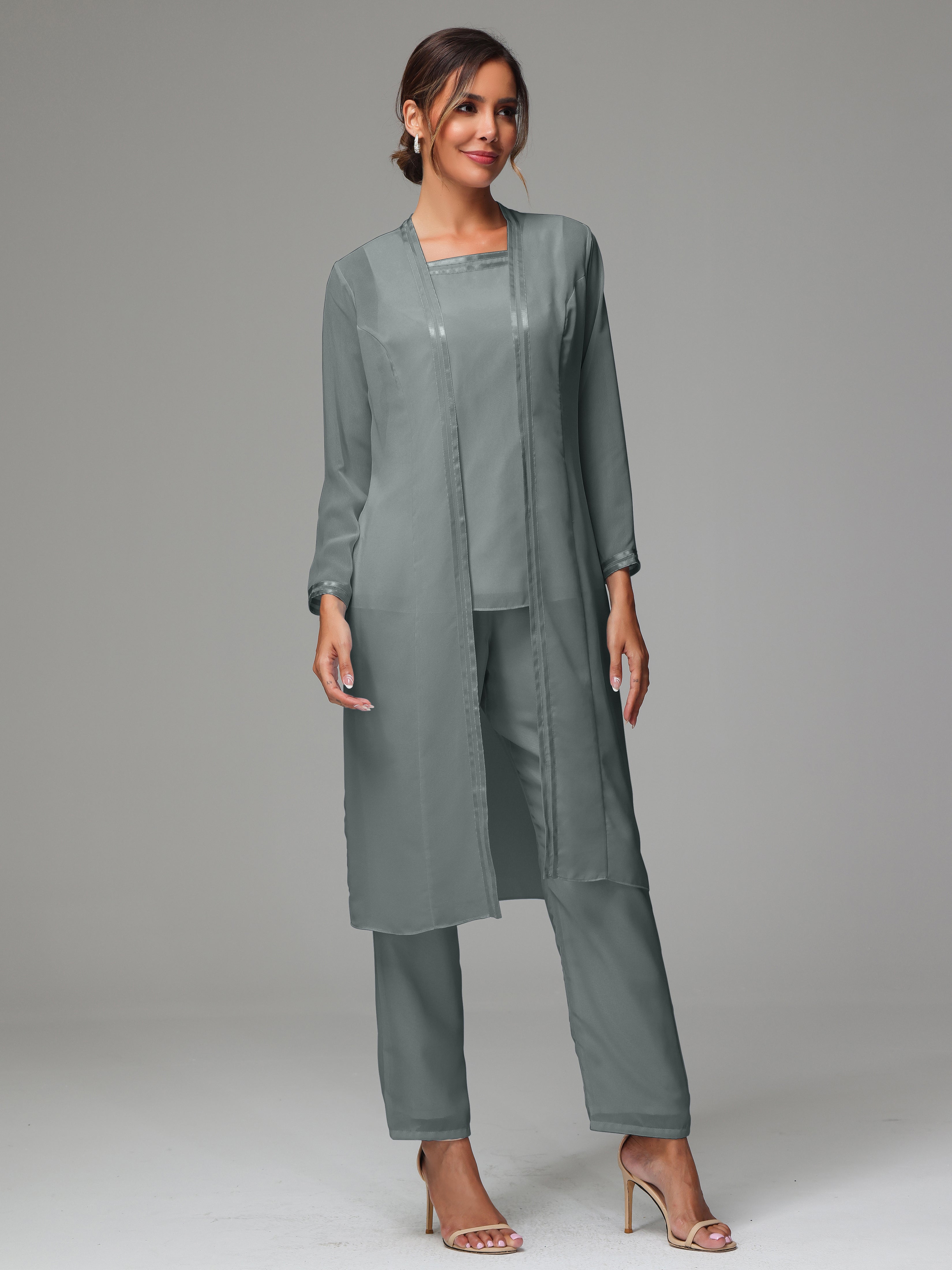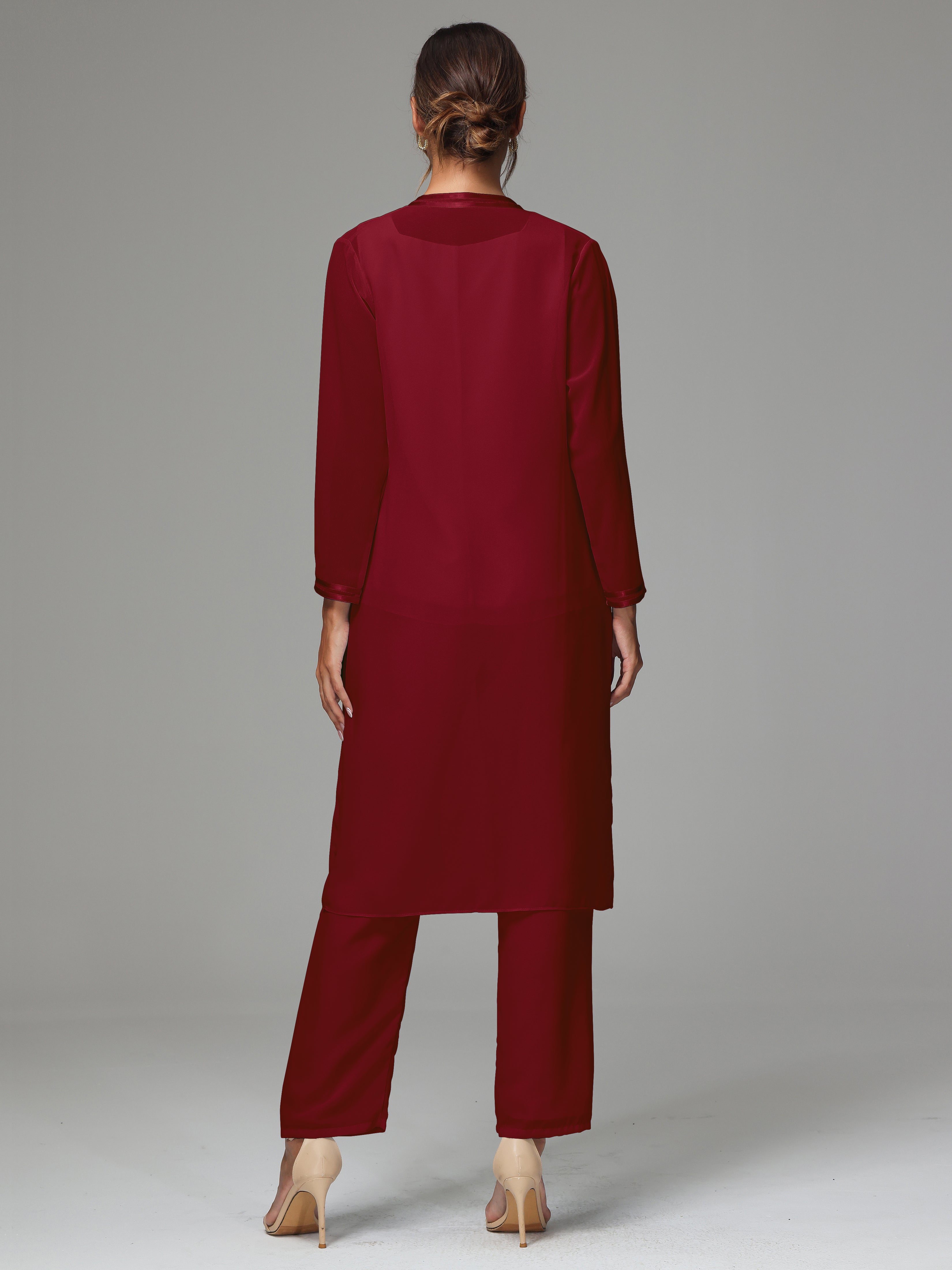 3 Pieces Long Sleeves Chiffon Mother Of The Bride Dress Pants Suits