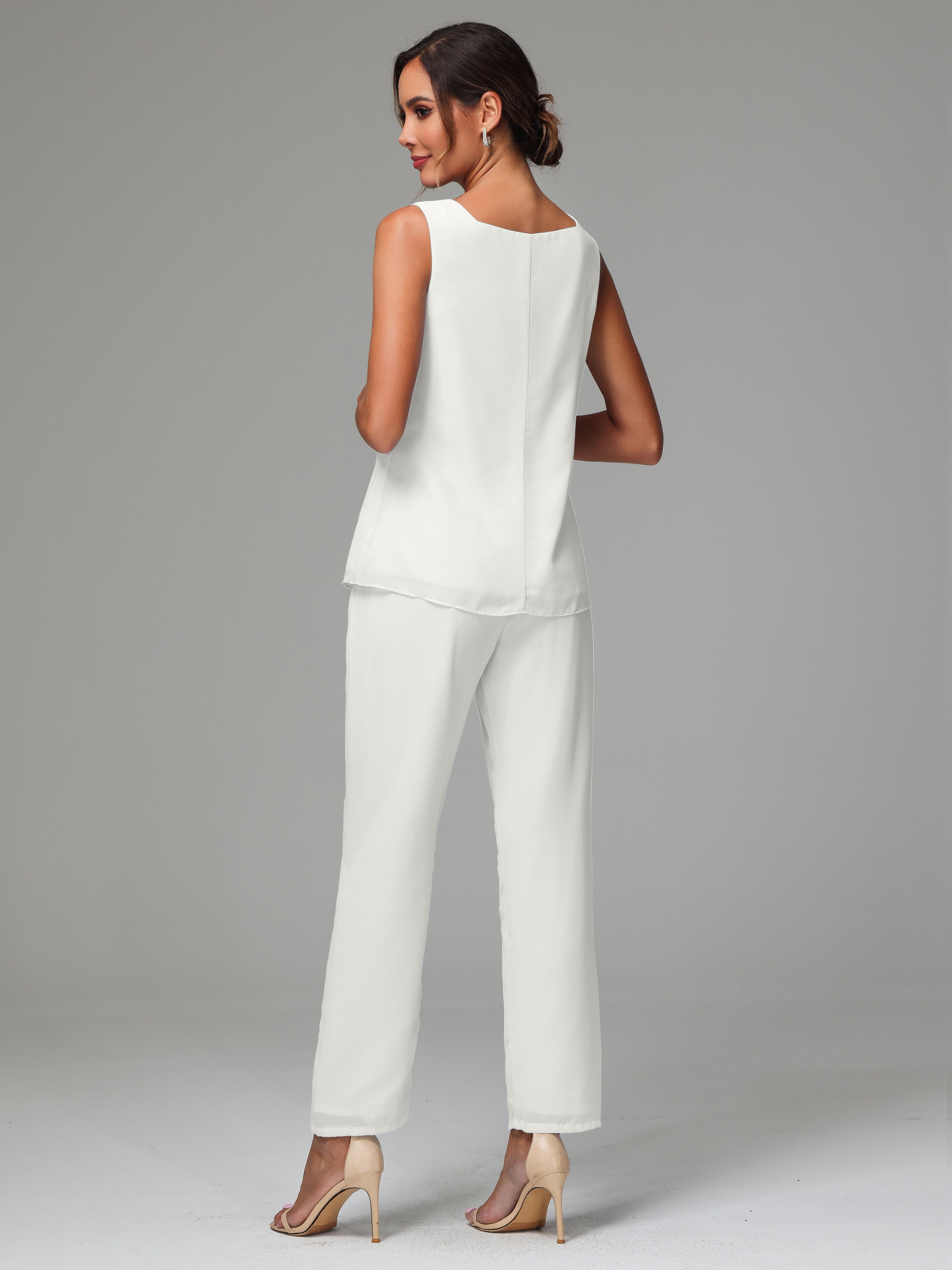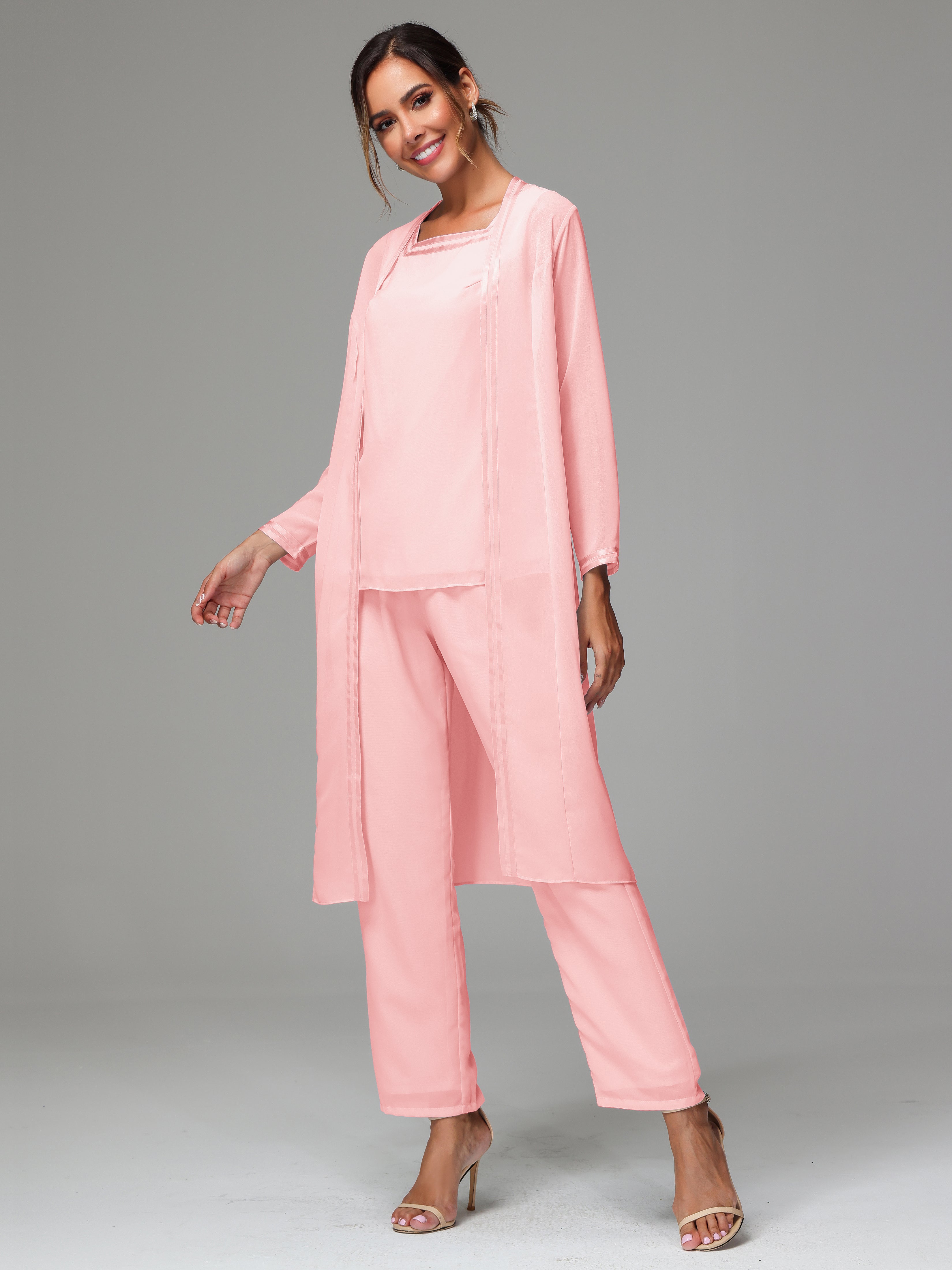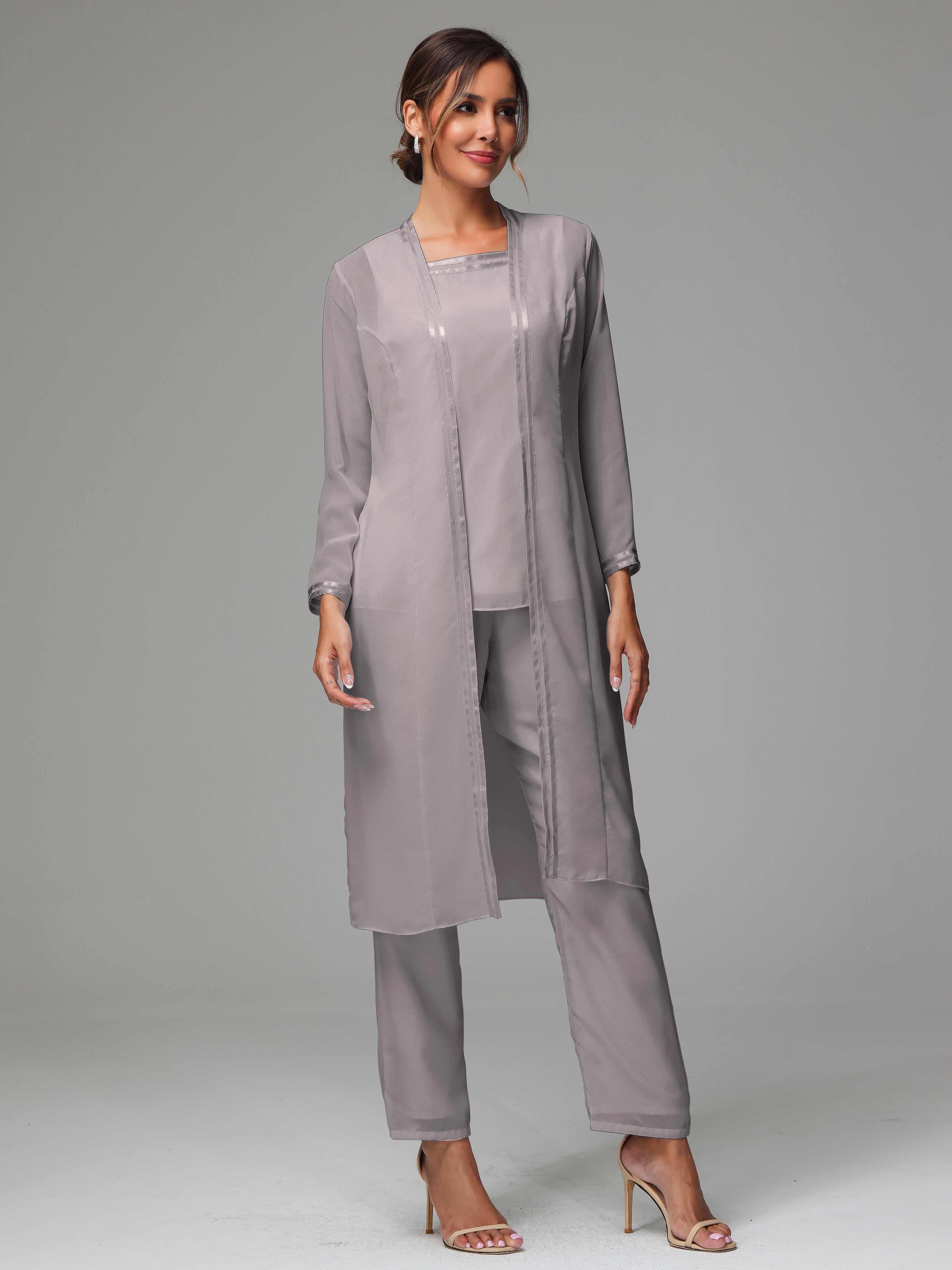 3 Pieces Long Sleeves Chiffon Mother Of The Bride Dress Pants Suits