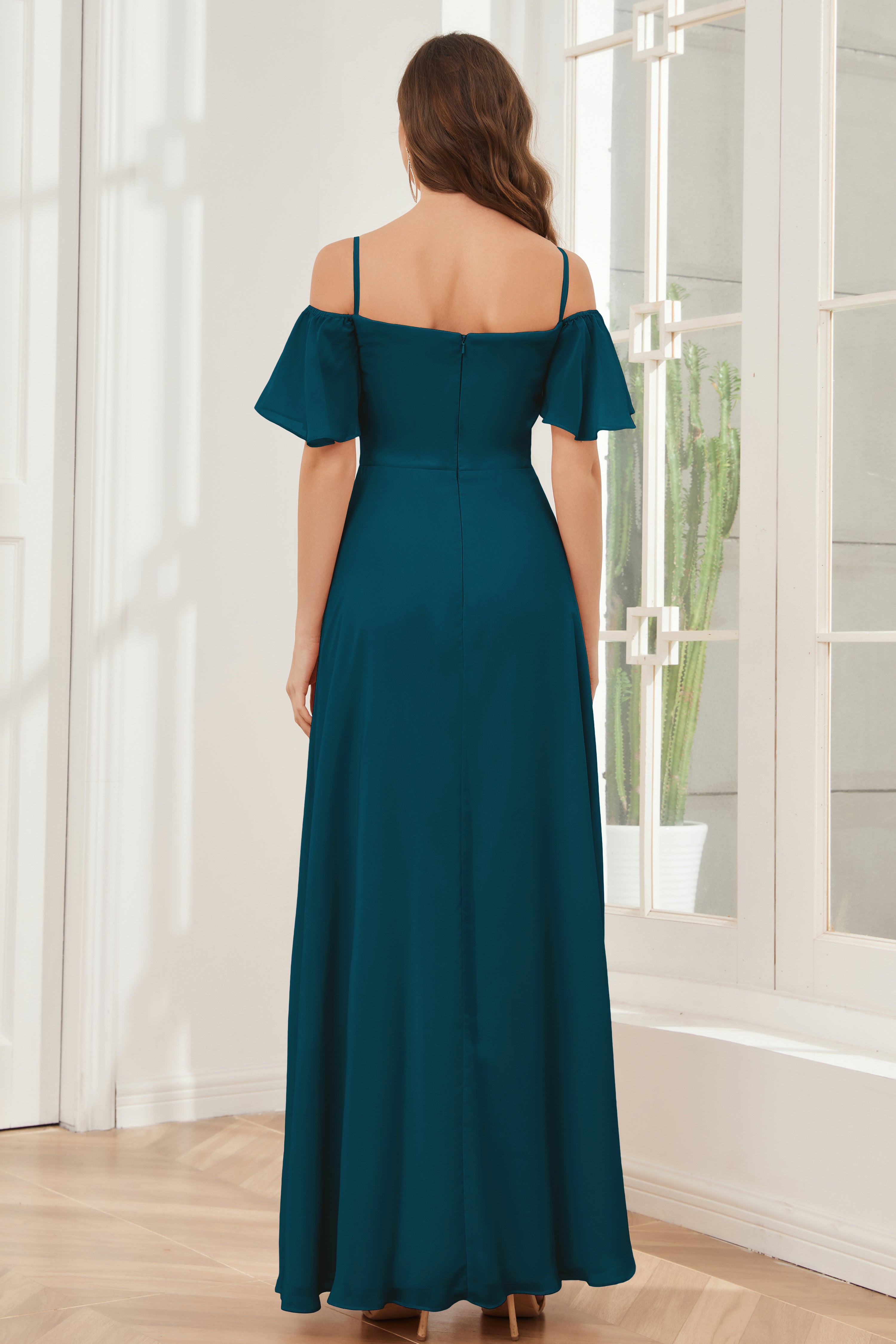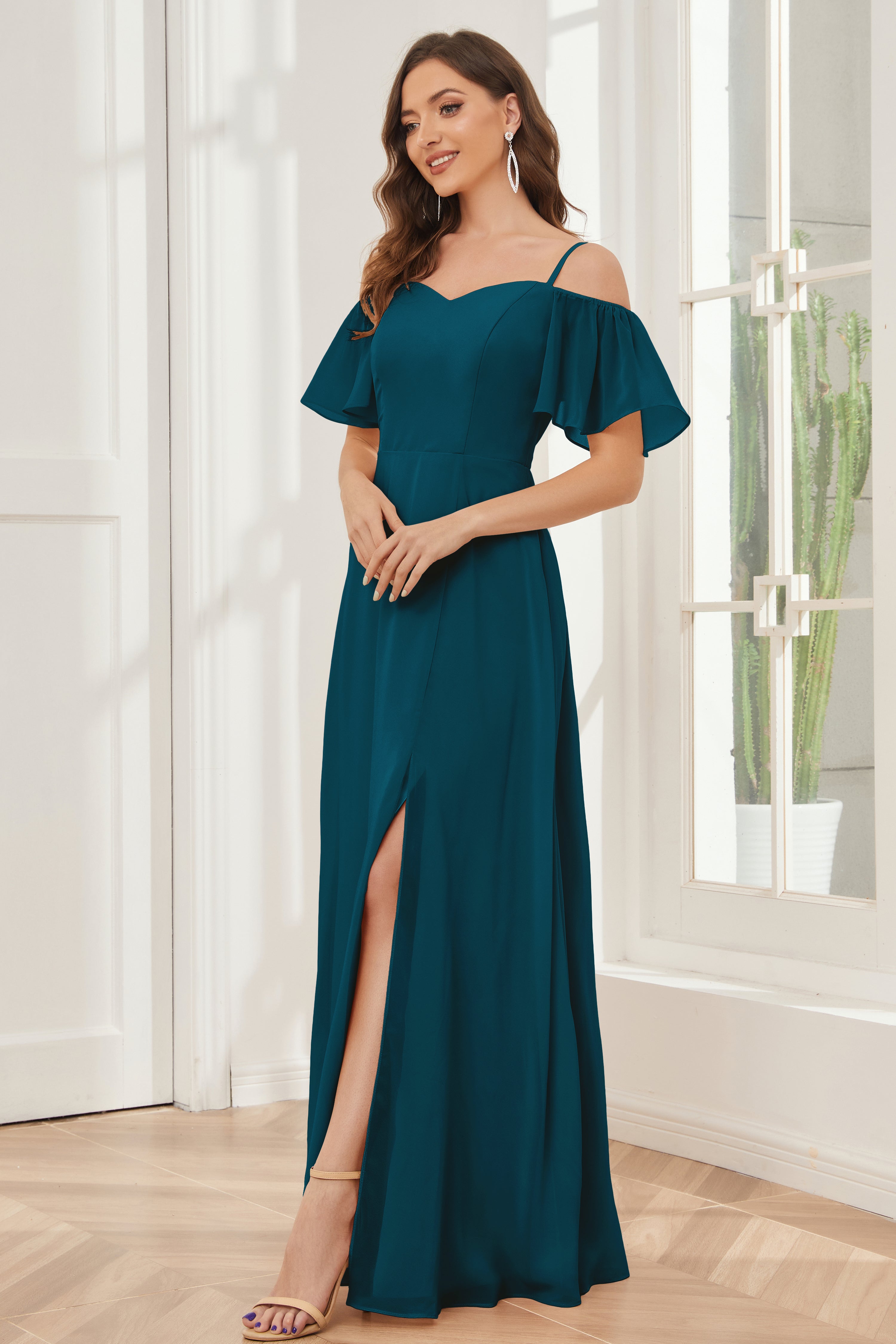 - Neckline: Off-the-shoulder