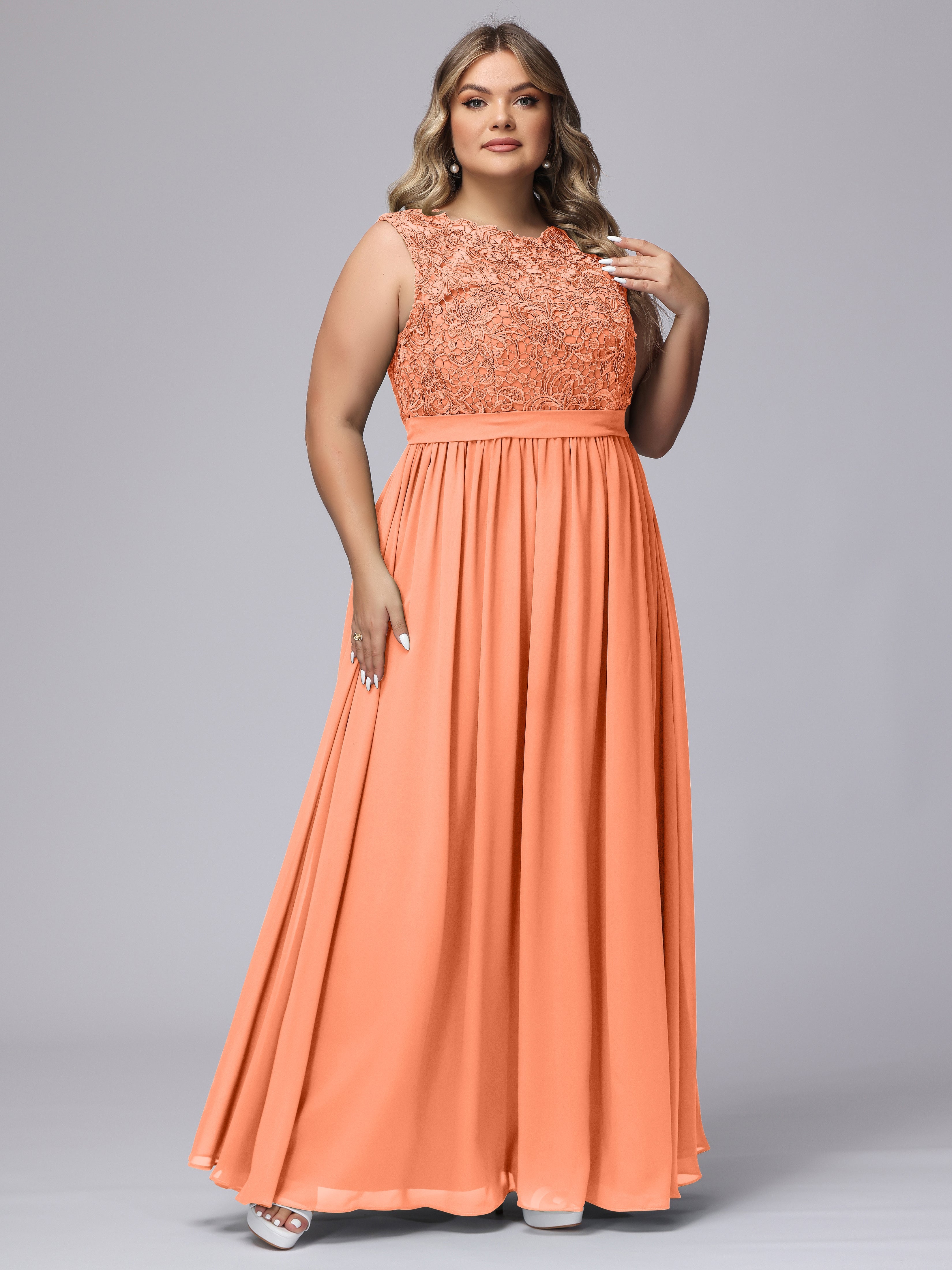 A-Line Sleeveless Lace Top Chiffon Plus Size Bridesmaid Dresses
