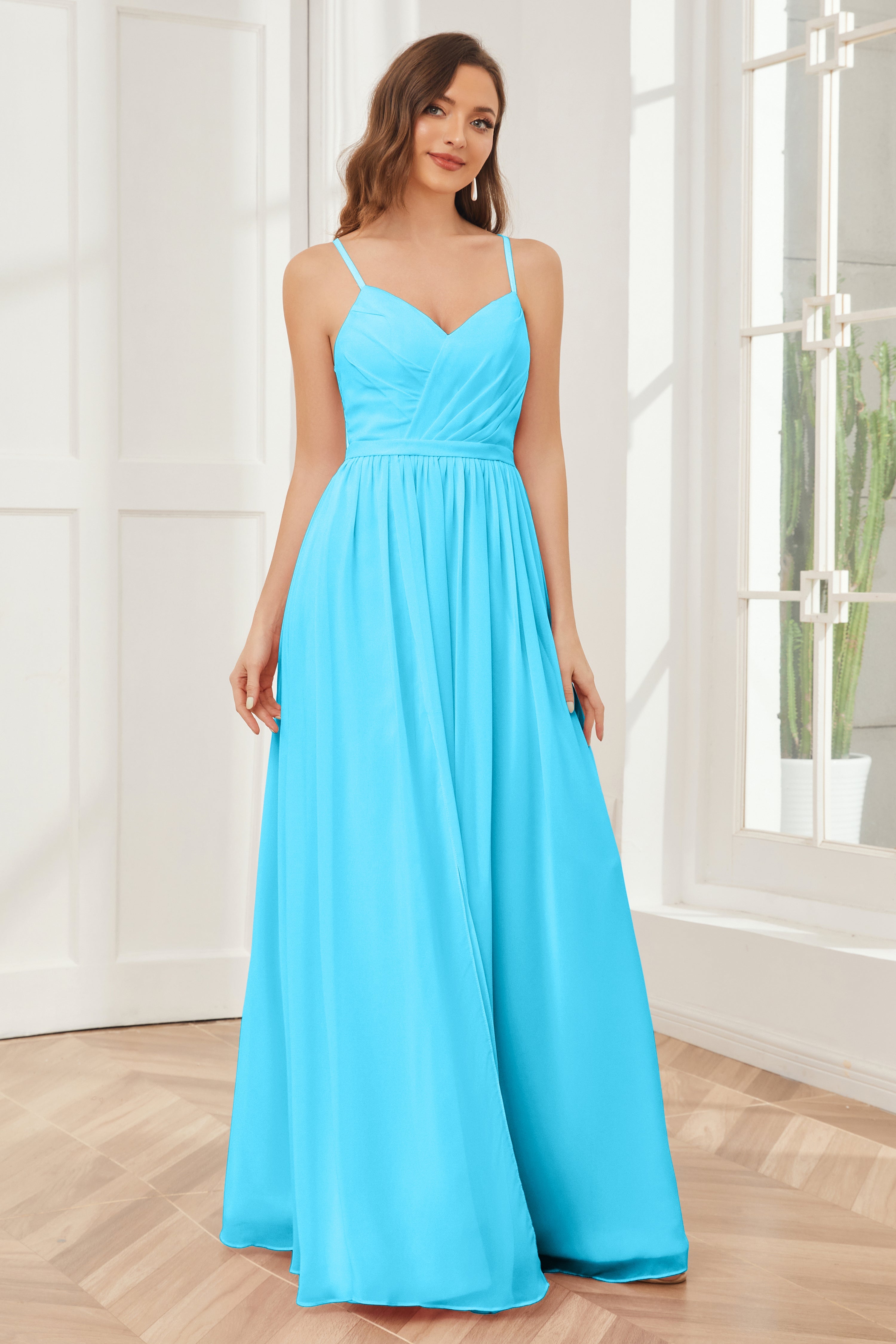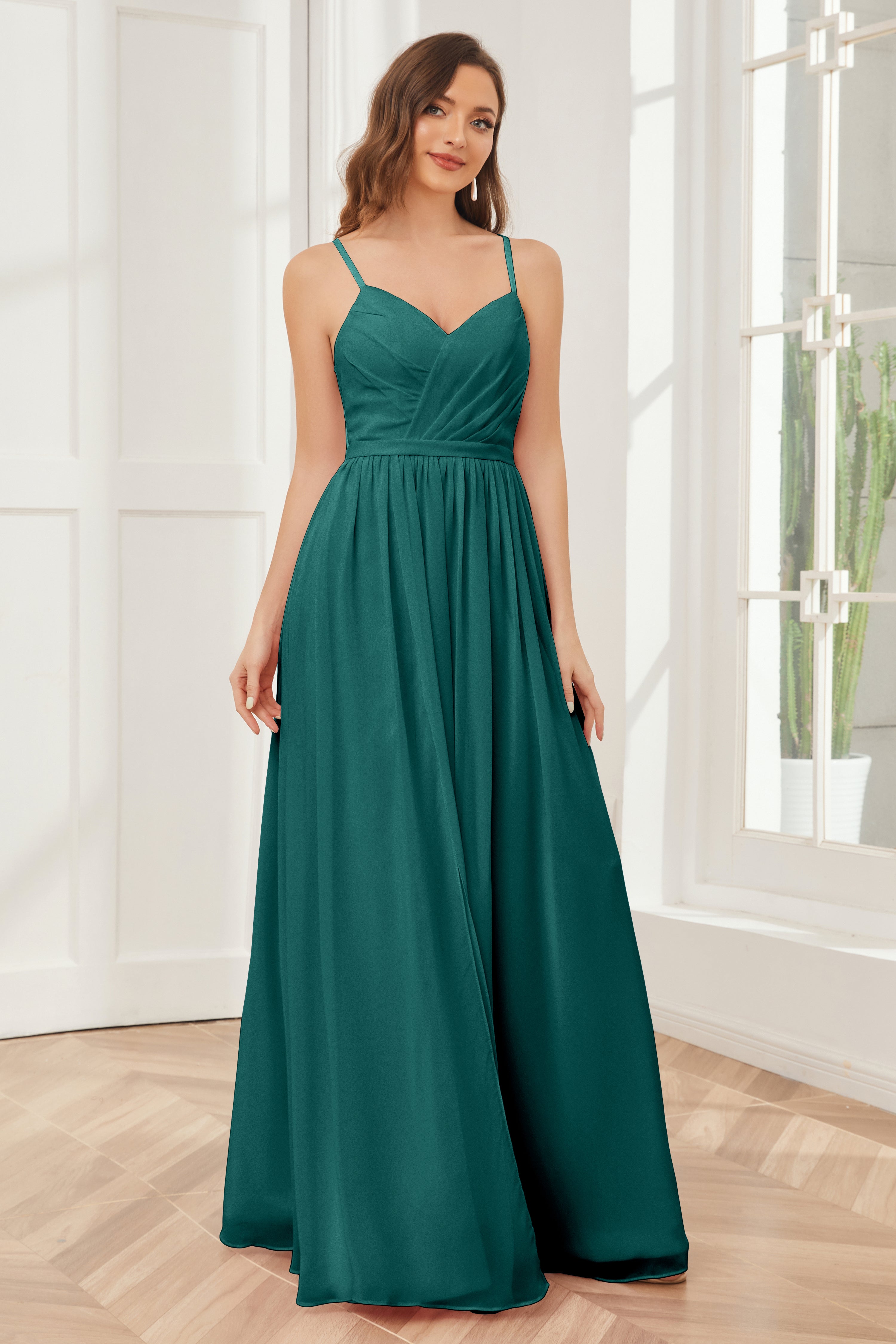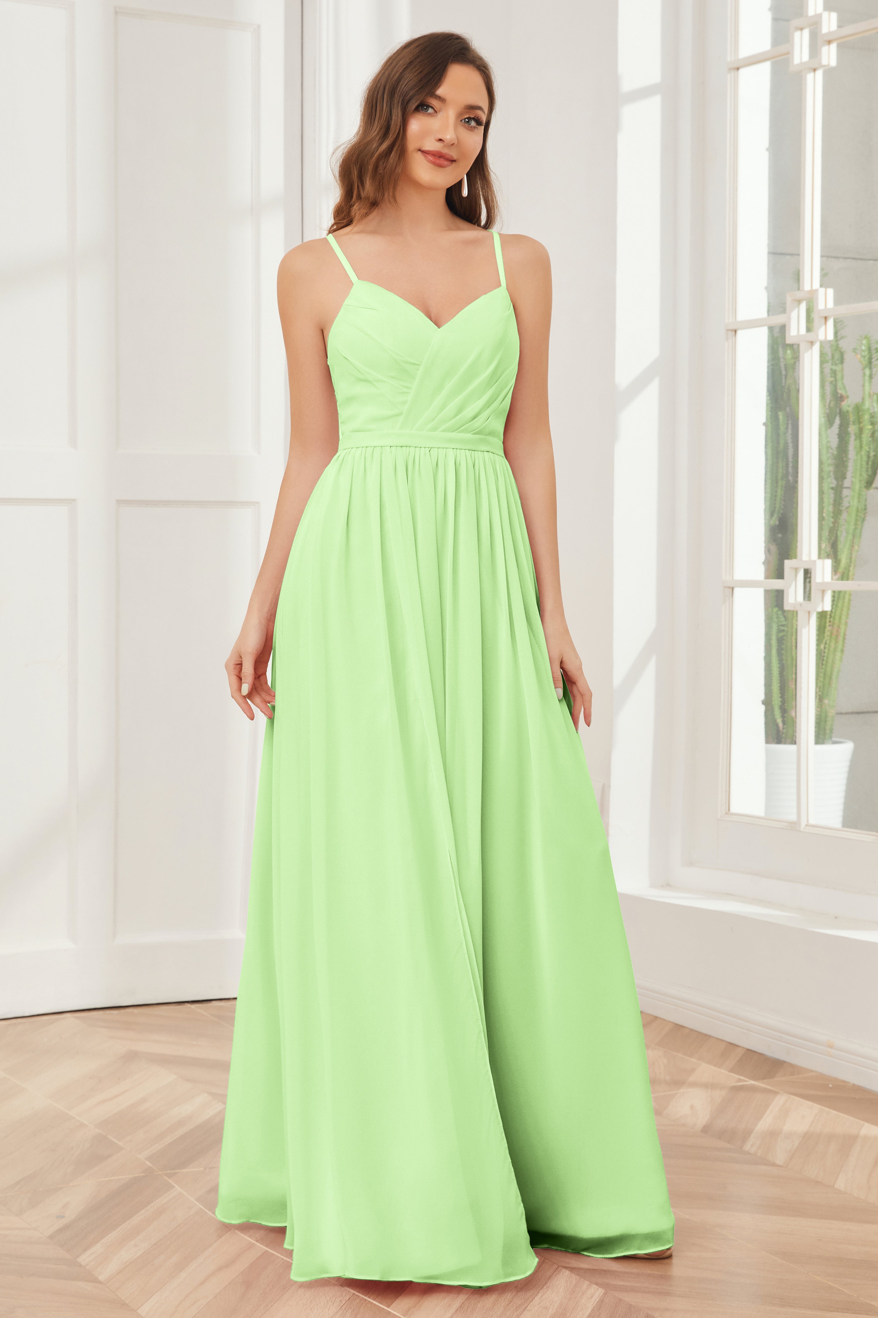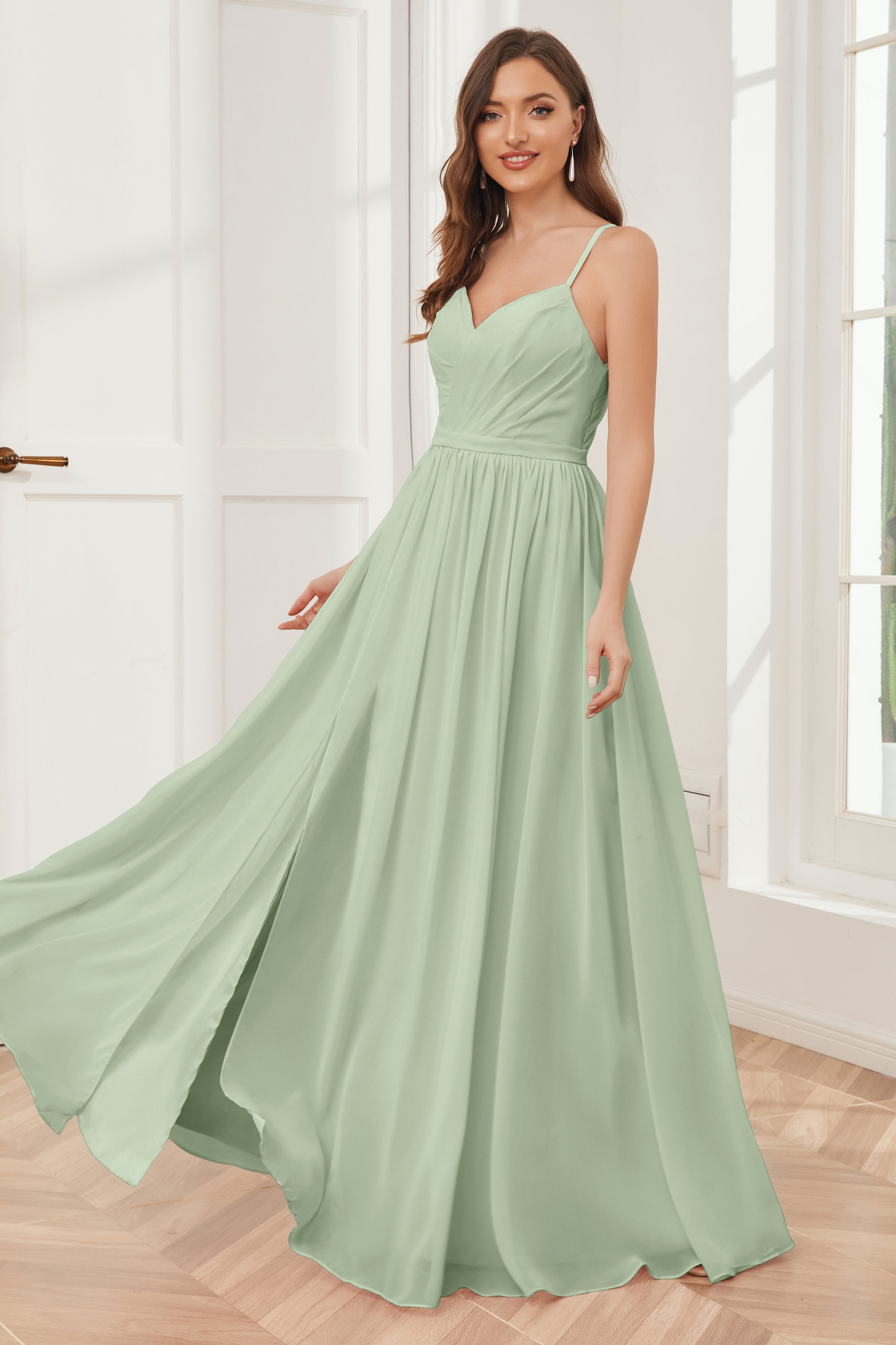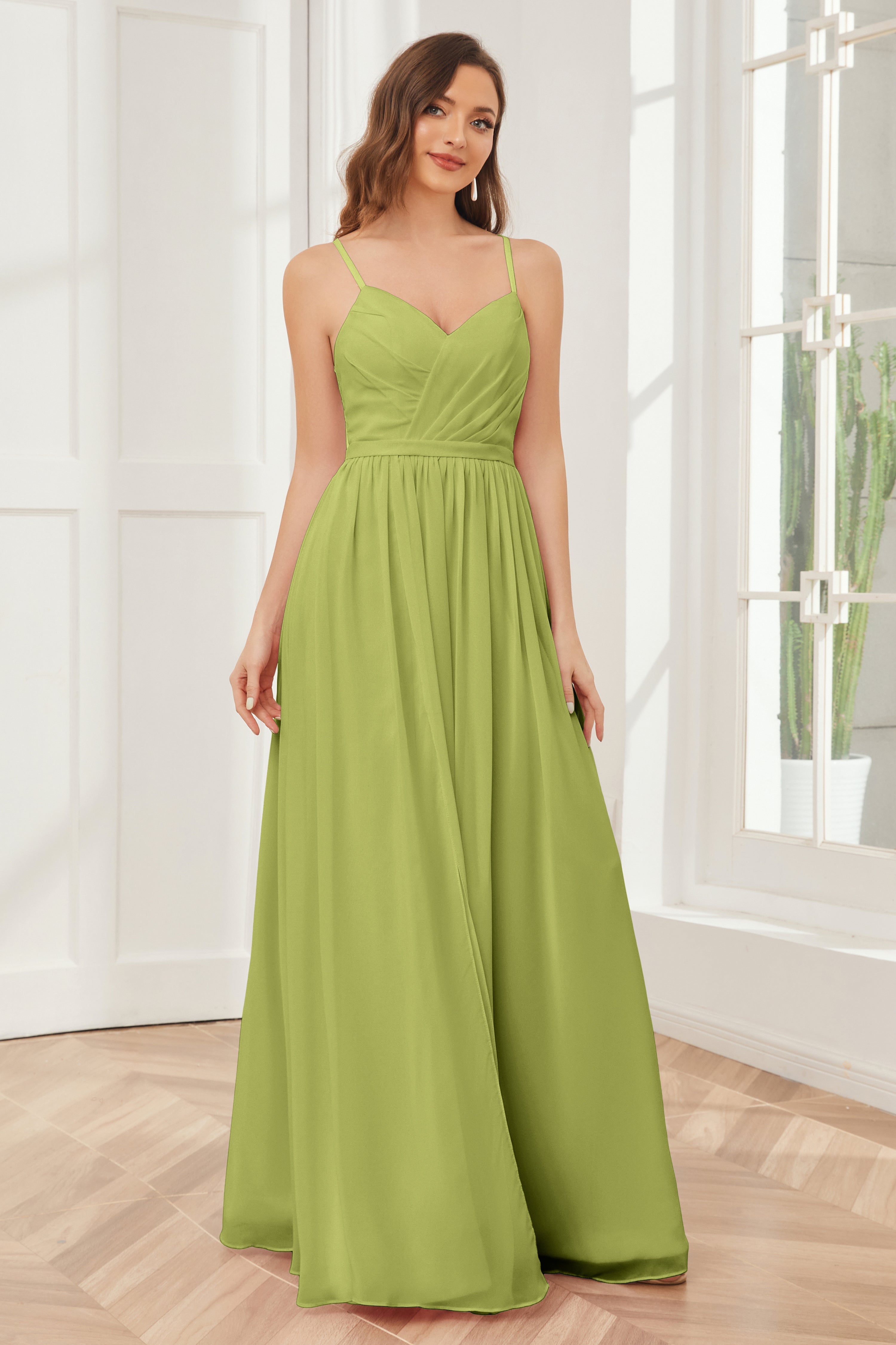 A-line Spaghetti Straps Chiffon Long Bridesmaid Dresses