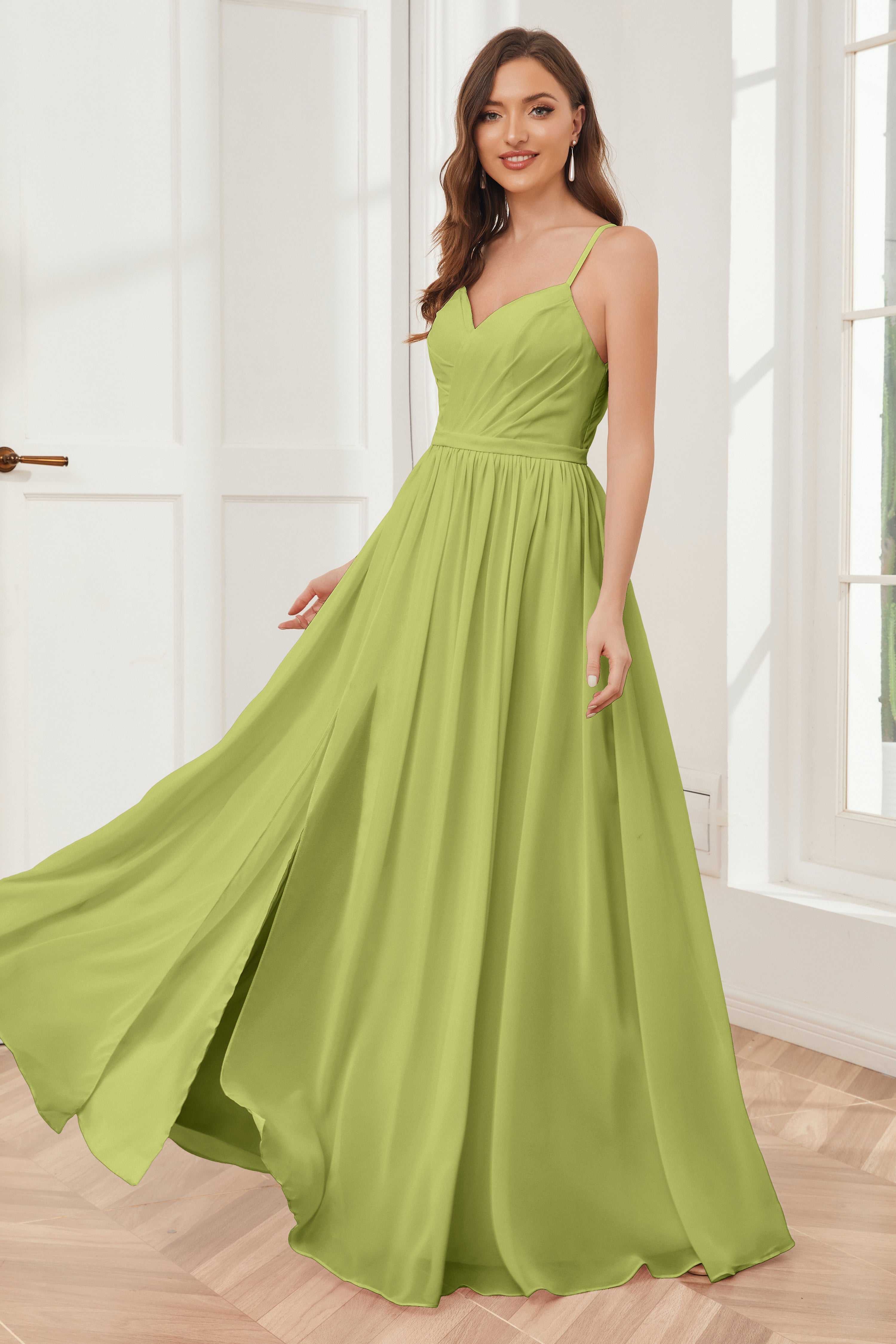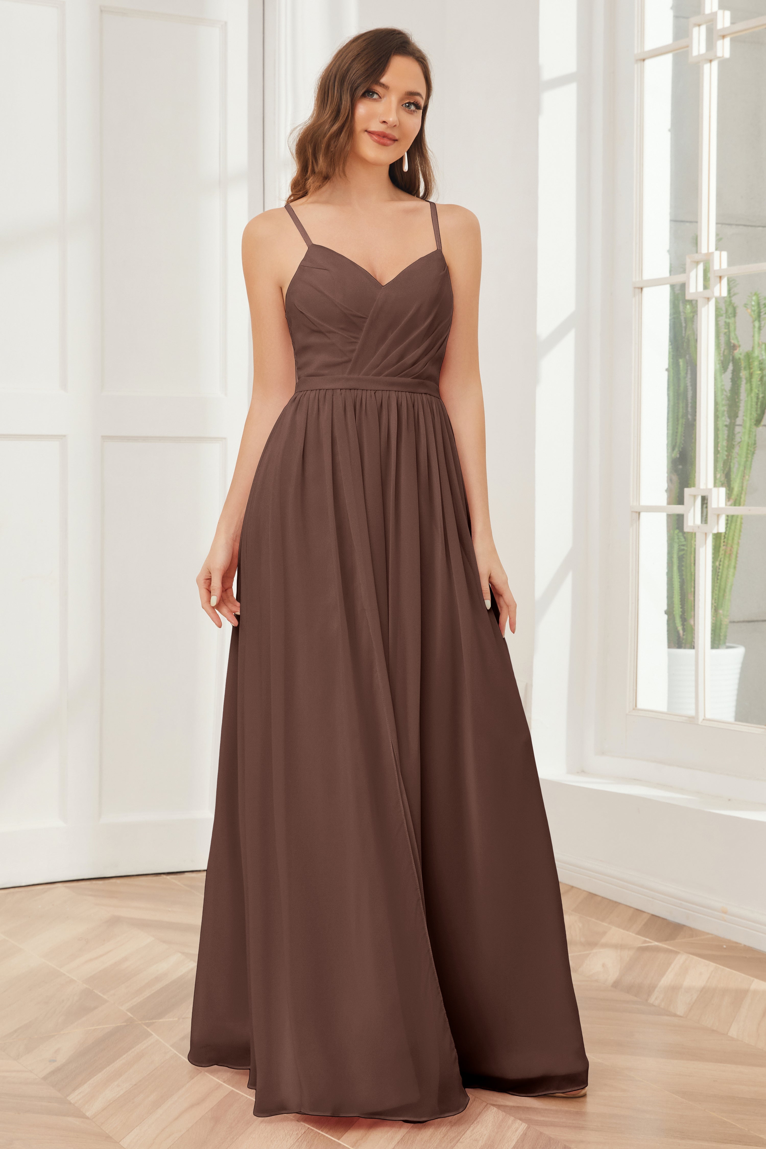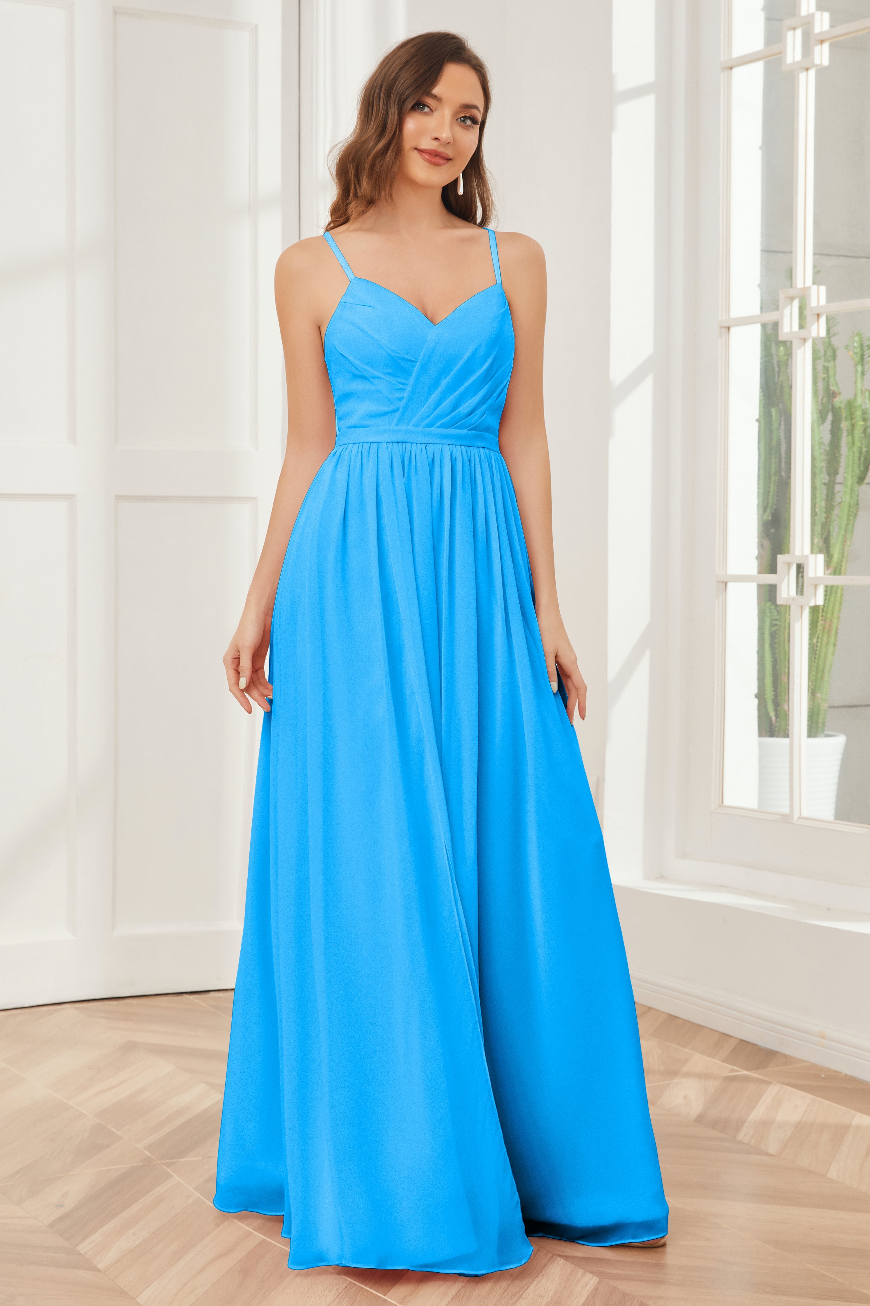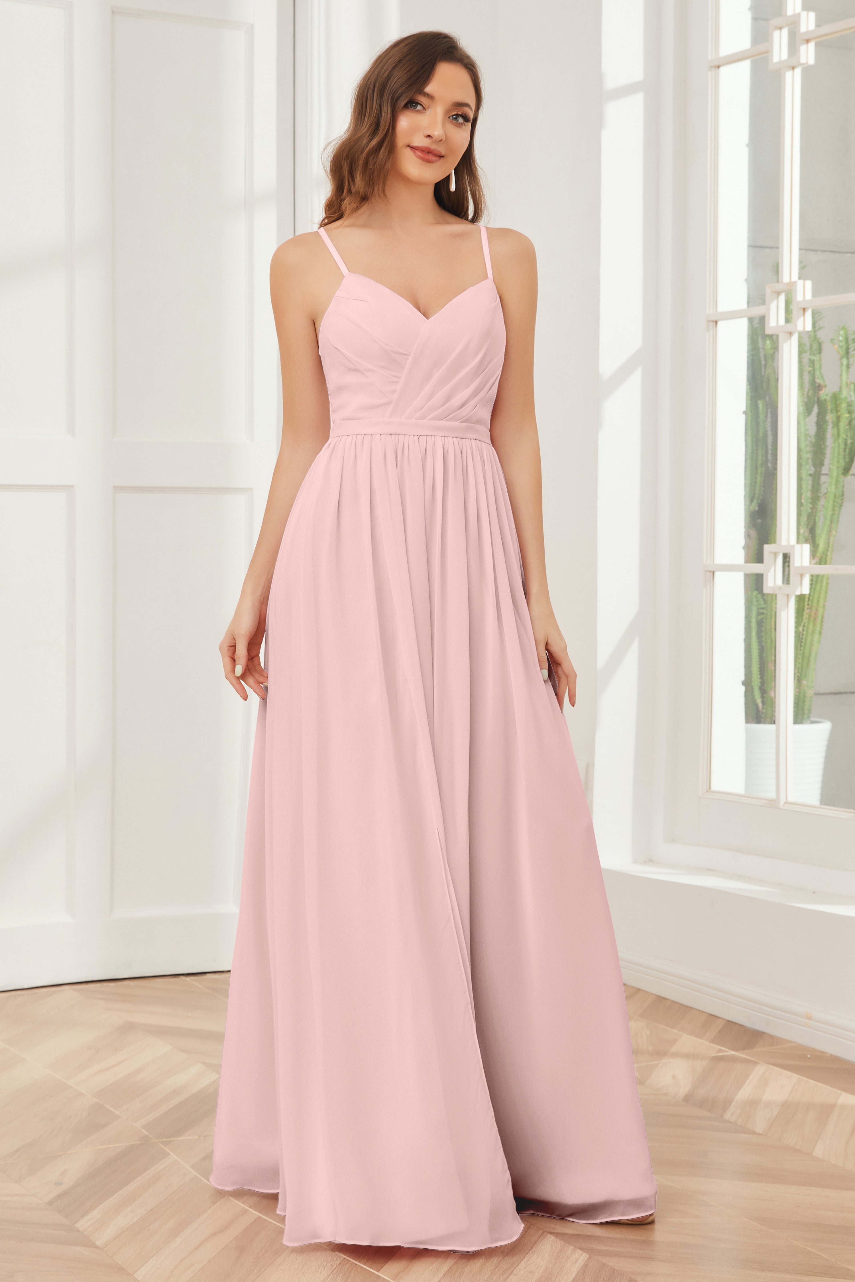 A-line Spaghetti Straps Chiffon Long Bridesmaid Dresses