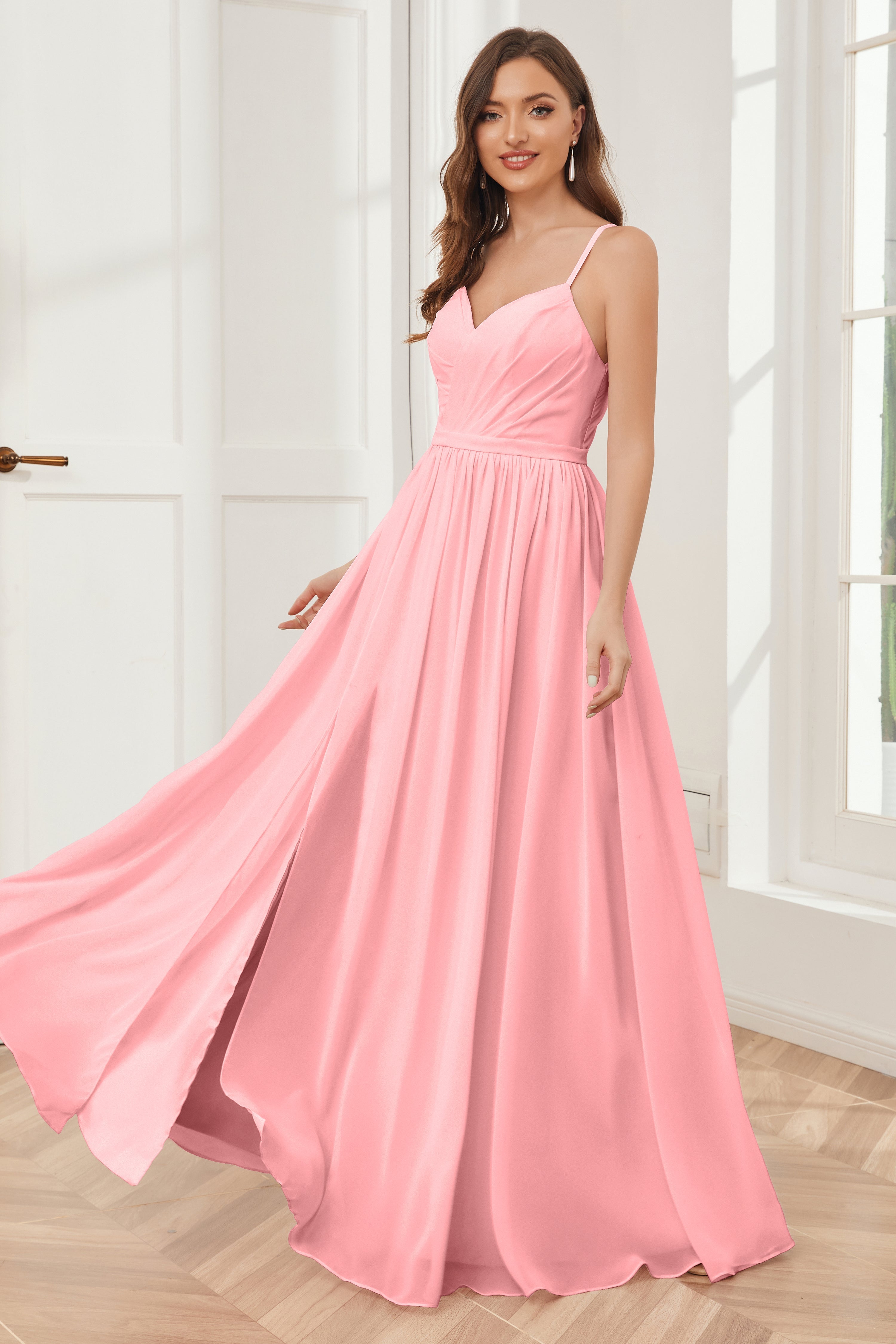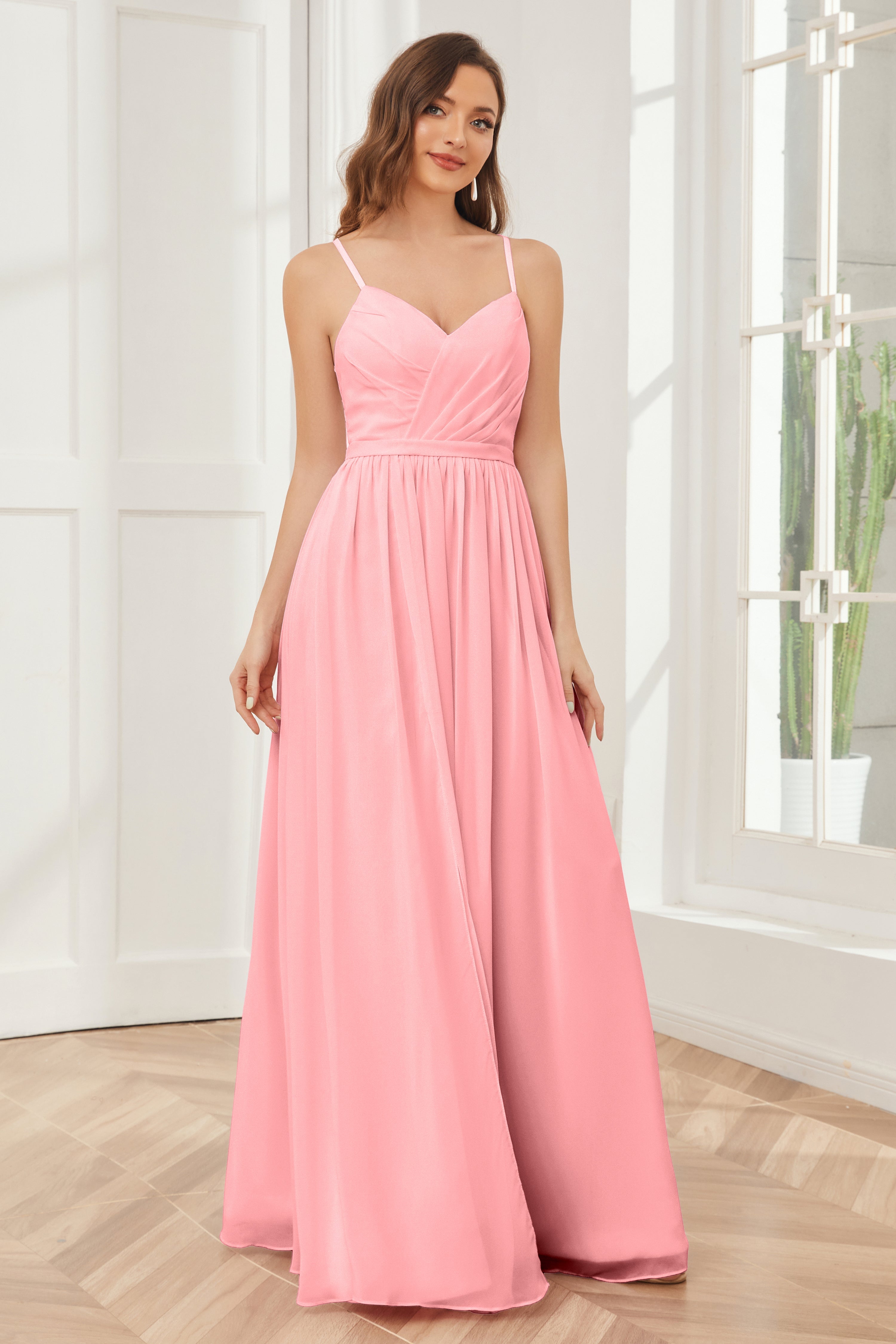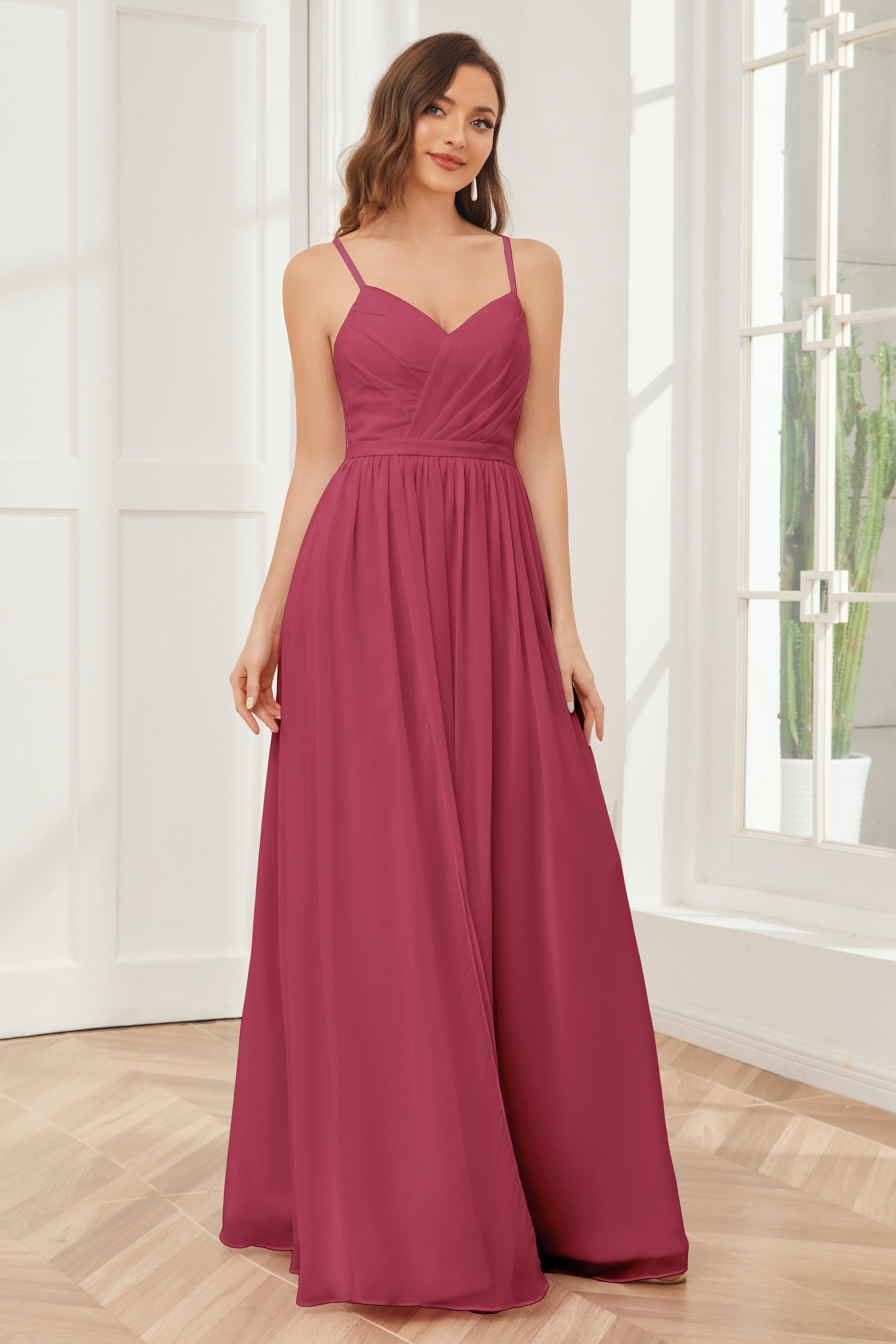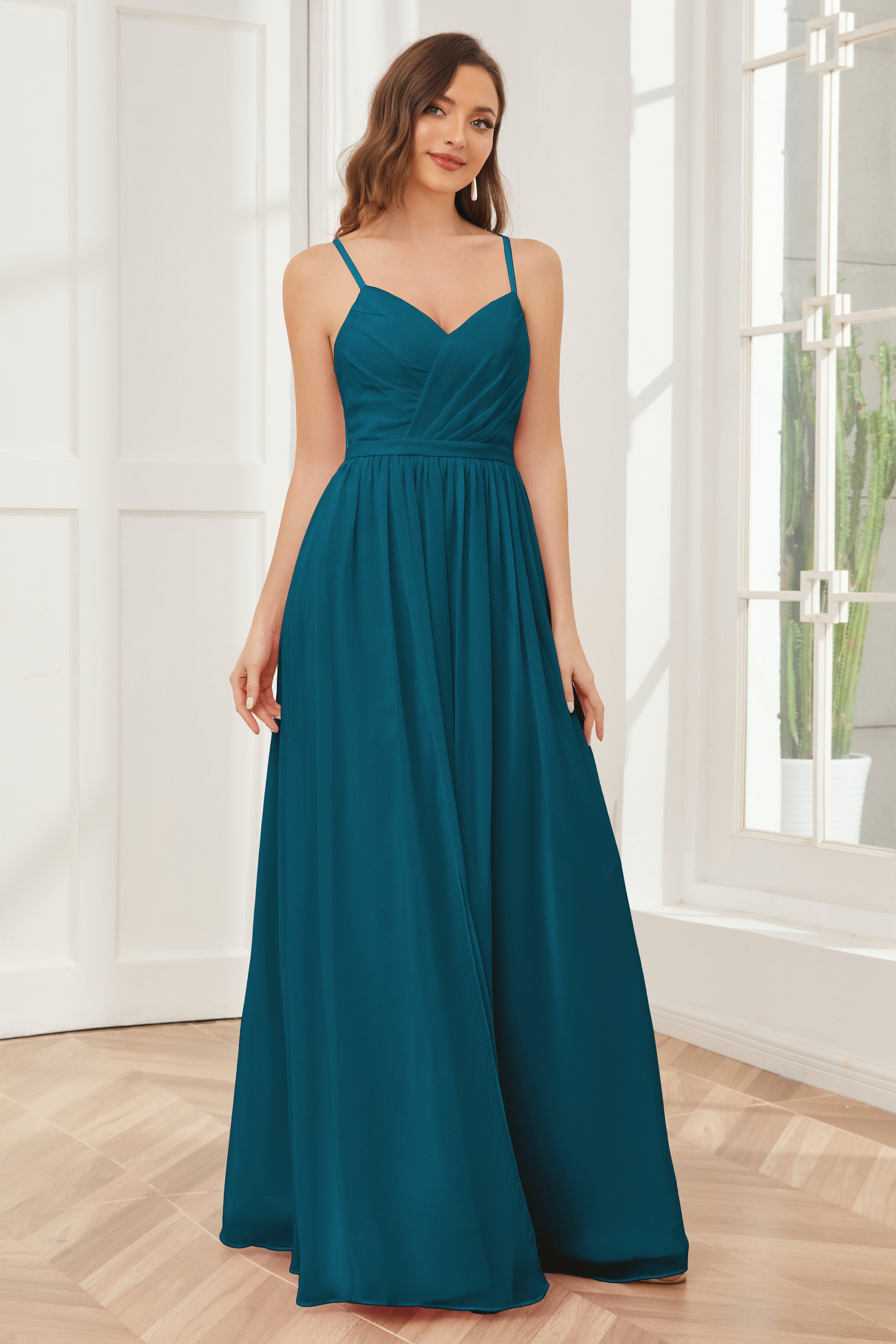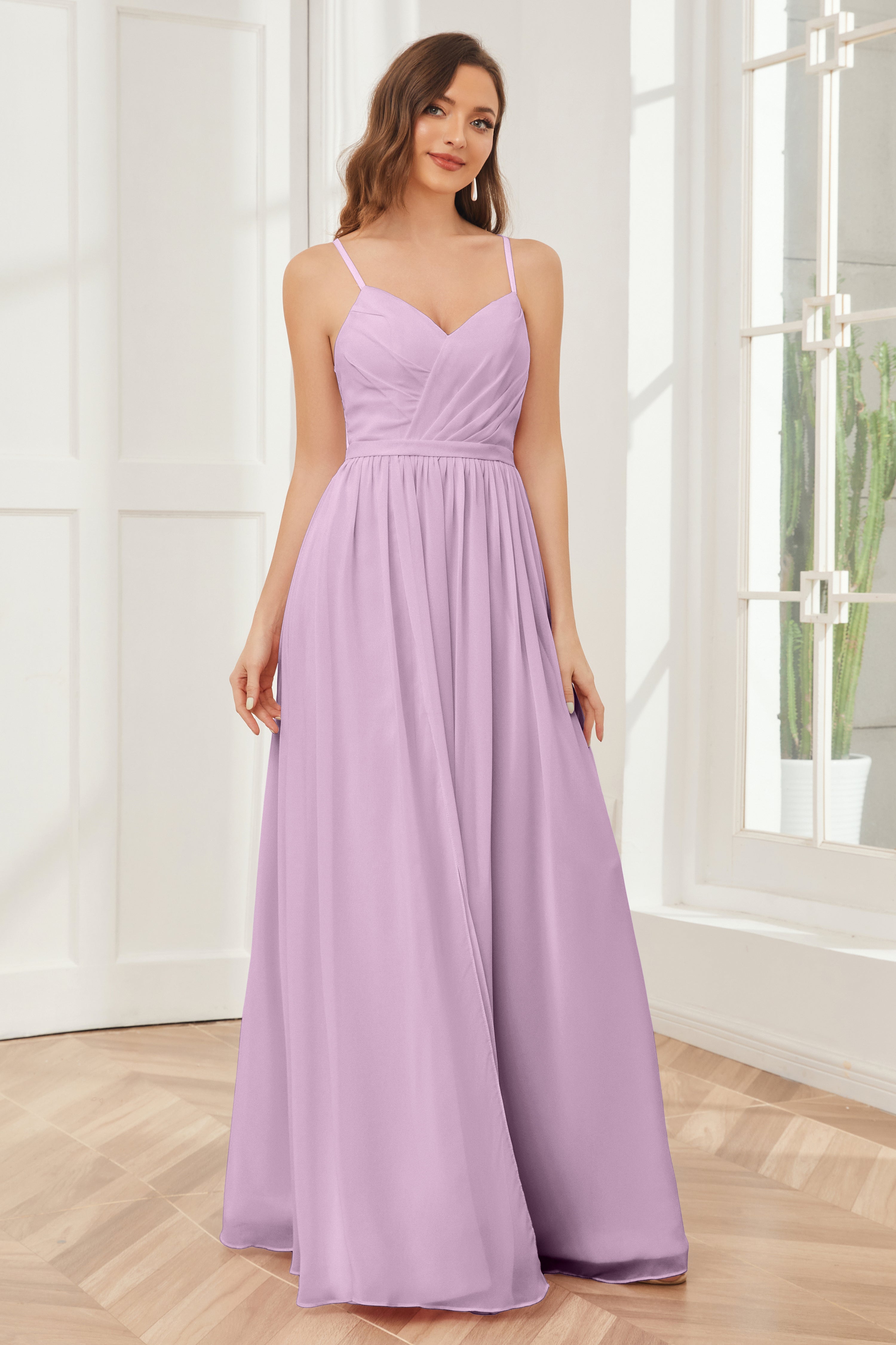 A-line Spaghetti Straps Chiffon Long Bridesmaid Dresses