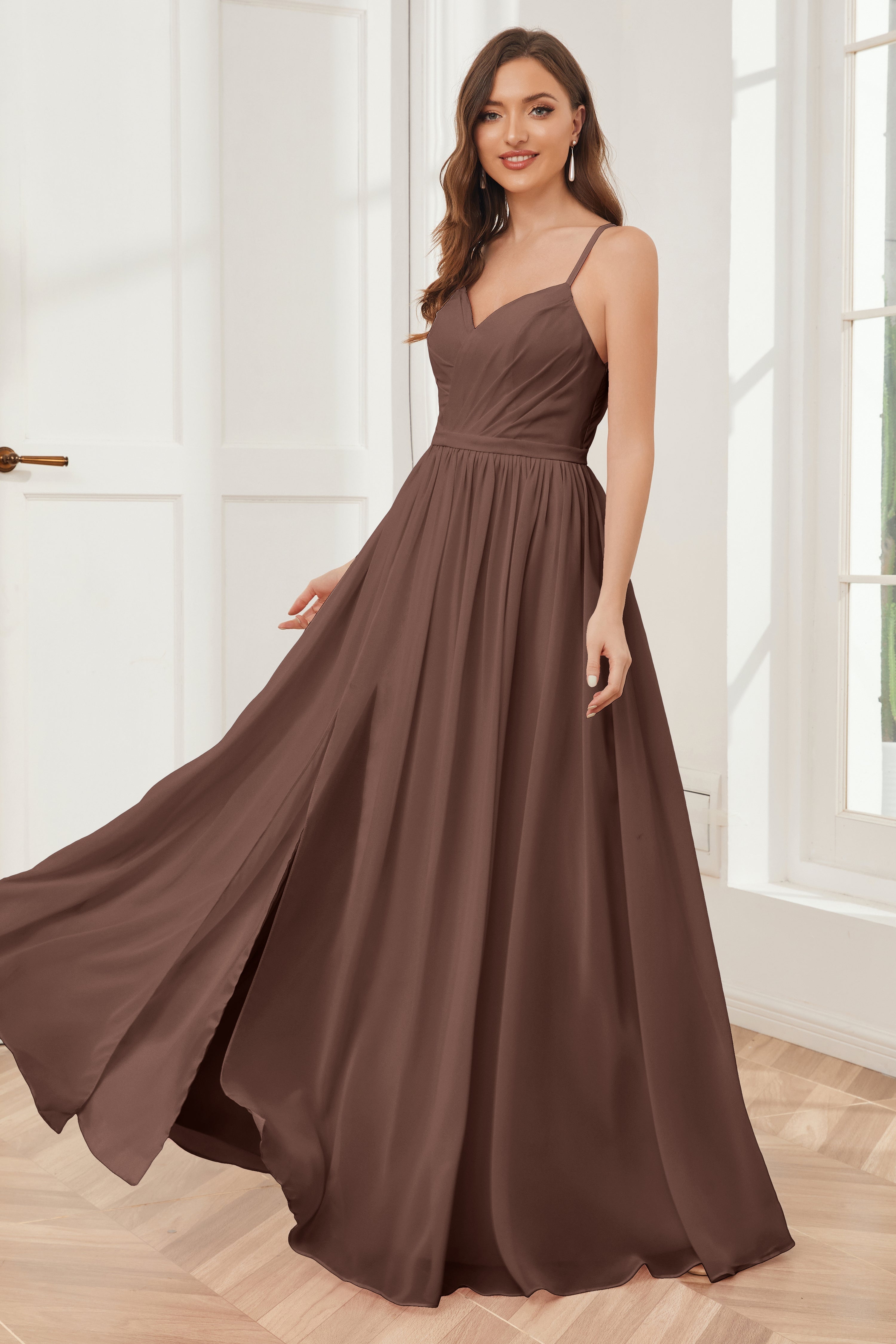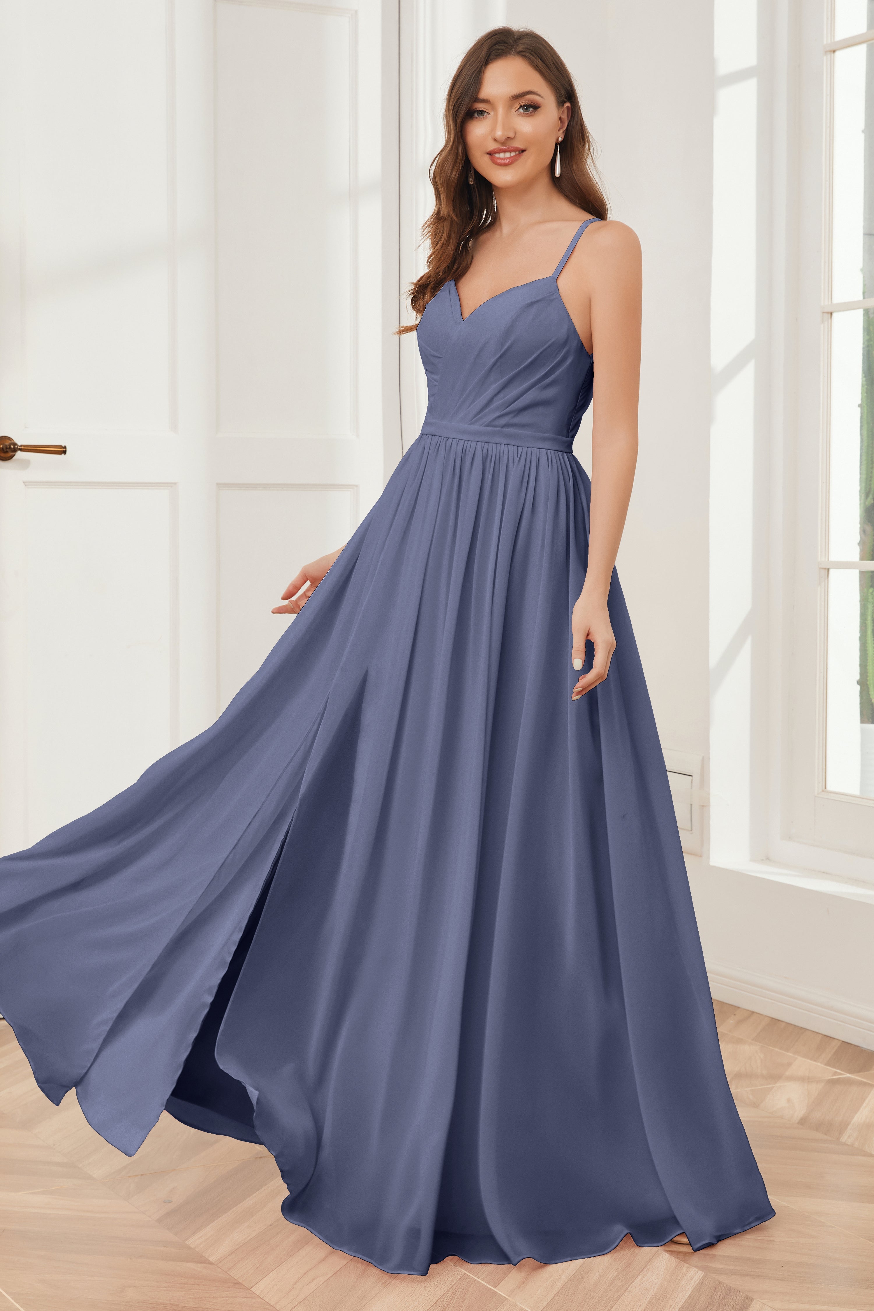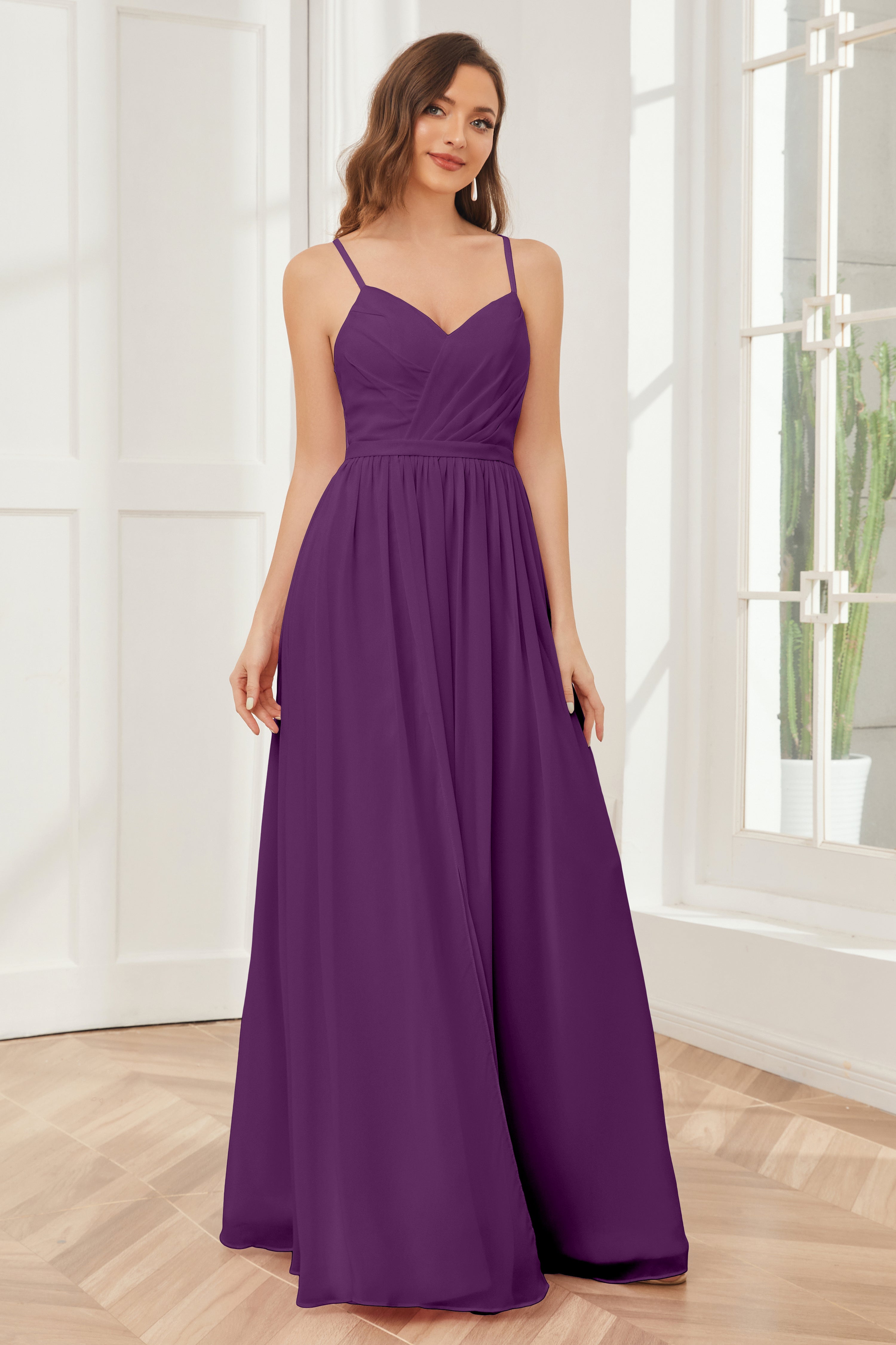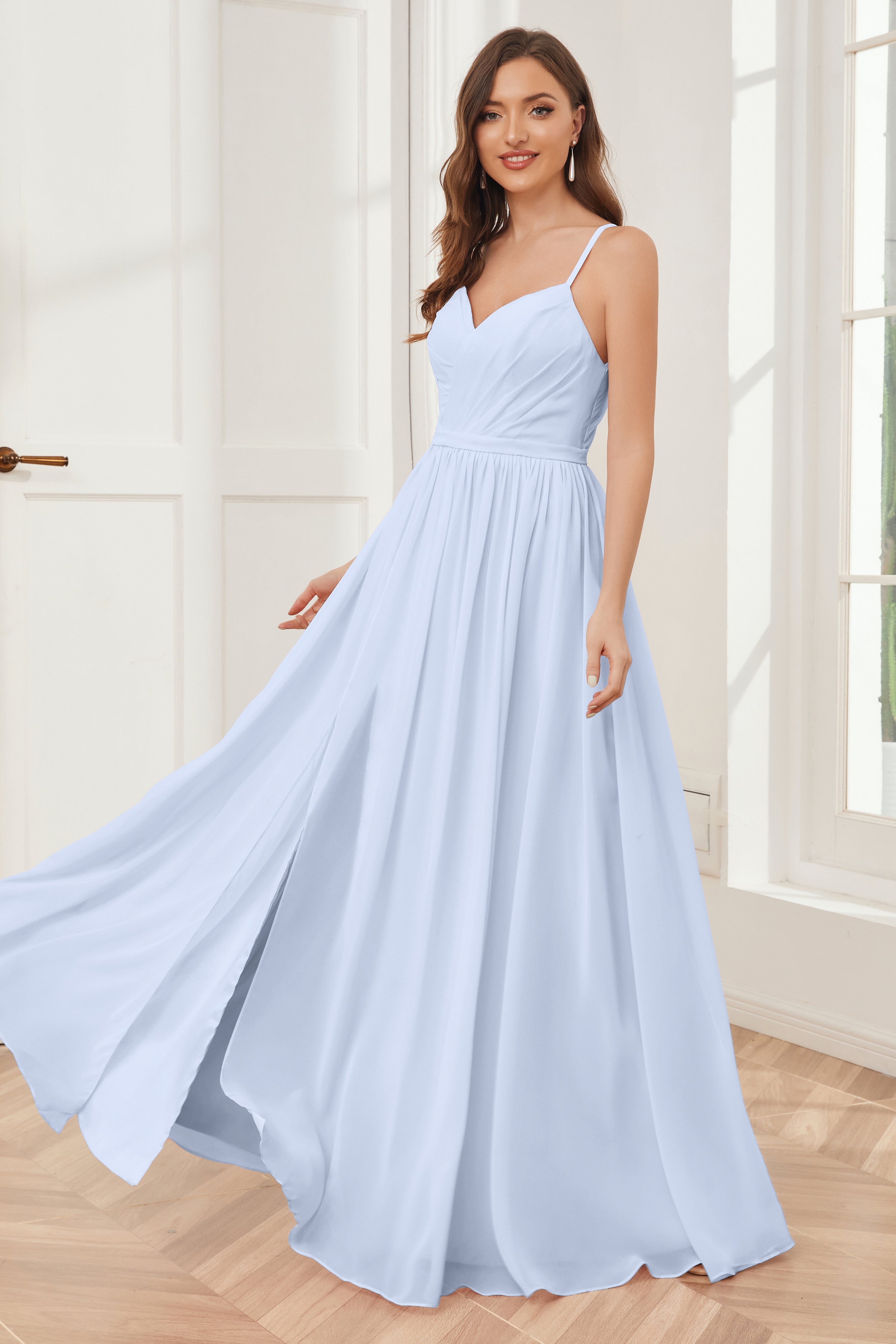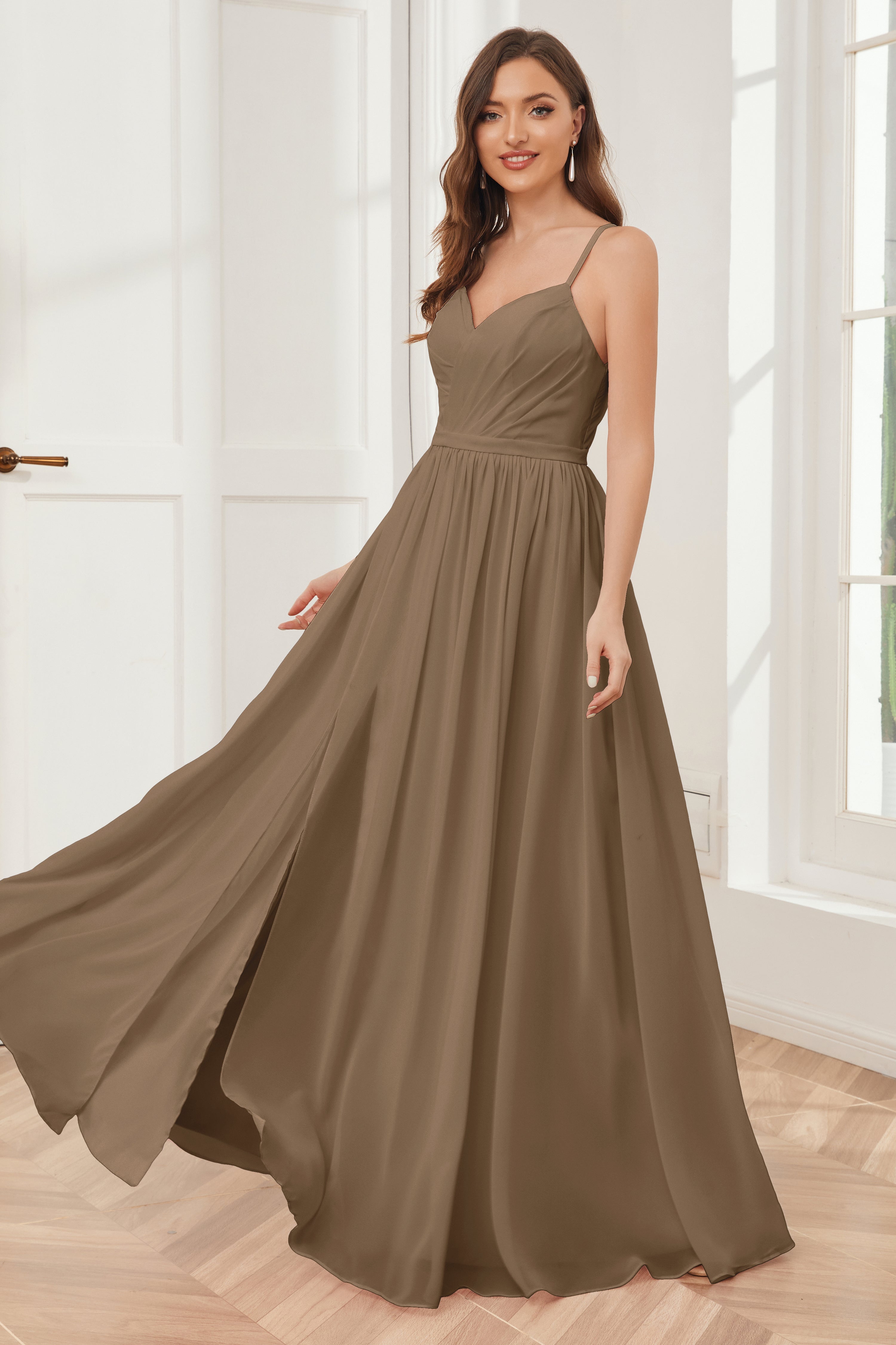 A-line Spaghetti Straps Chiffon Long Bridesmaid Dresses