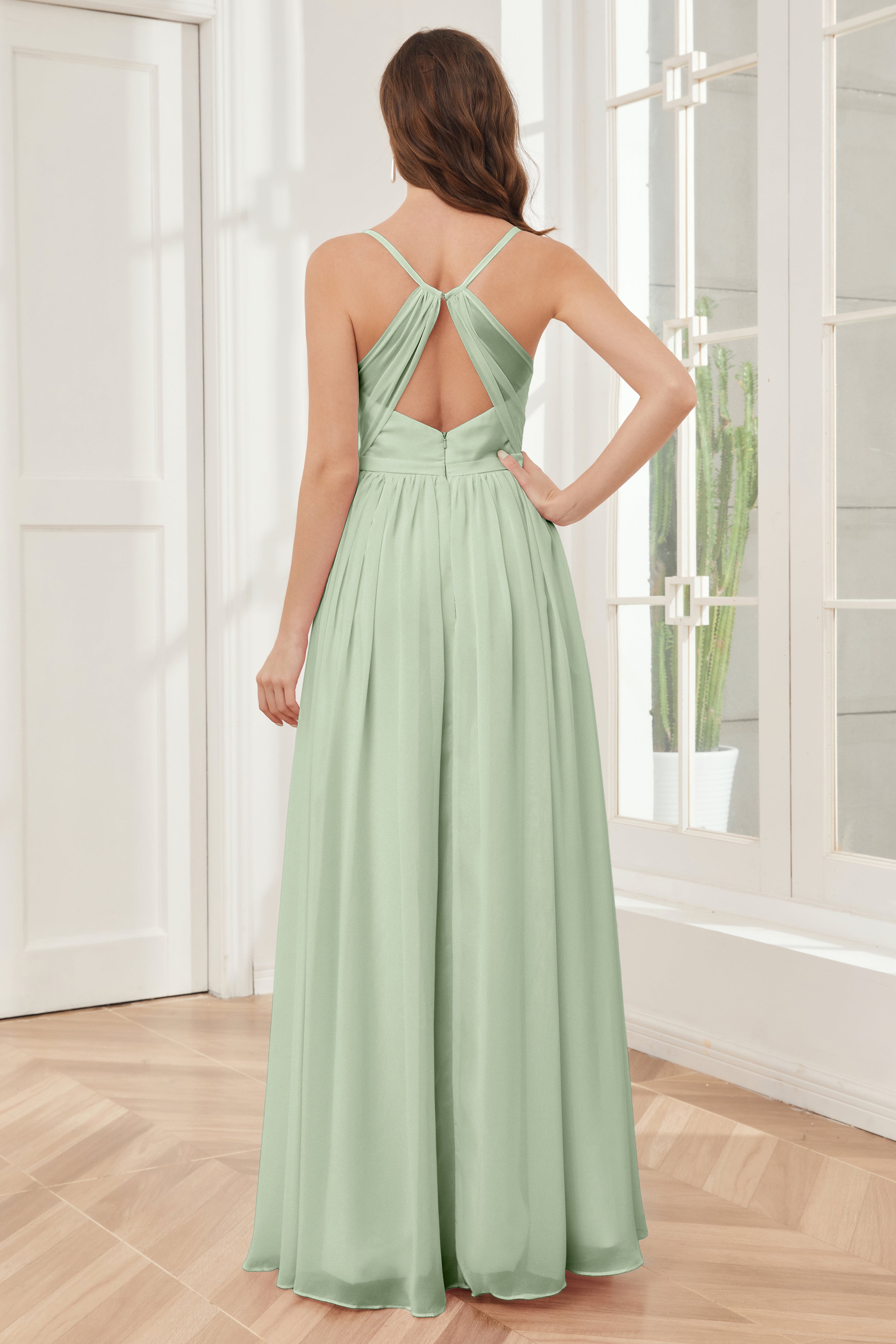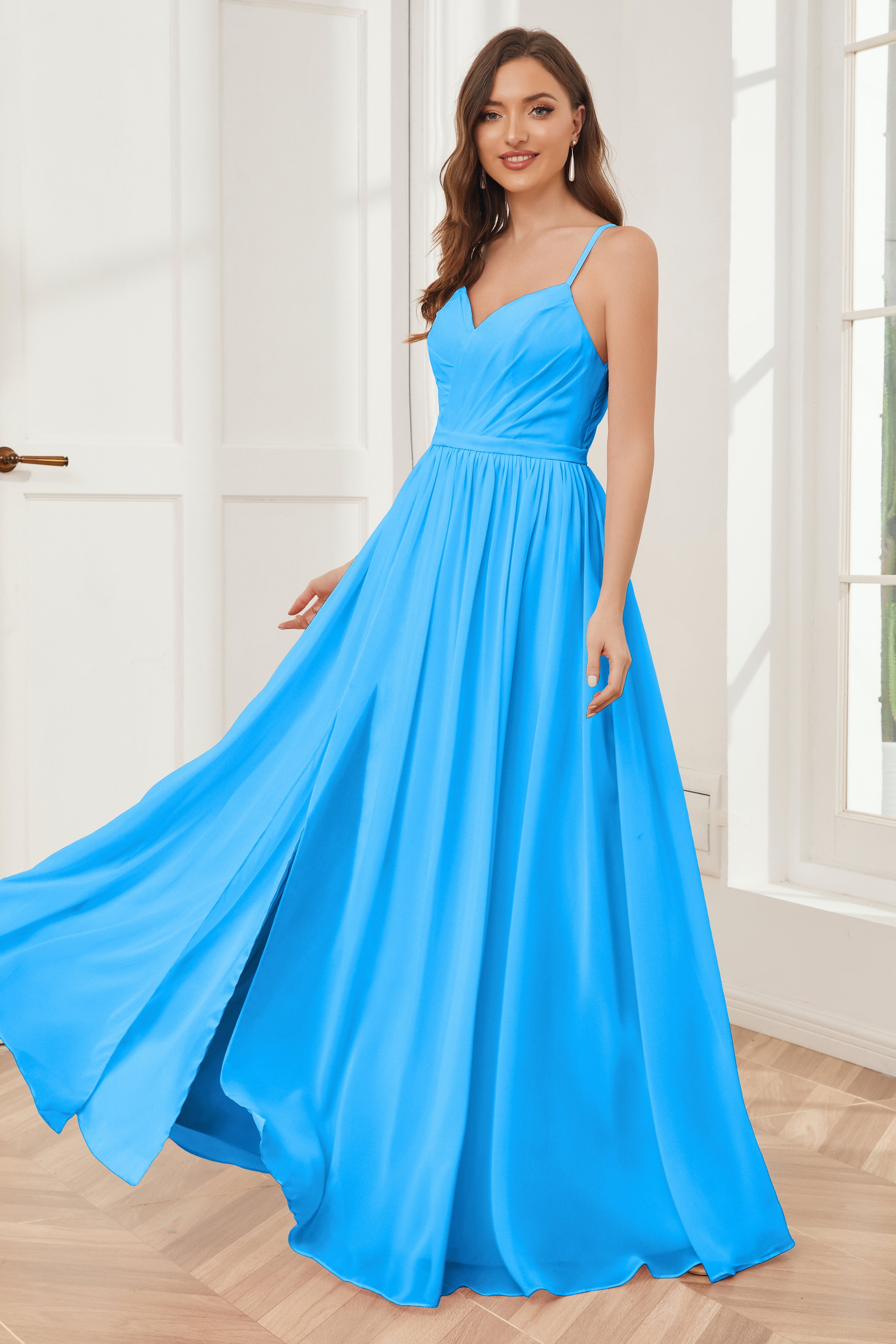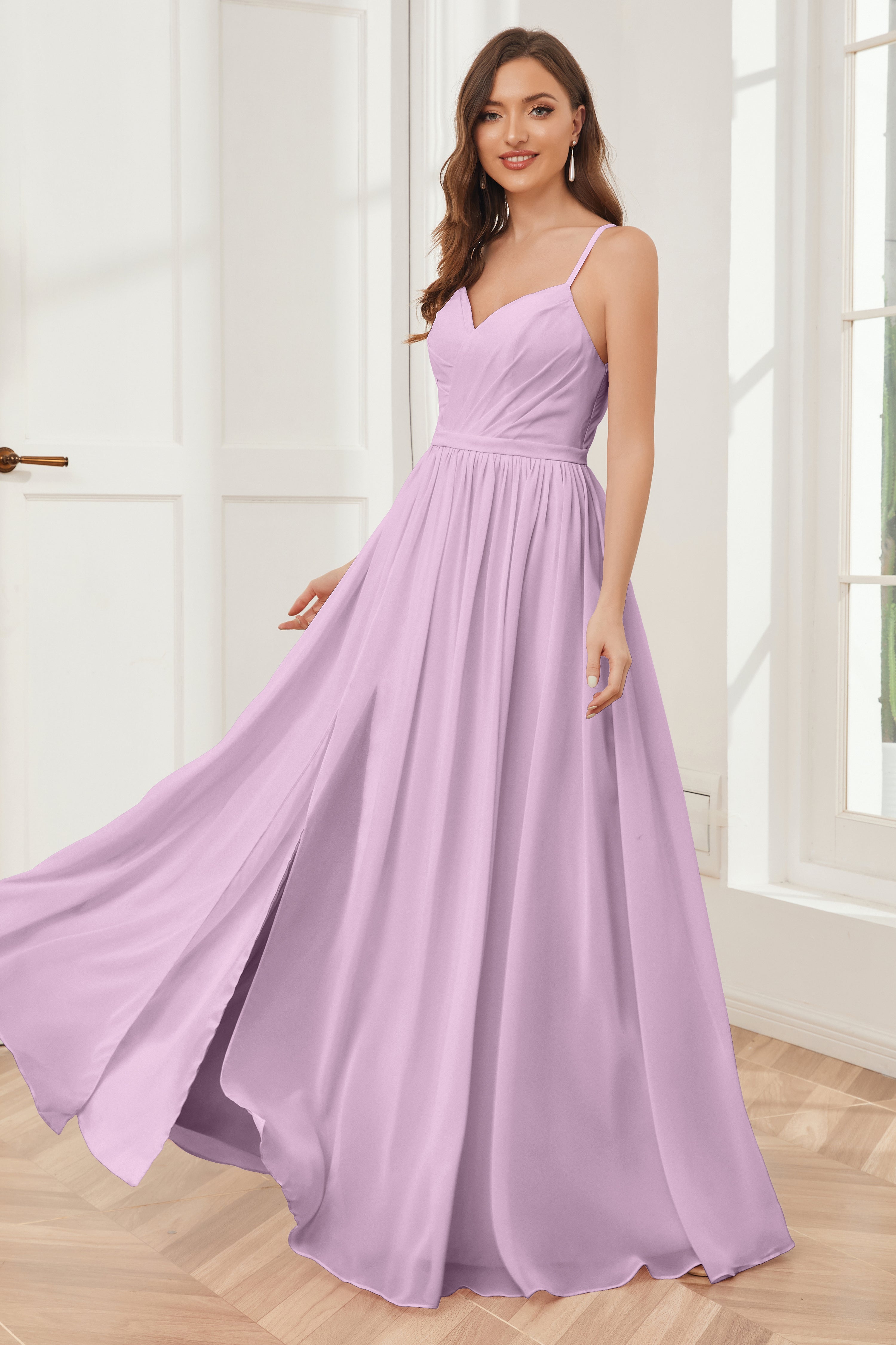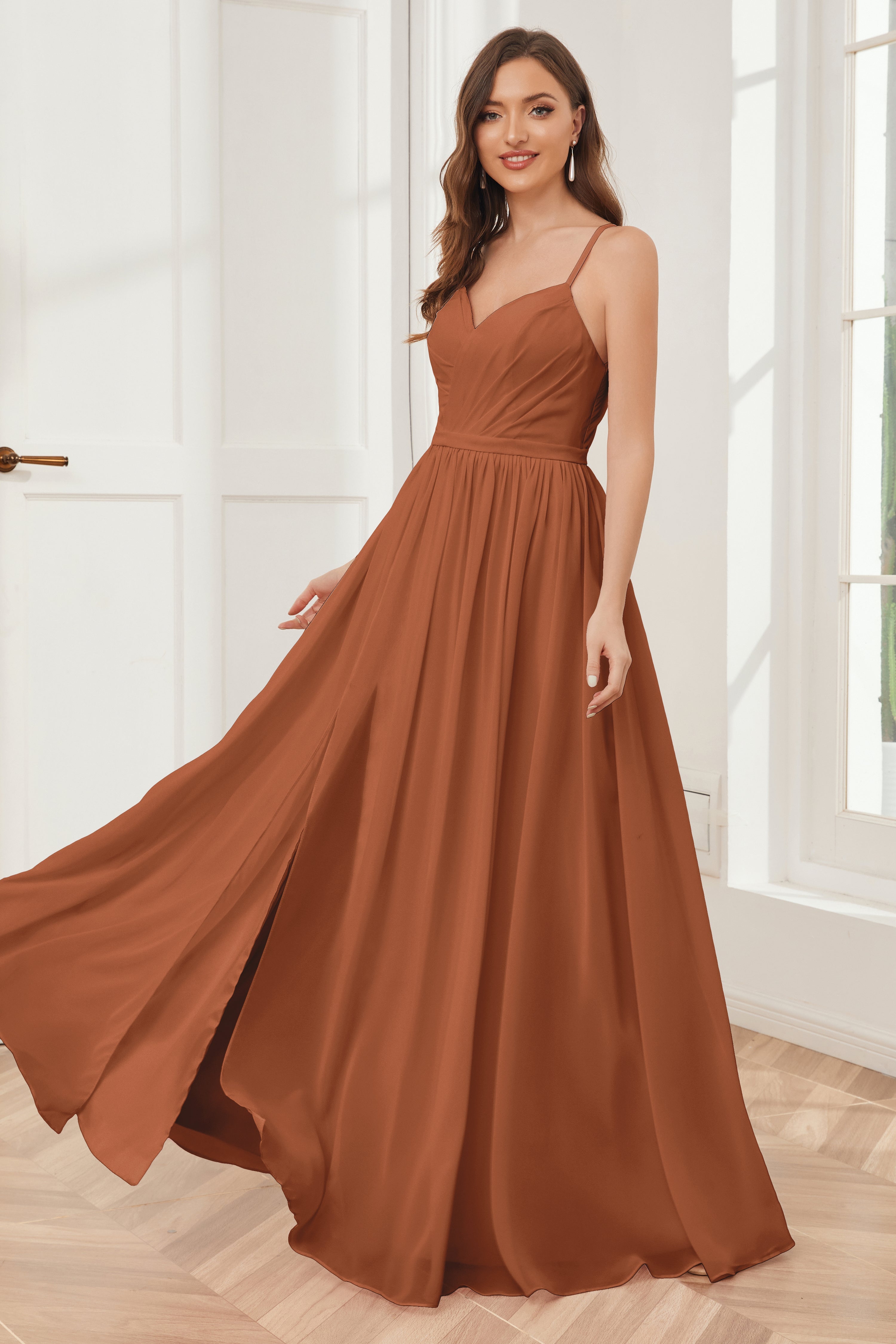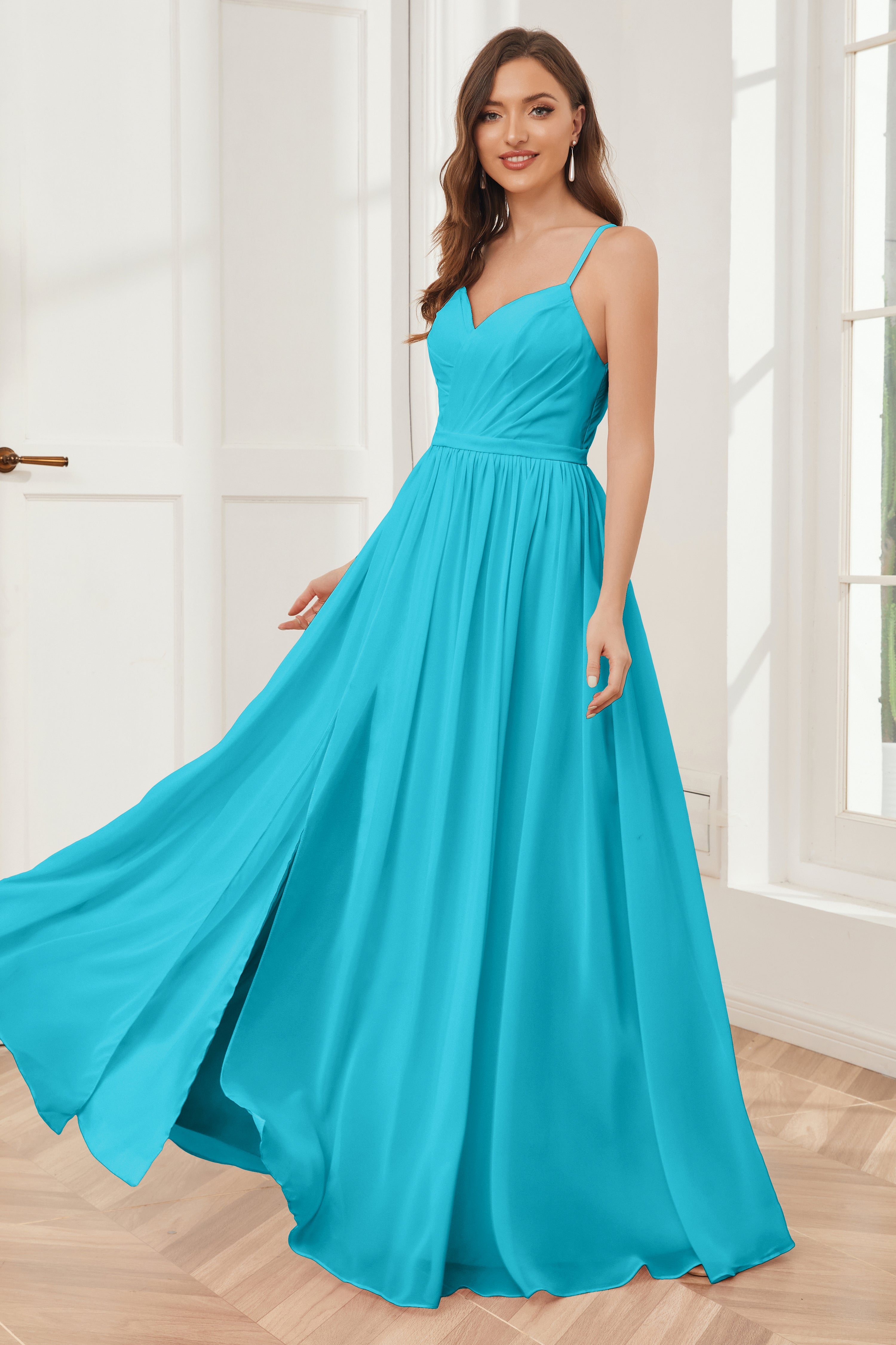 A-line Spaghetti Straps Chiffon Long Bridesmaid Dresses
