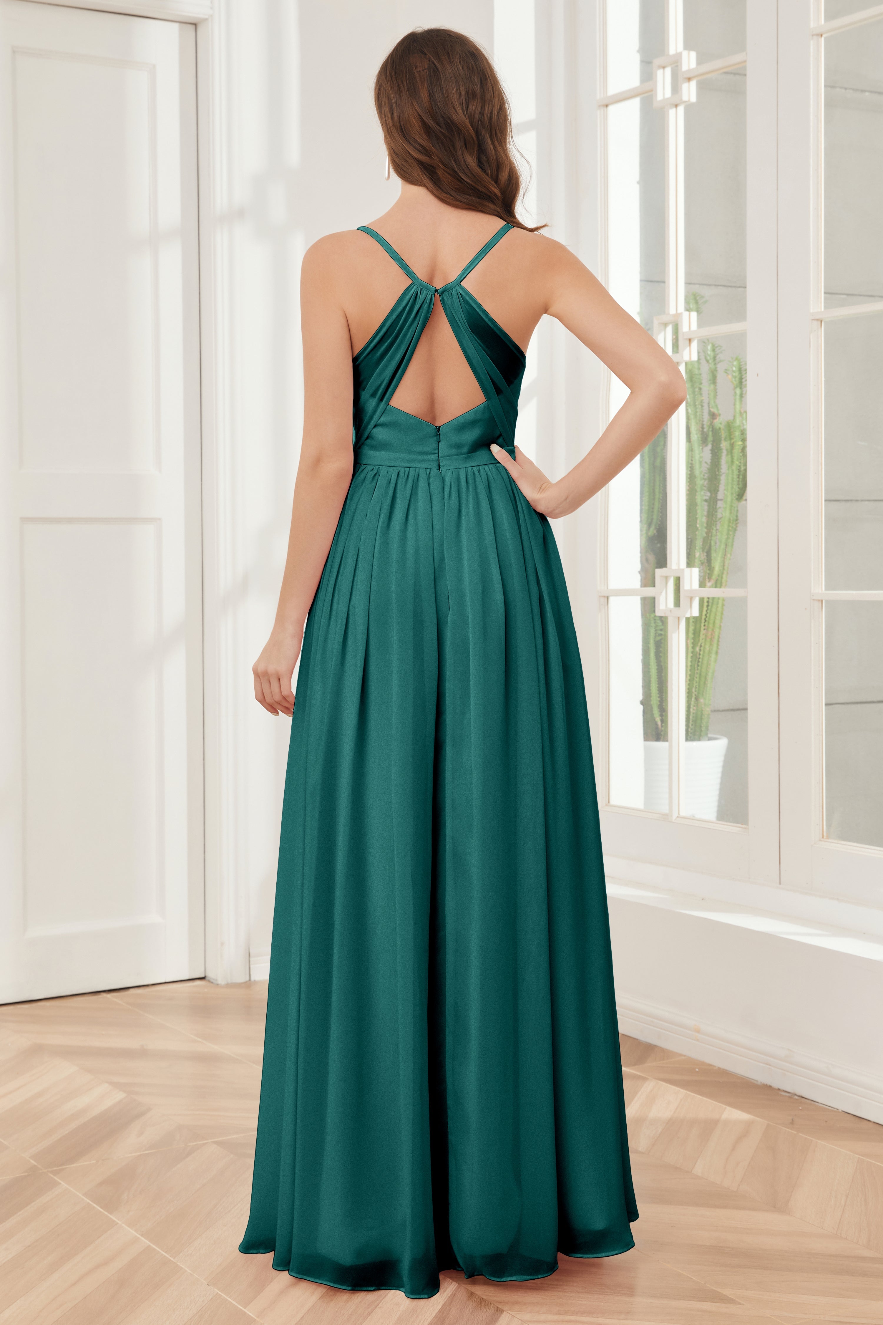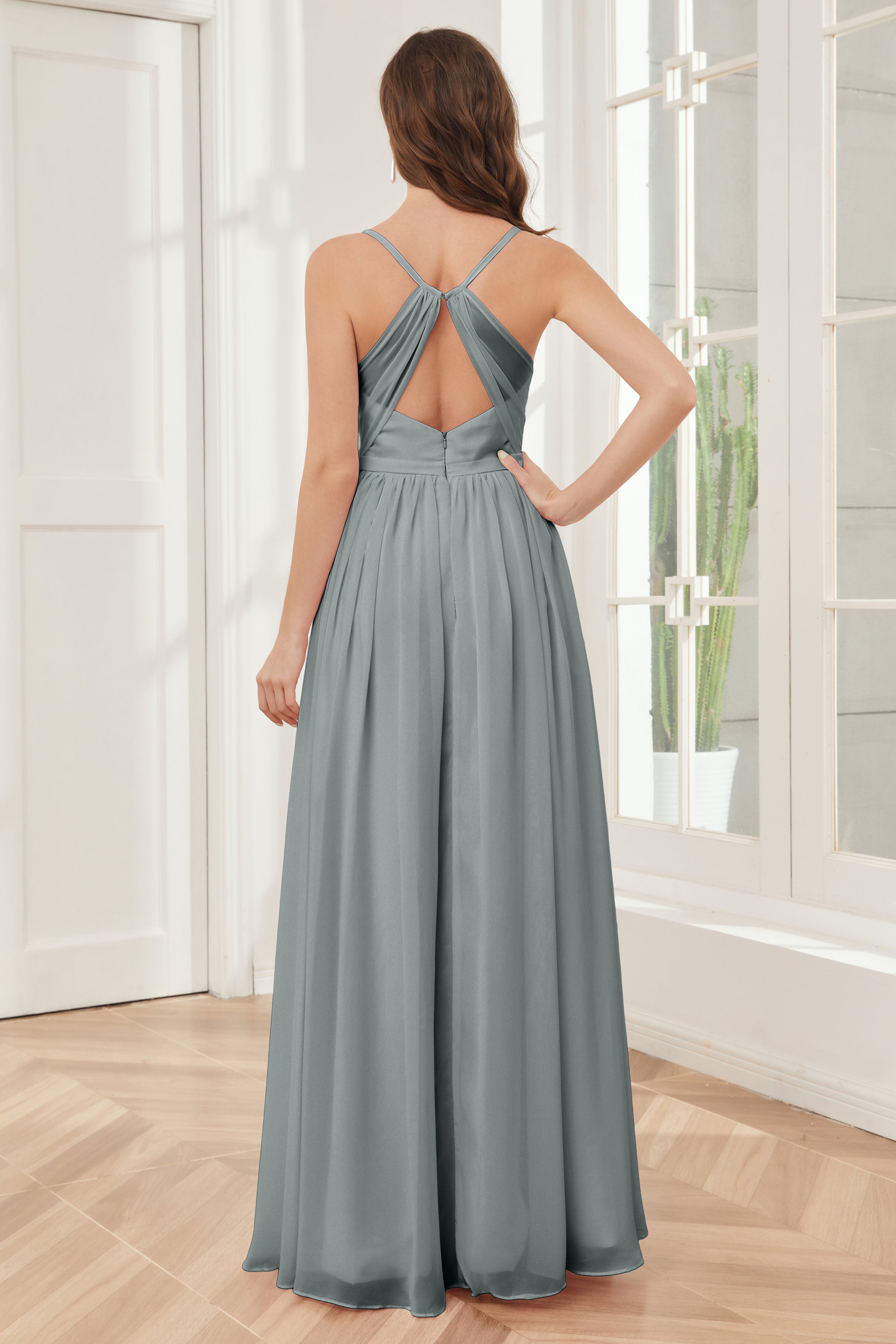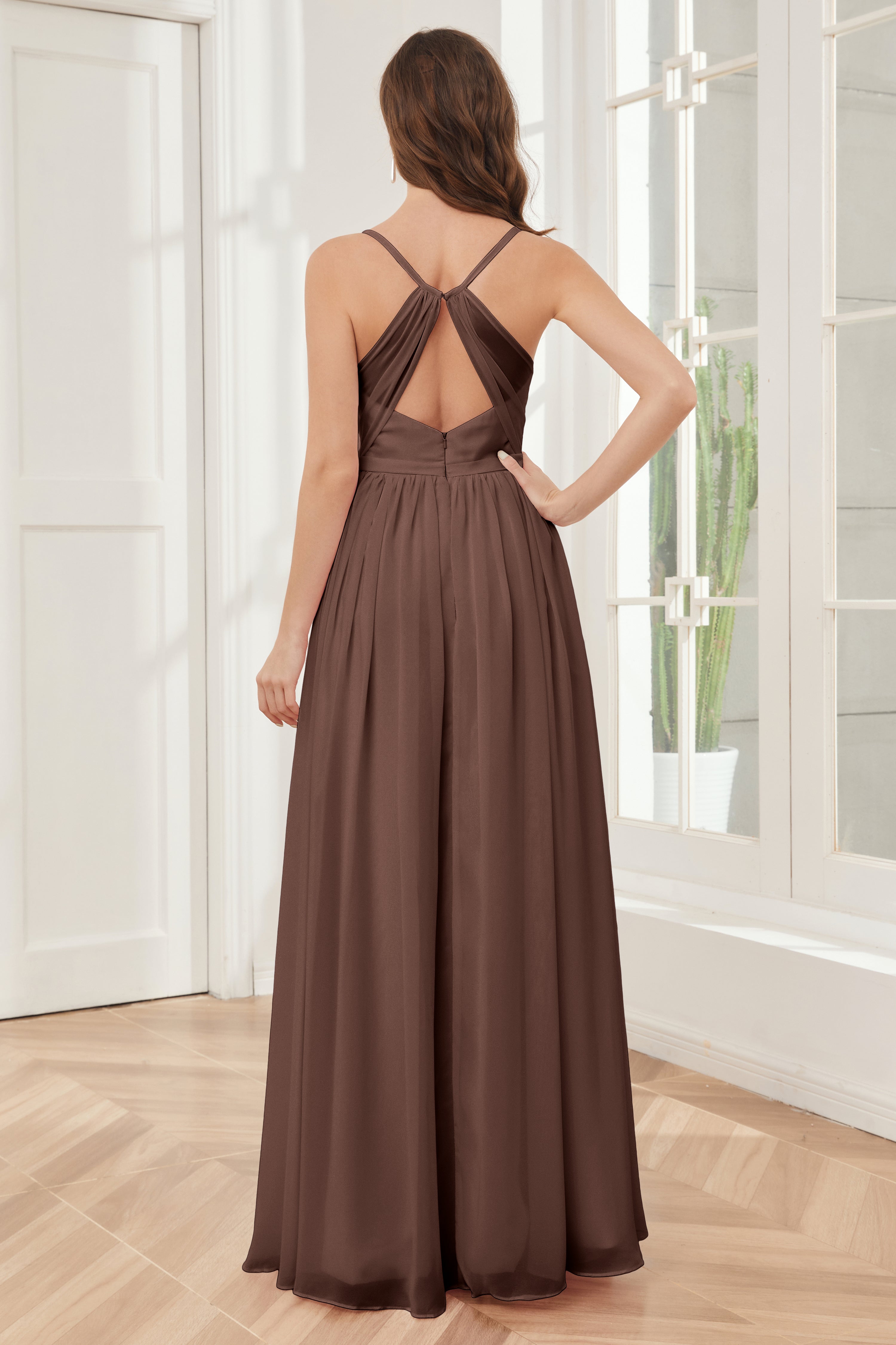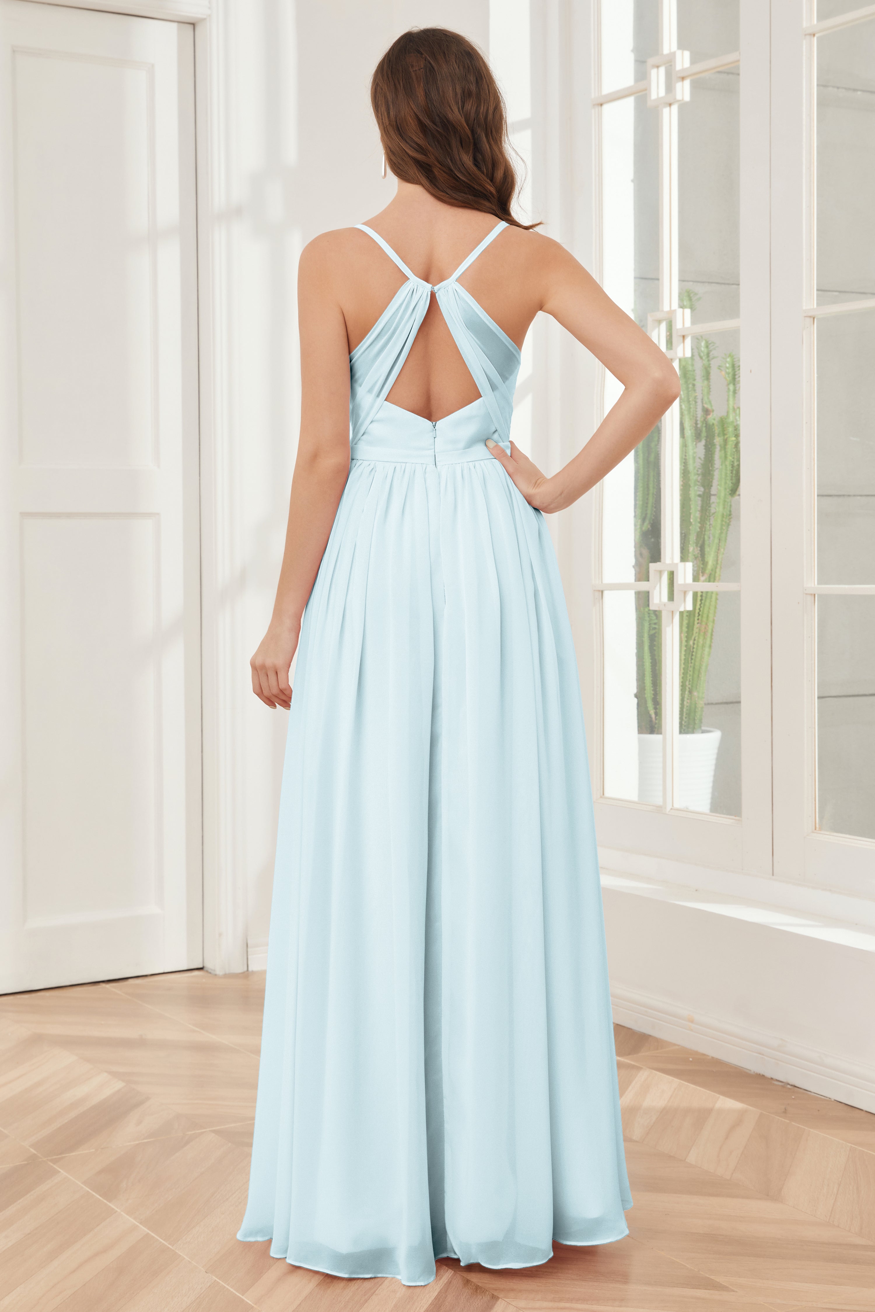 A-line Spaghetti Straps Chiffon Long Bridesmaid Dresses