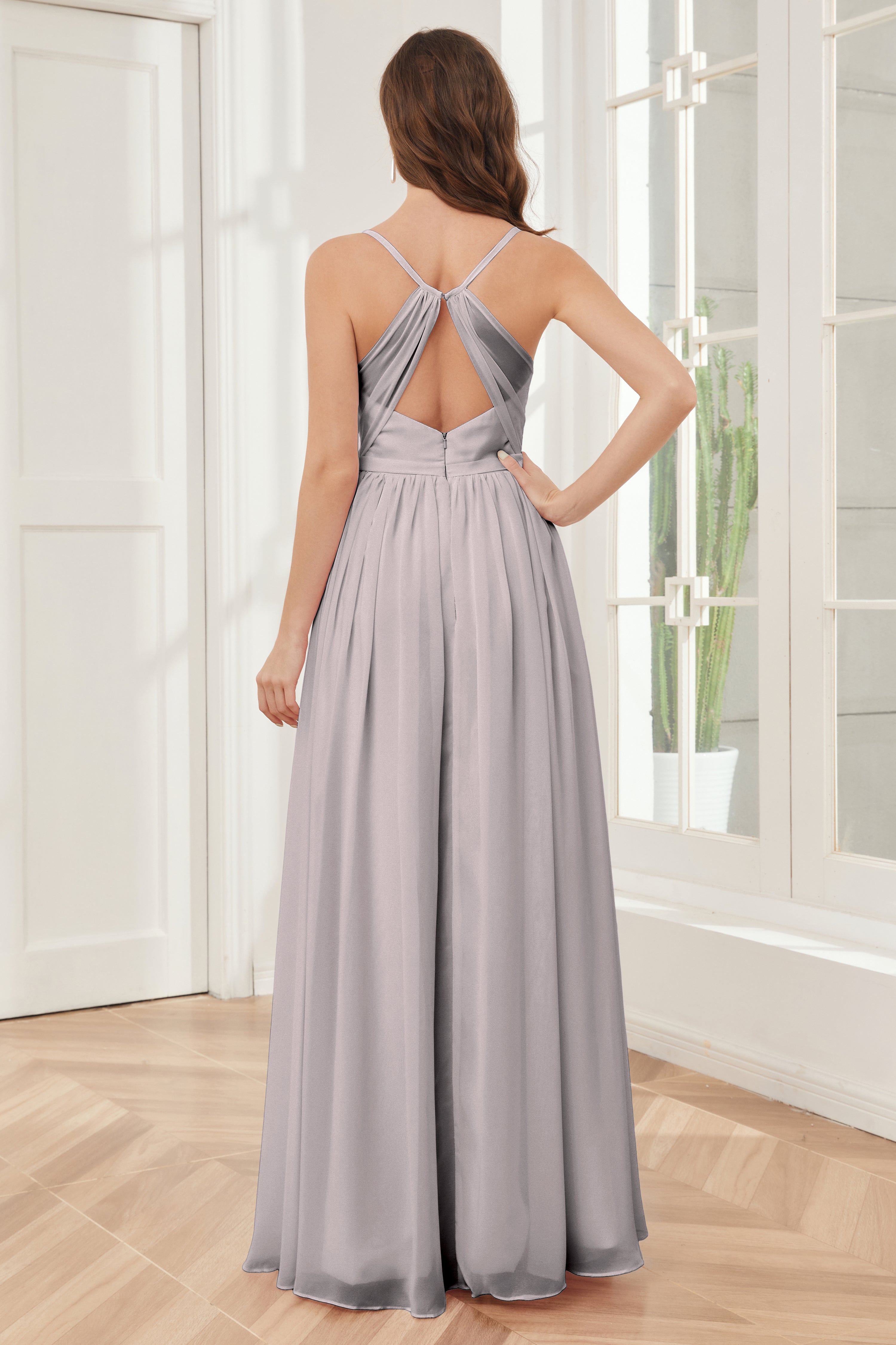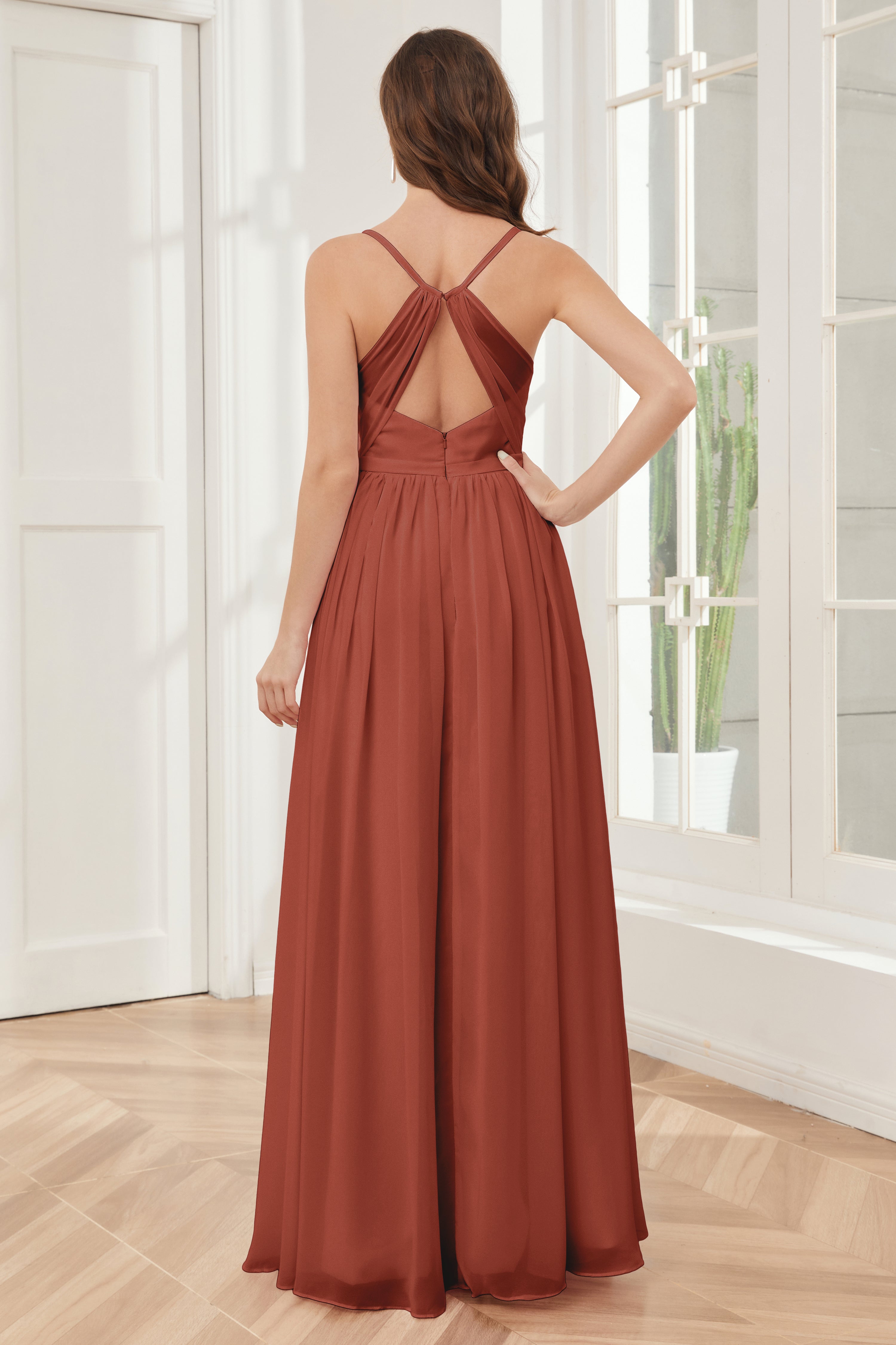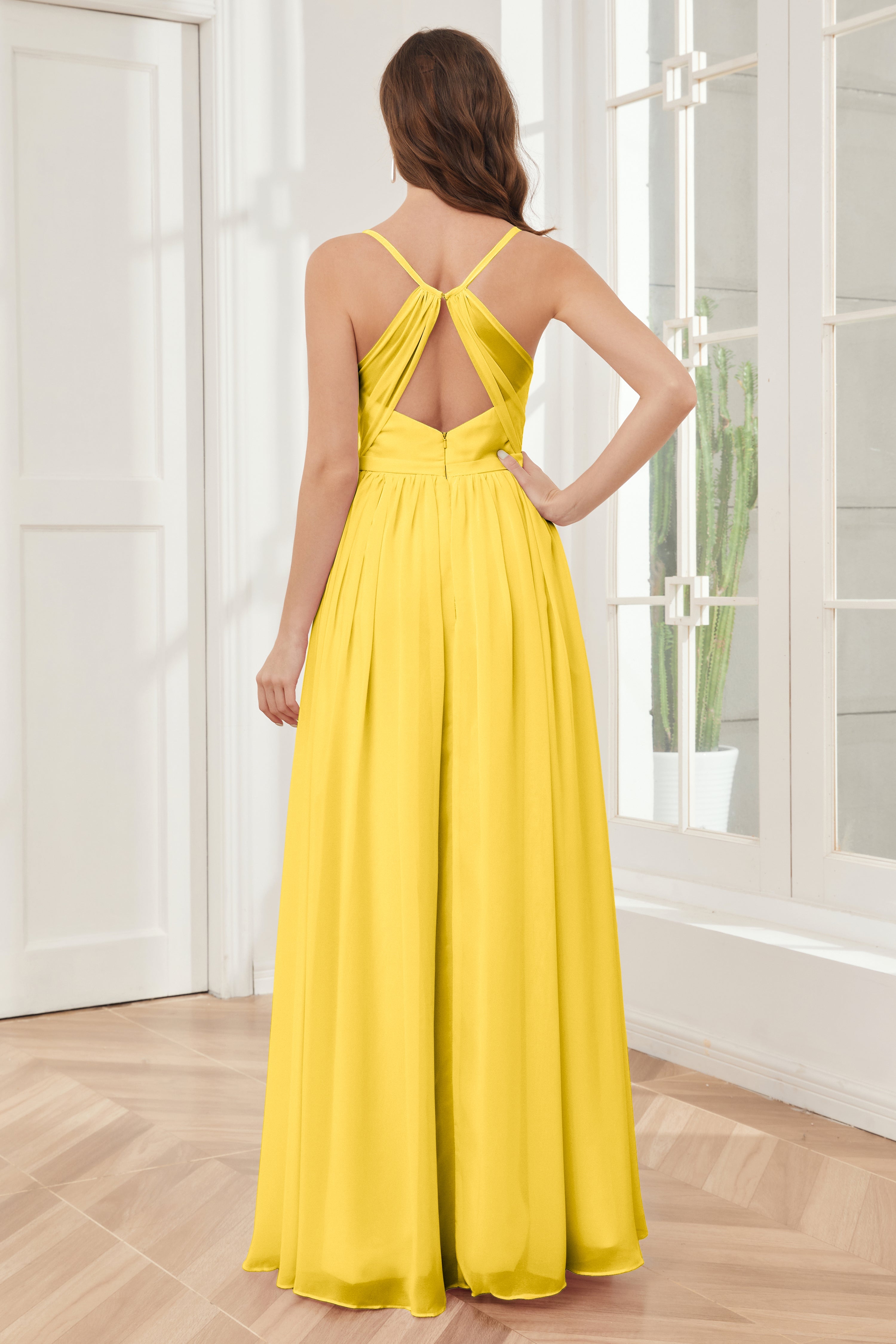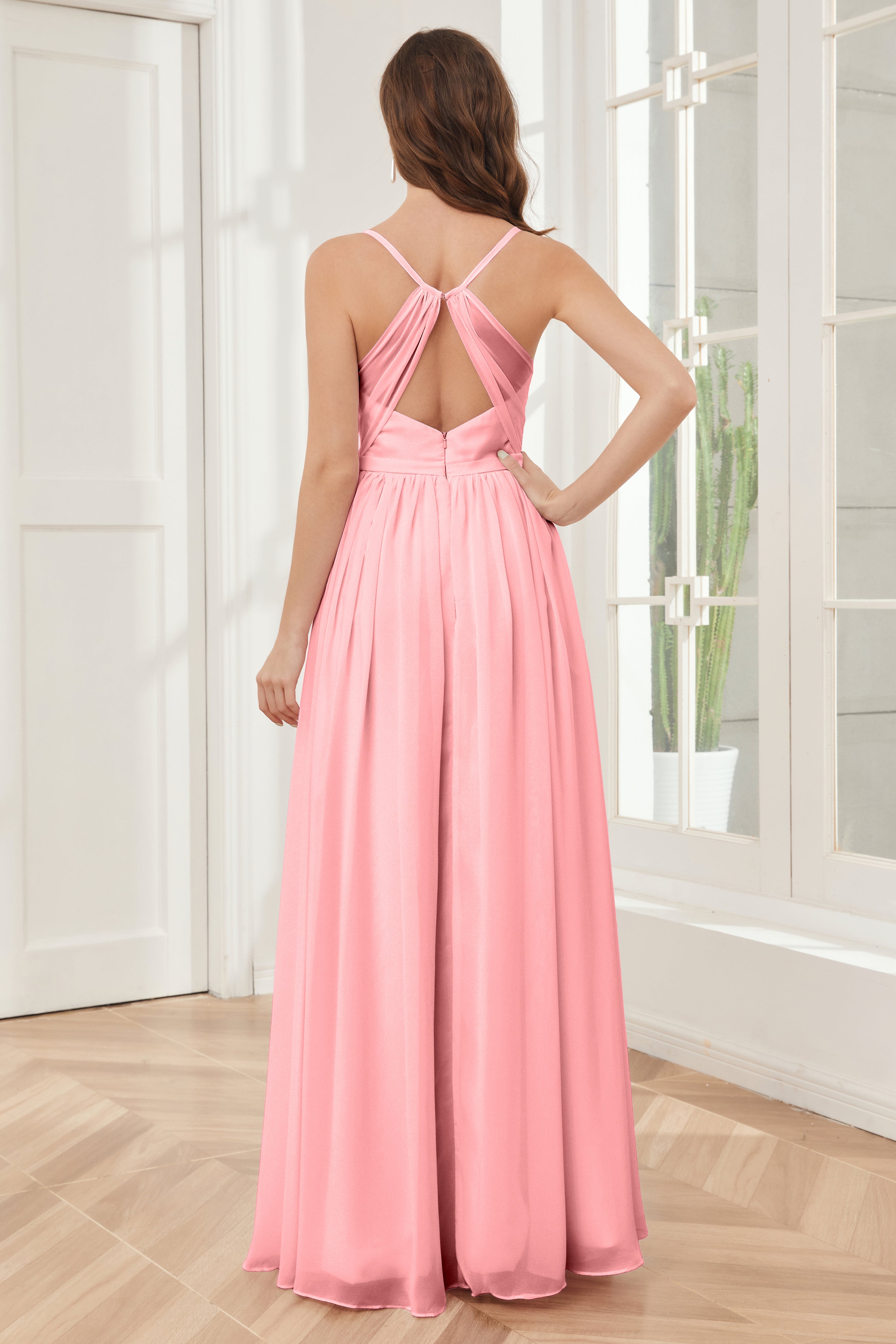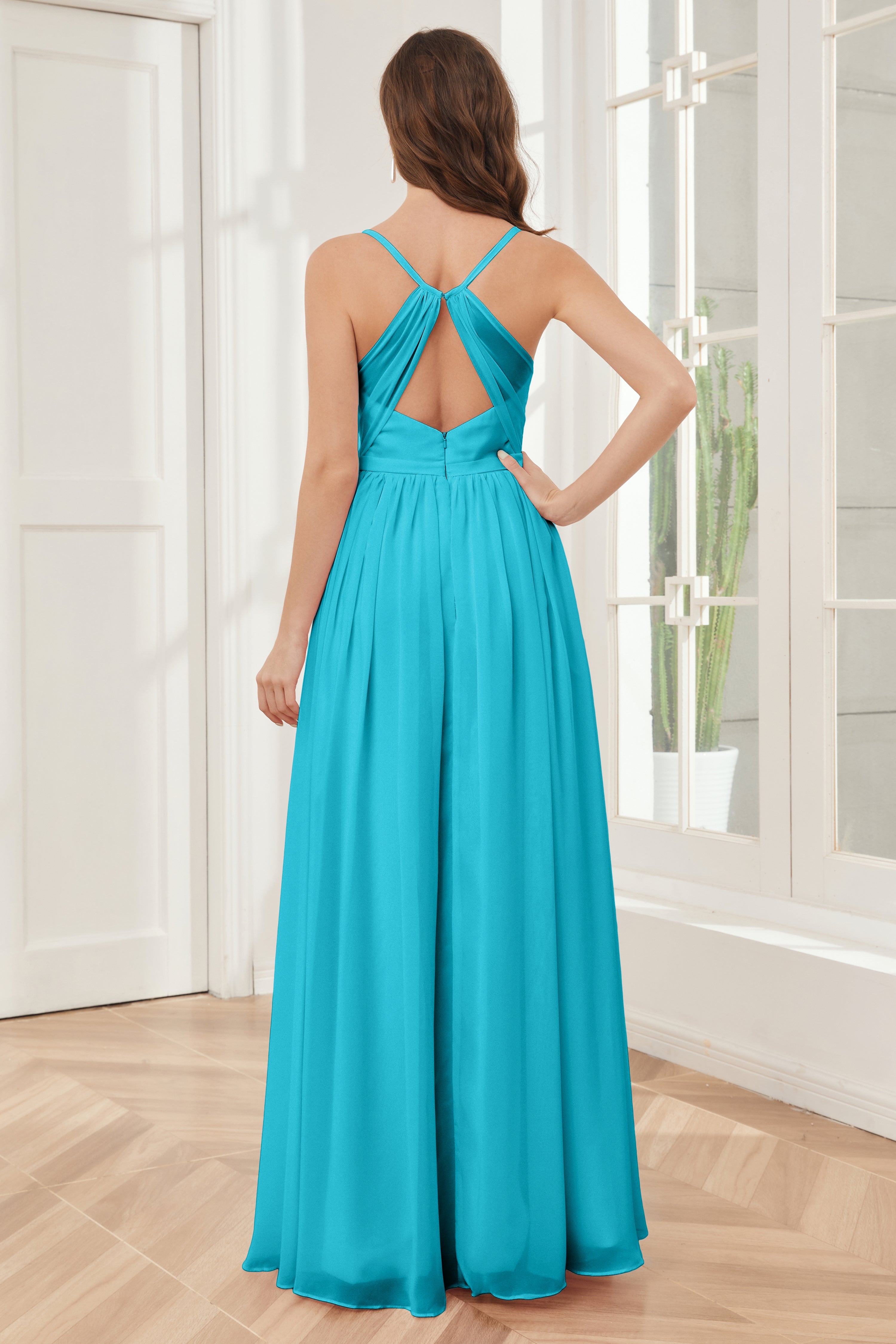A-line Spaghetti Straps Chiffon Long Bridesmaid Dresses