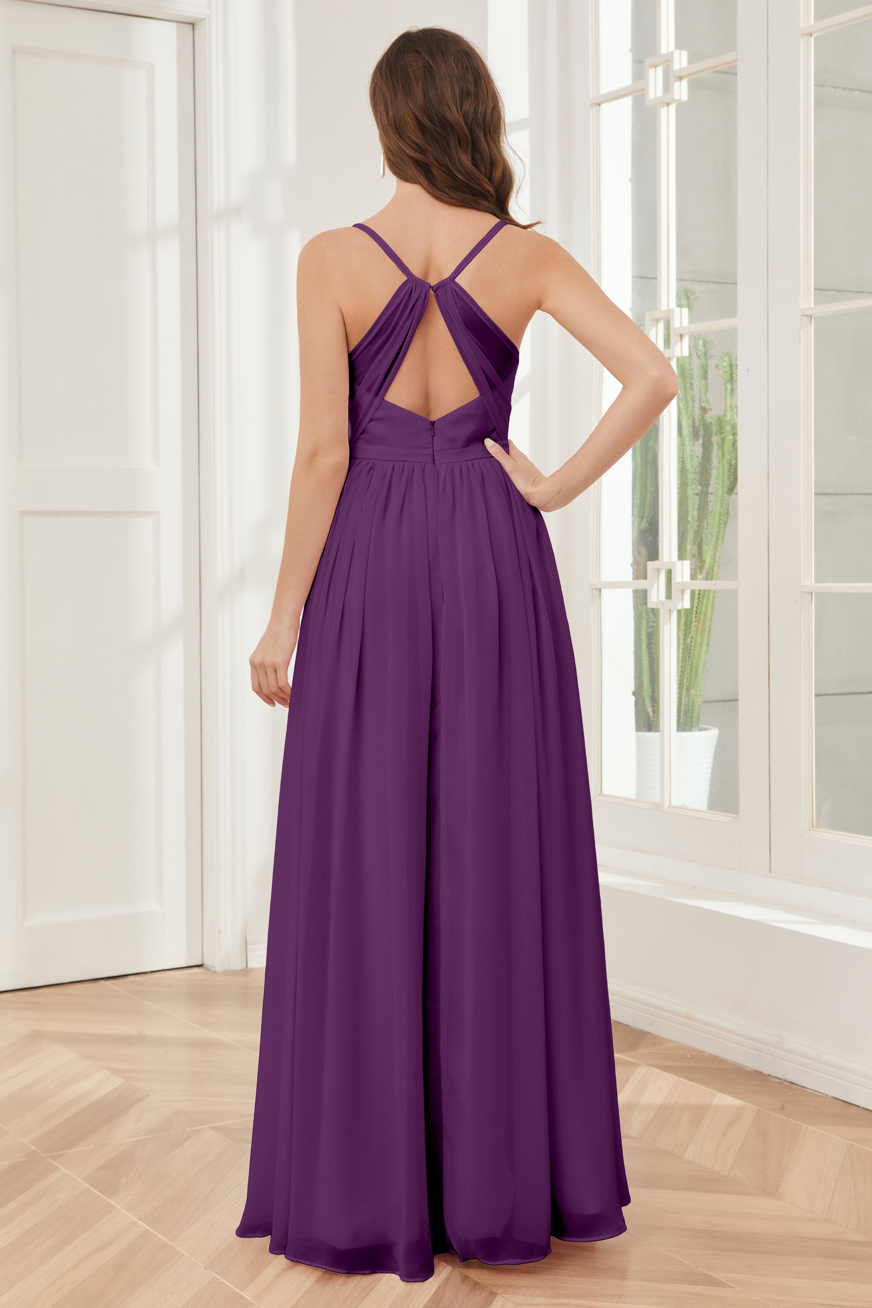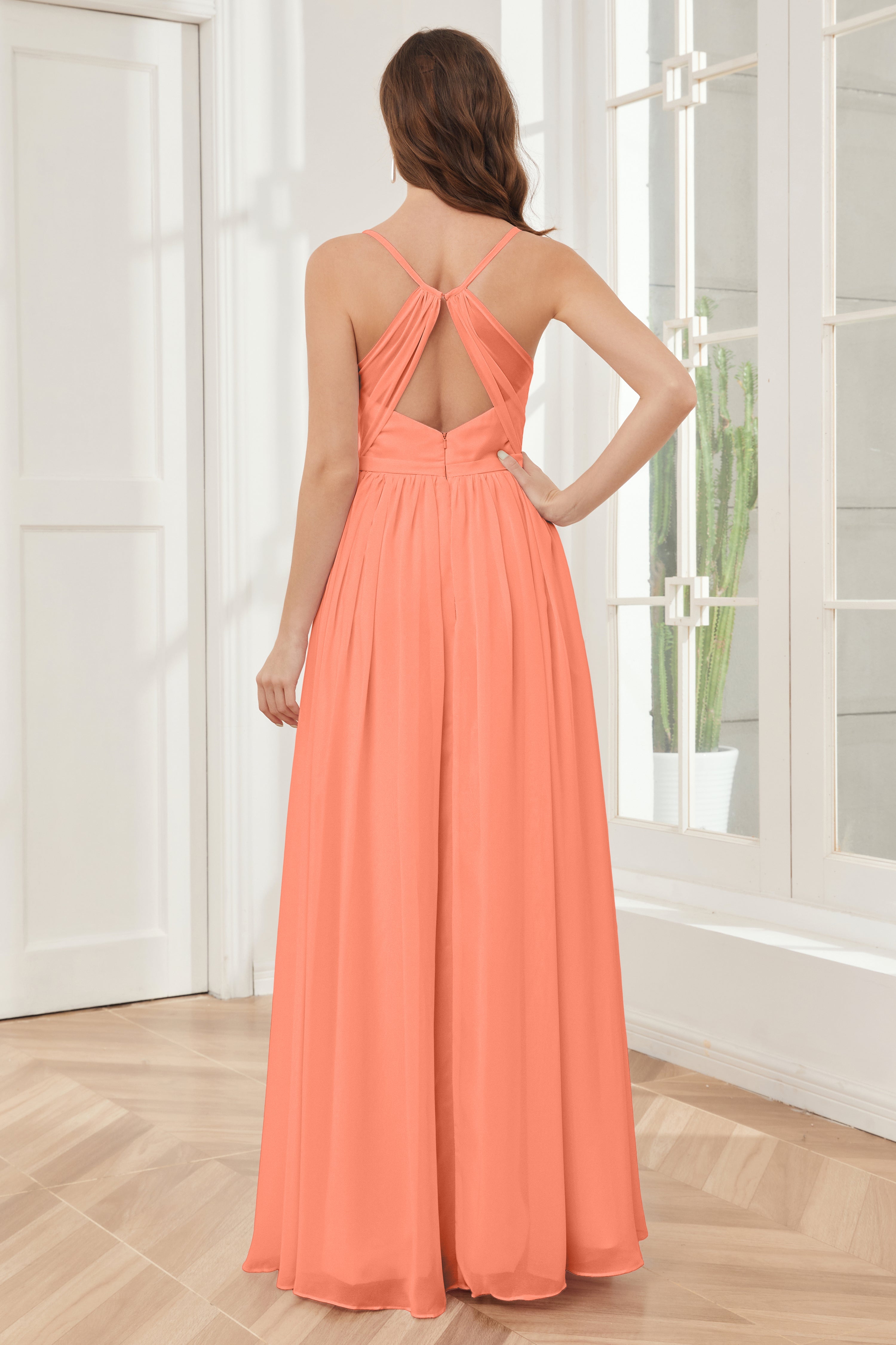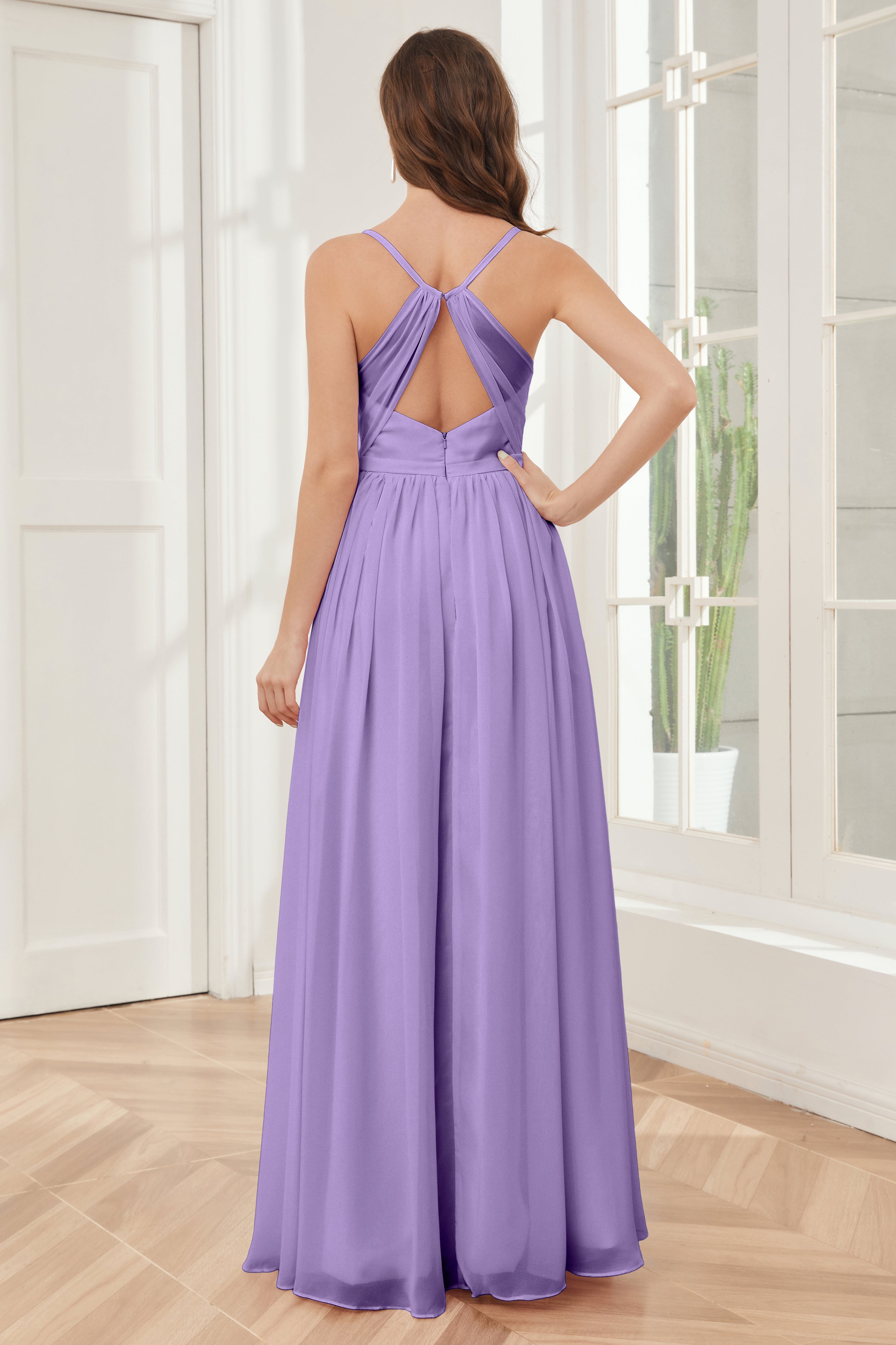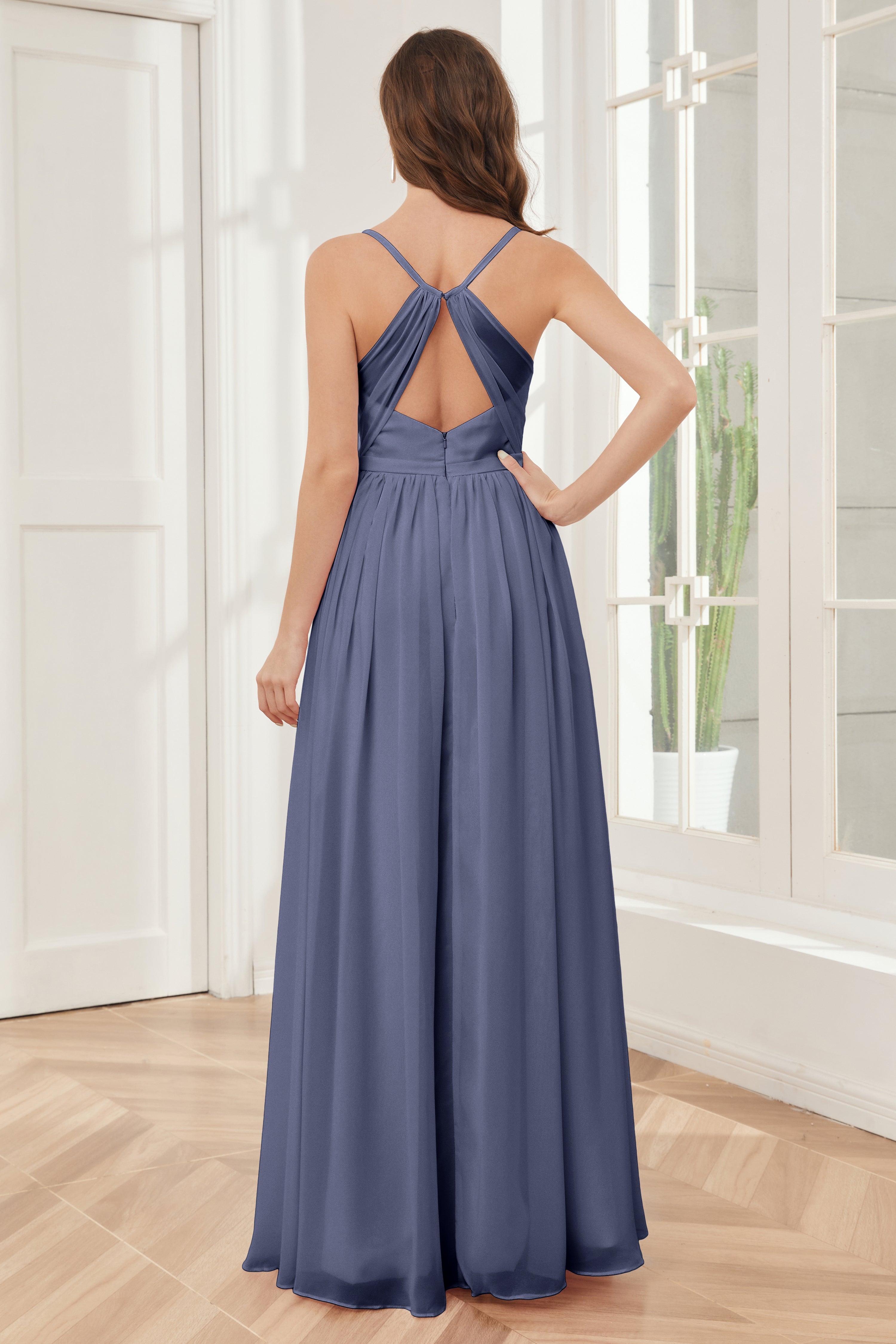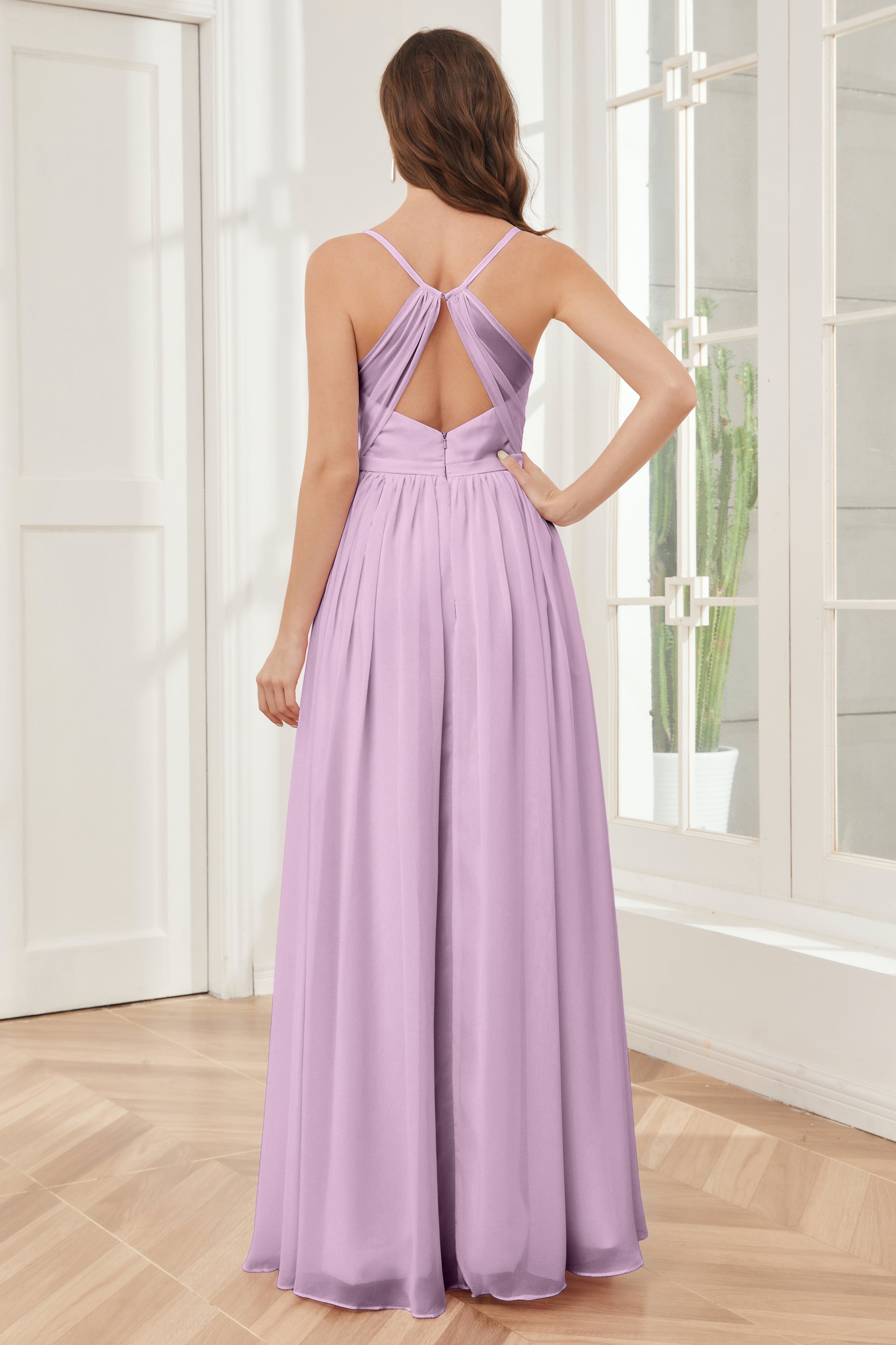 A-line Spaghetti Straps Chiffon Long Bridesmaid Dresses