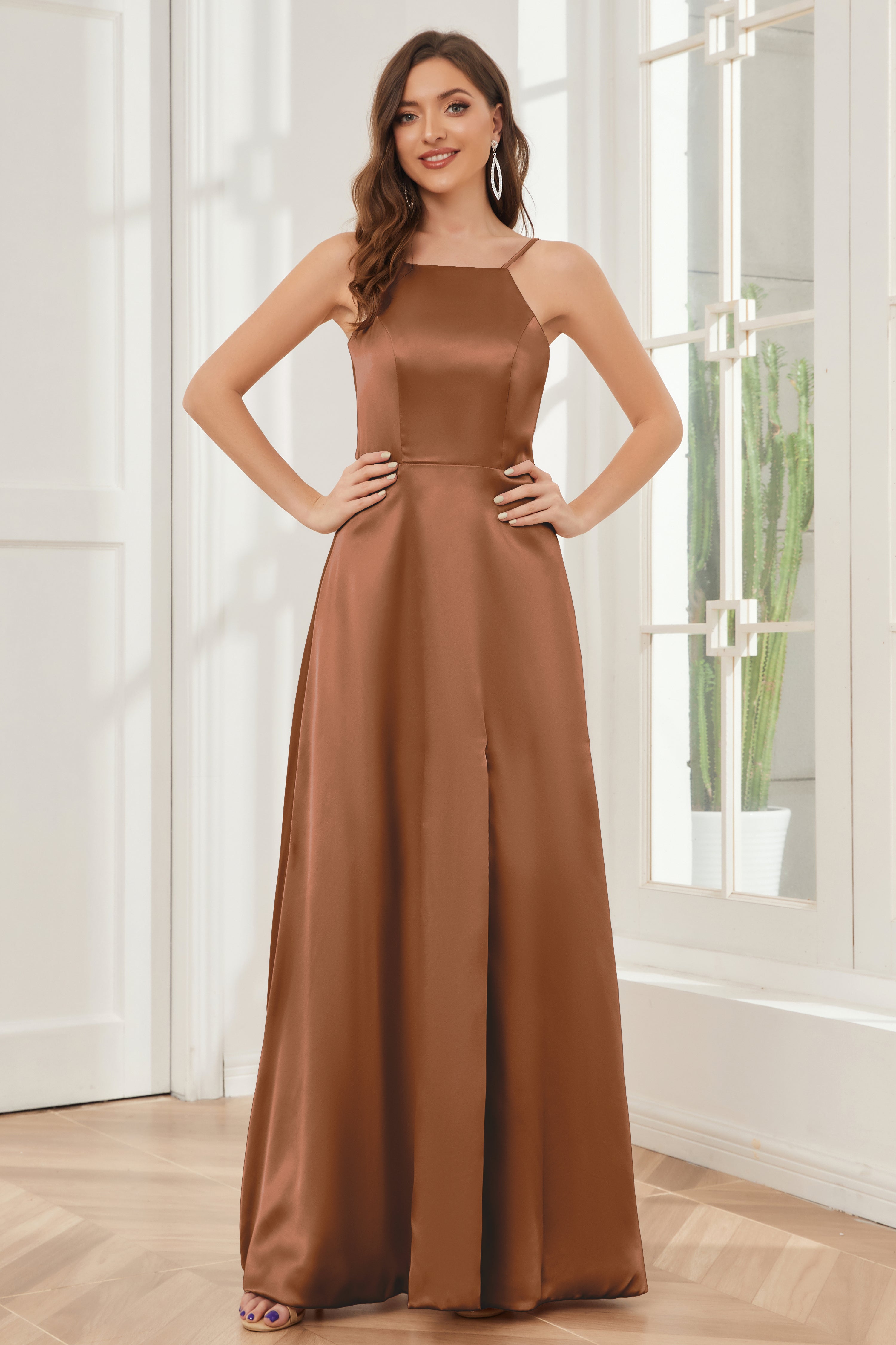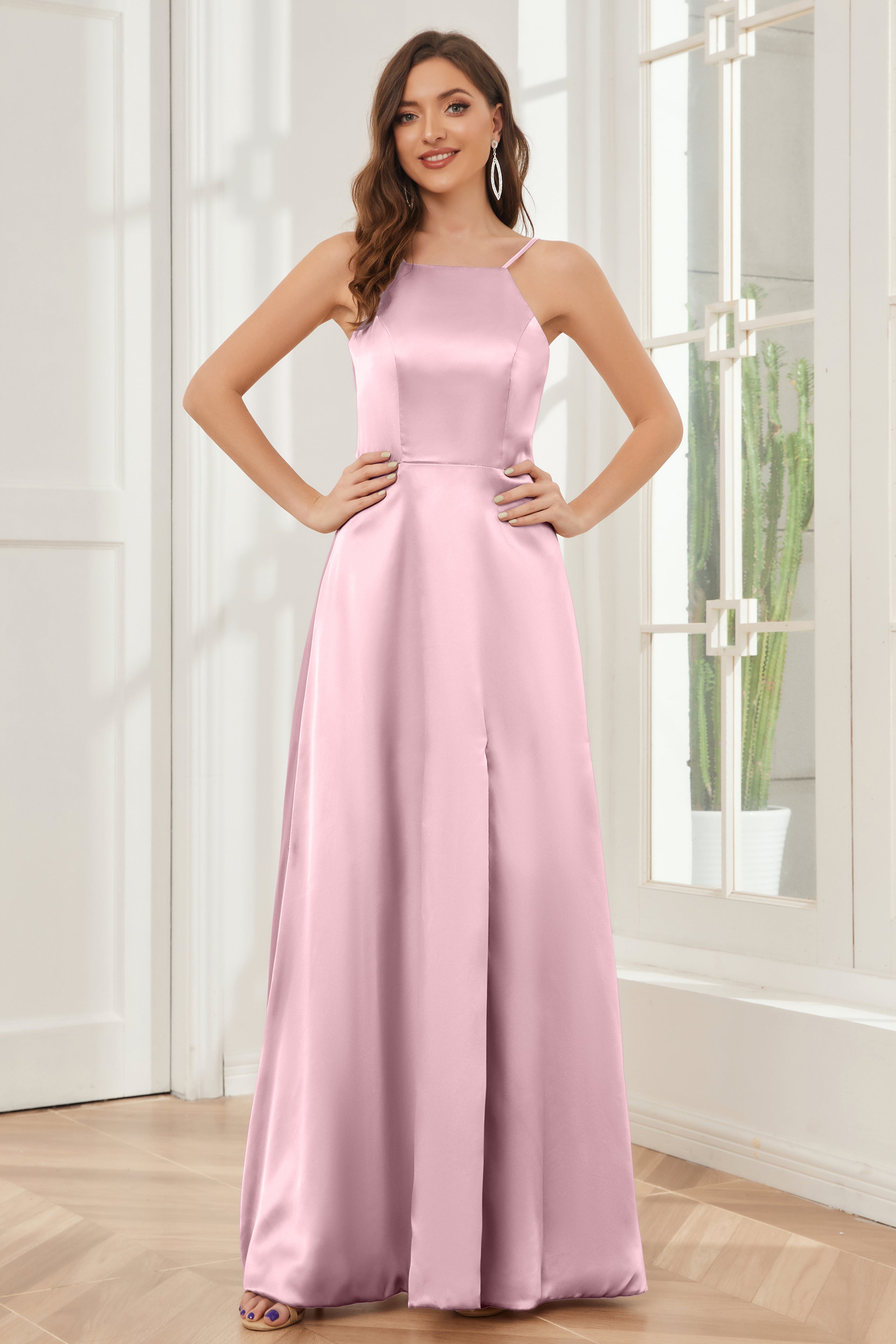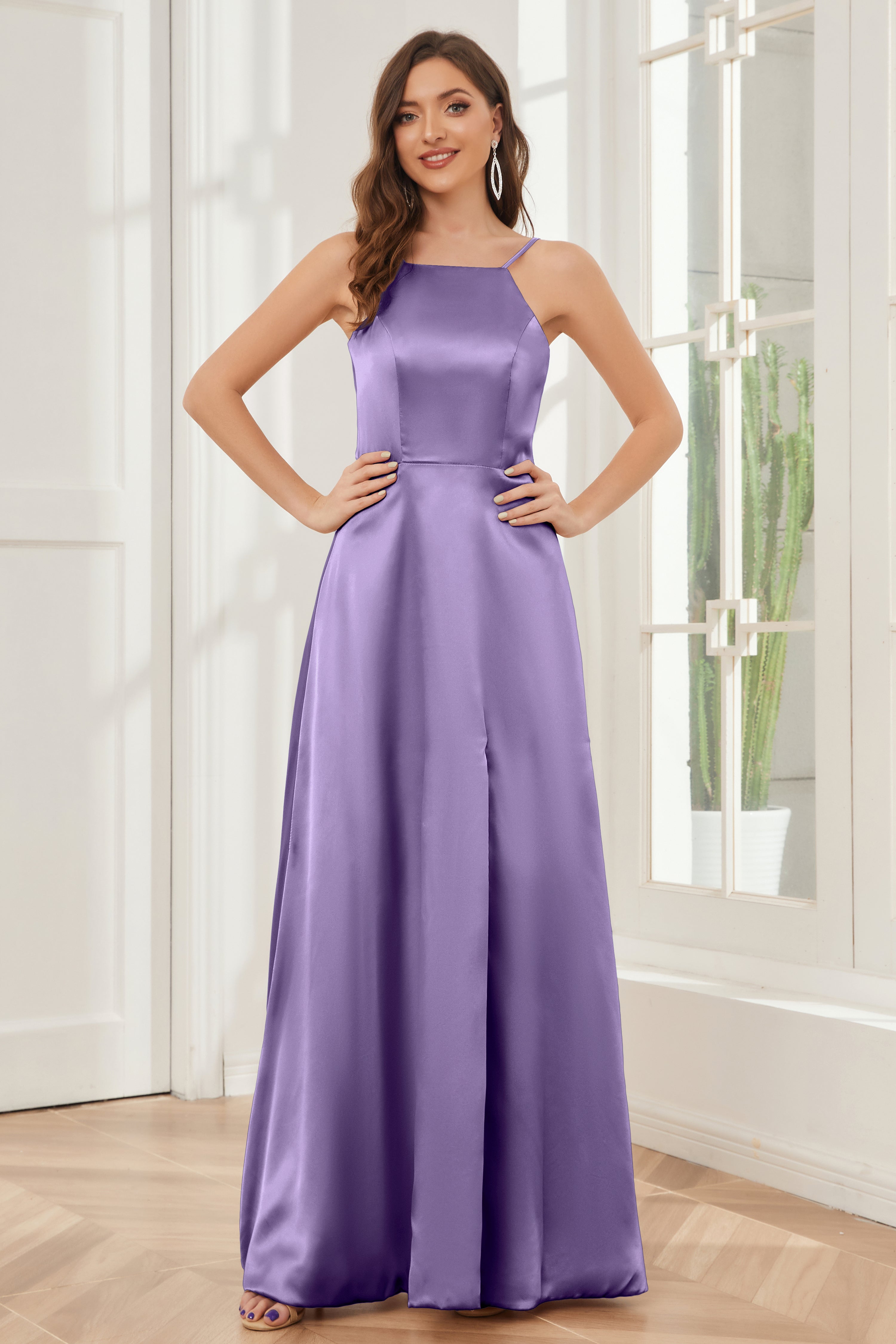 A-line Straps Soft Satin Floor Length Bridesmaid Dress