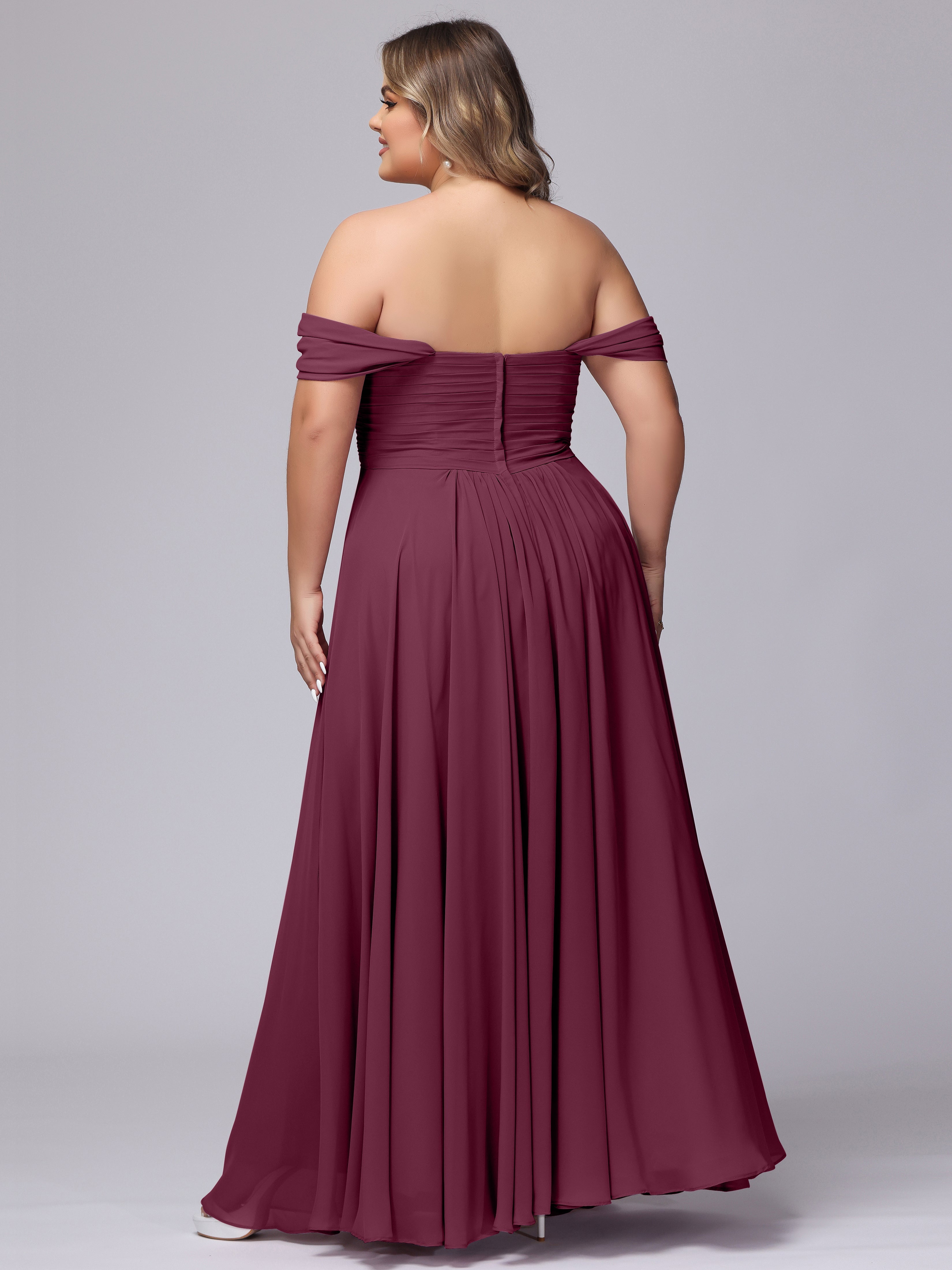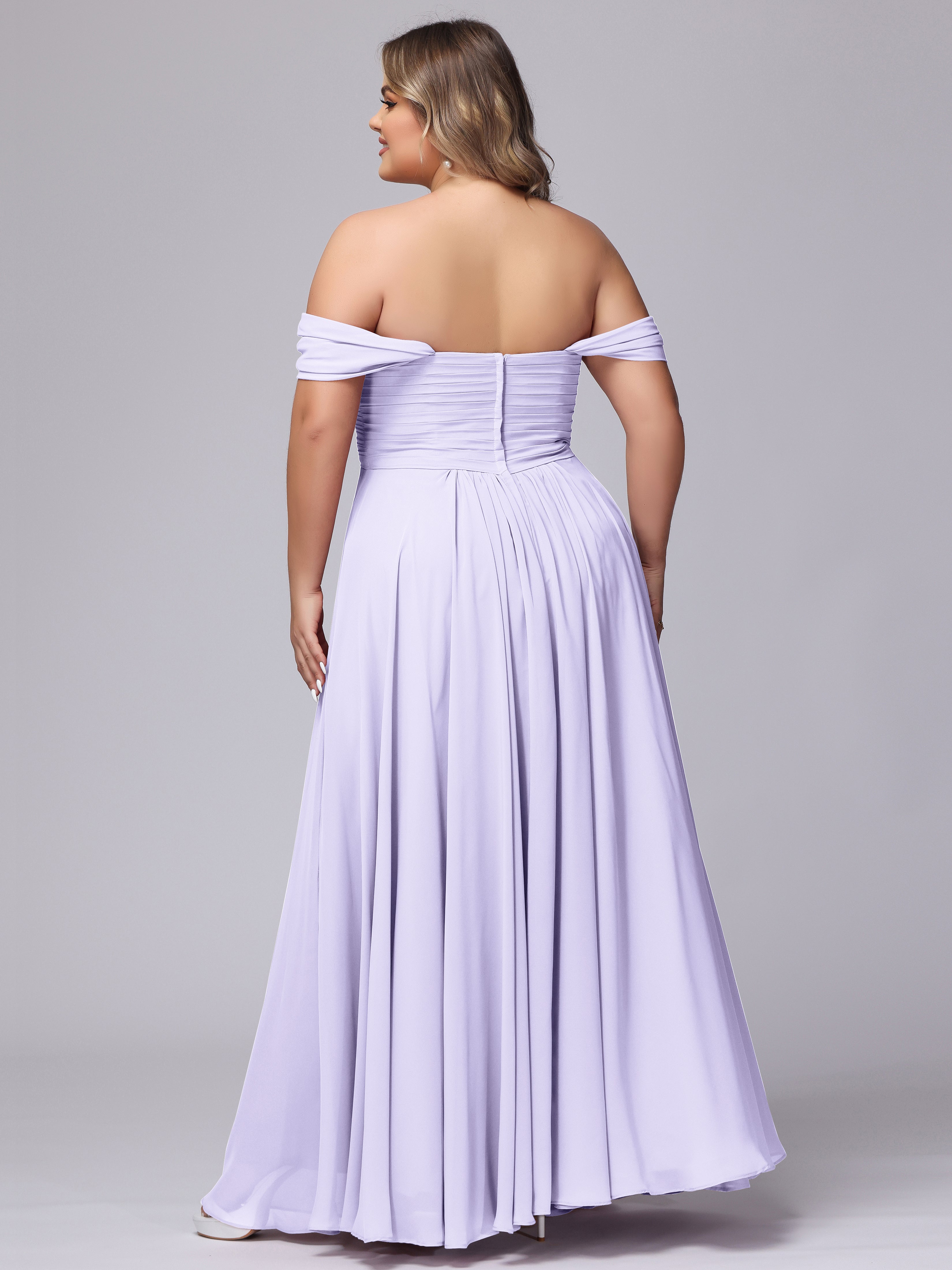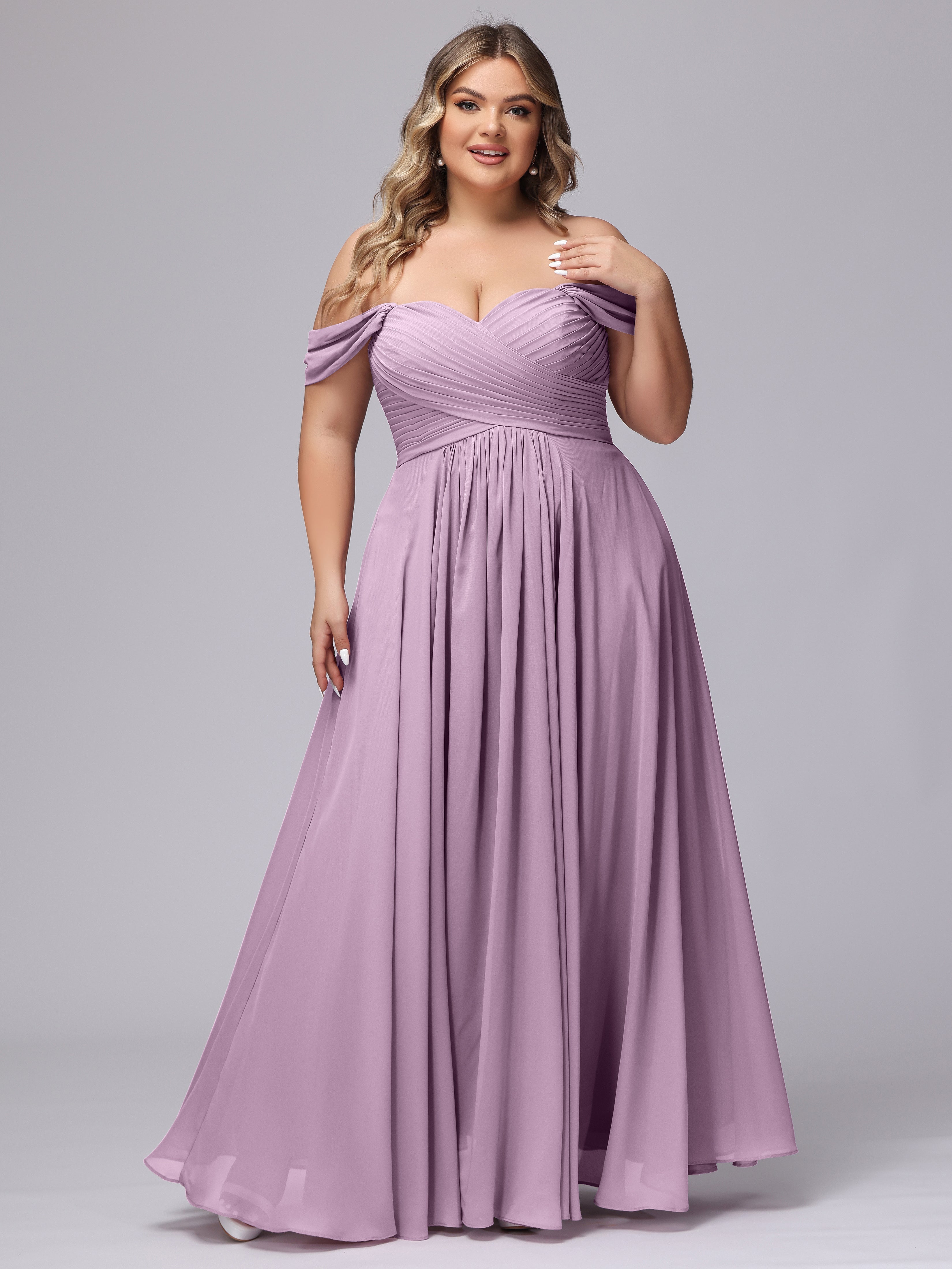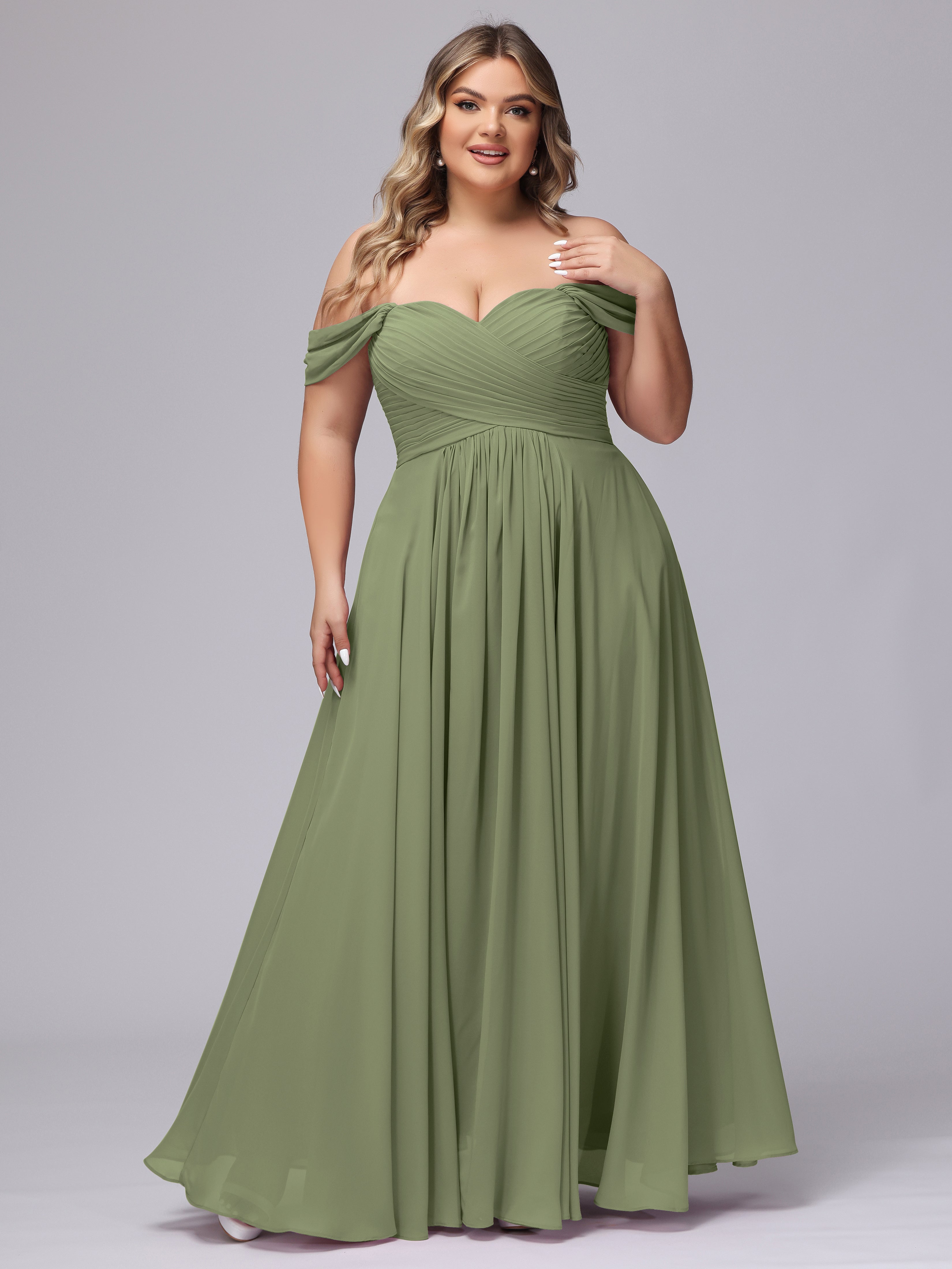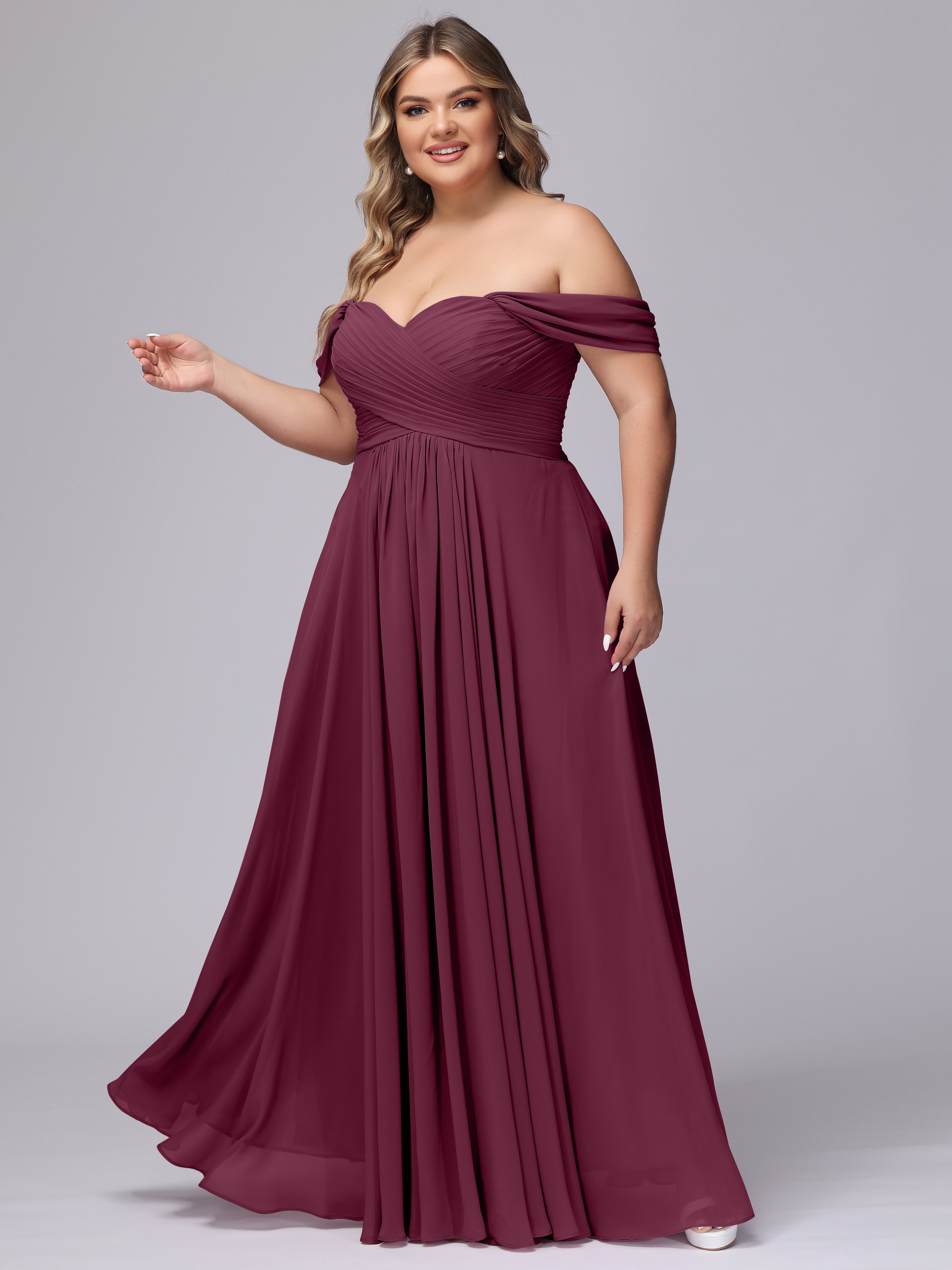 A-line Sweetheart Off-the-Shoulder Plus Size Chiffon Bridesmaid Dress