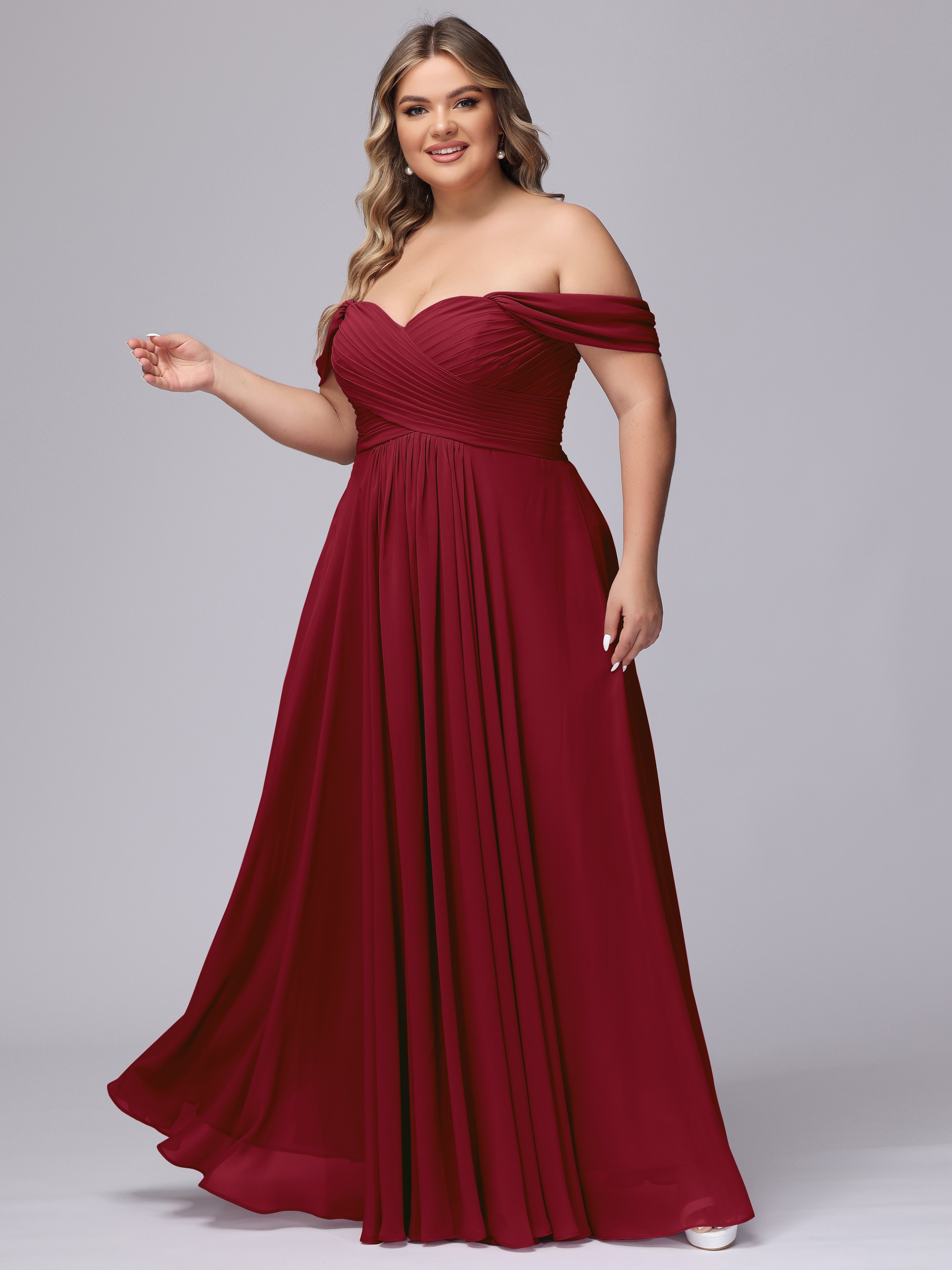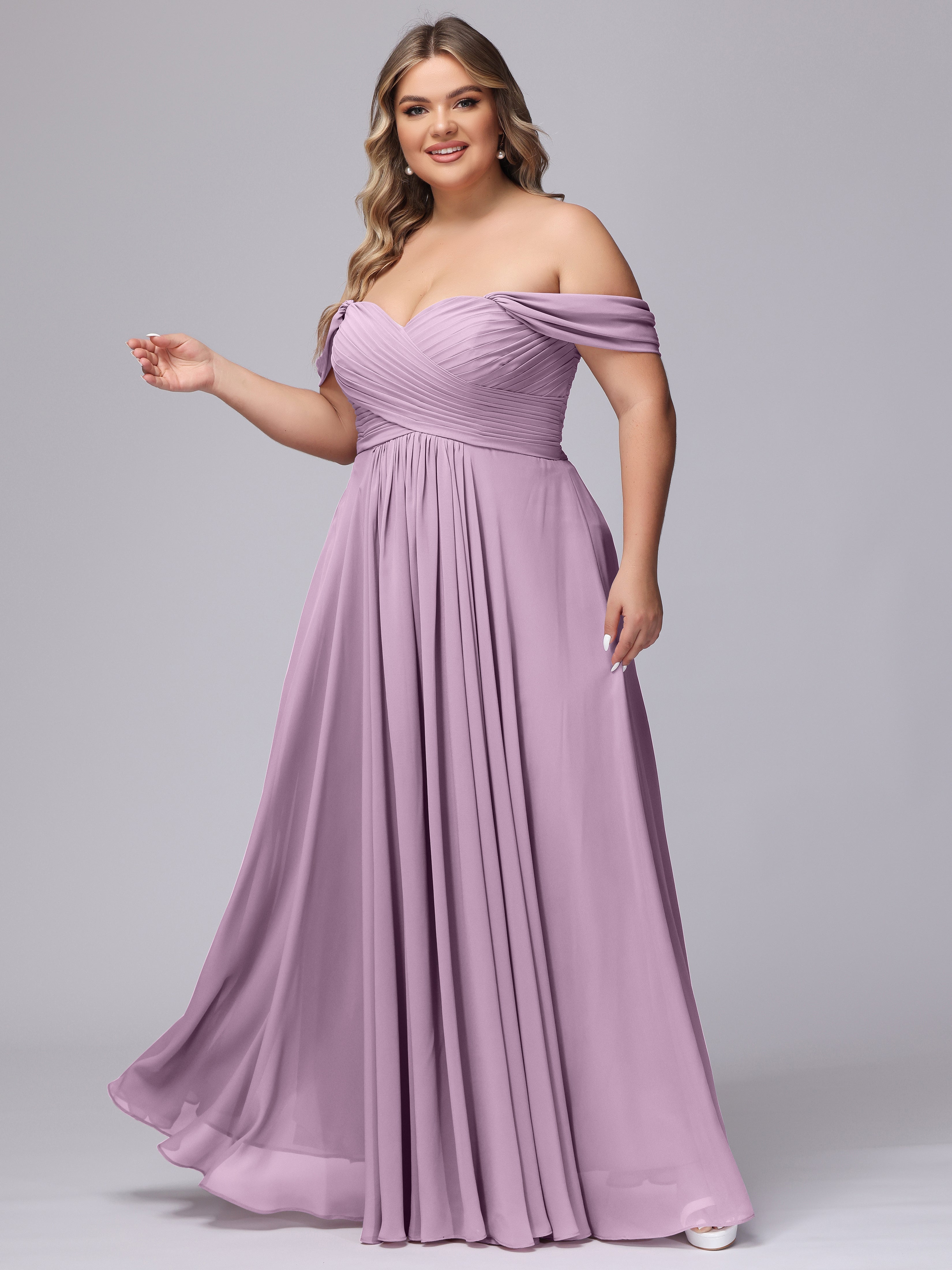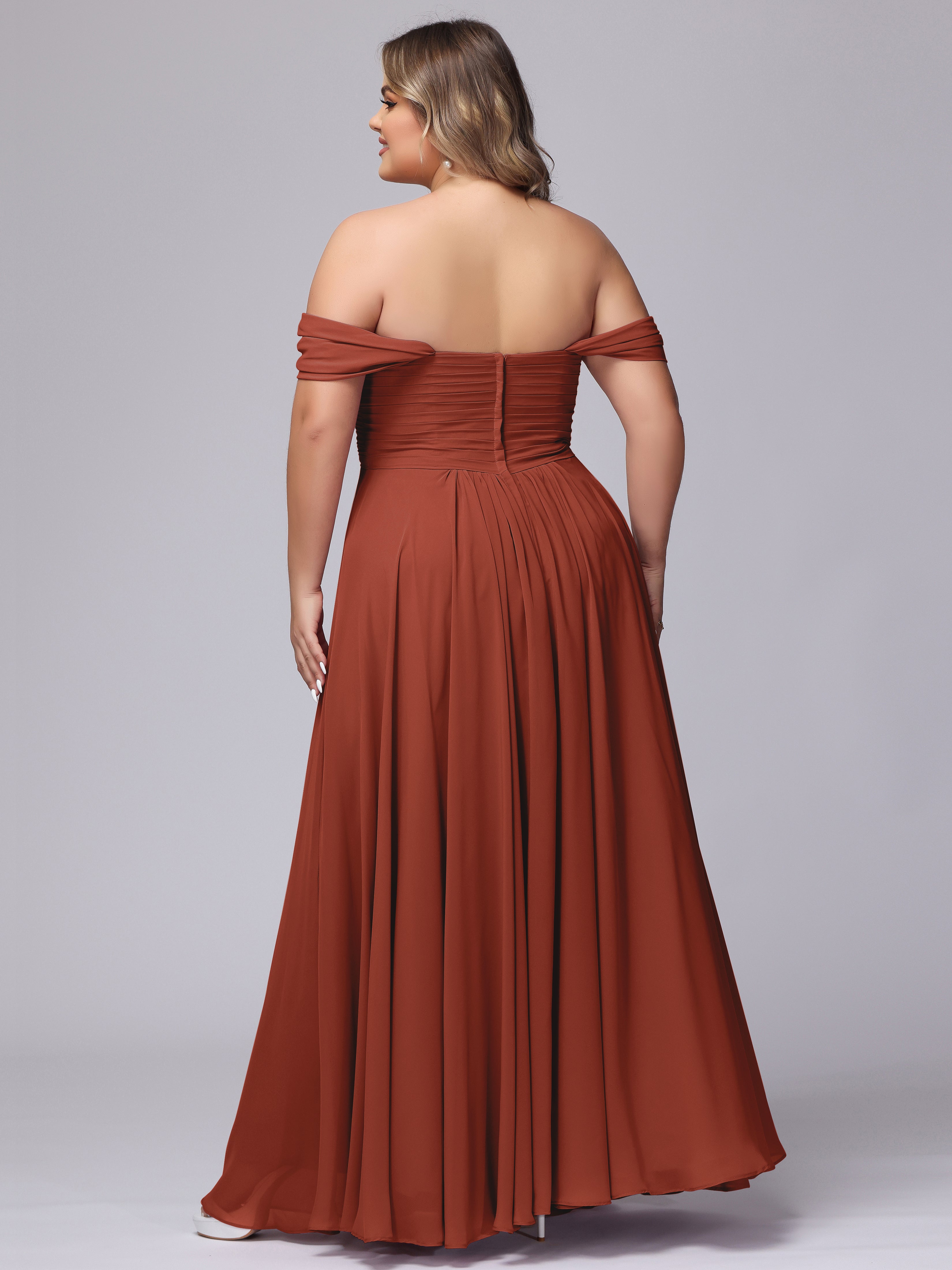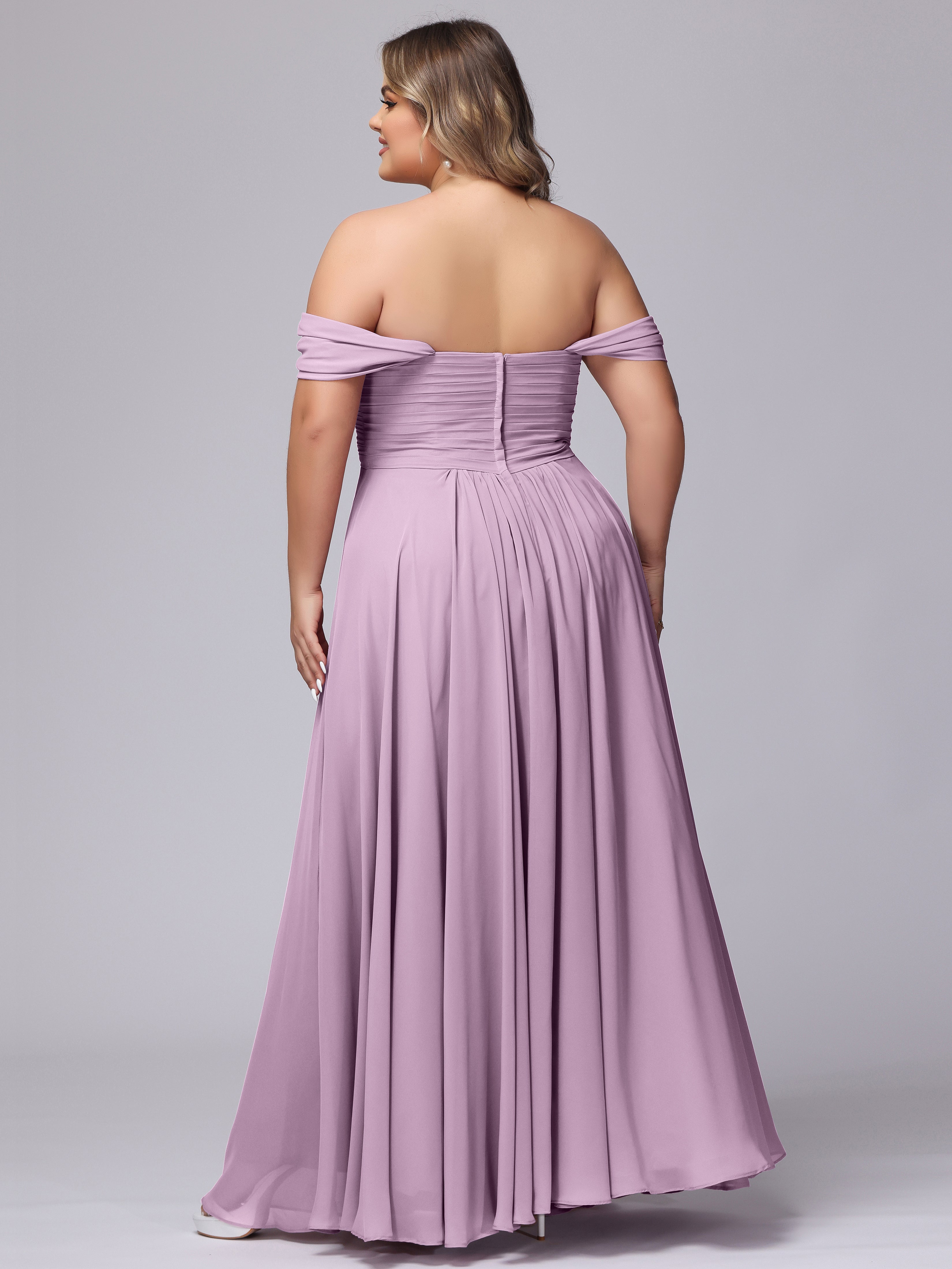 A-line Sweetheart Off-the-Shoulder Plus Size Chiffon Bridesmaid Dress