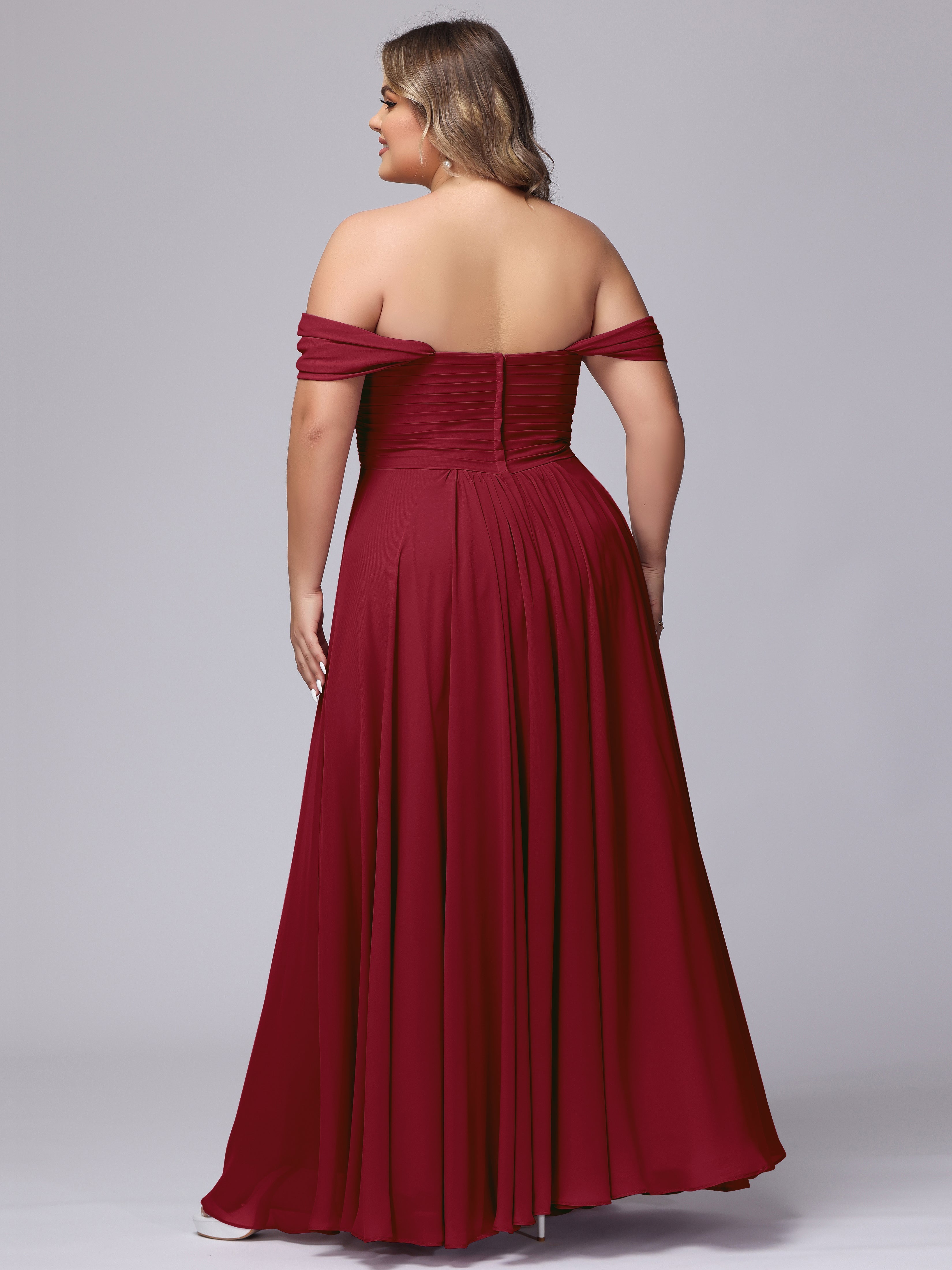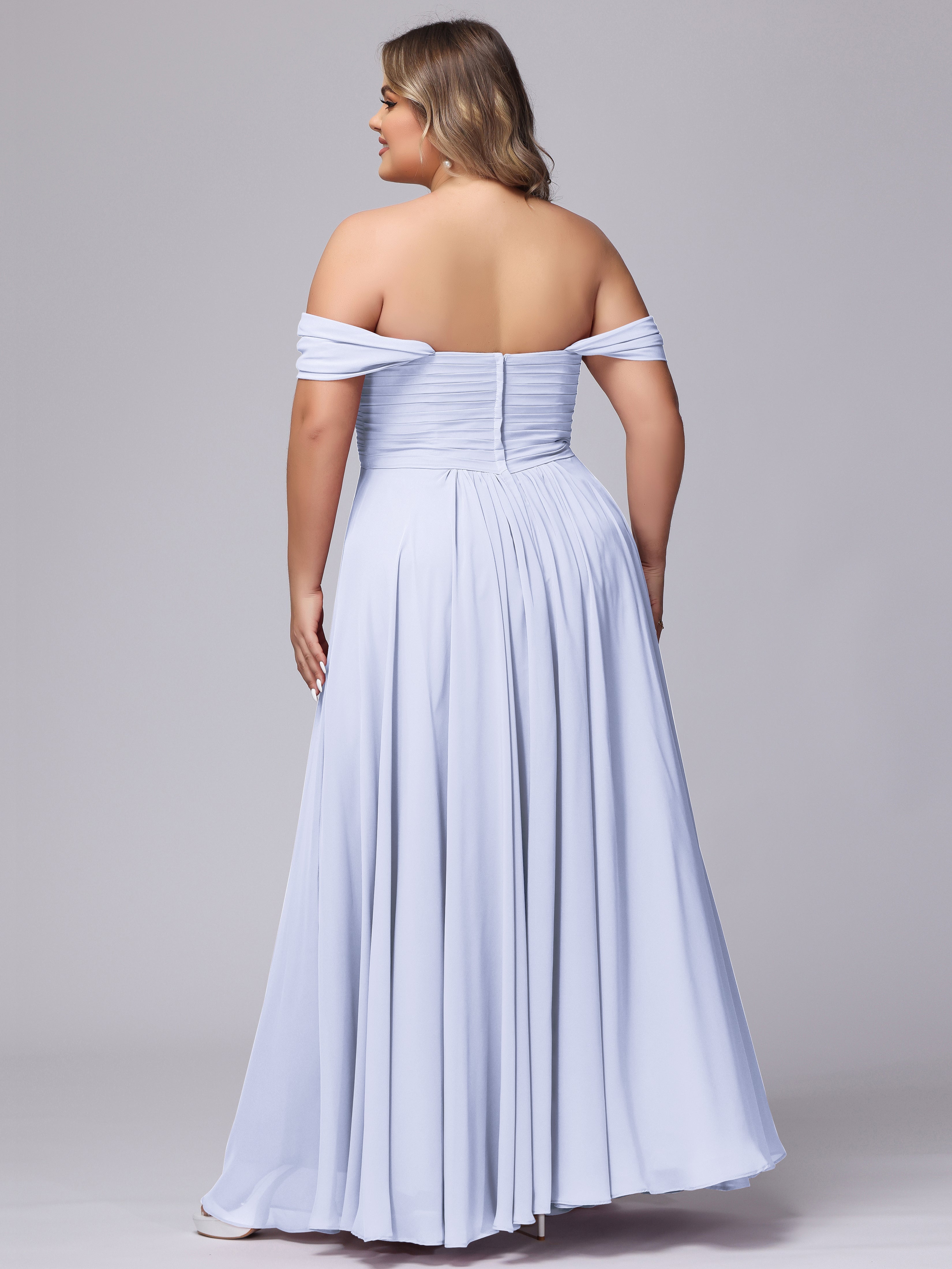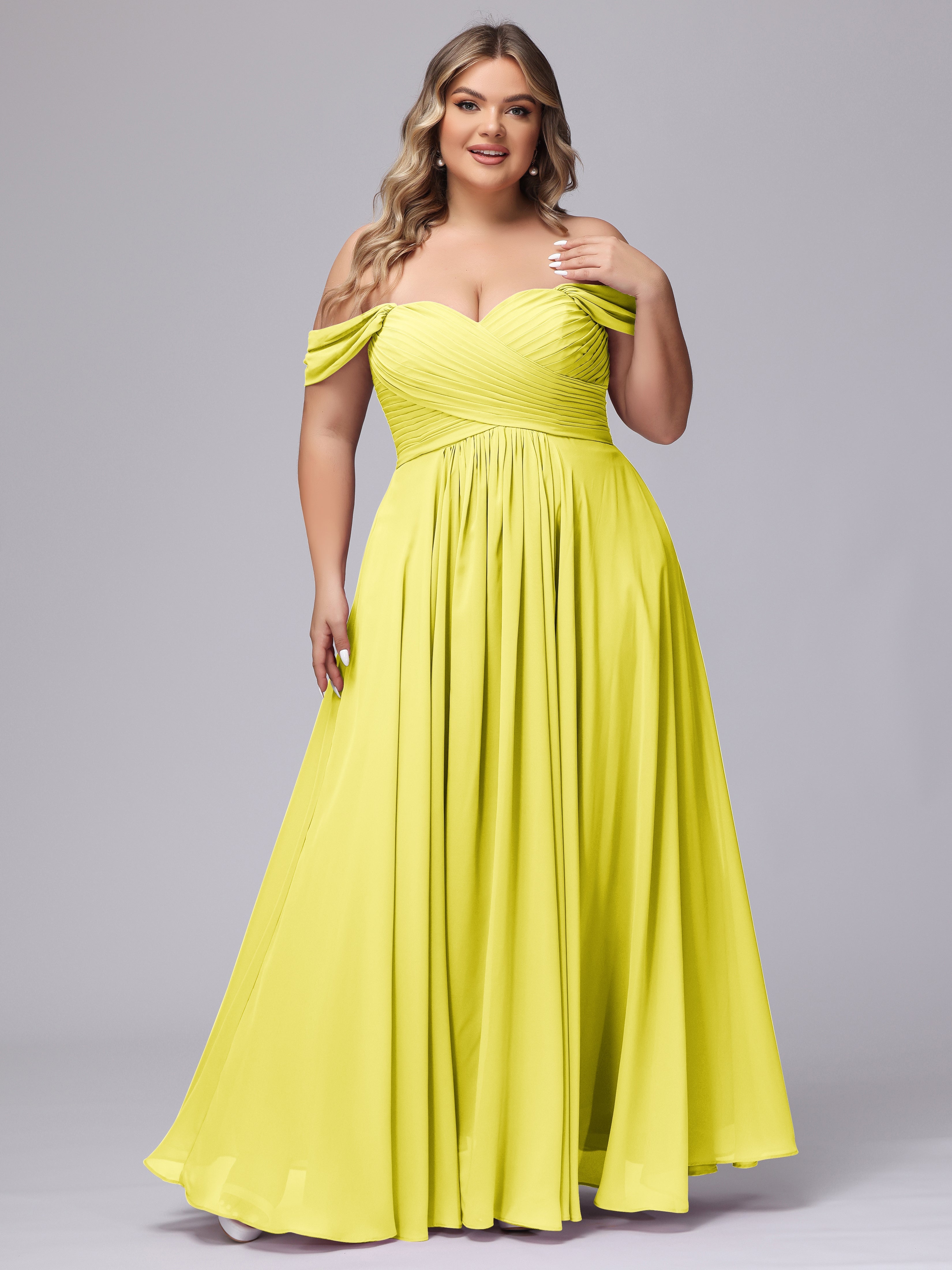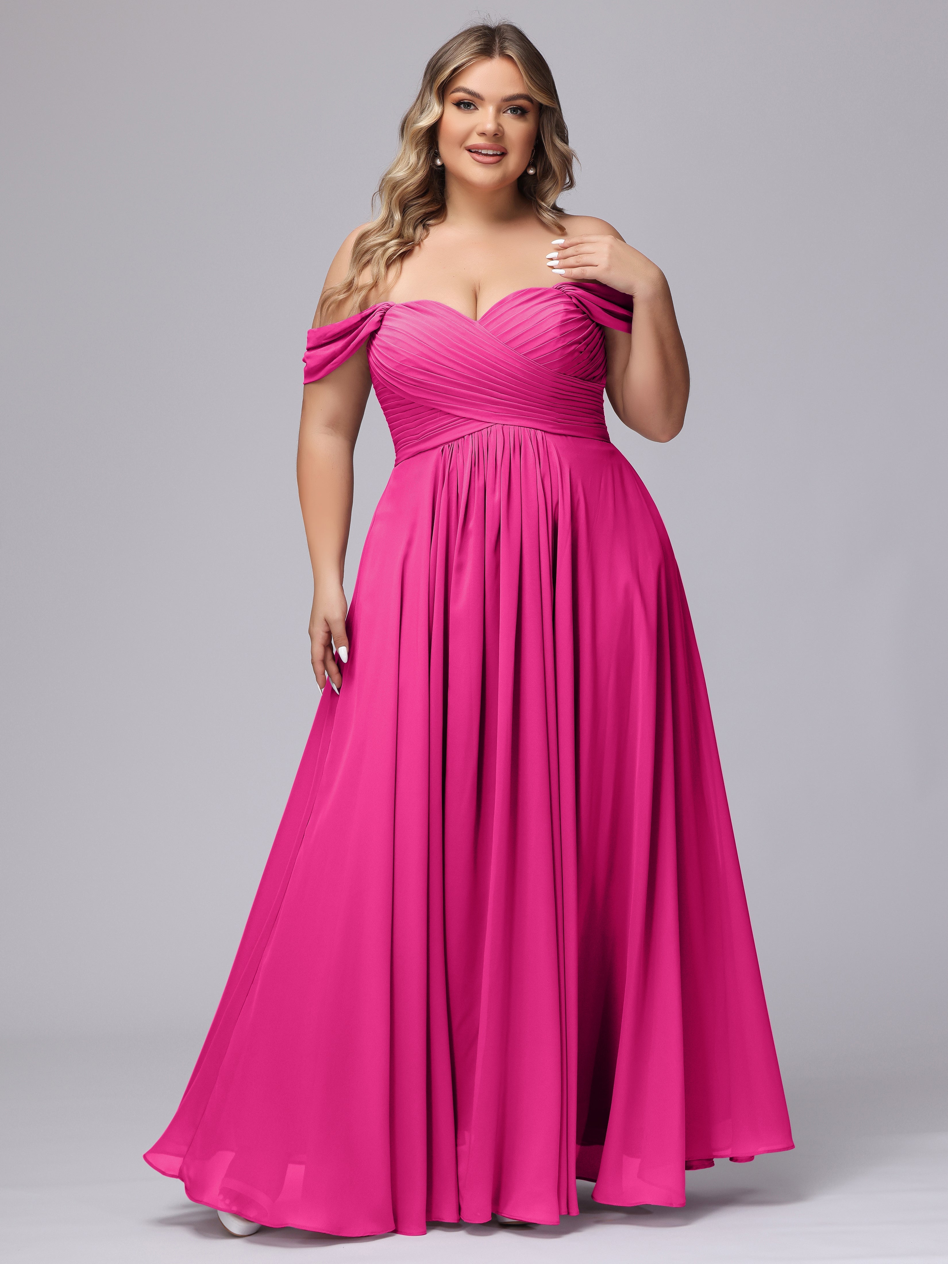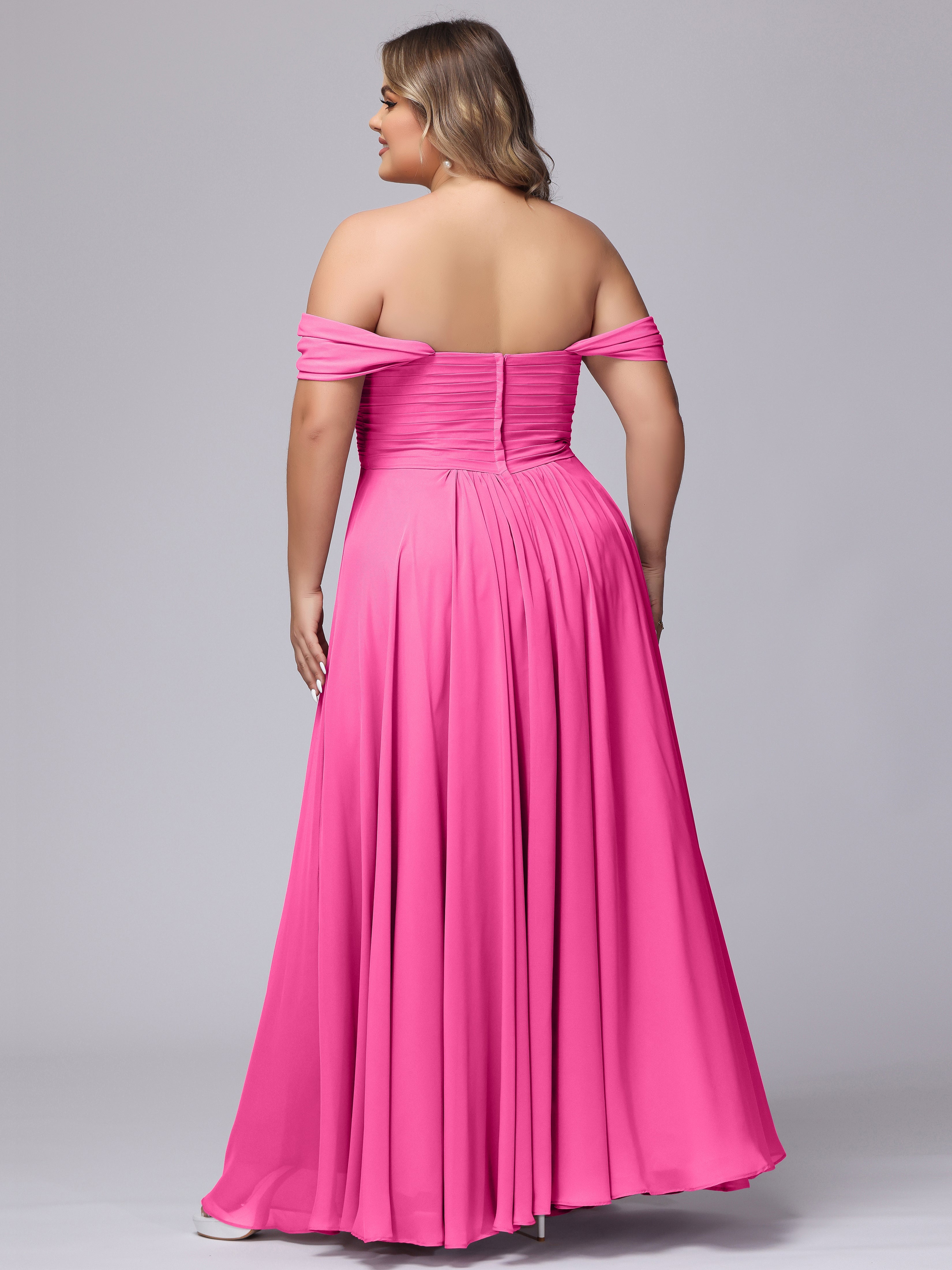 A-line Sweetheart Off-the-Shoulder Plus Size Chiffon Bridesmaid Dress