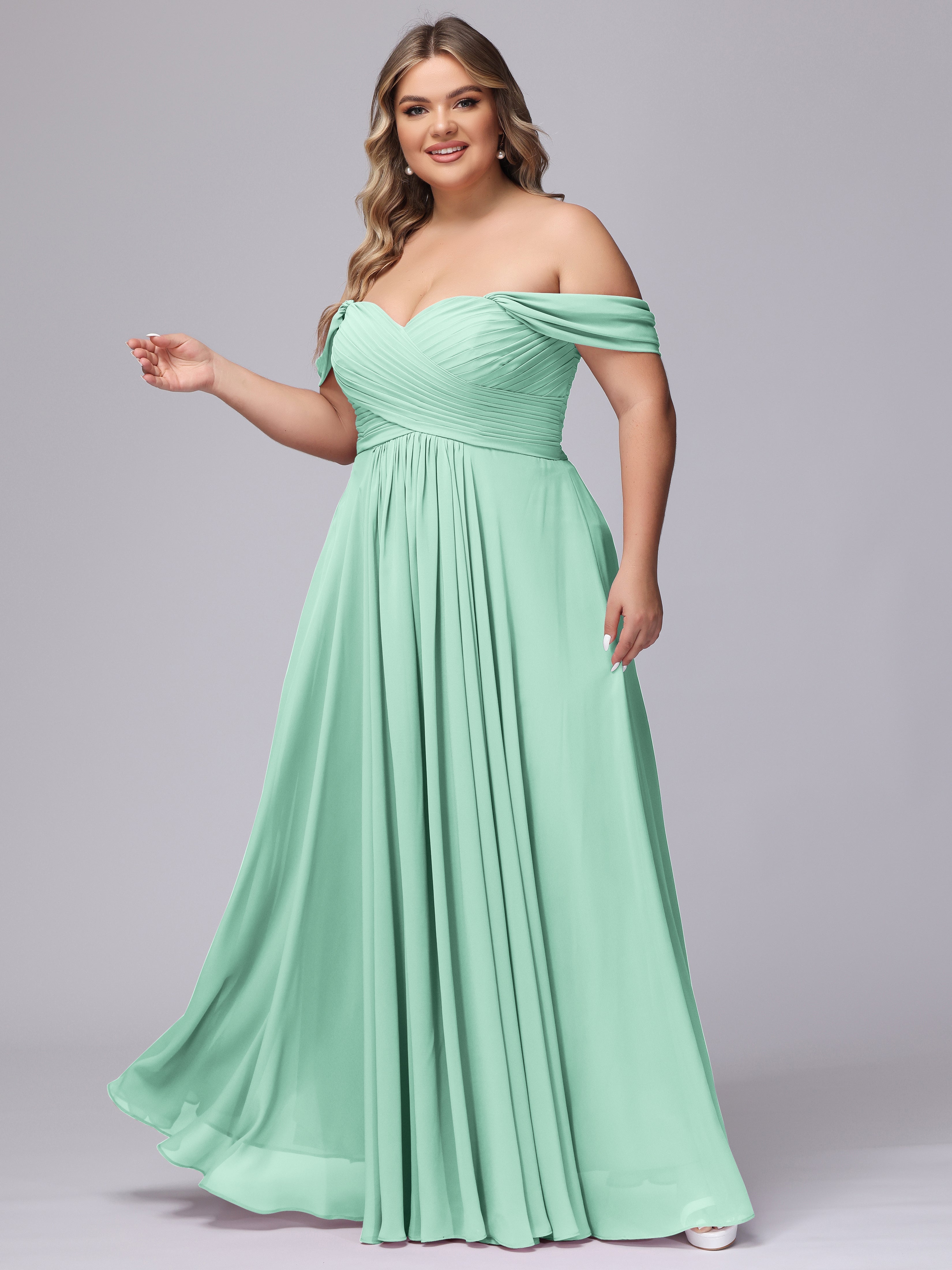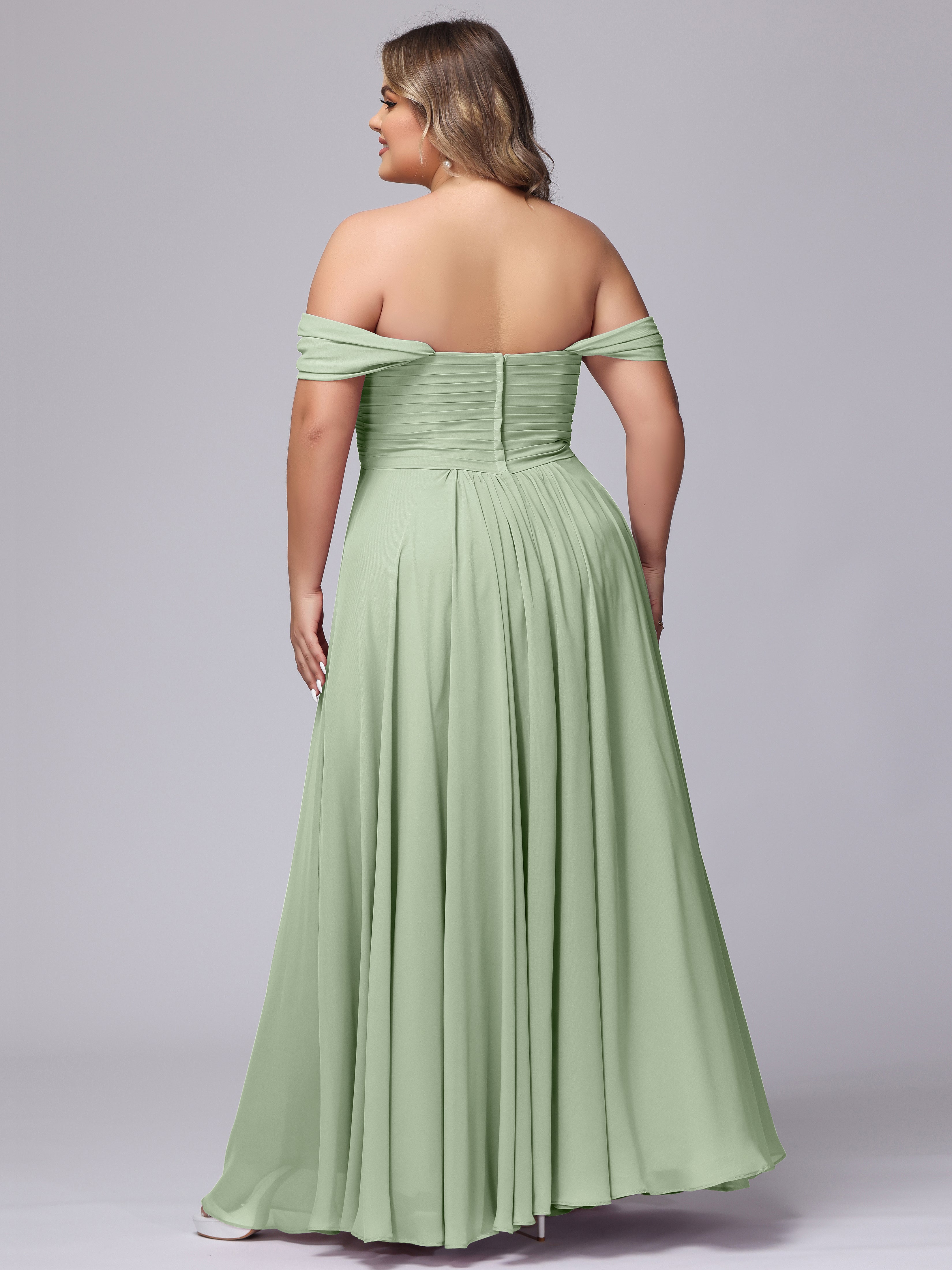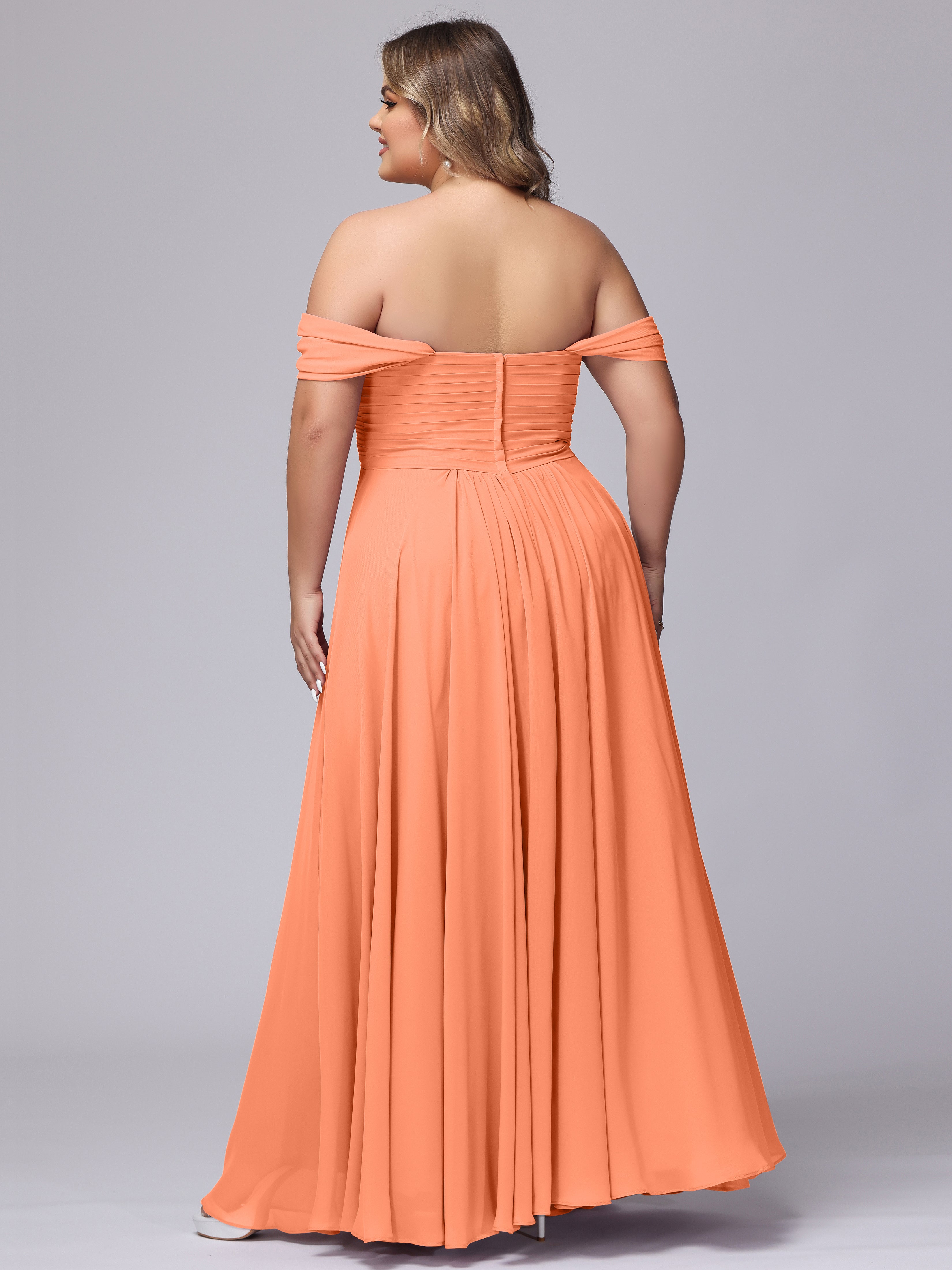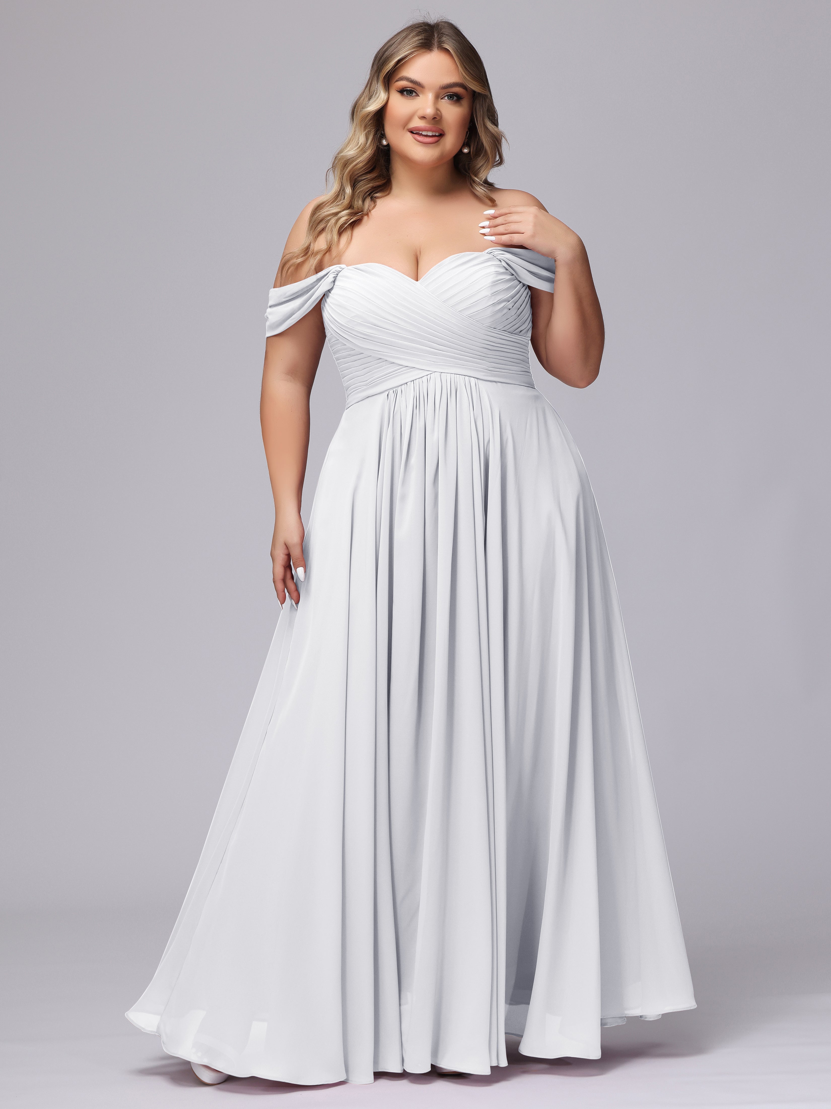 A-line Sweetheart Off-the-Shoulder Plus Size Chiffon Bridesmaid Dress
