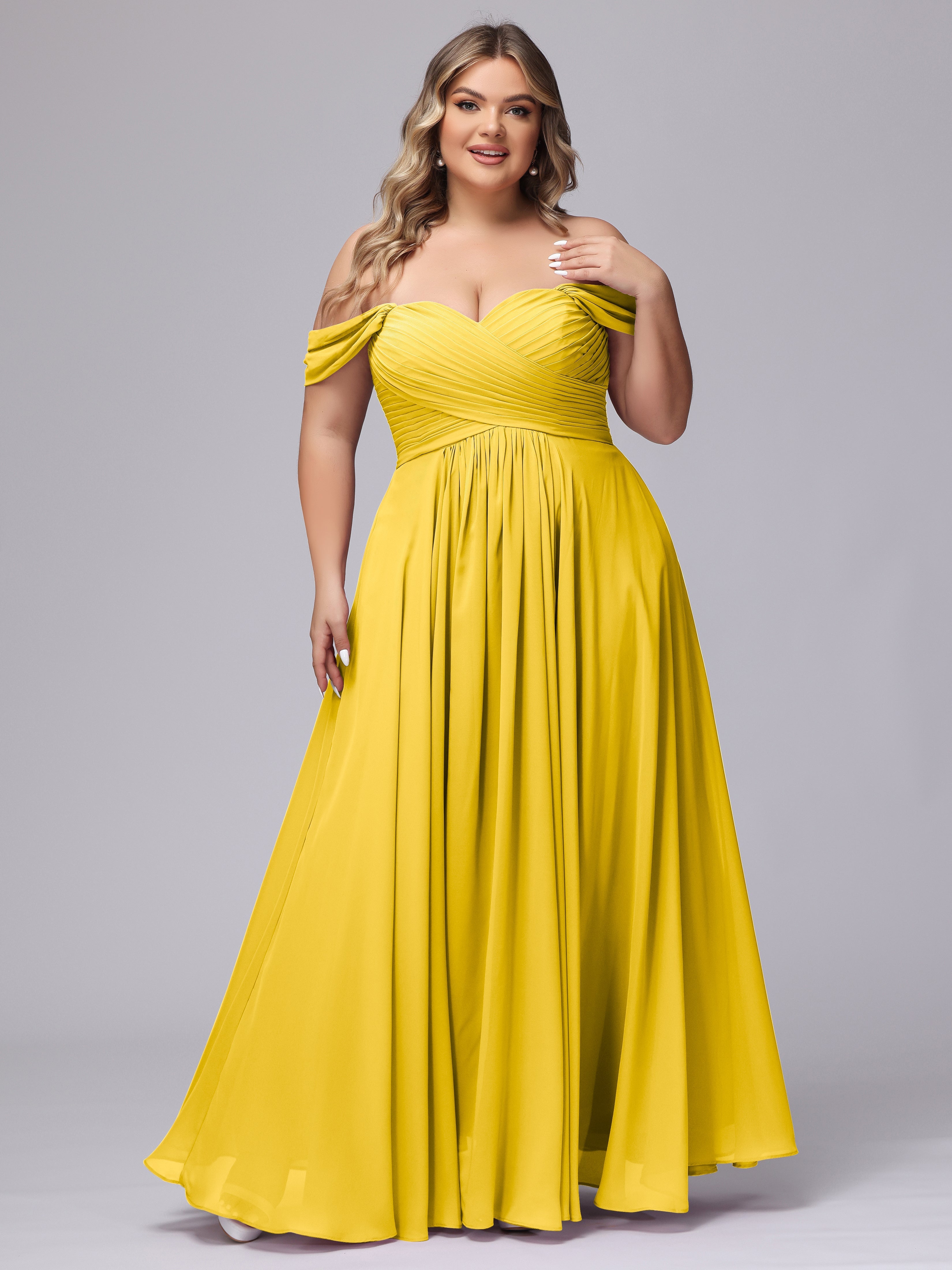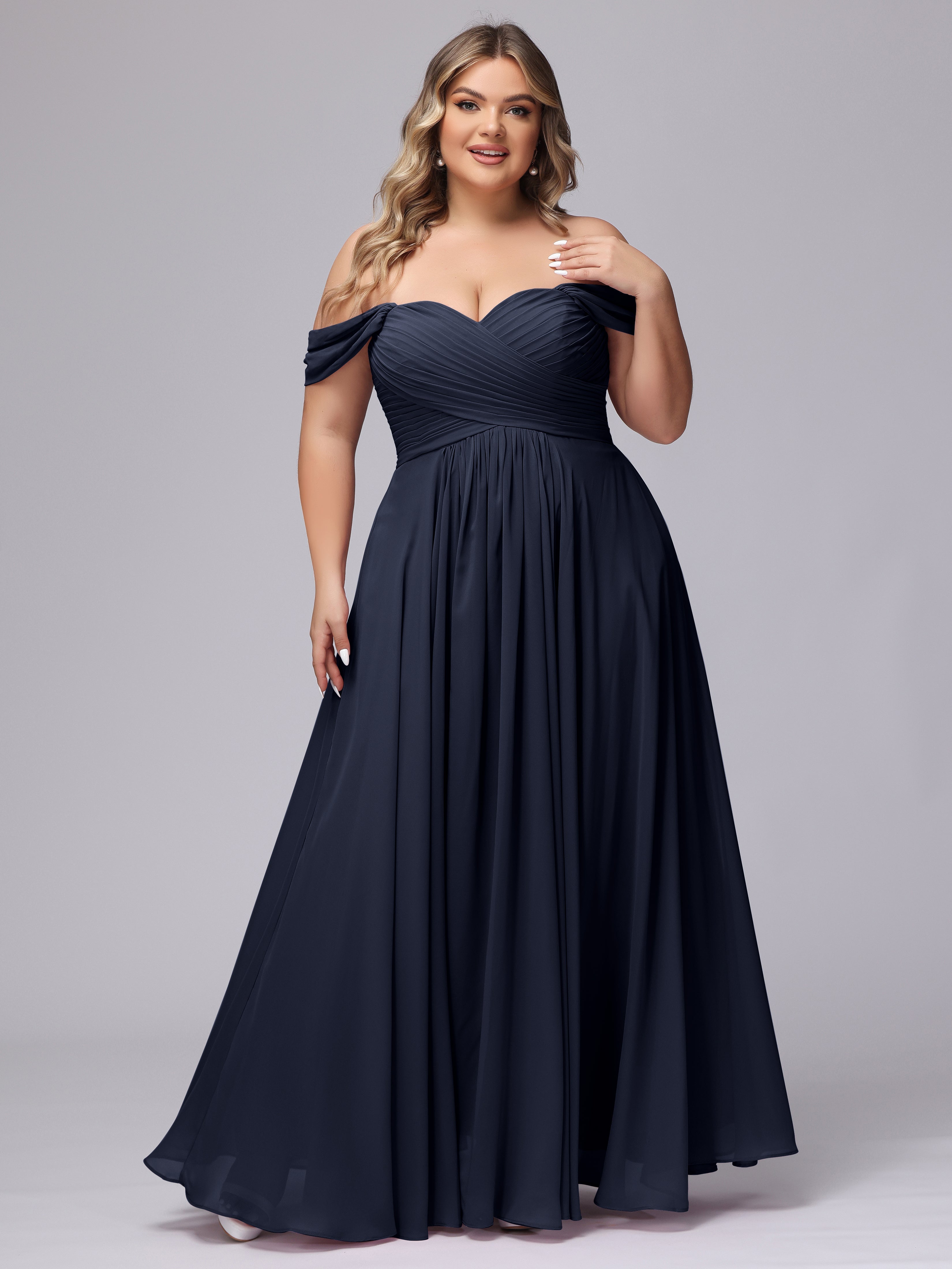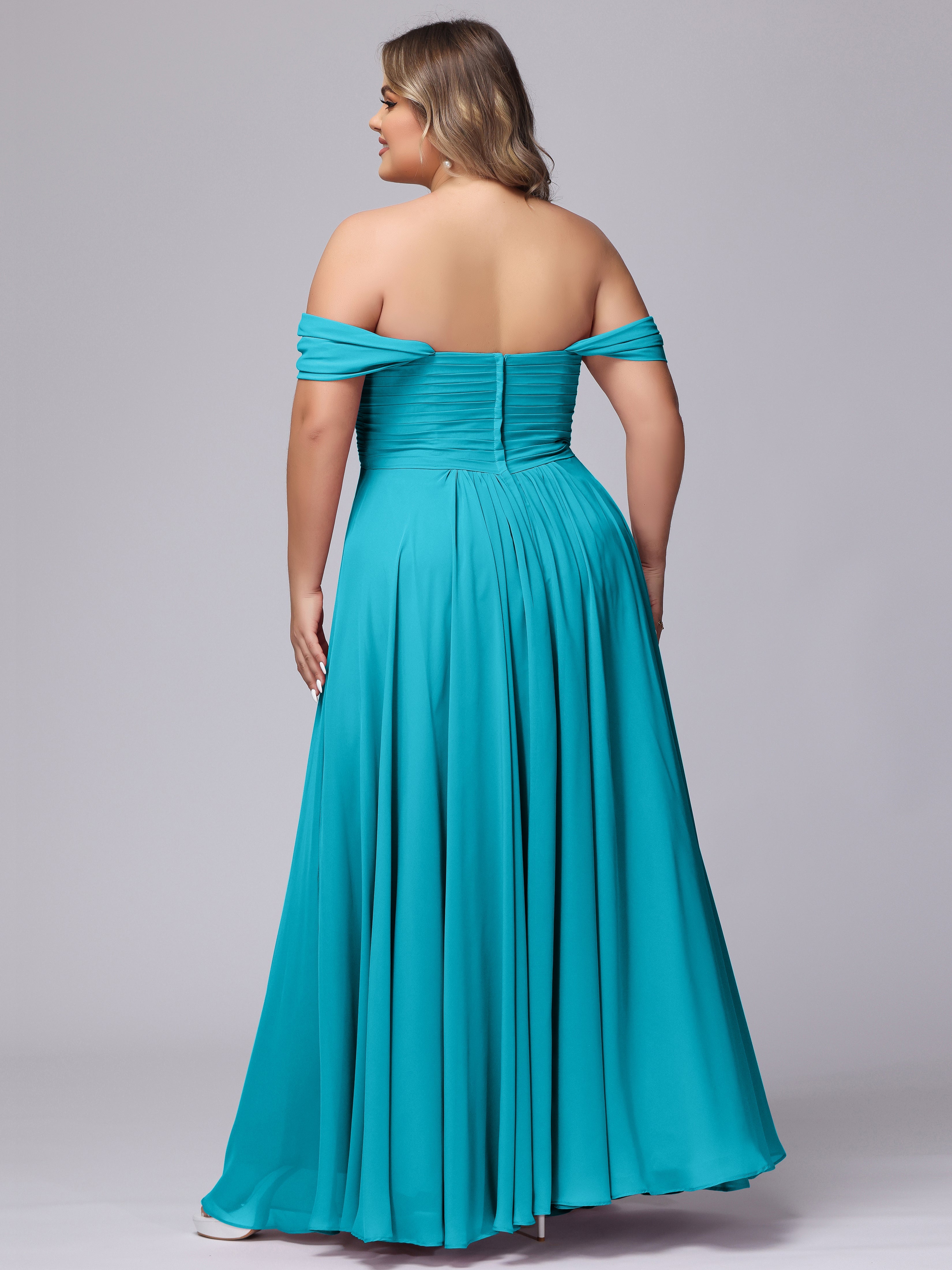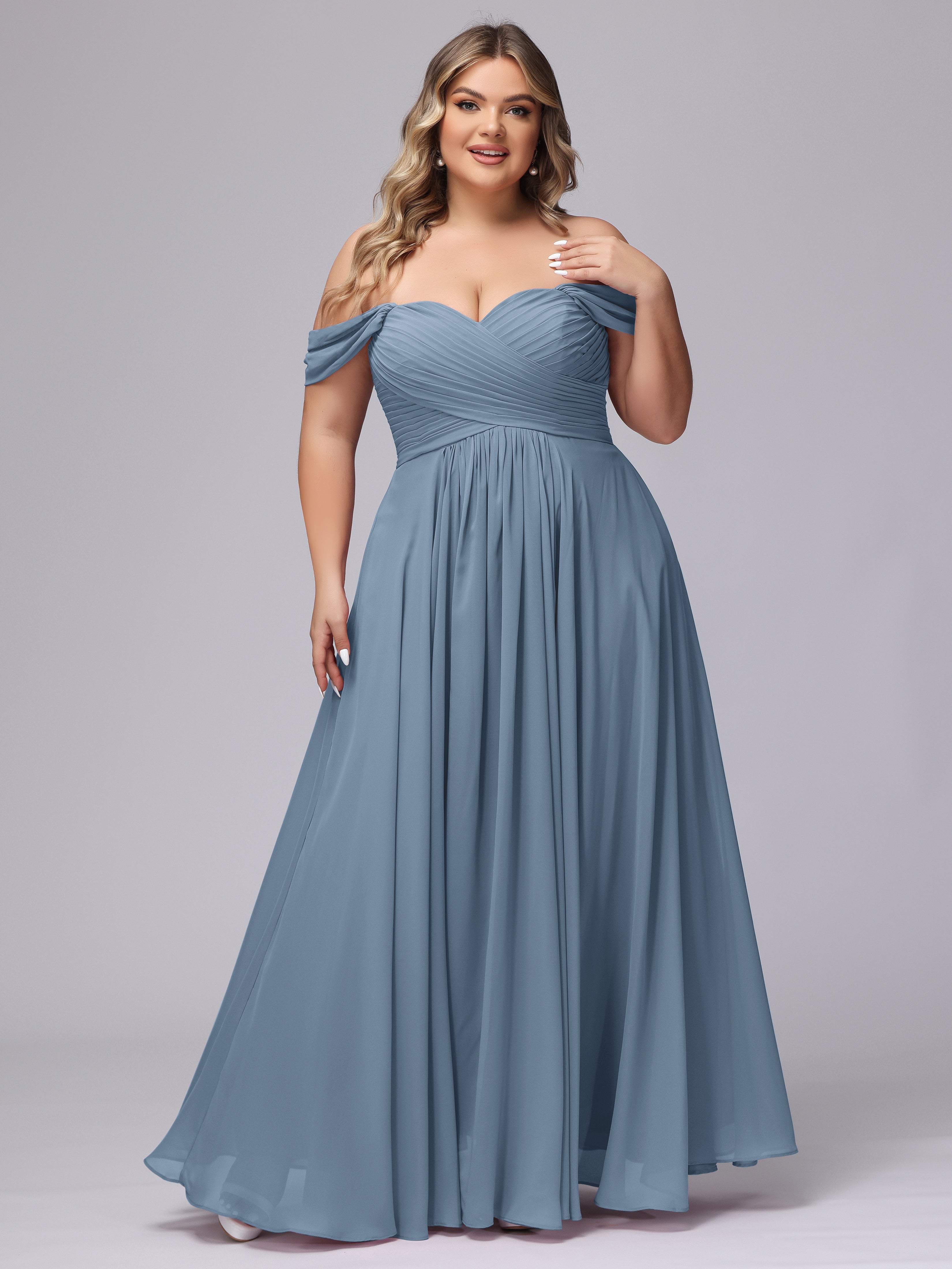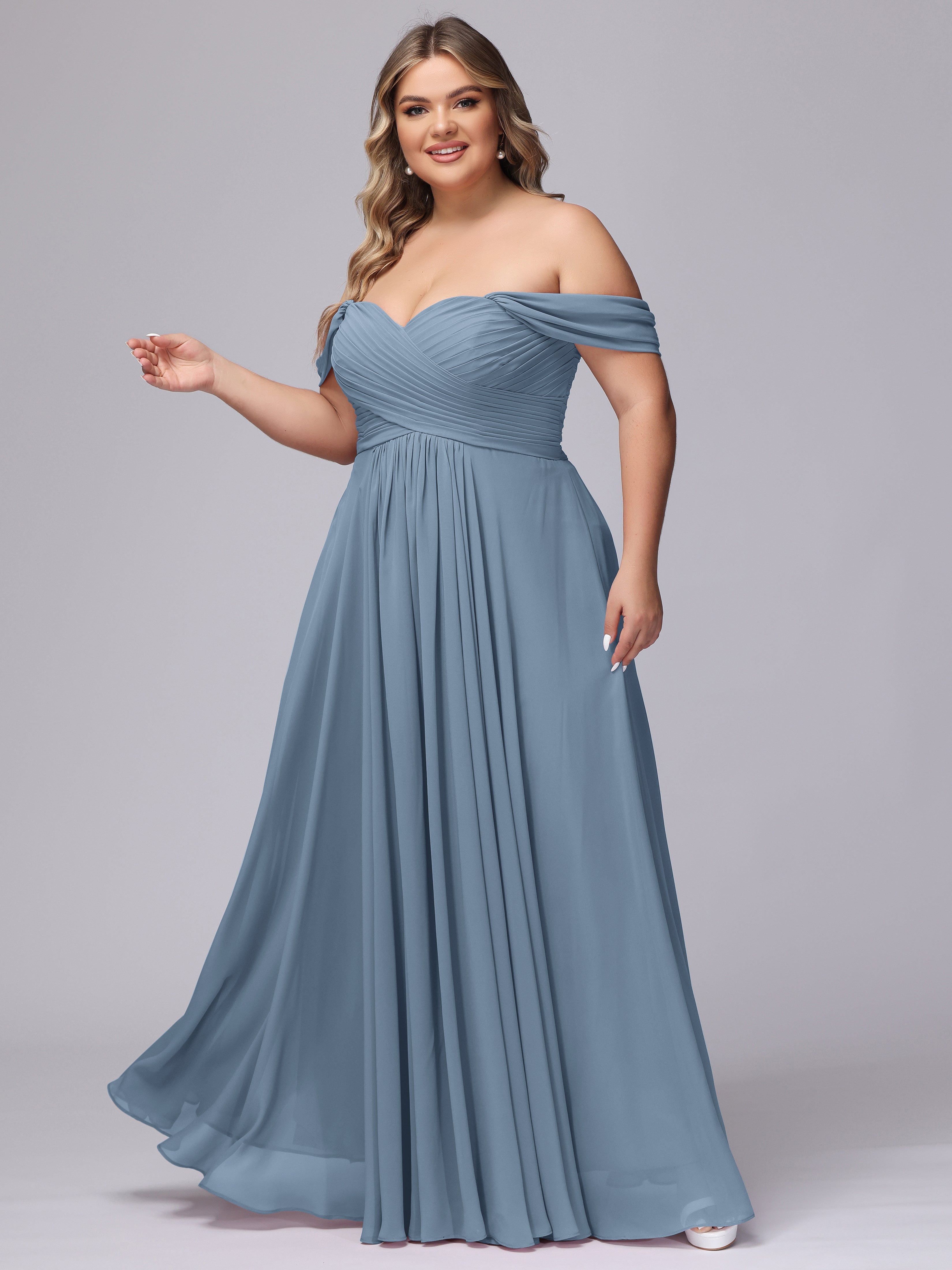 A-line Sweetheart Off-the-Shoulder Plus Size Chiffon Bridesmaid Dress