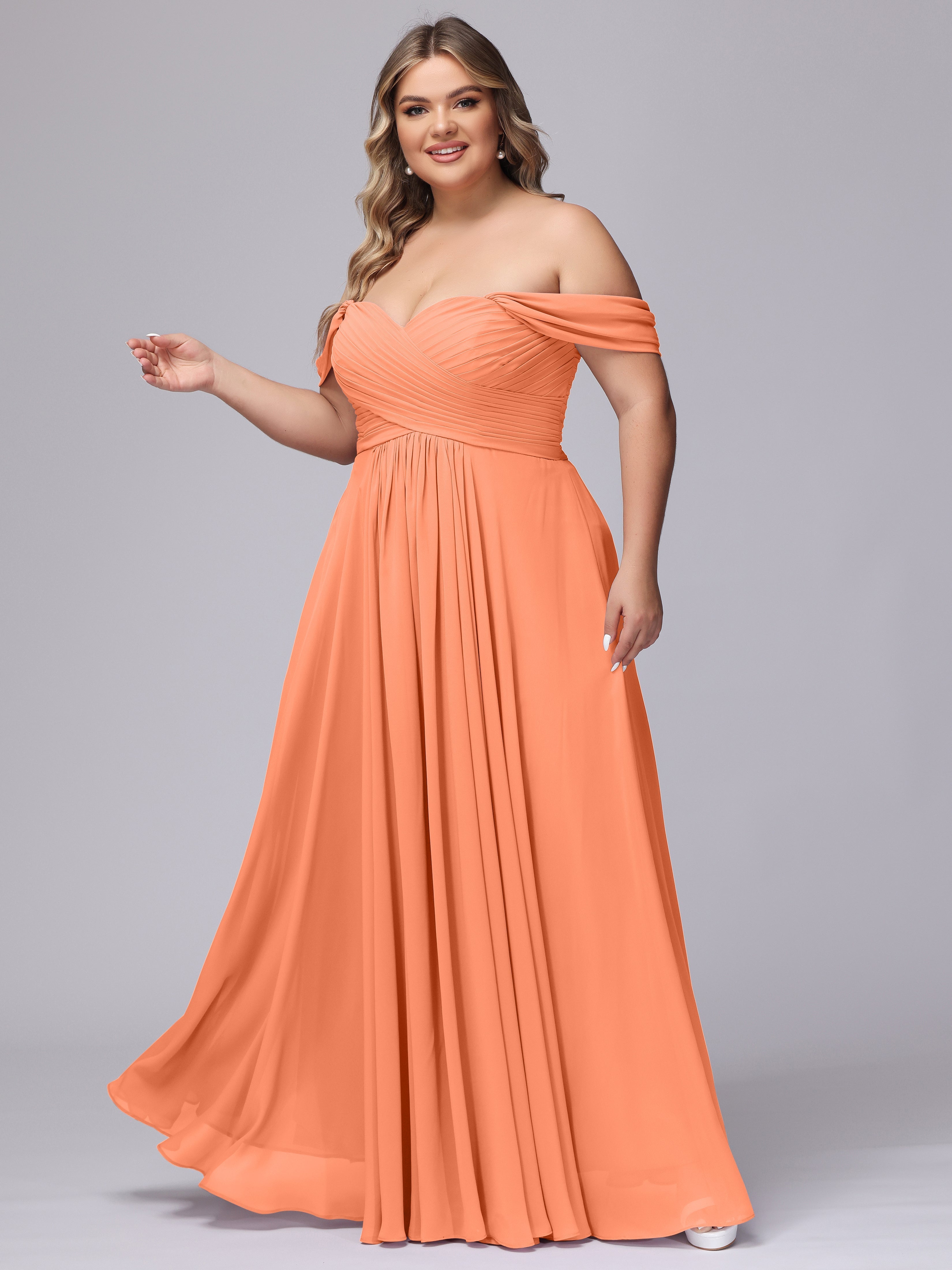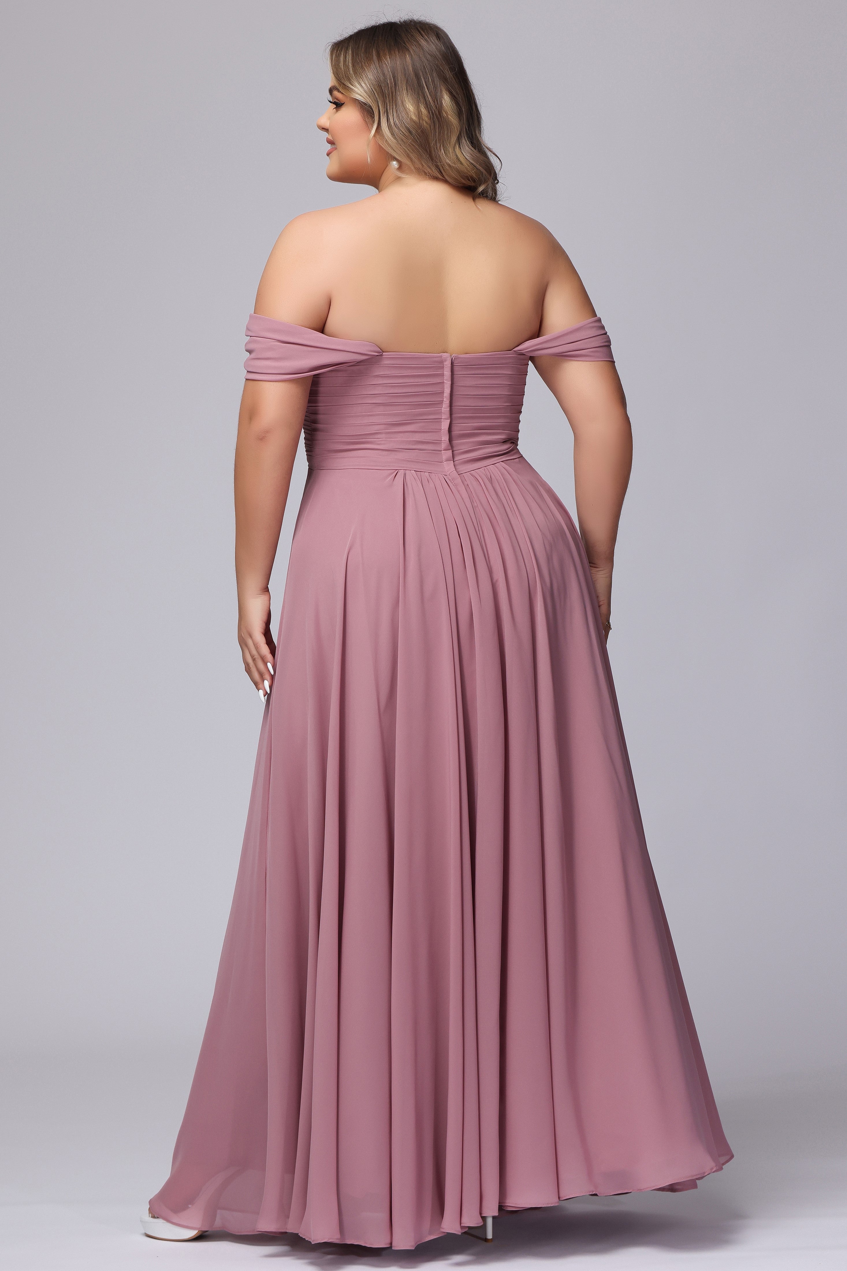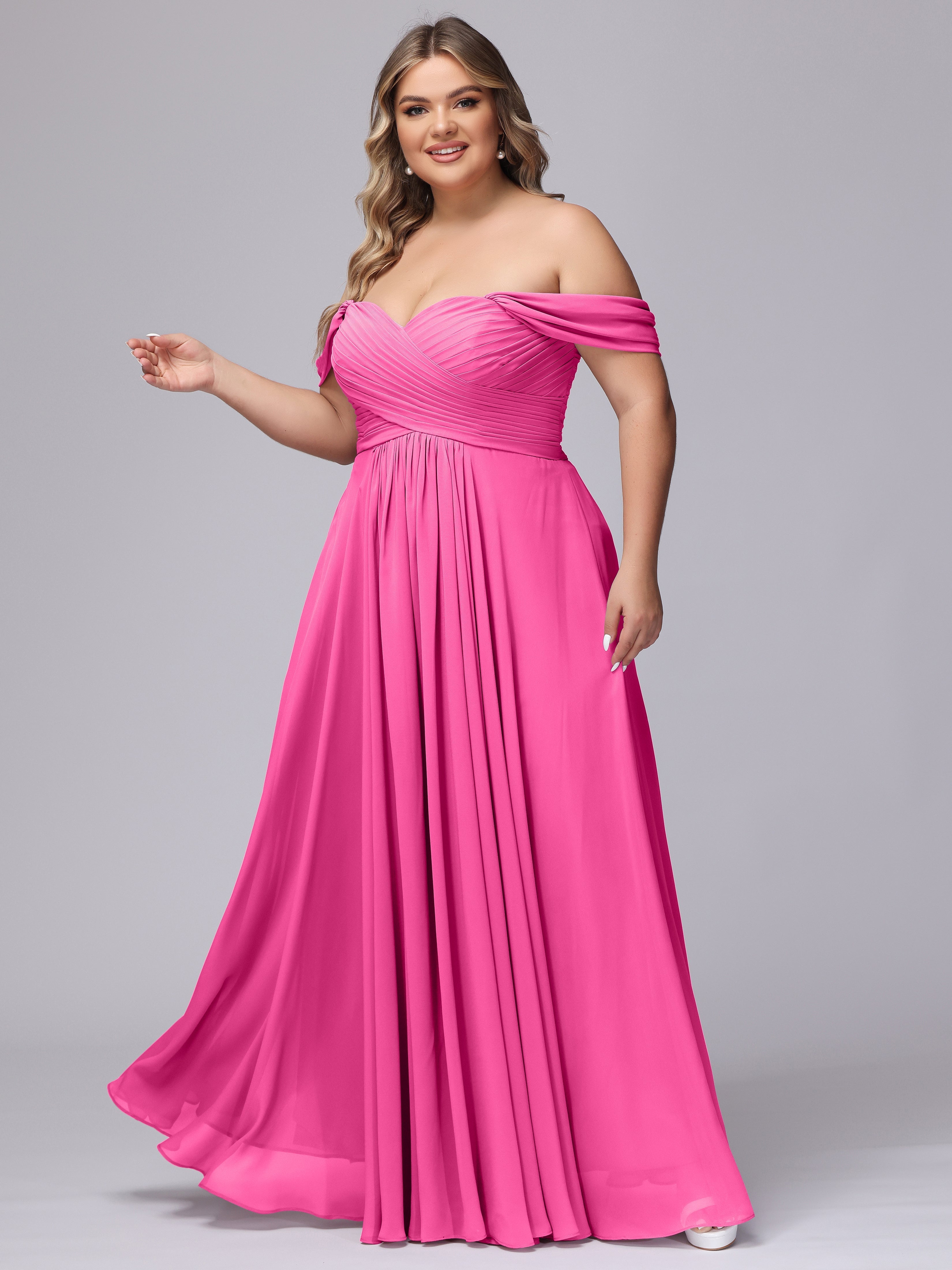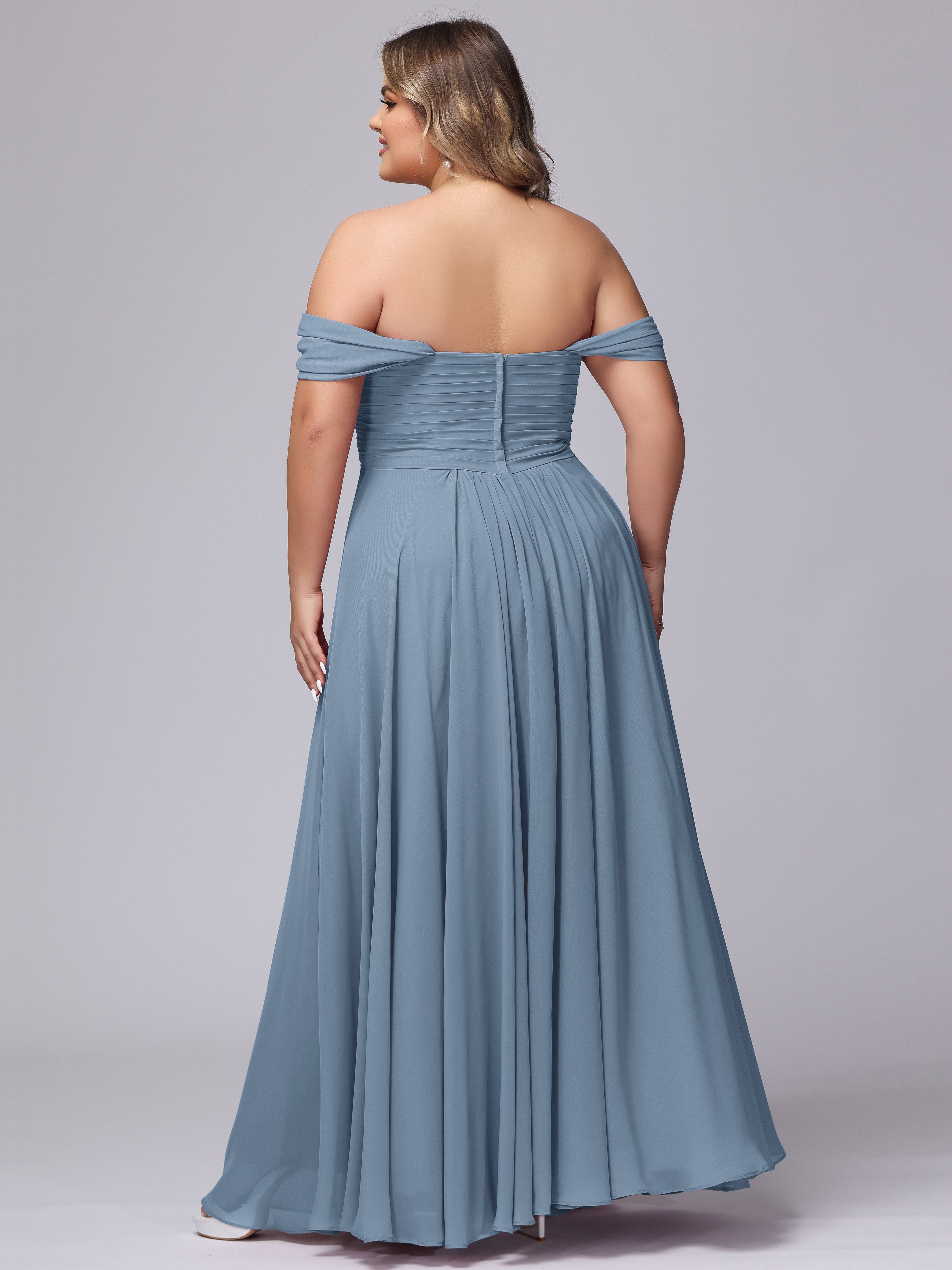 A-line Sweetheart Off-the-Shoulder Plus Size Chiffon Bridesmaid Dress
