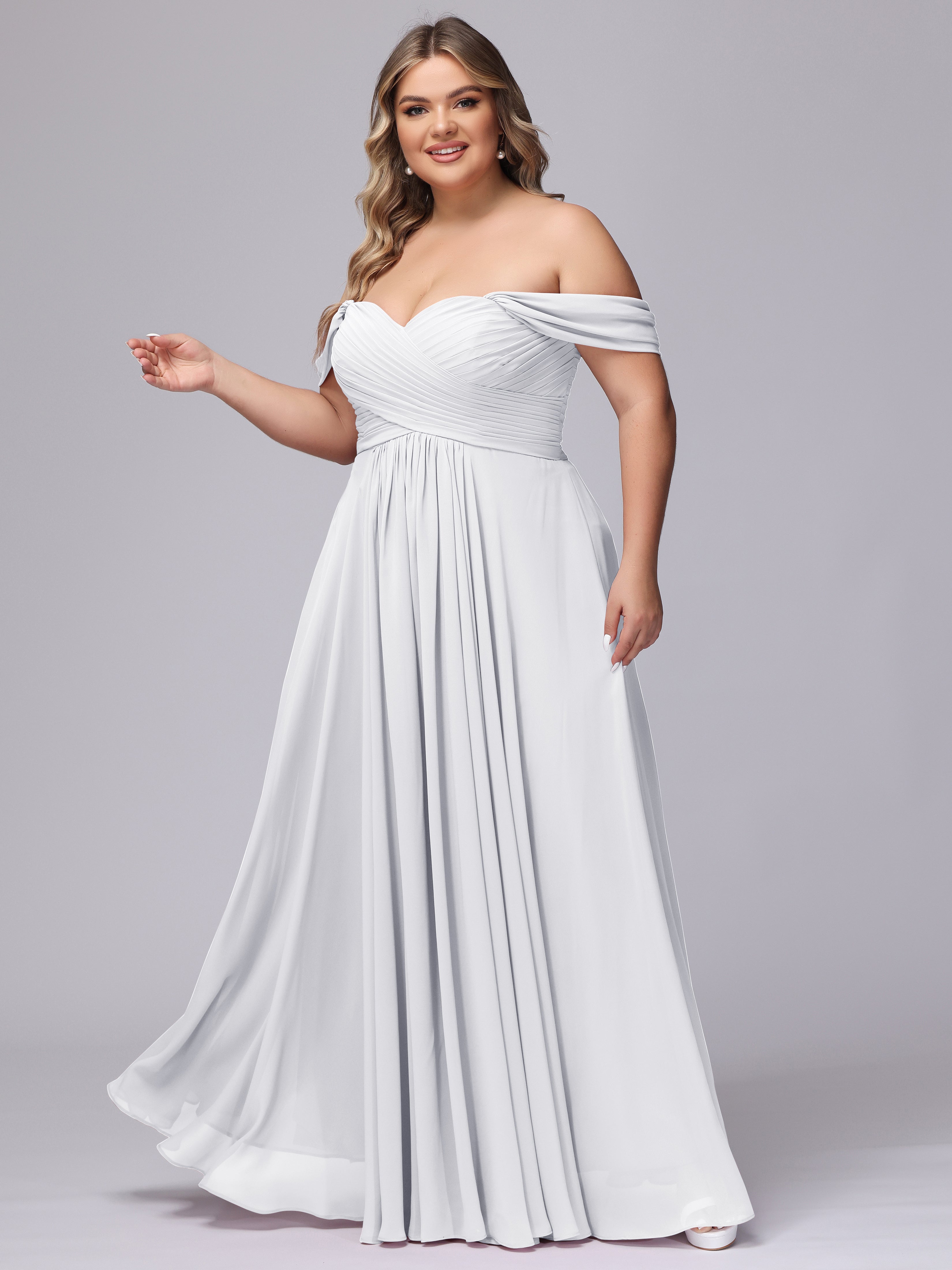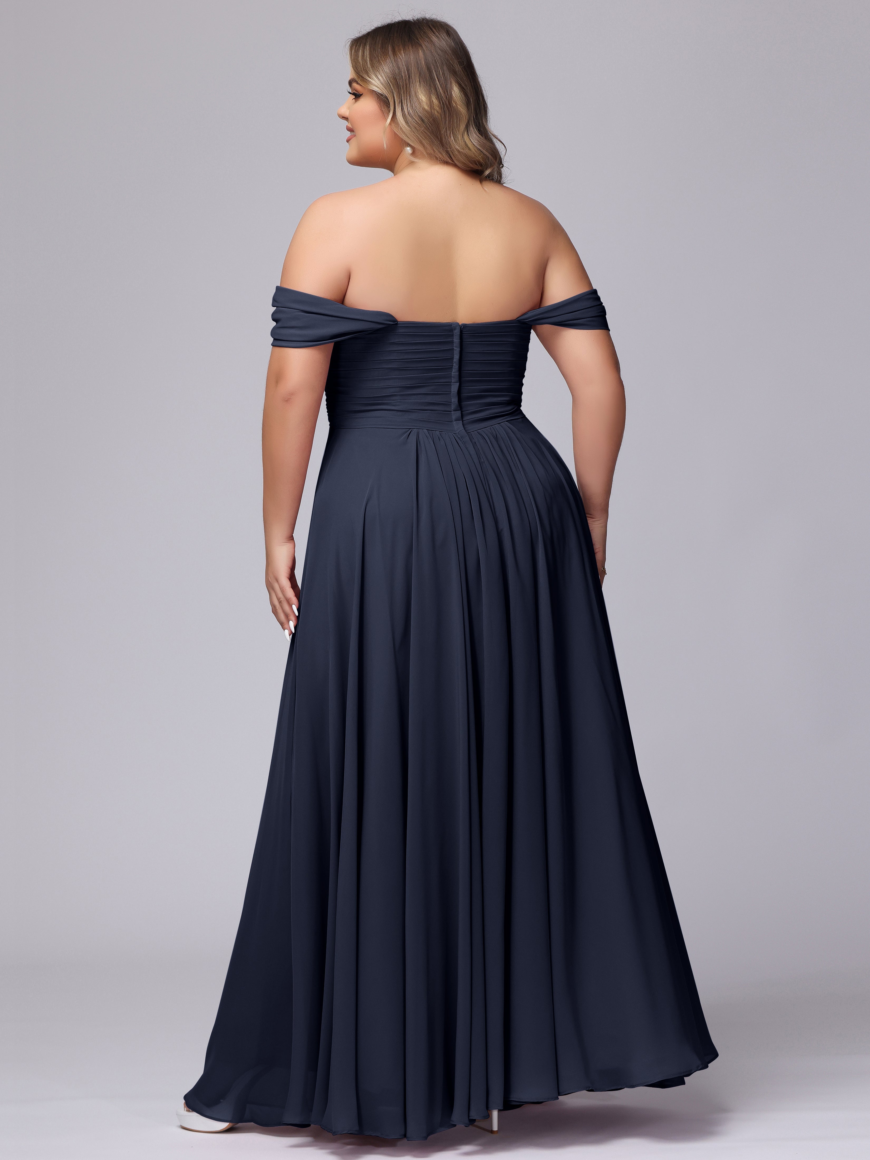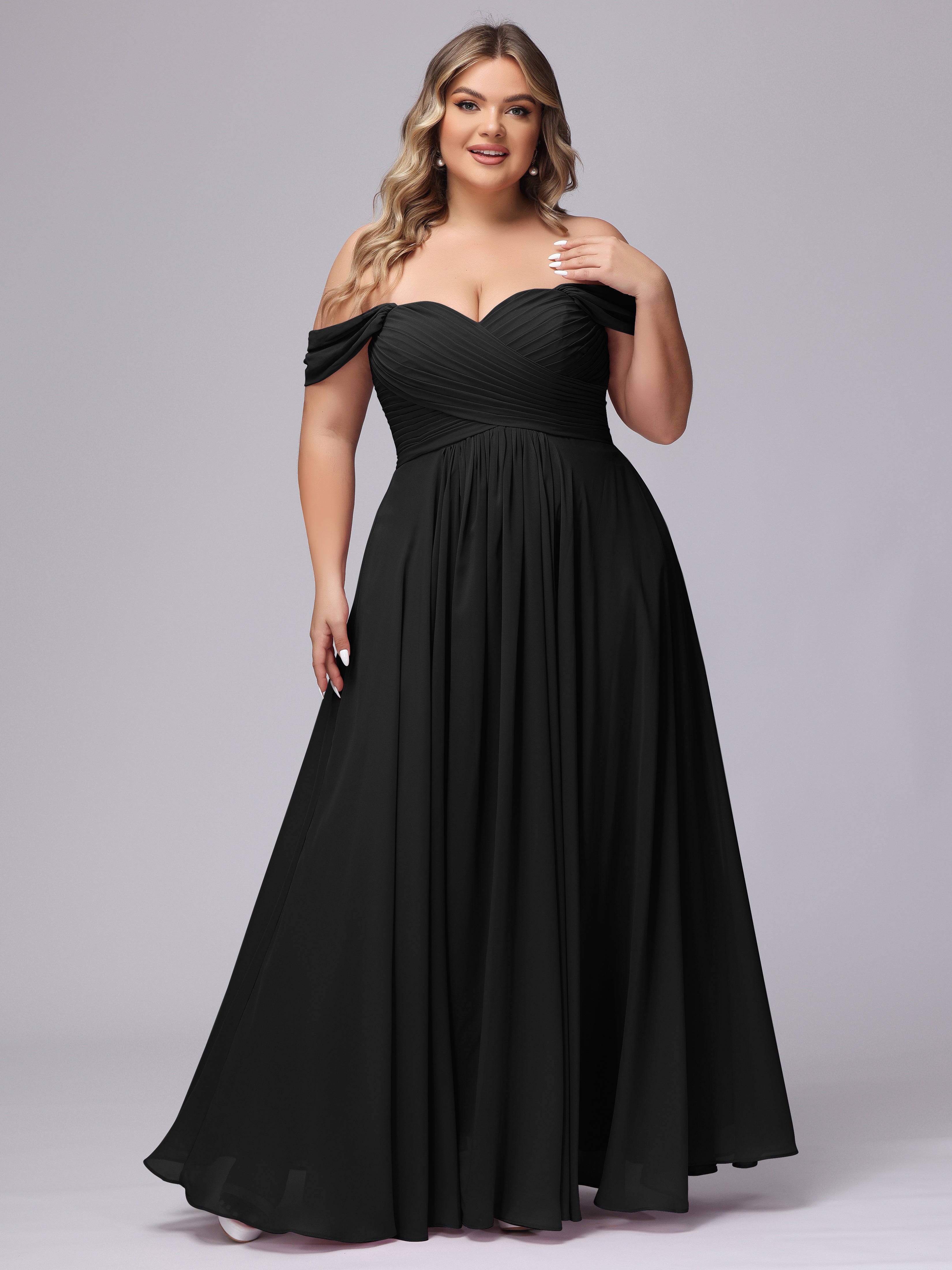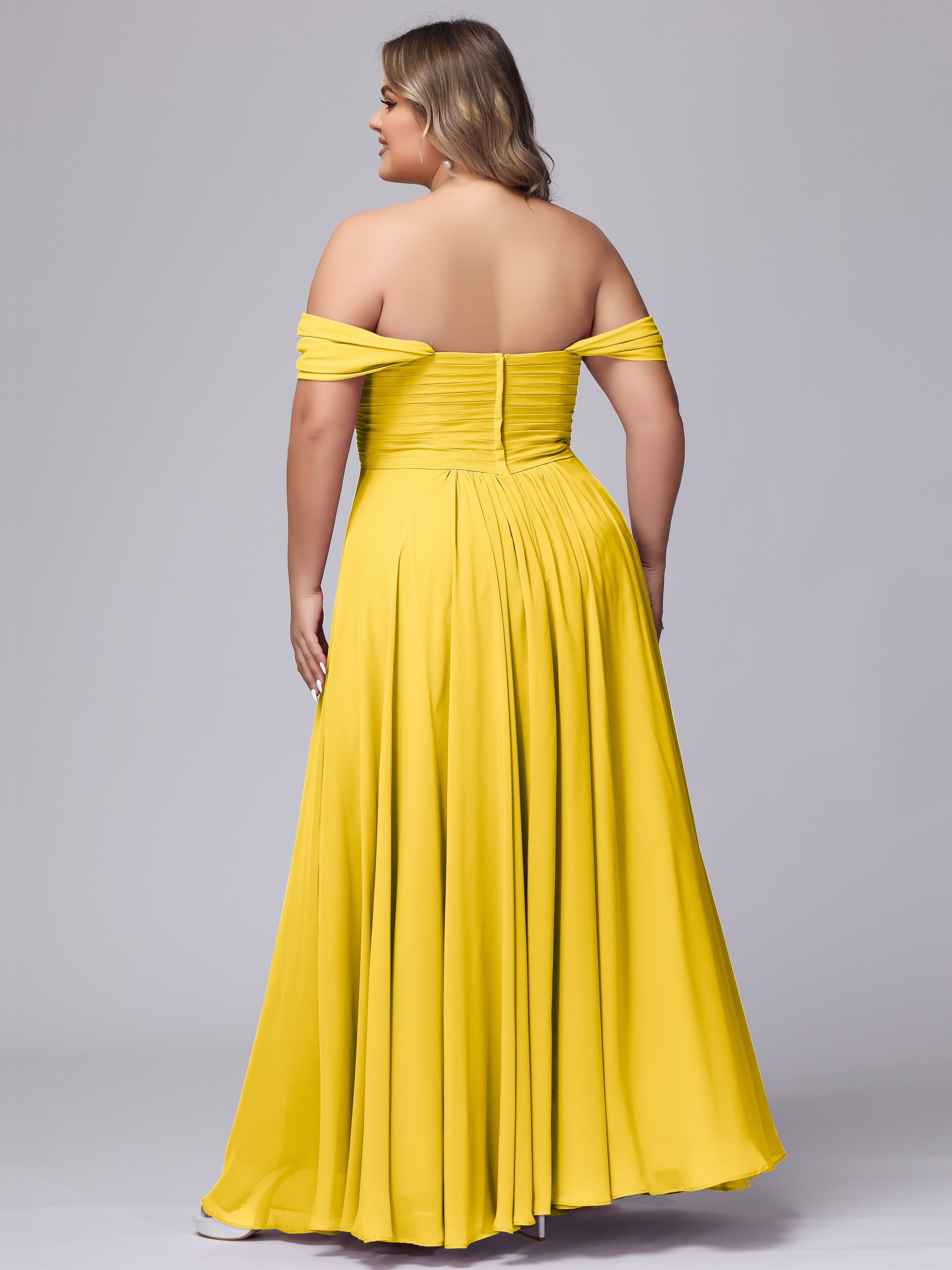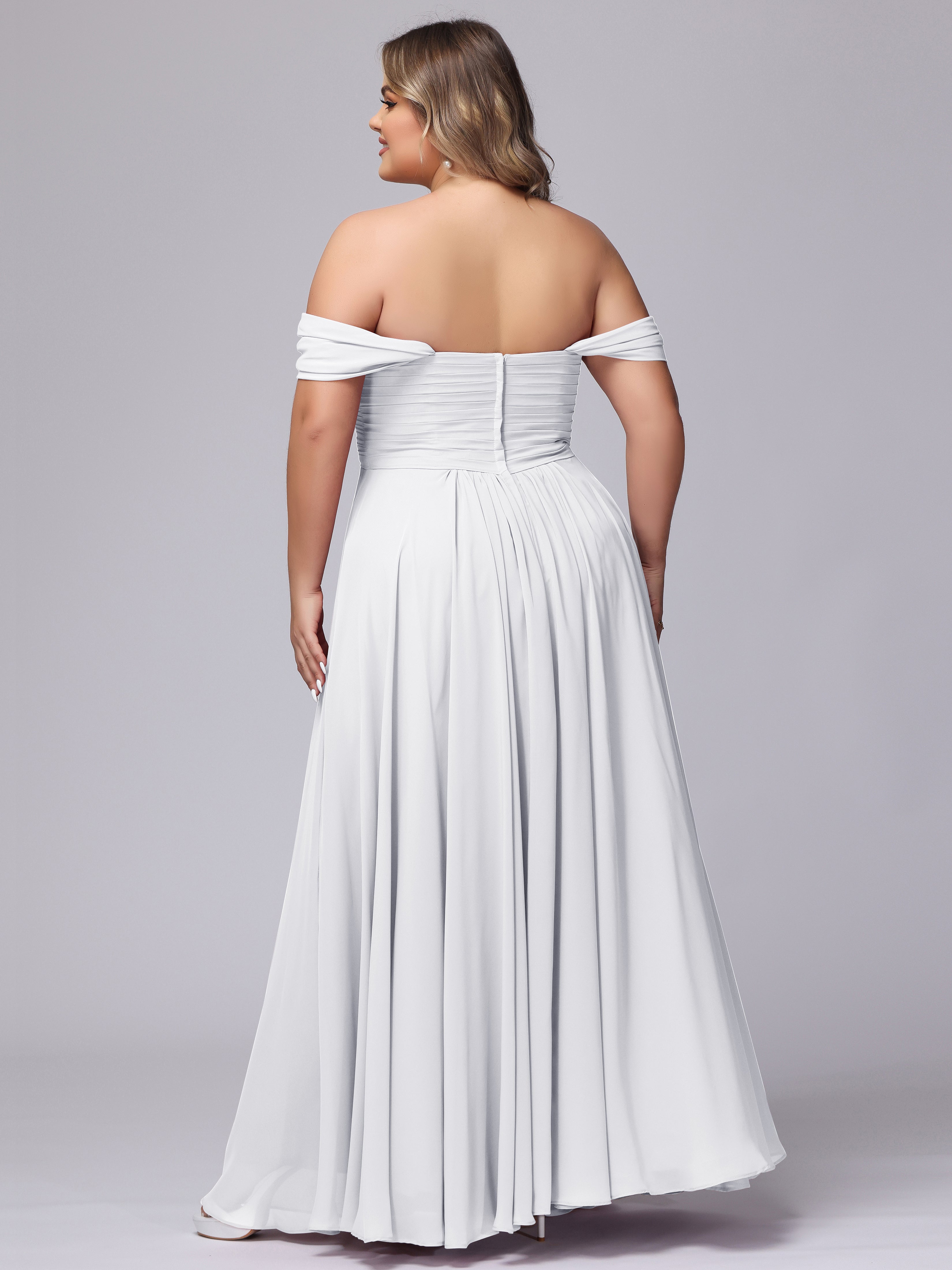 A-line Sweetheart Off-the-Shoulder Plus Size Chiffon Bridesmaid Dress