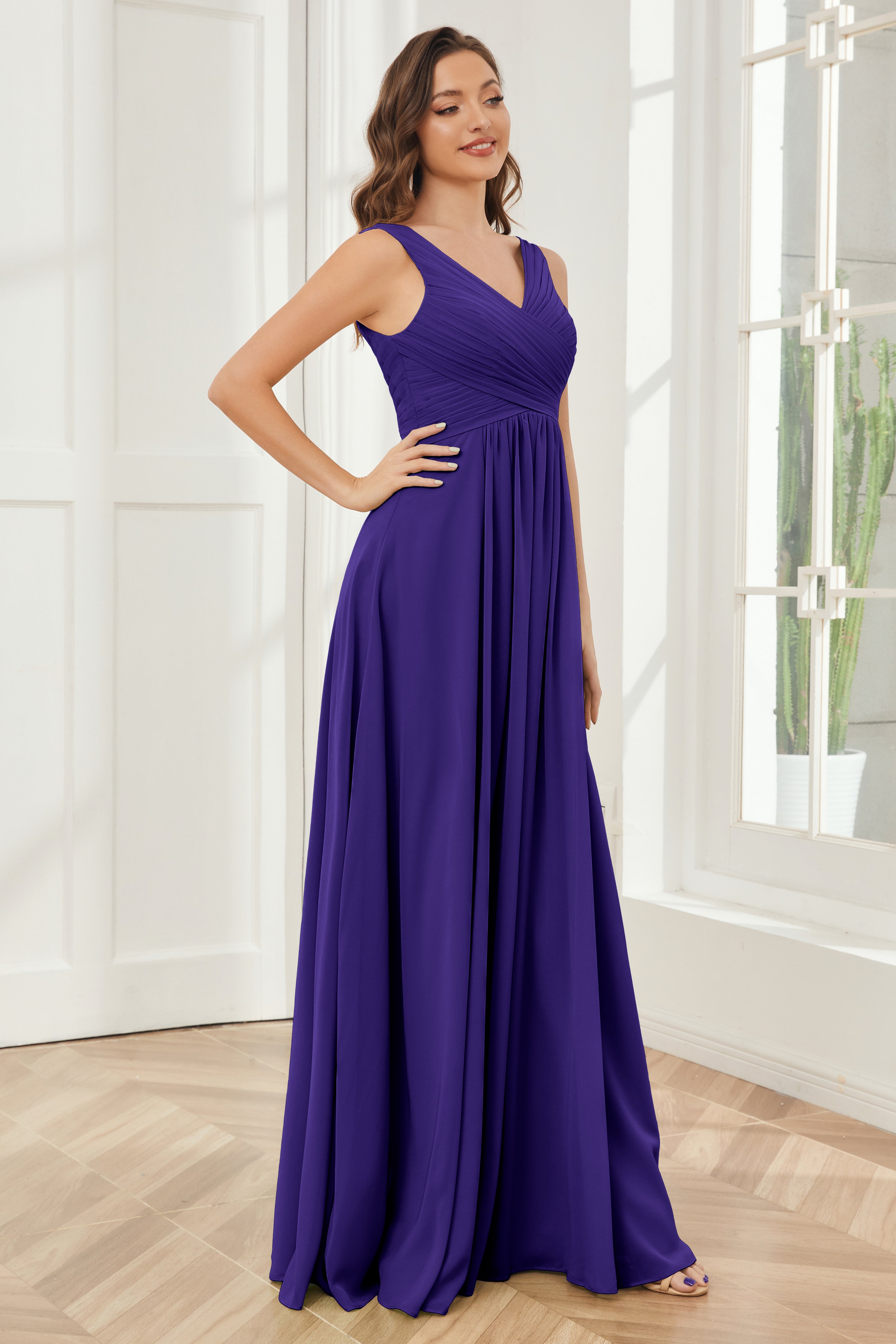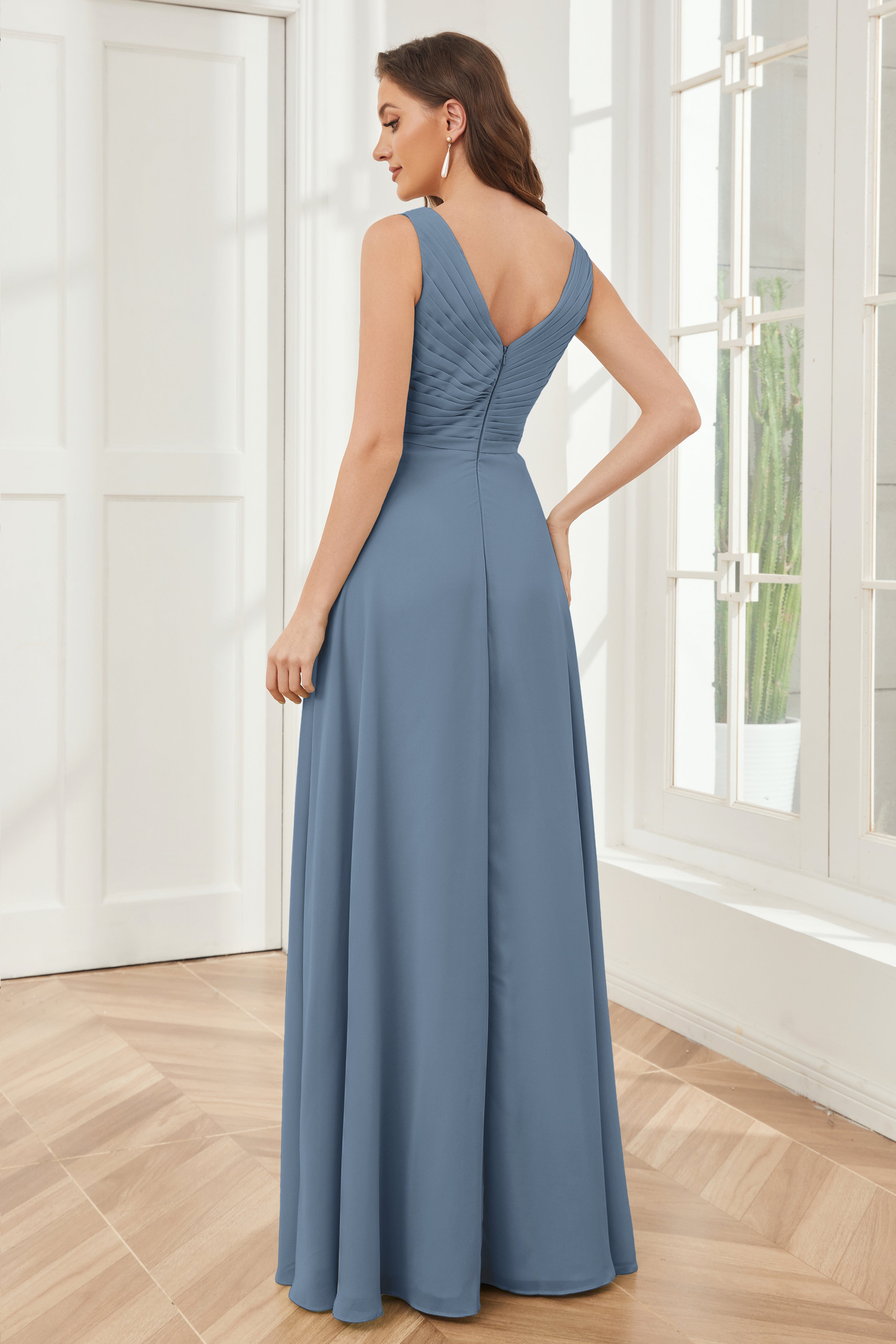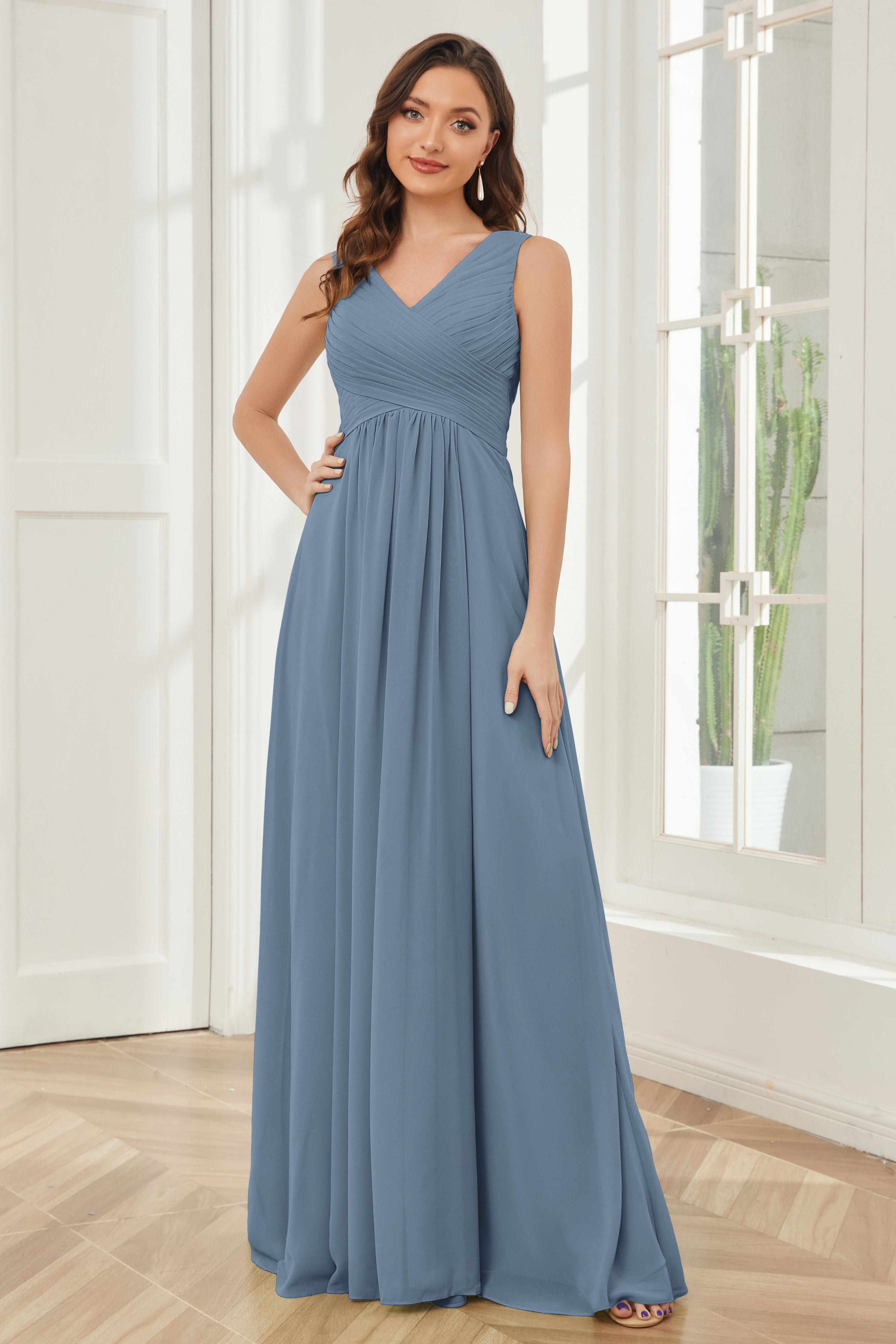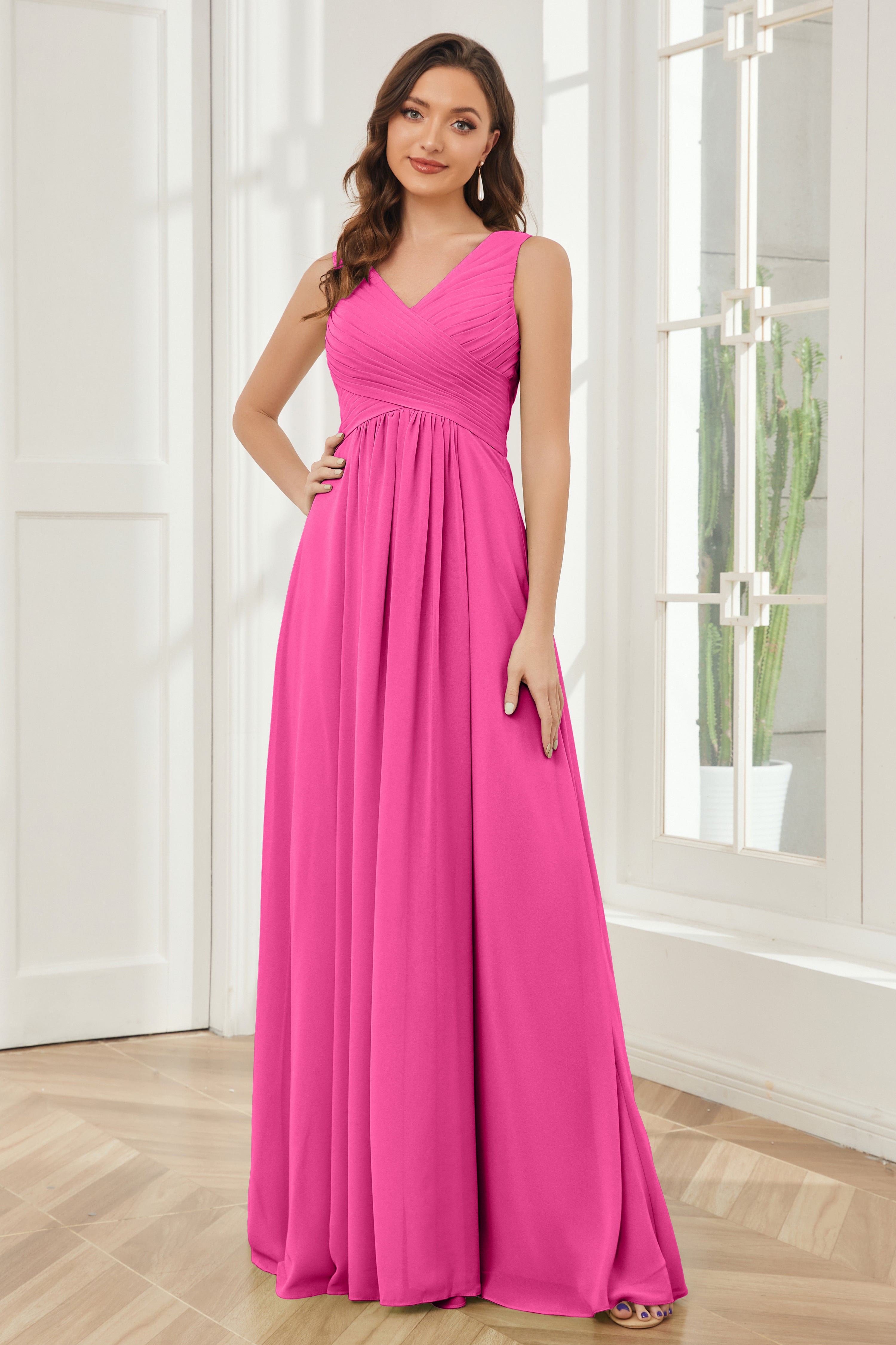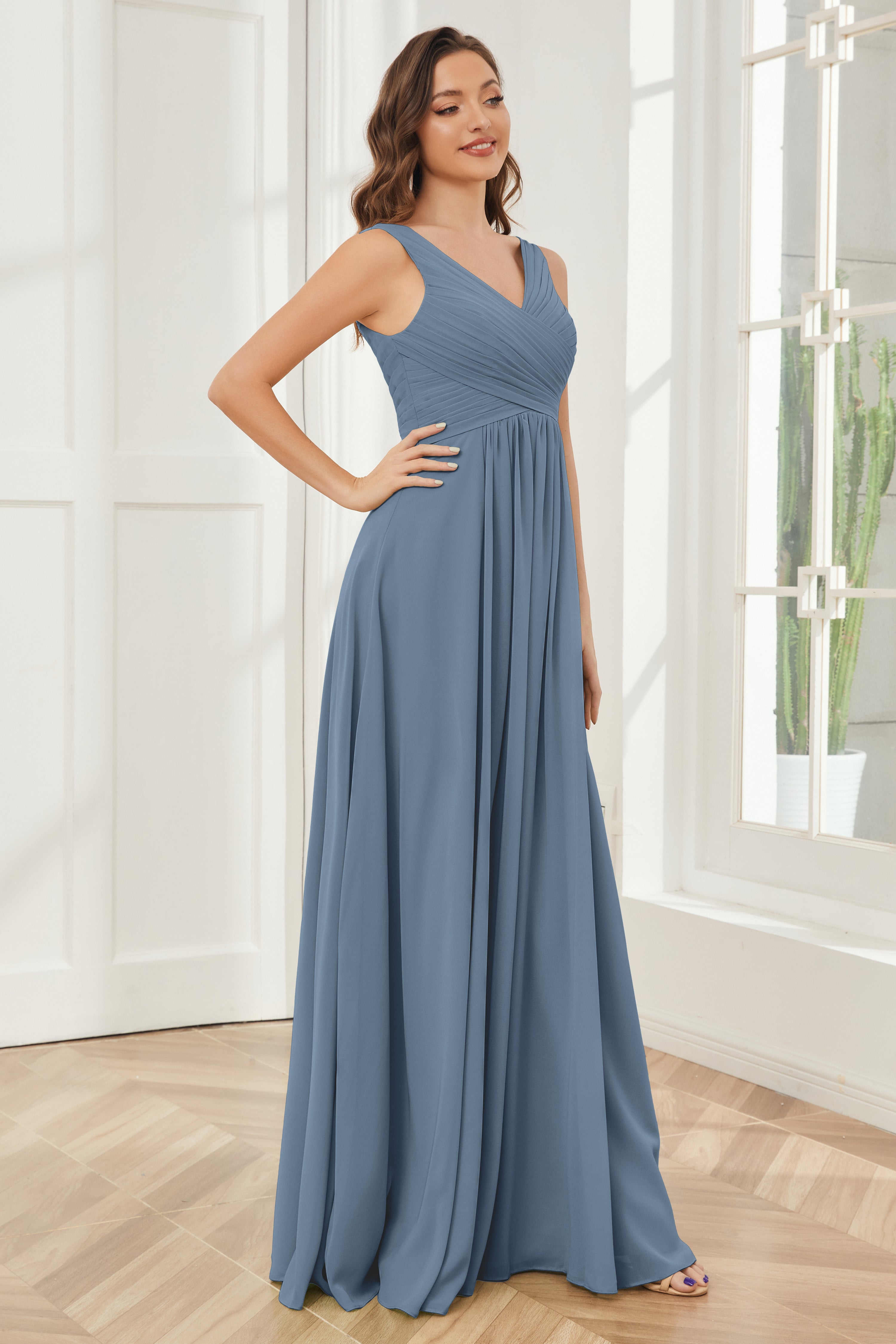 A-line V-neck Floor Length Chiffon Bridesmaid Dresses