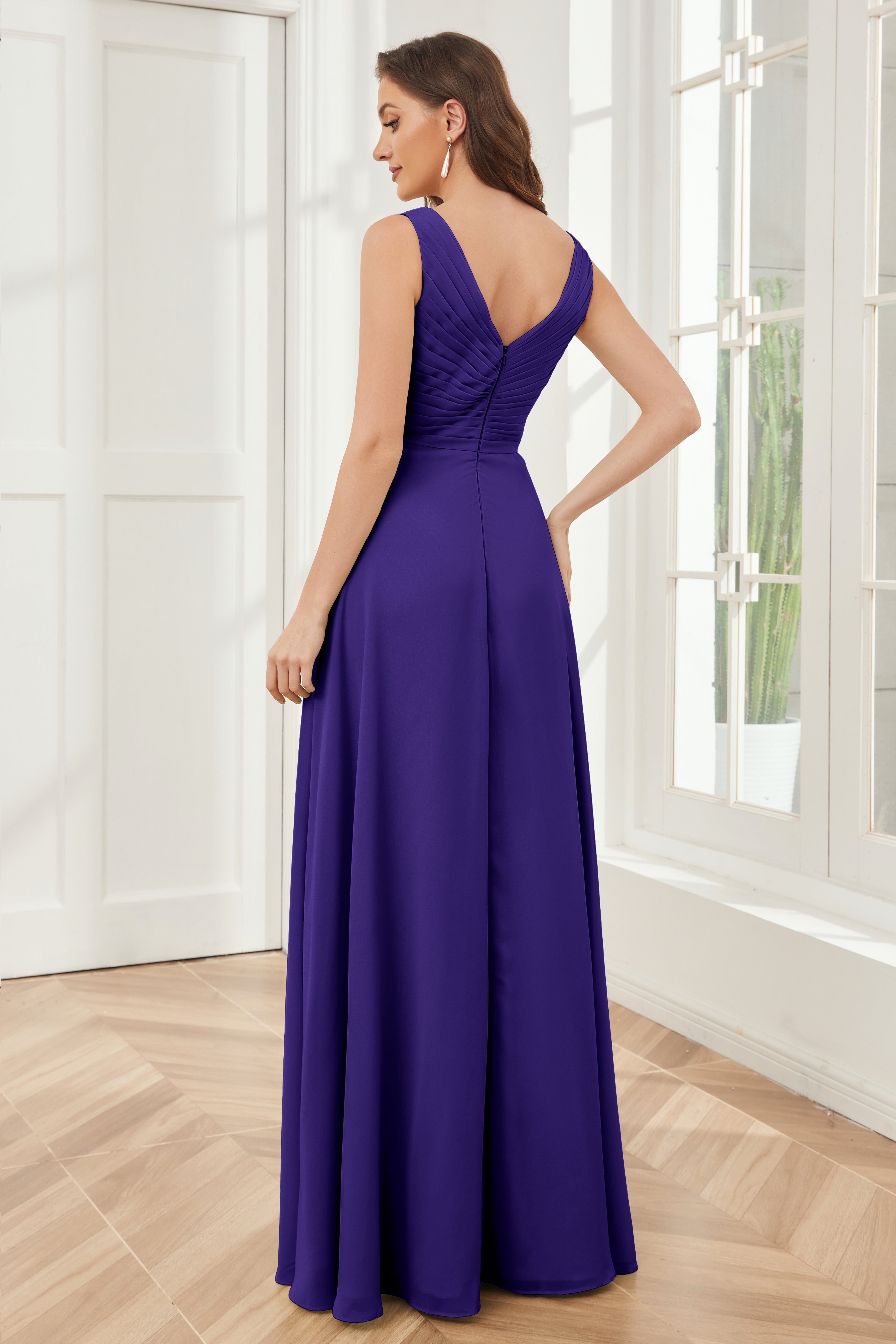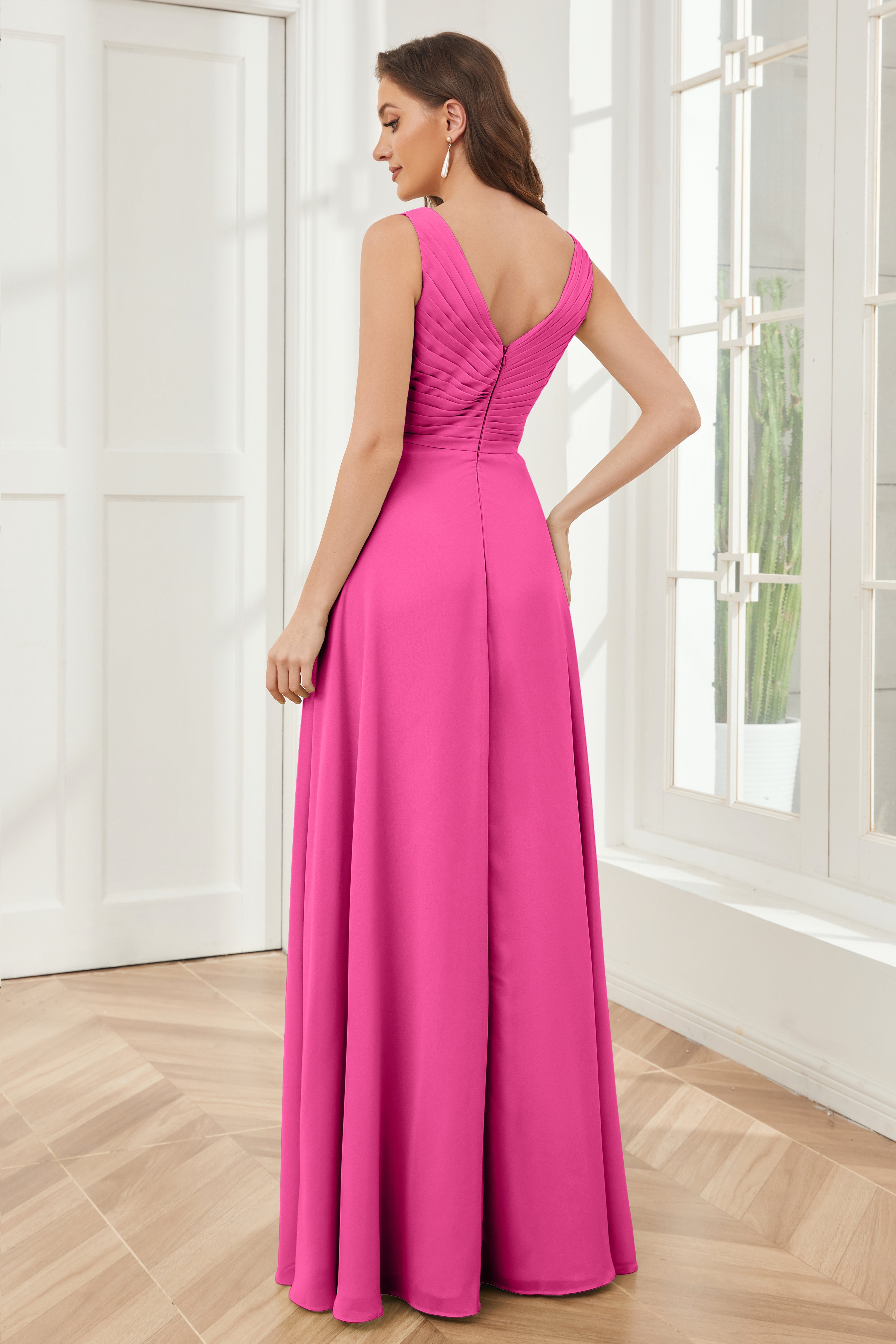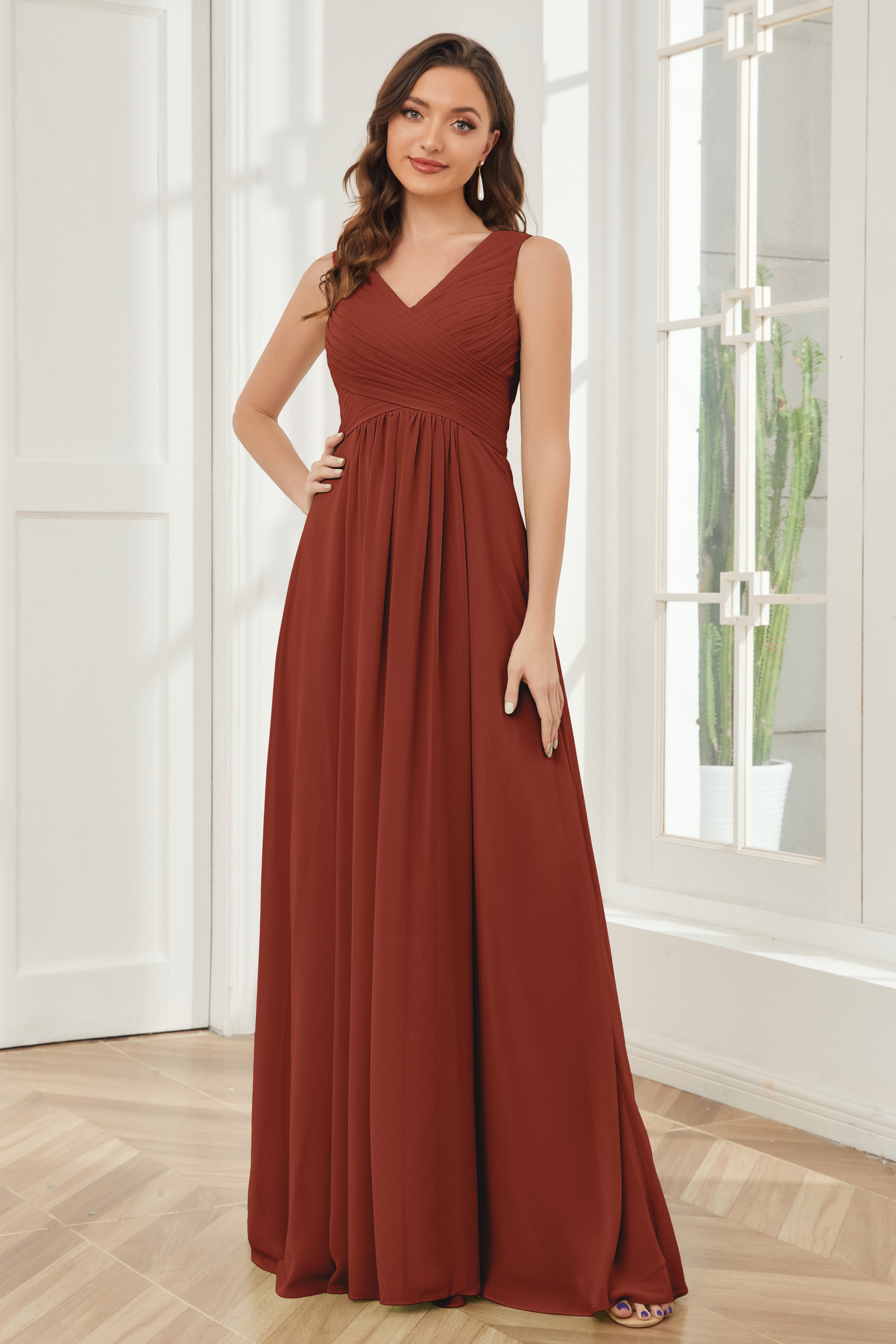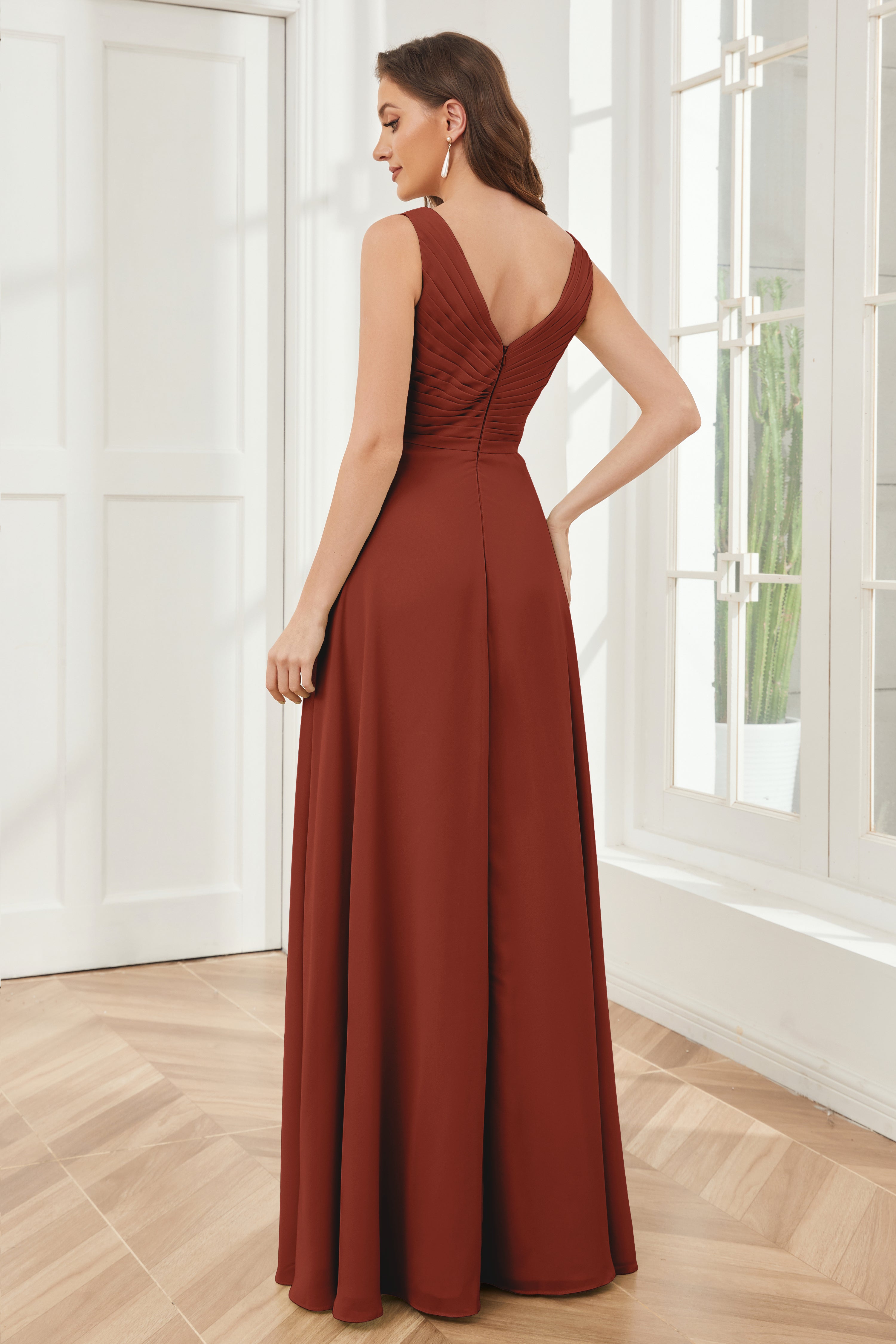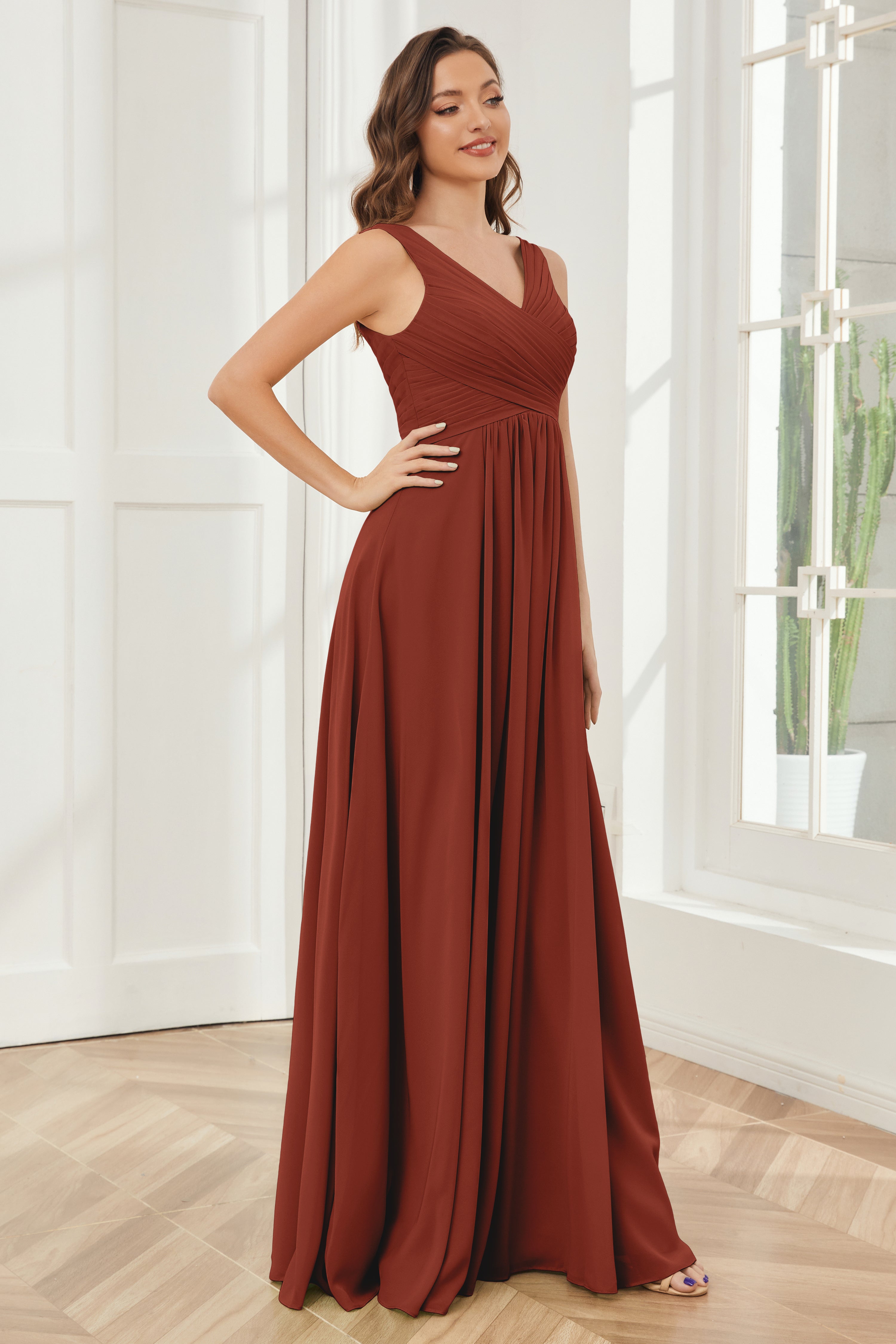 A-line V-neck Floor Length Chiffon Bridesmaid Dresses