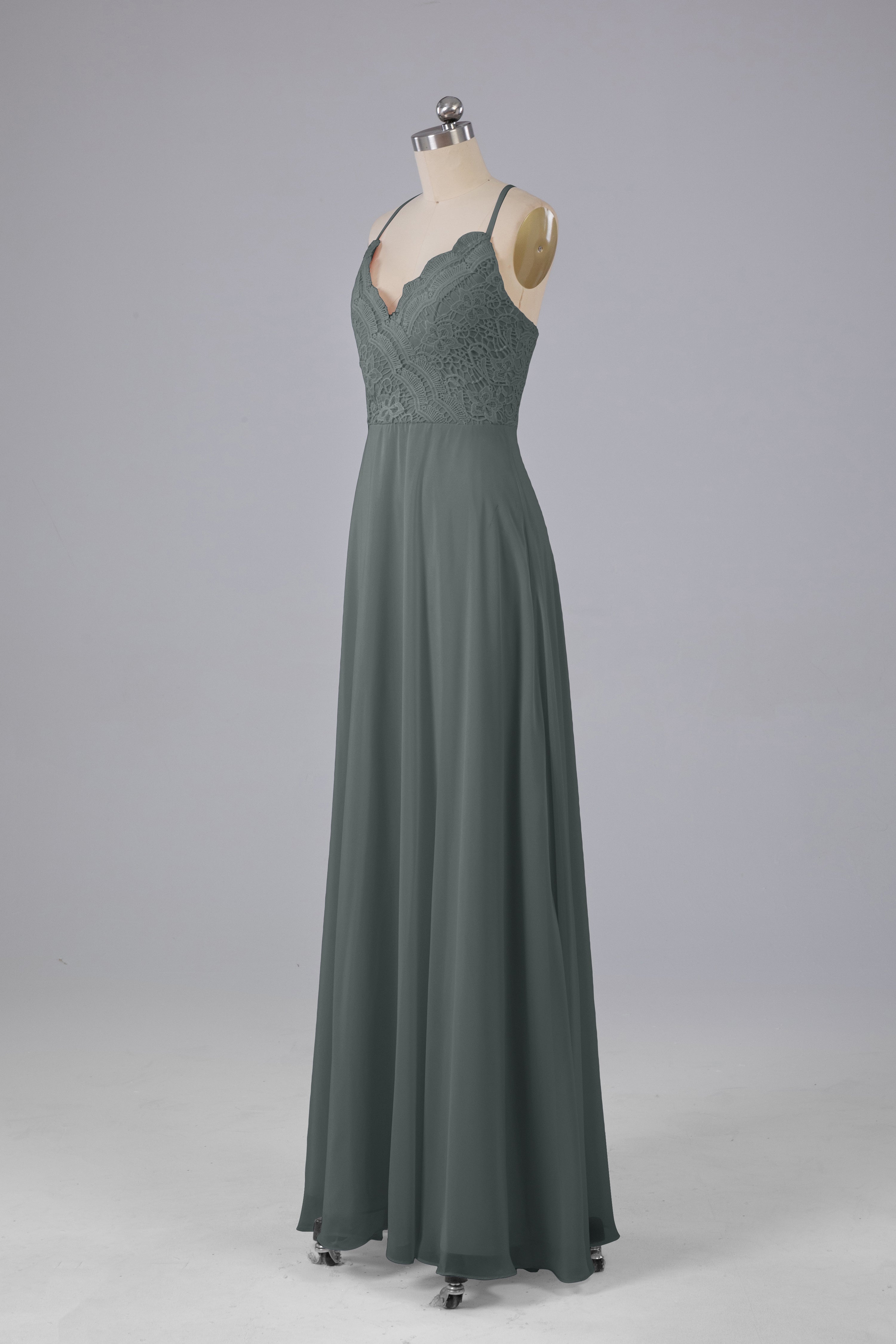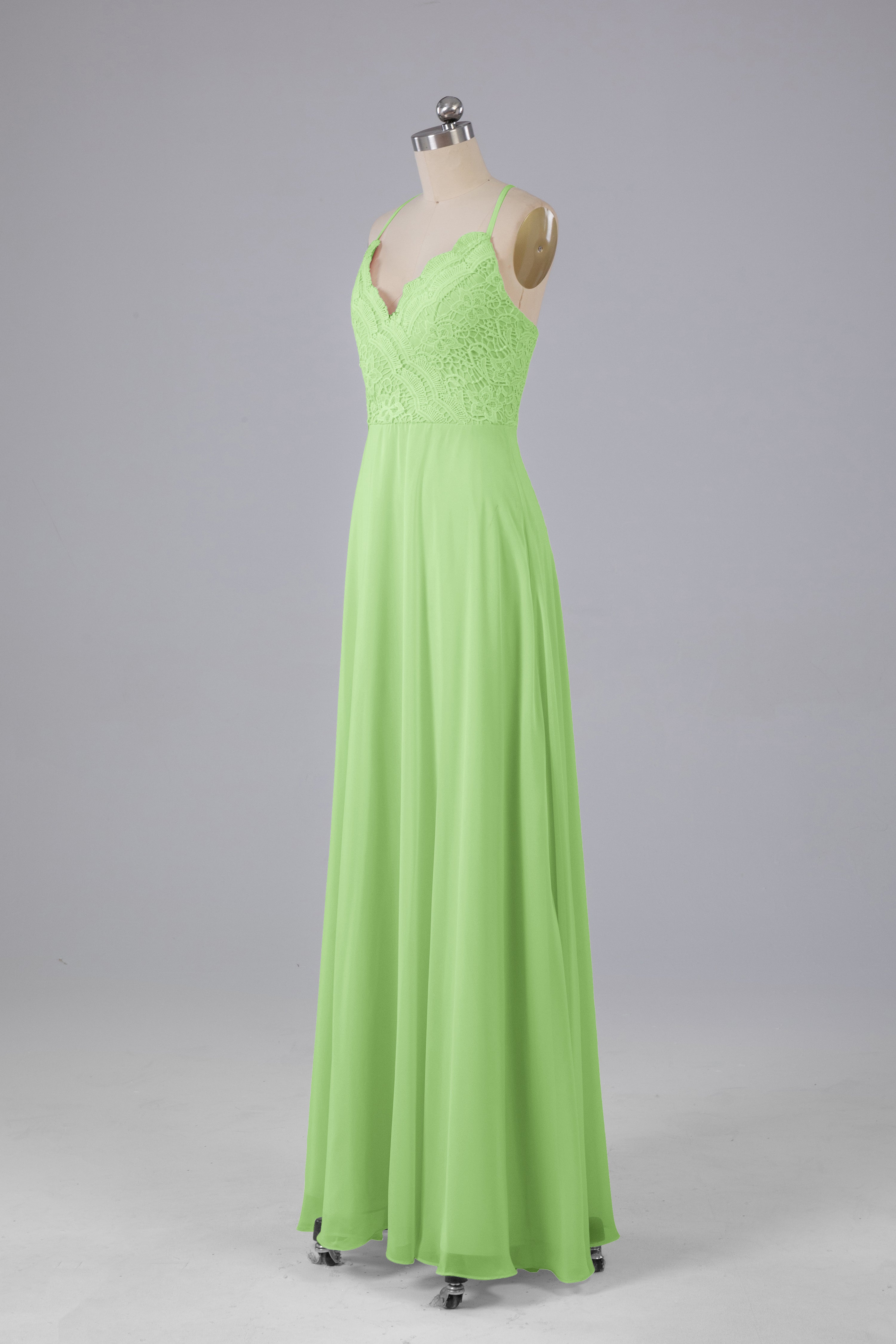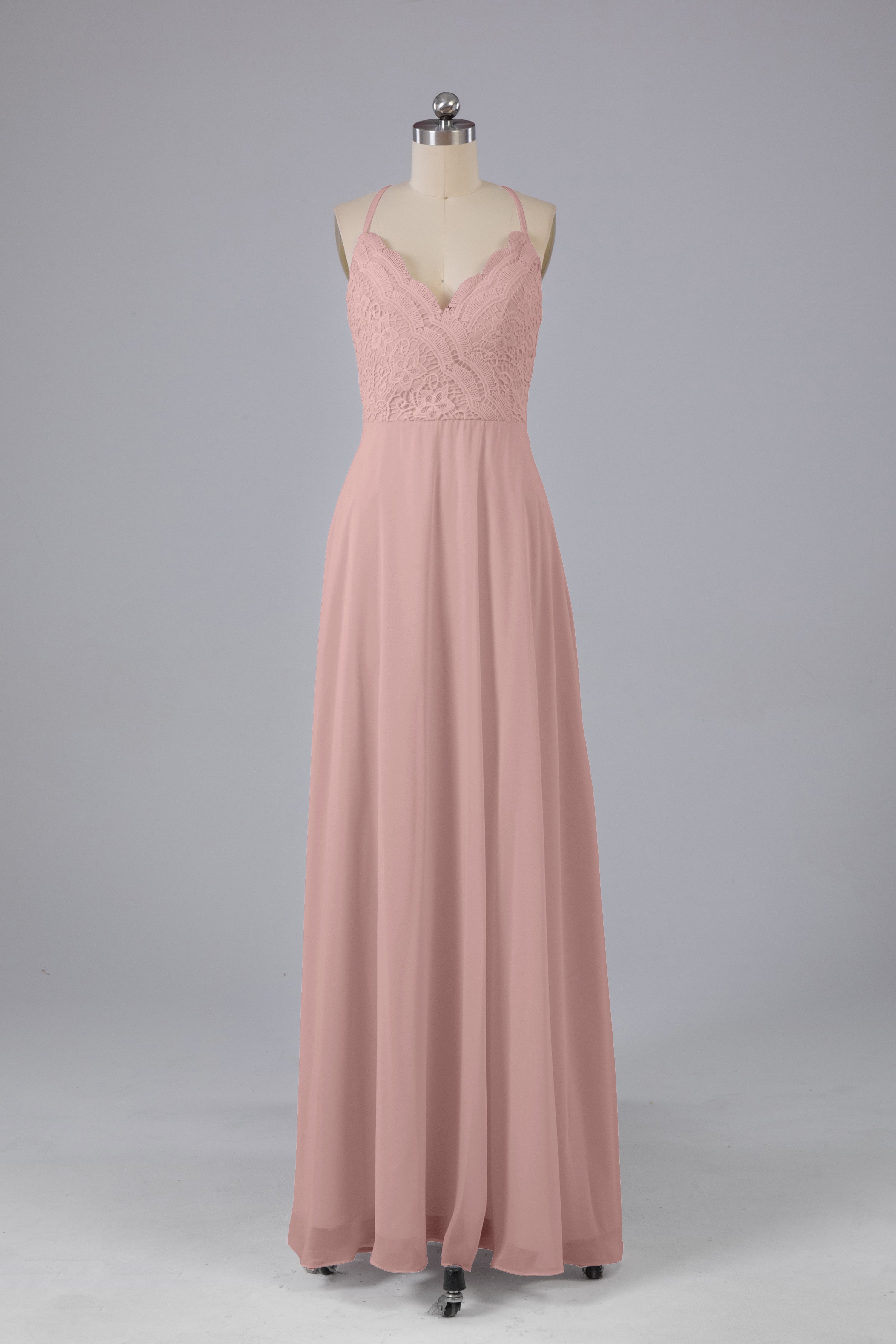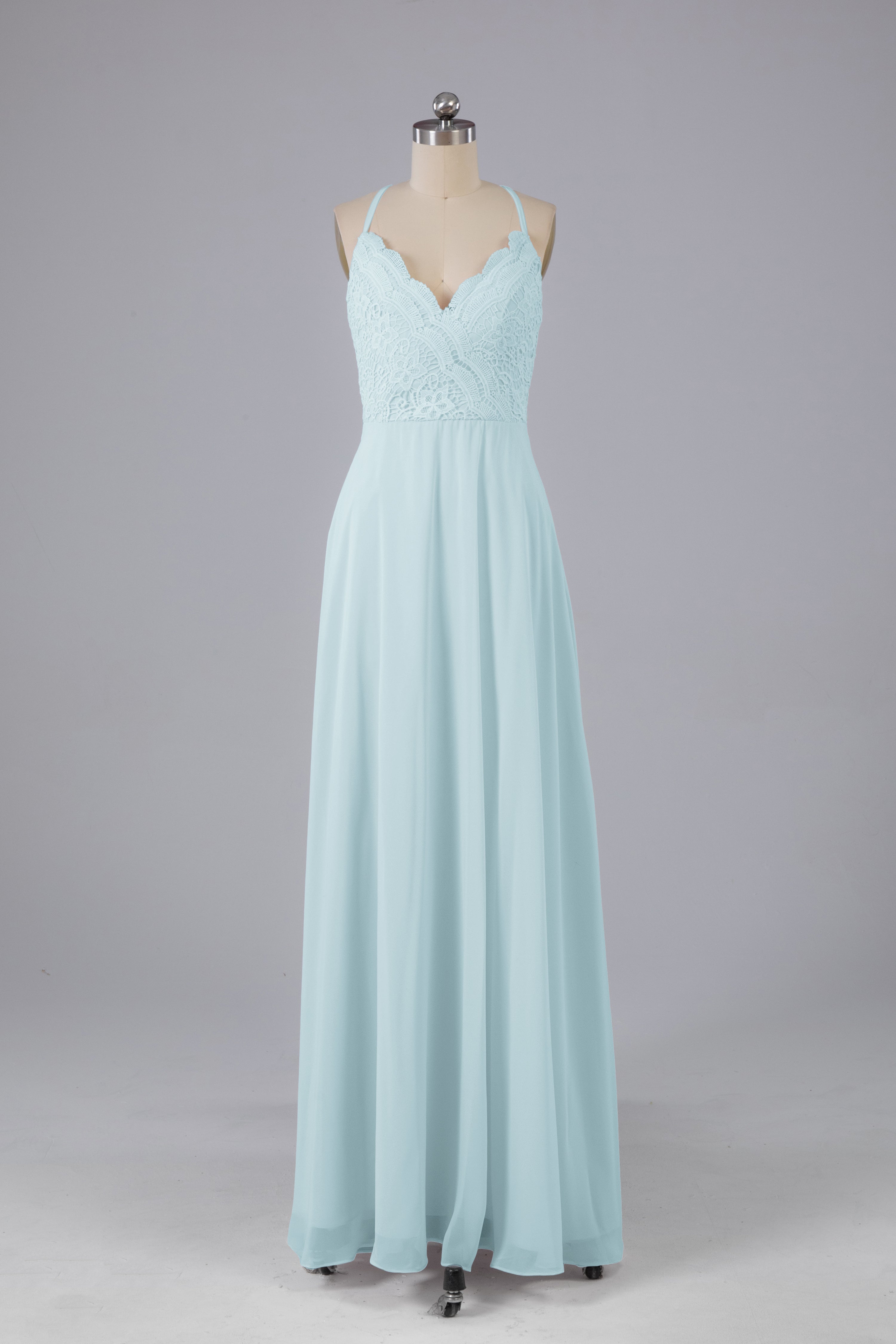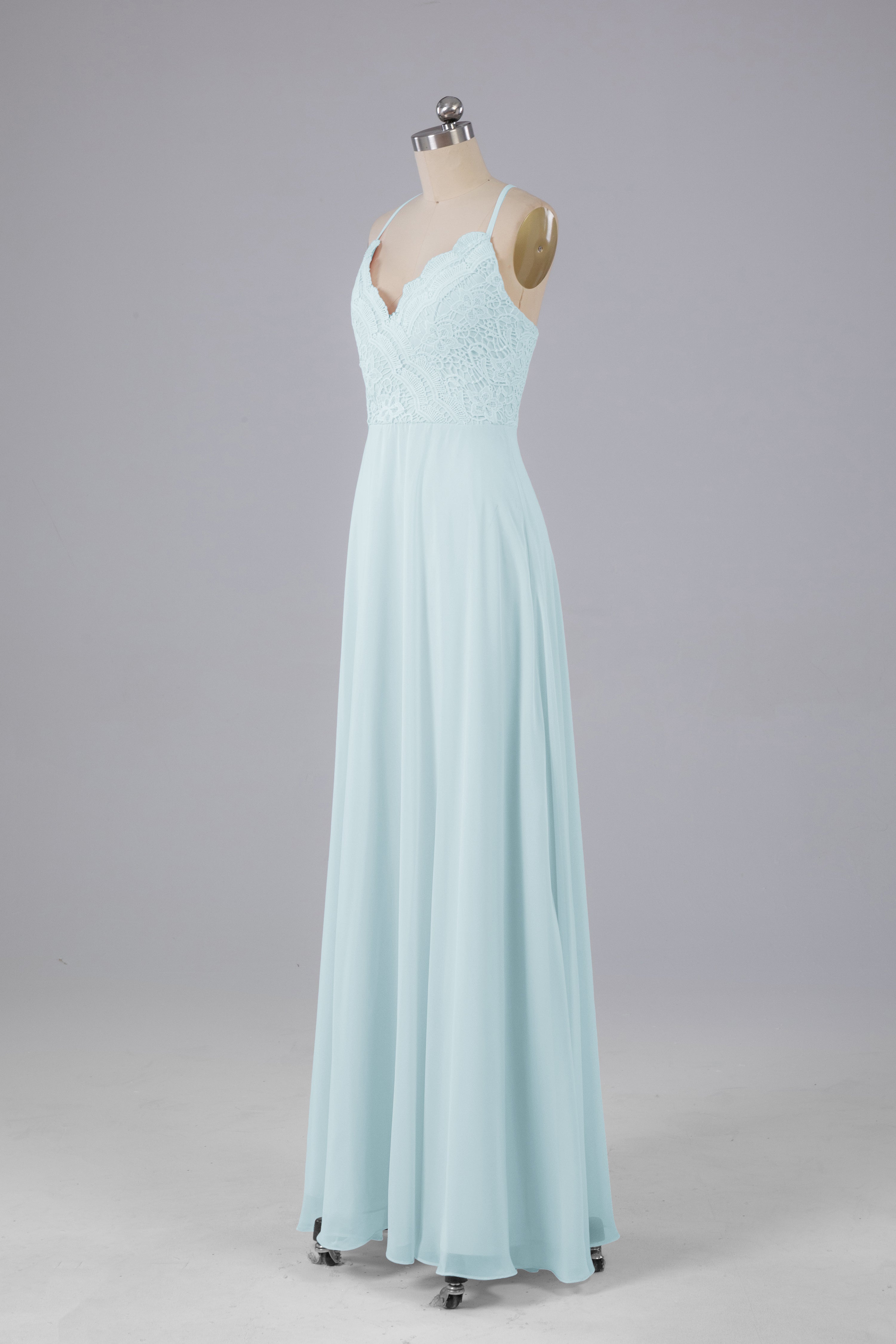 Backless Spaghetti Straps Lace Bridesmaid Dresses