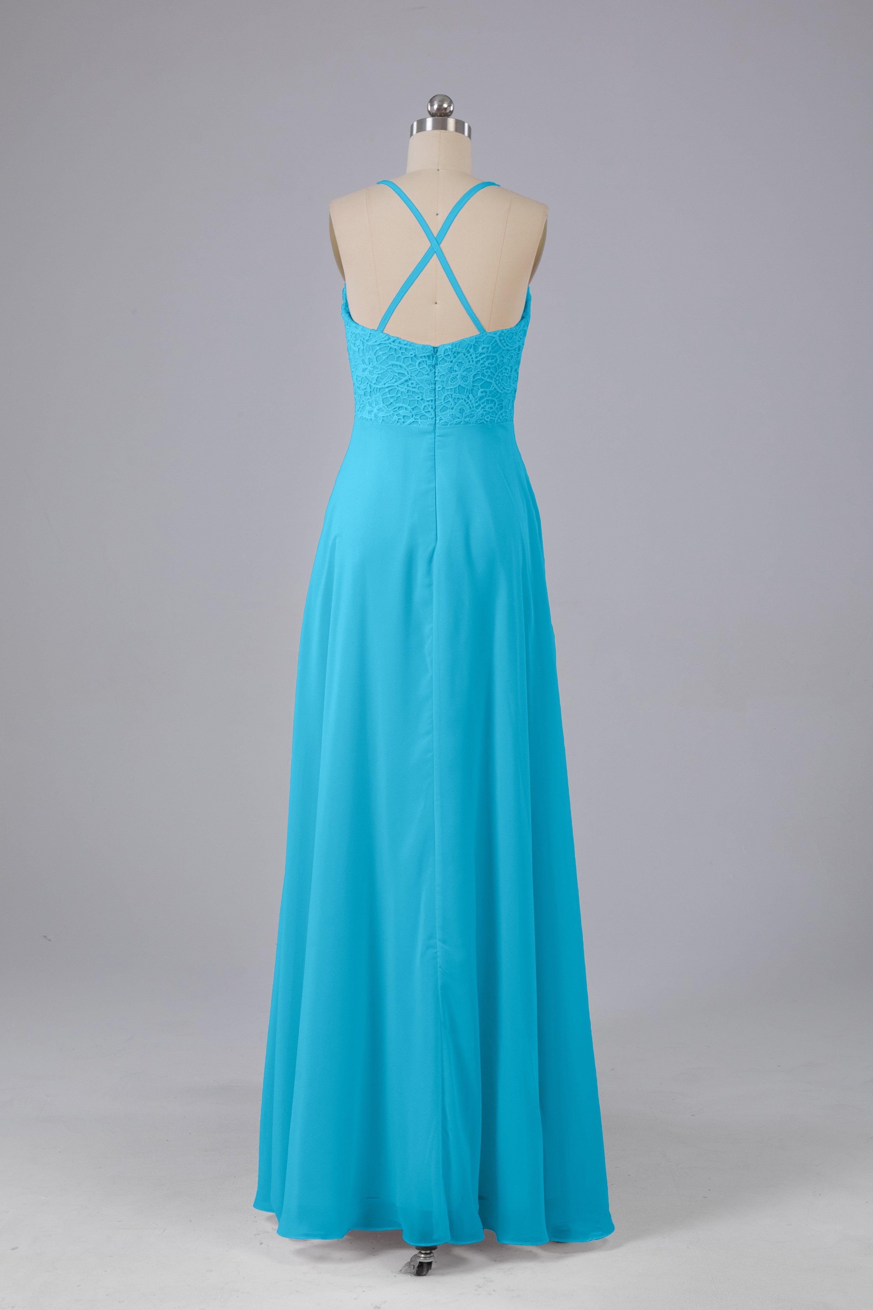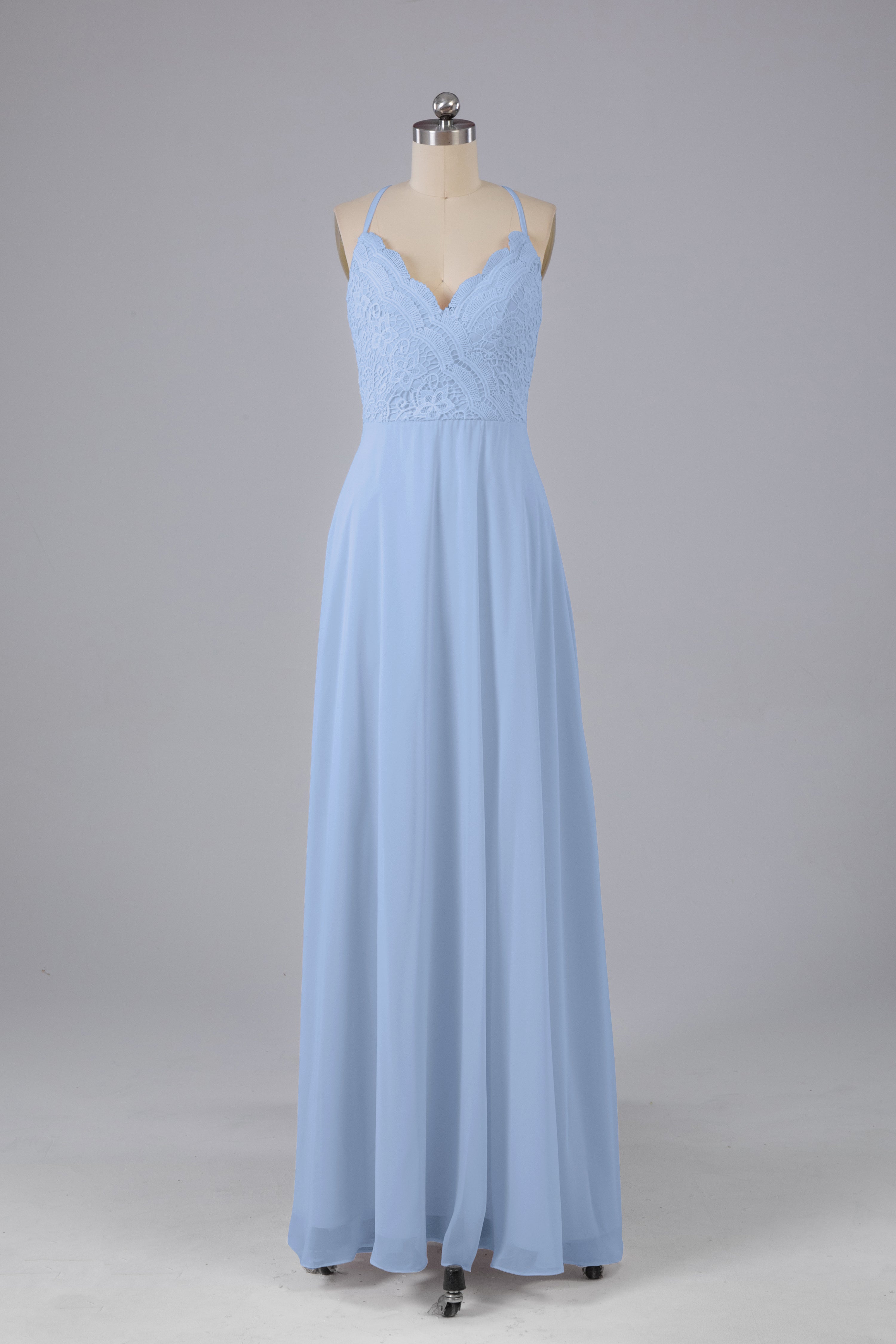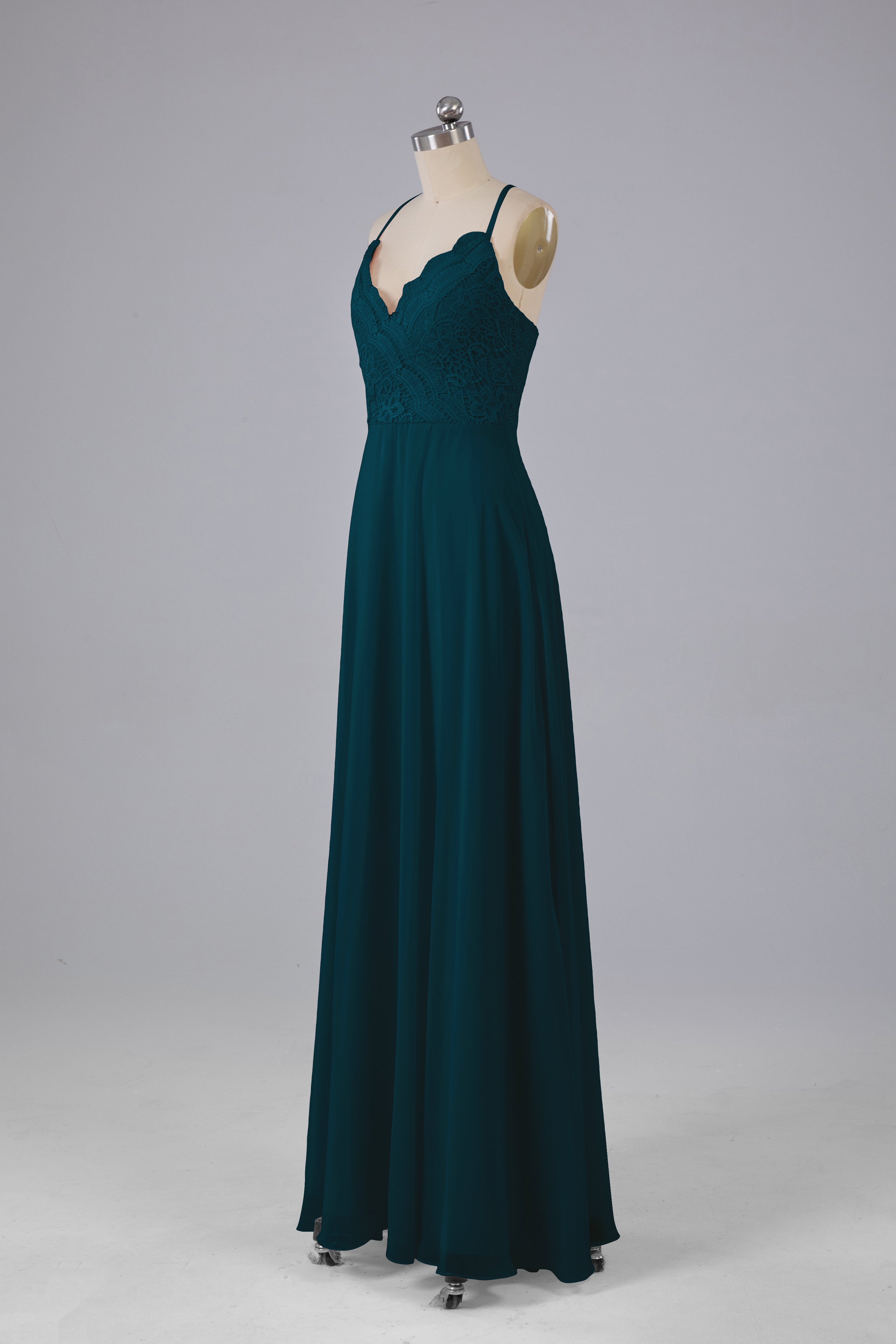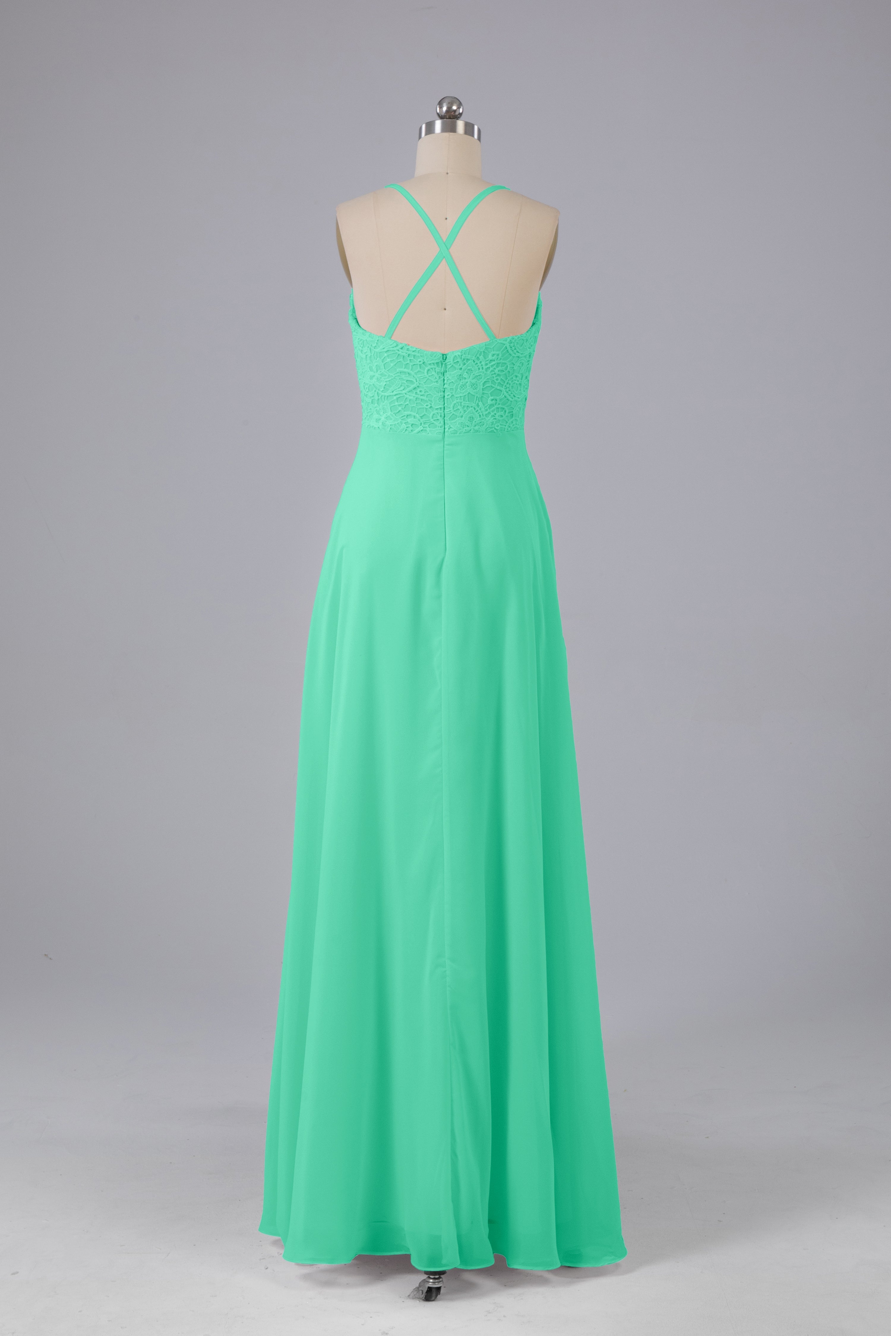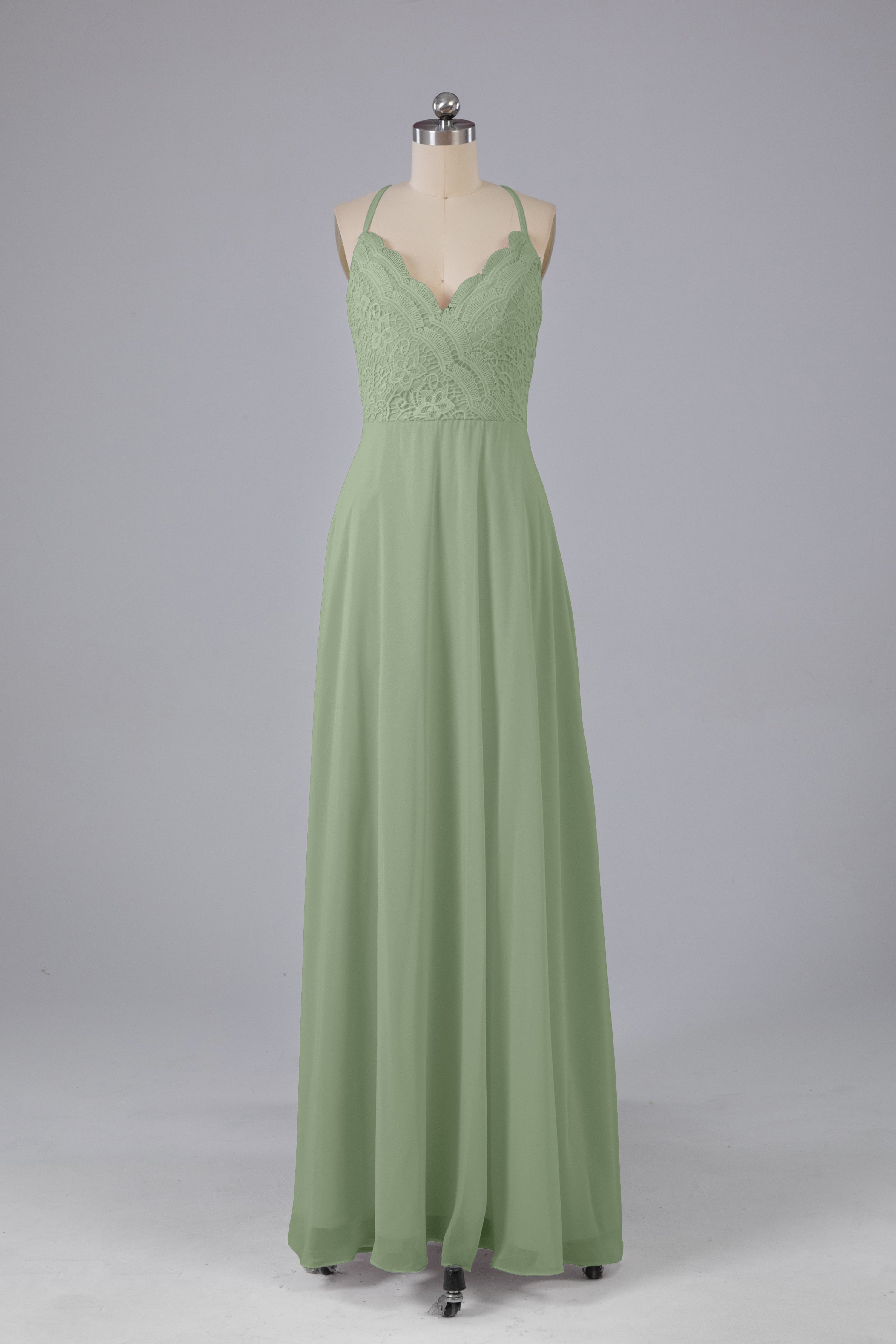 Backless Spaghetti Straps Lace Bridesmaid Dresses