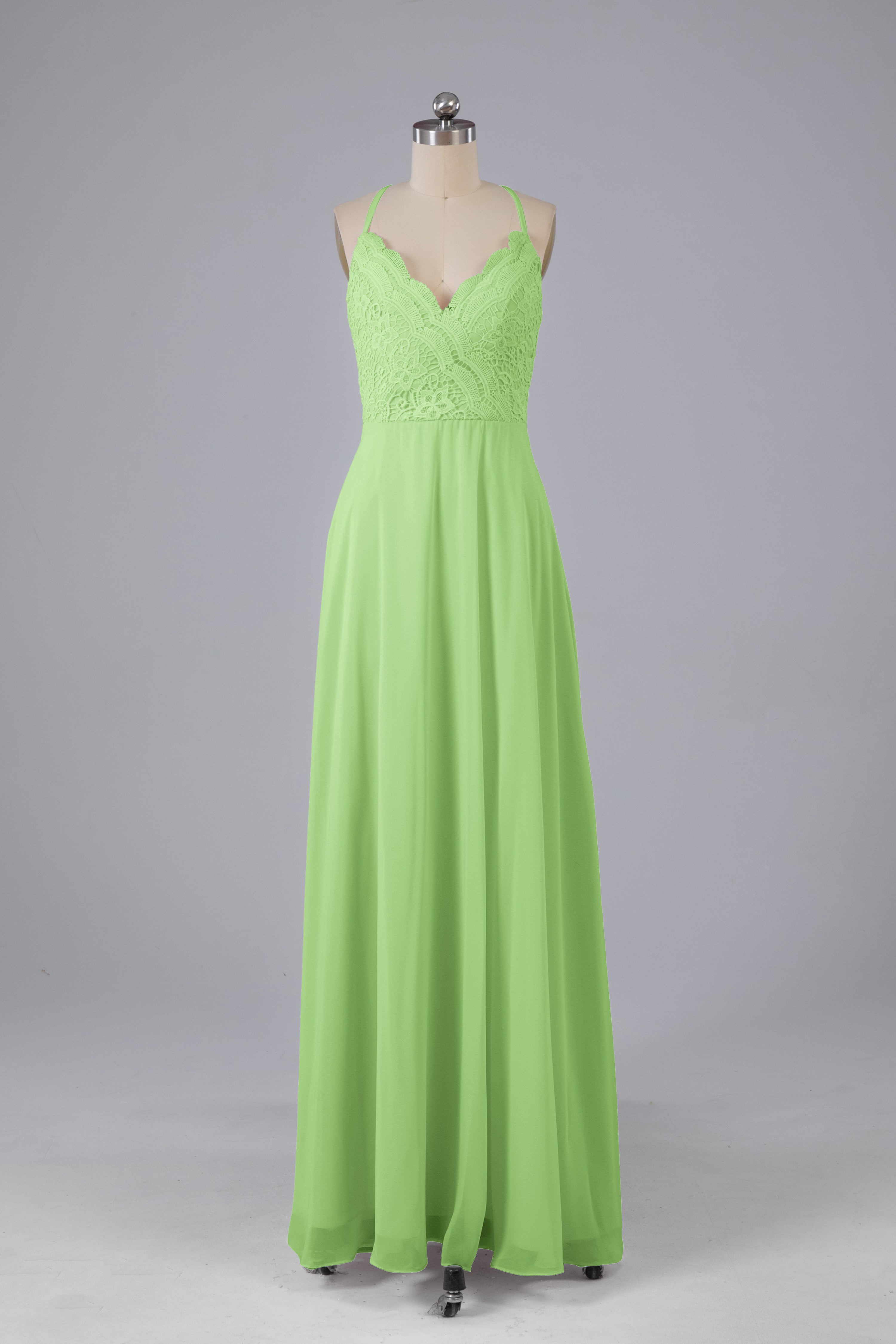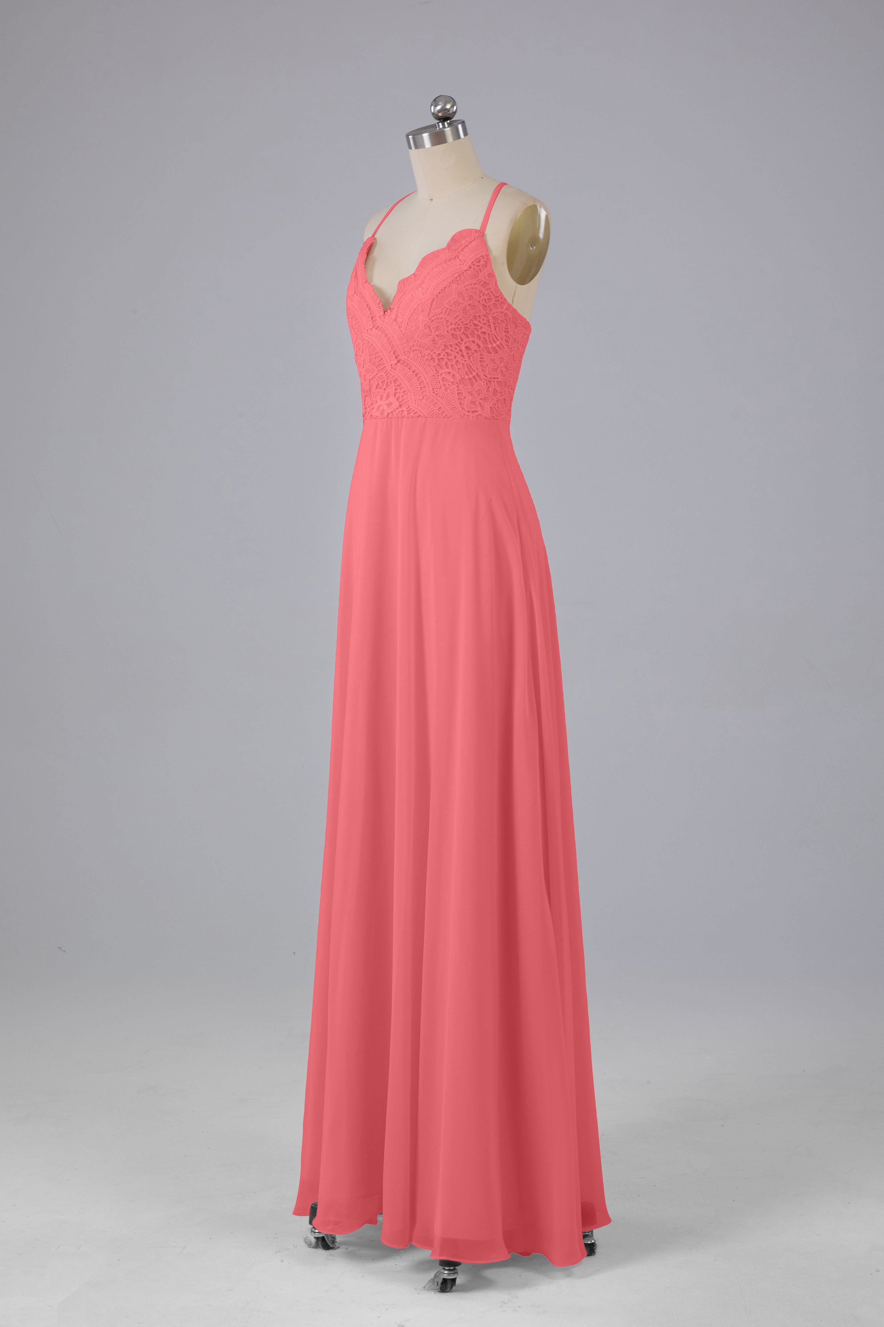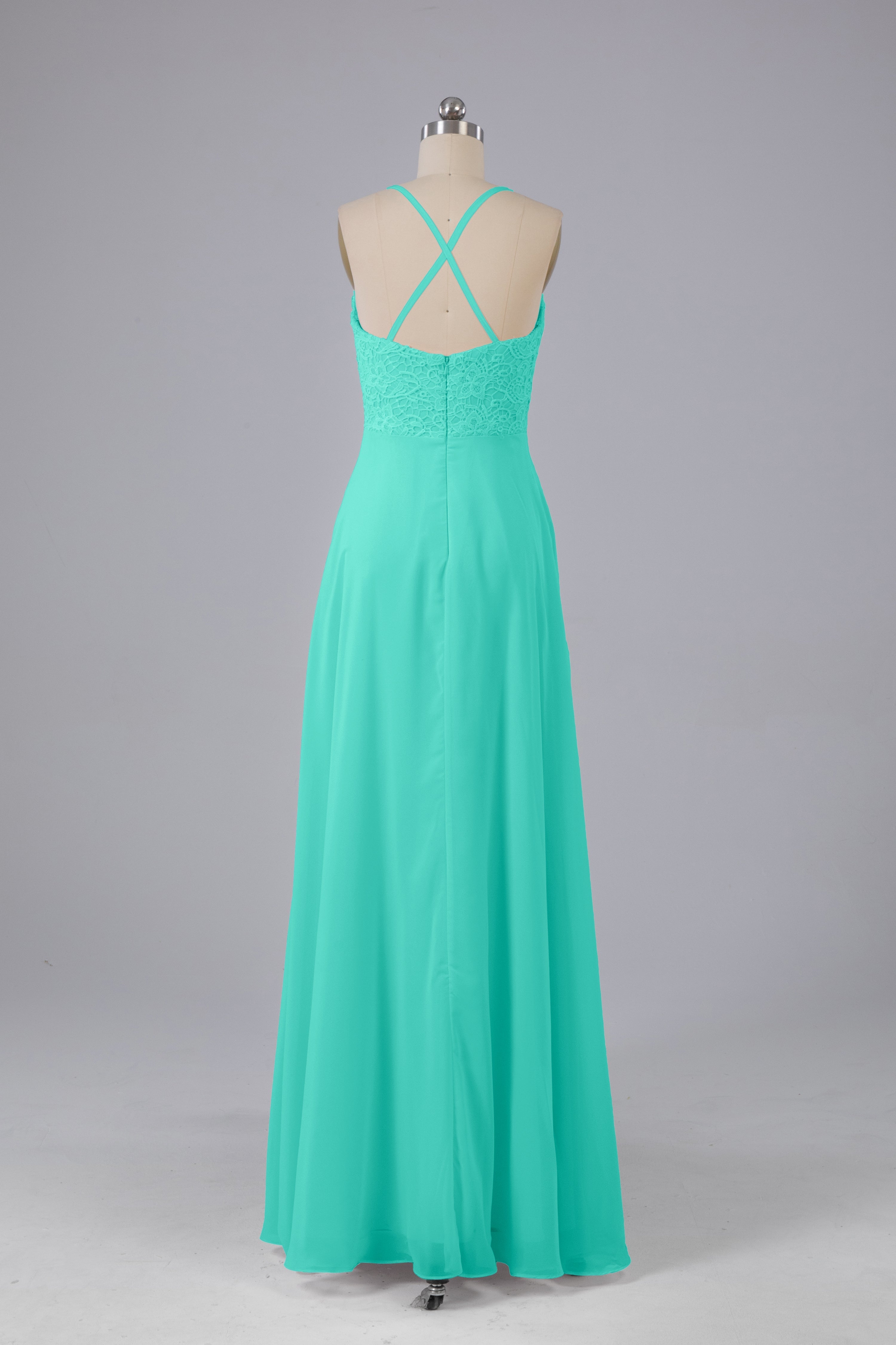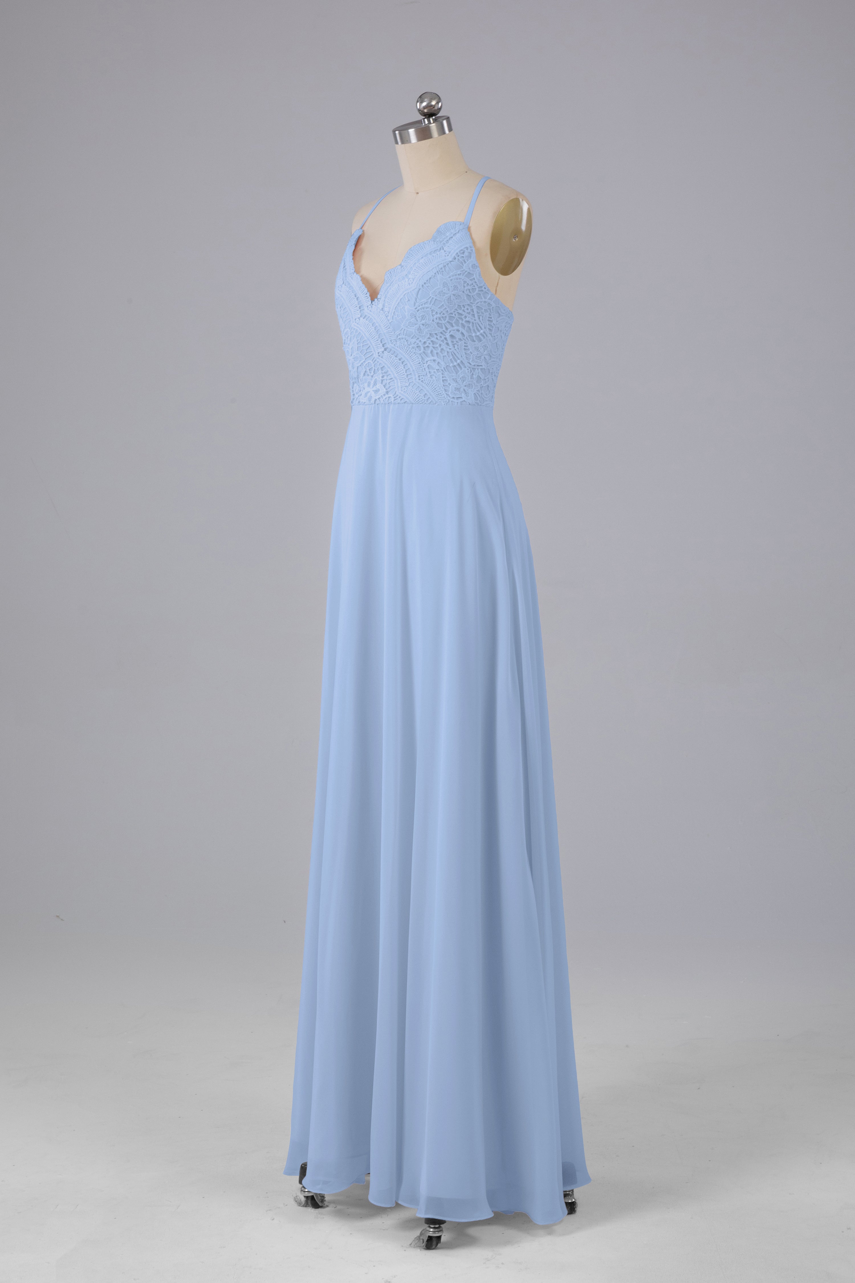 Backless Spaghetti Straps Lace Bridesmaid Dresses