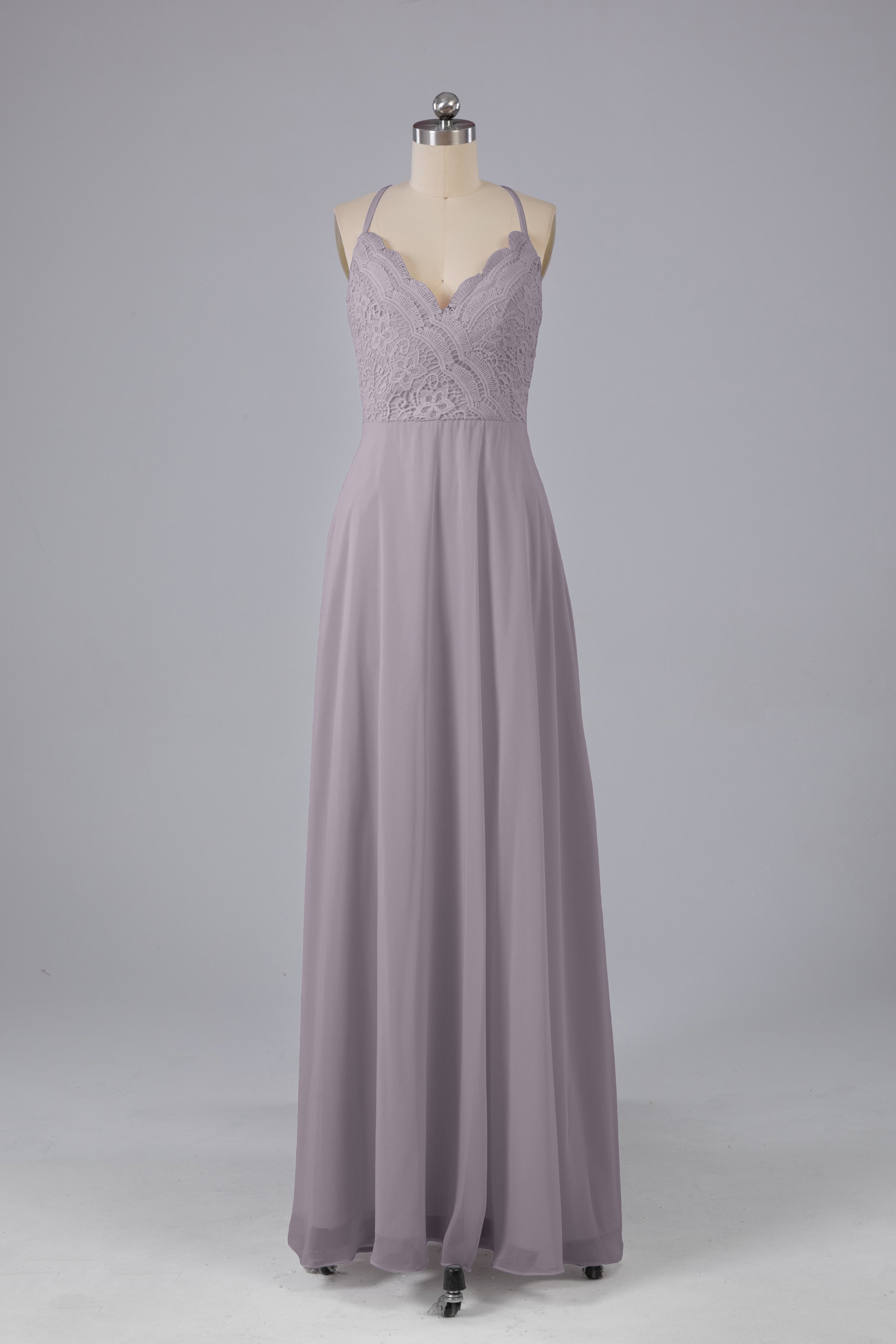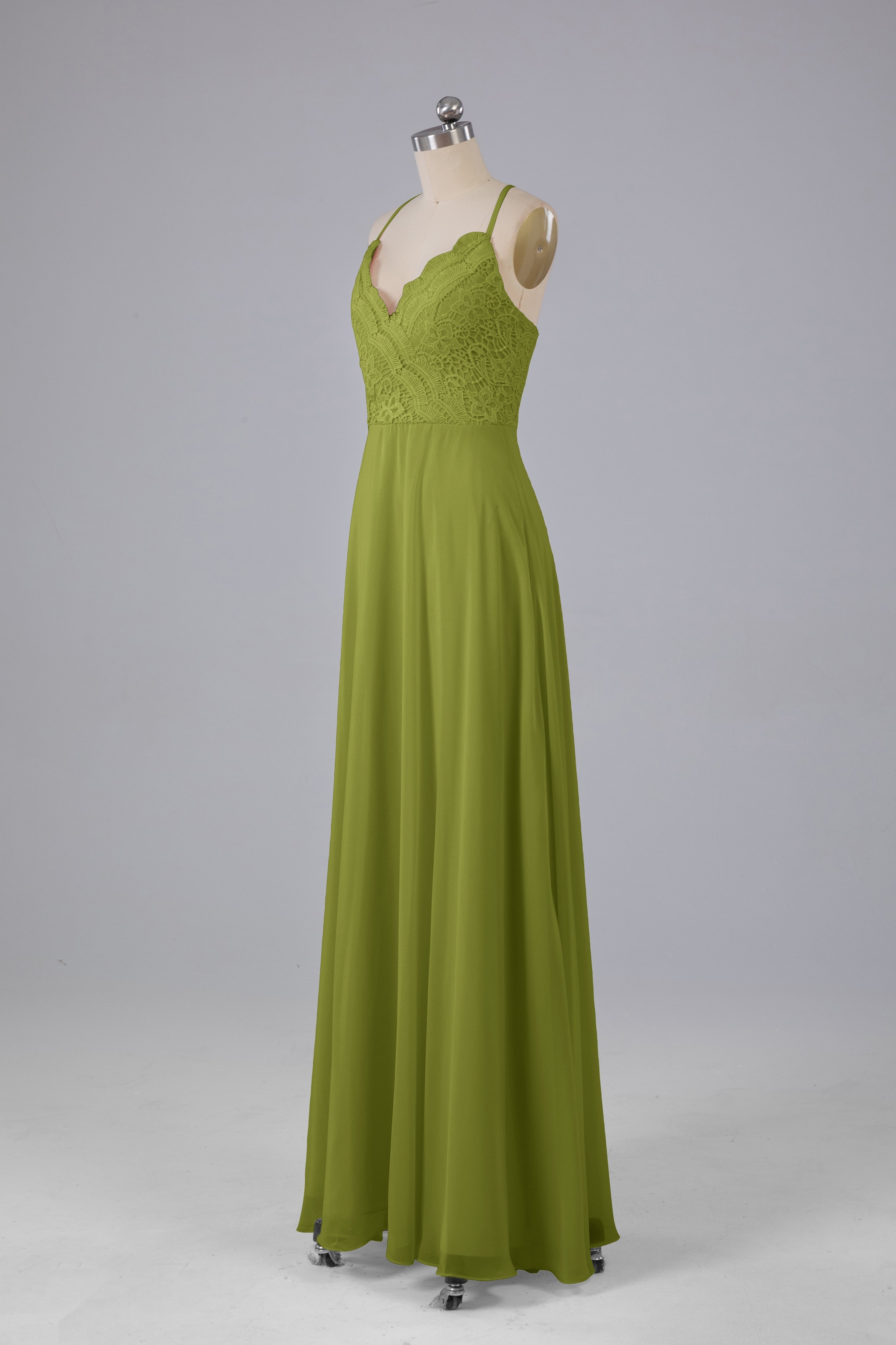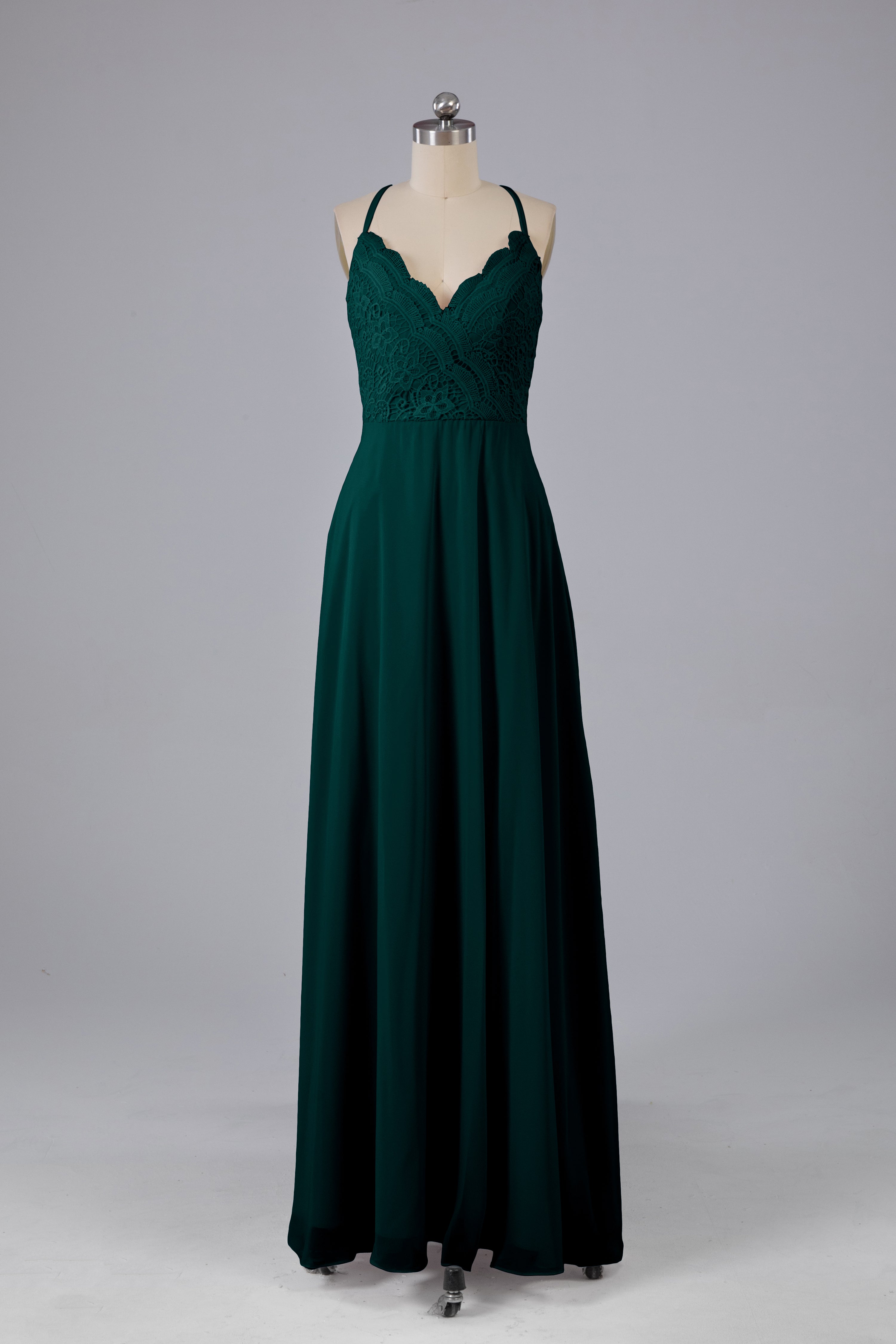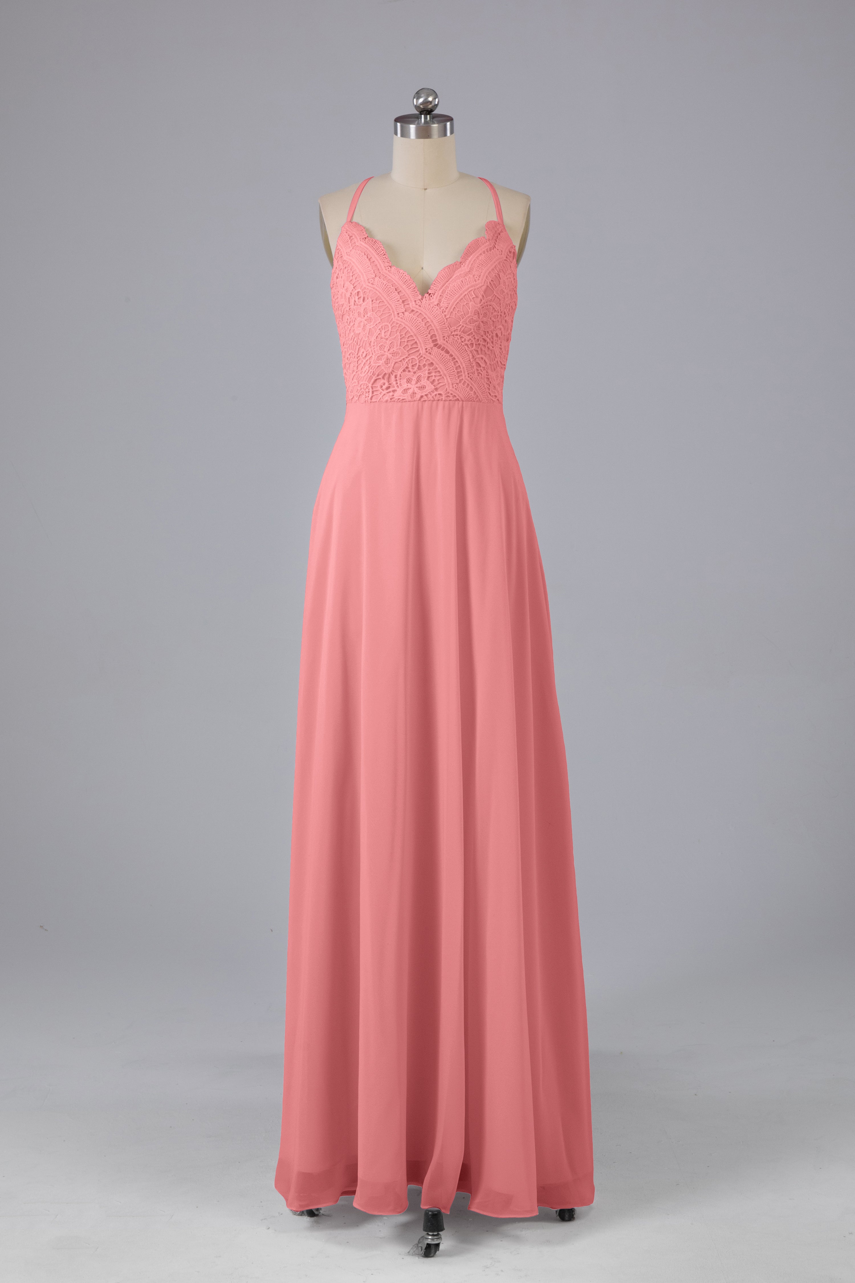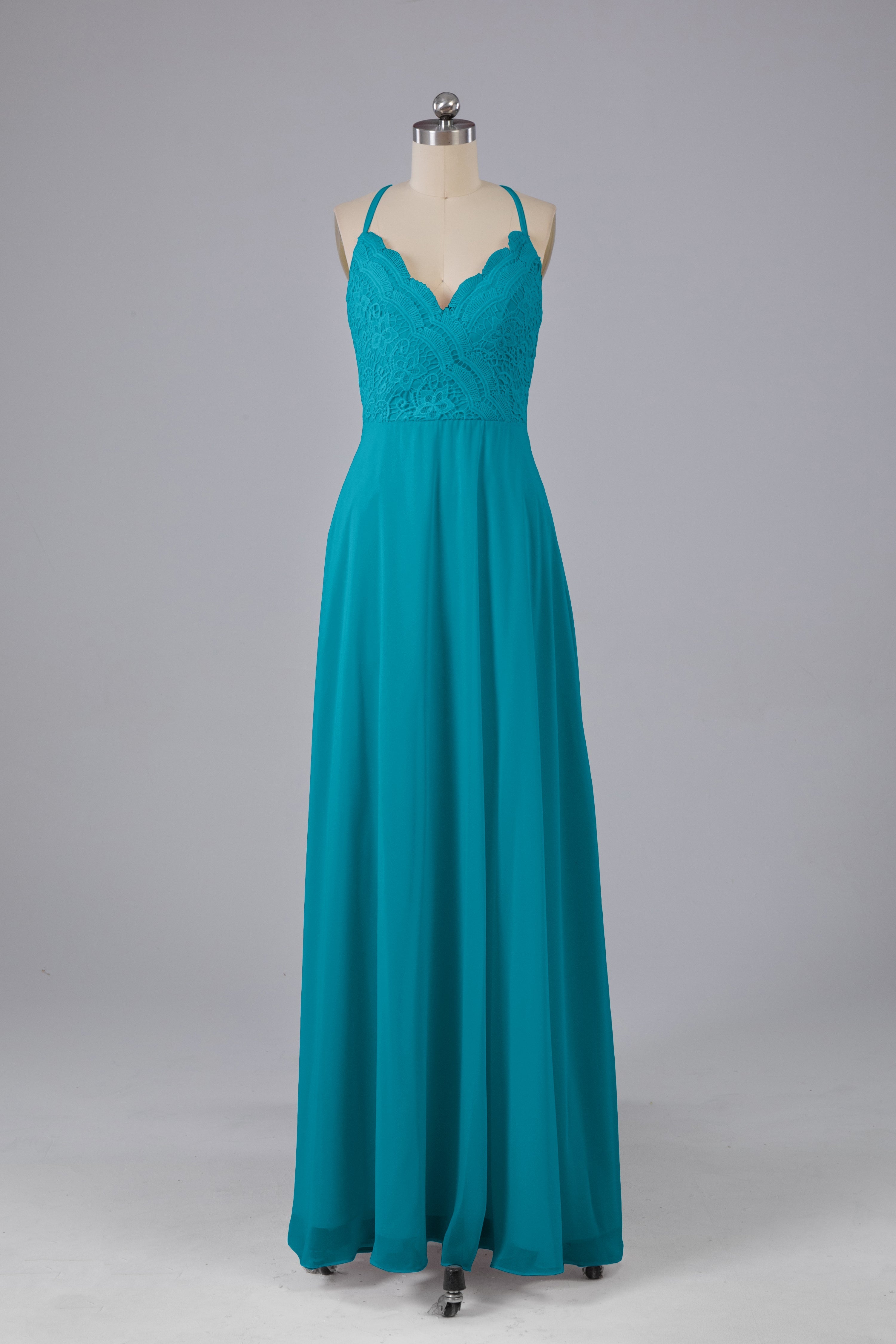 Backless Spaghetti Straps Lace Bridesmaid Dresses