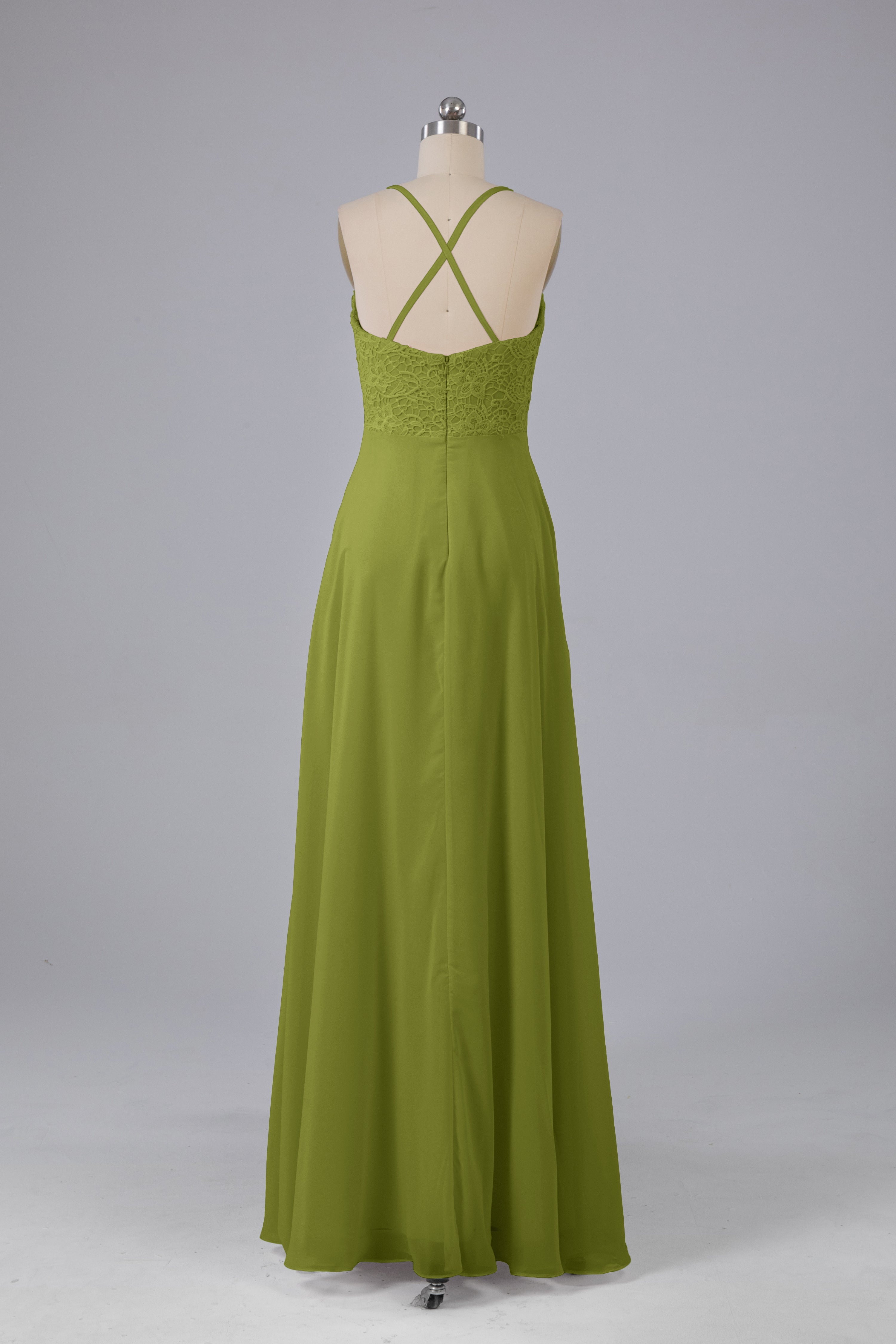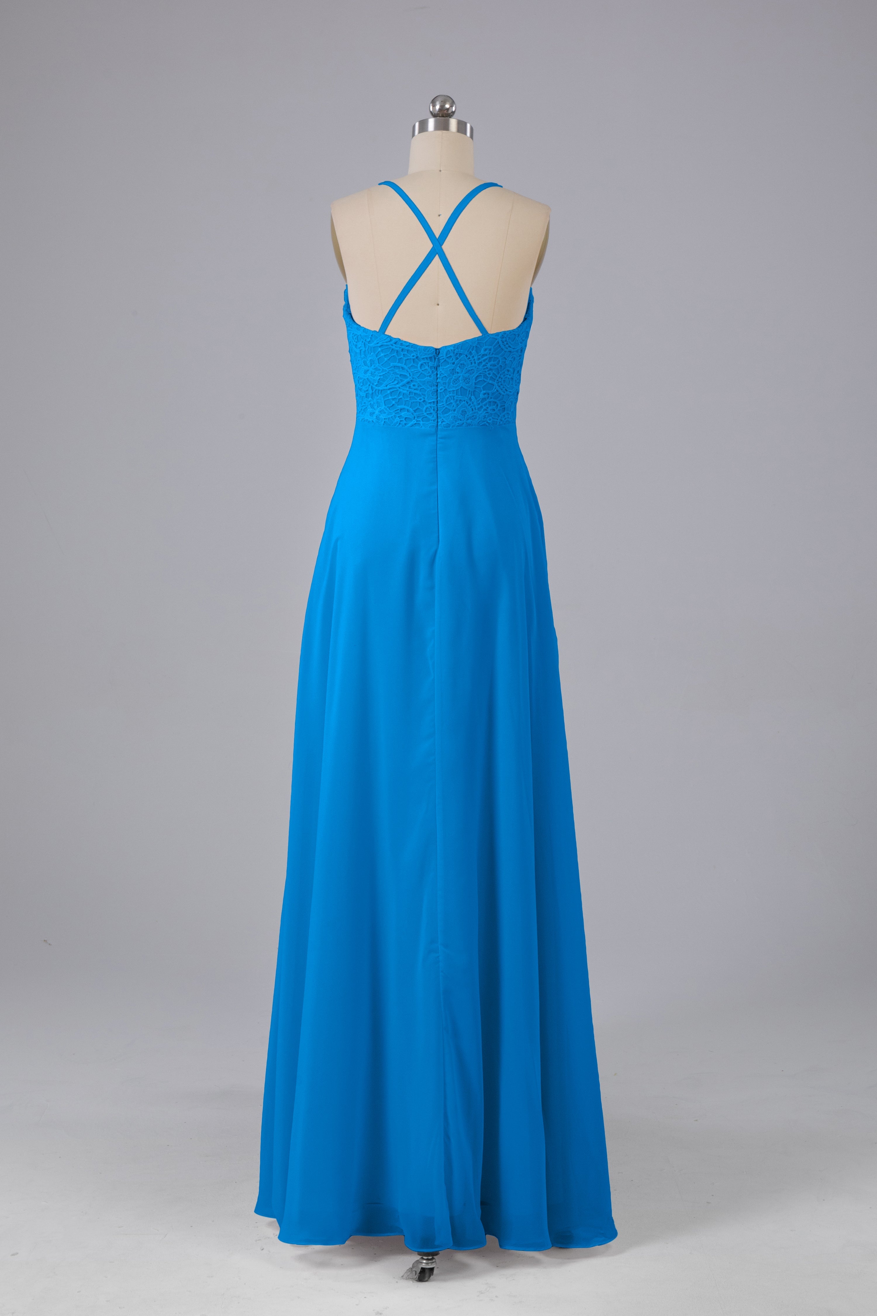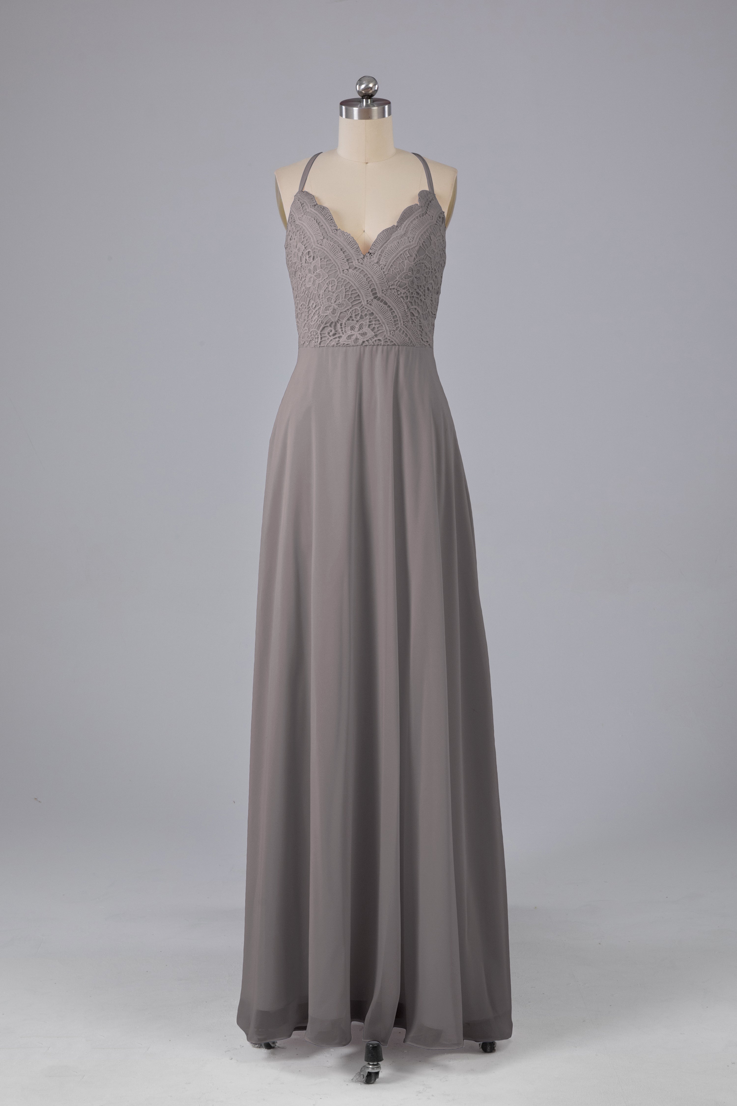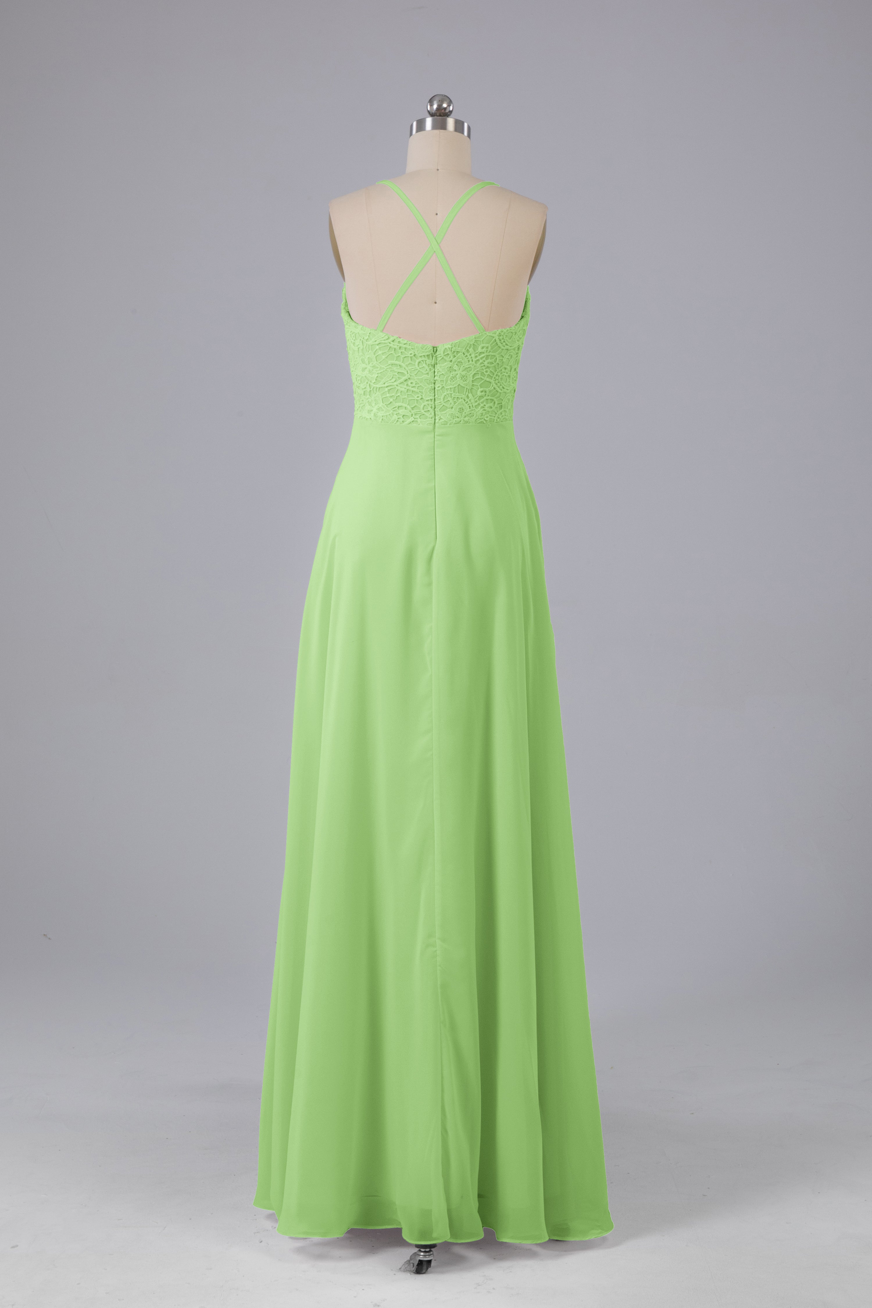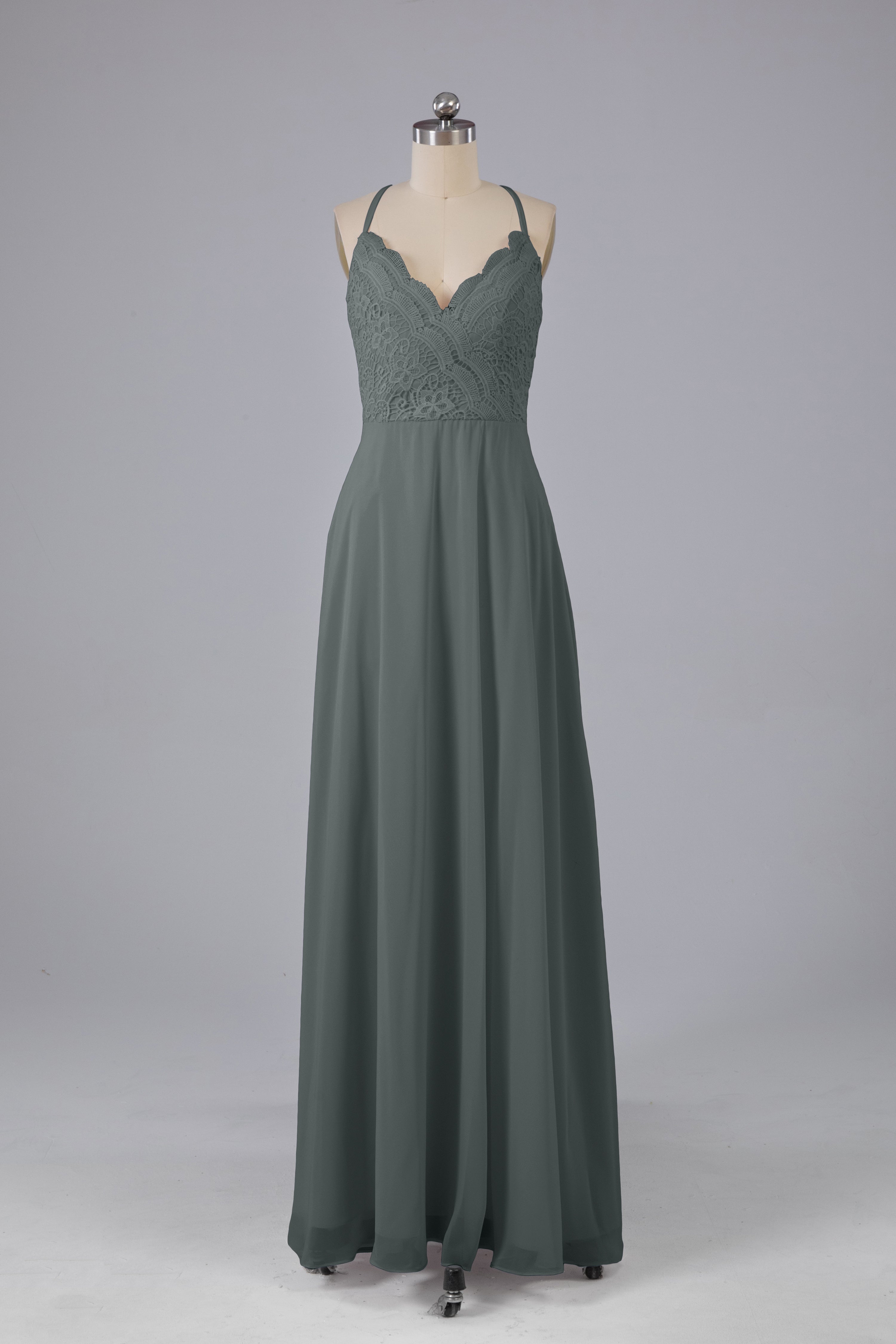 Backless Spaghetti Straps Lace Bridesmaid Dresses