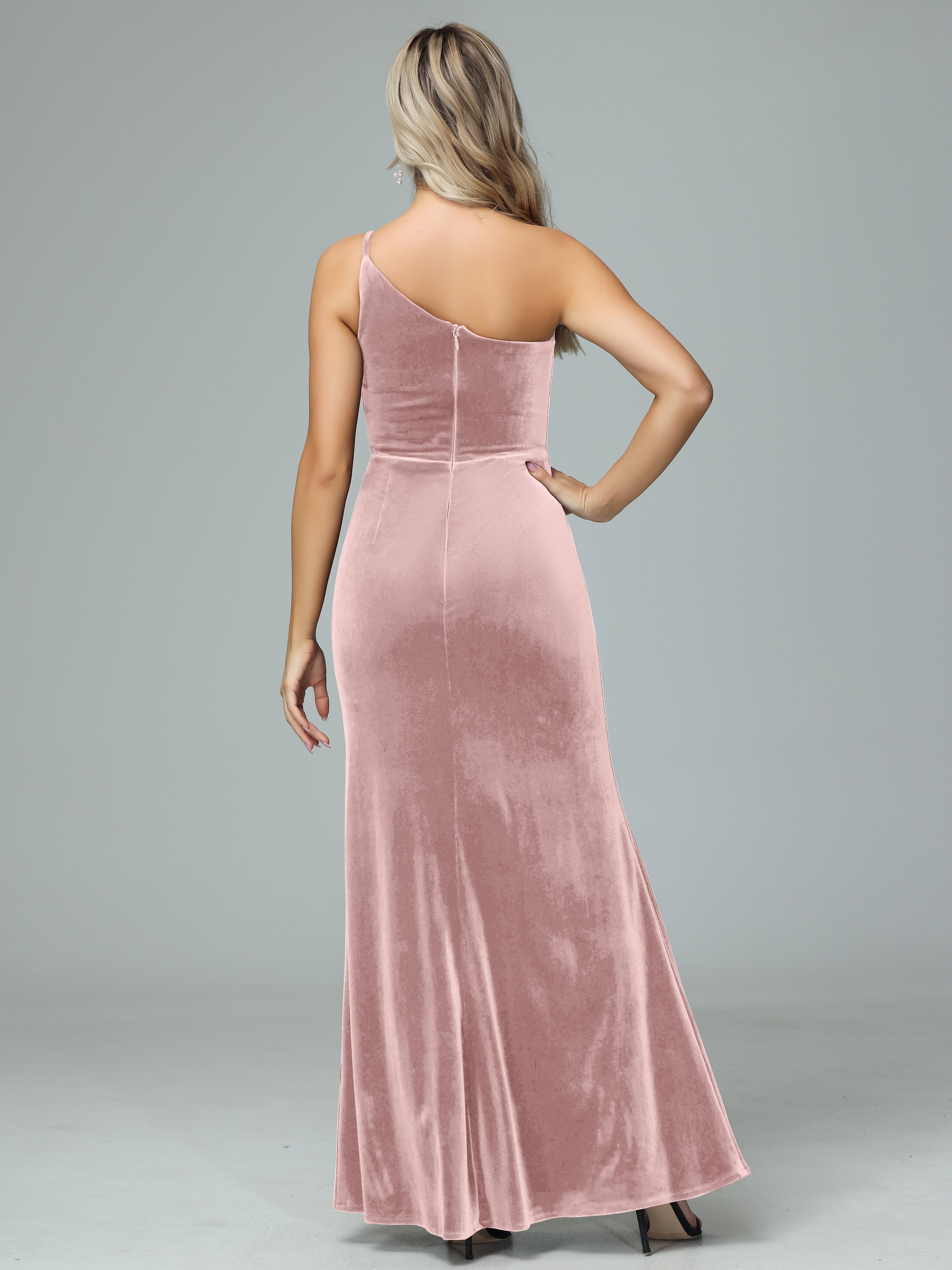 Charming One Shoulder Velvet Bridesmaid Dresses