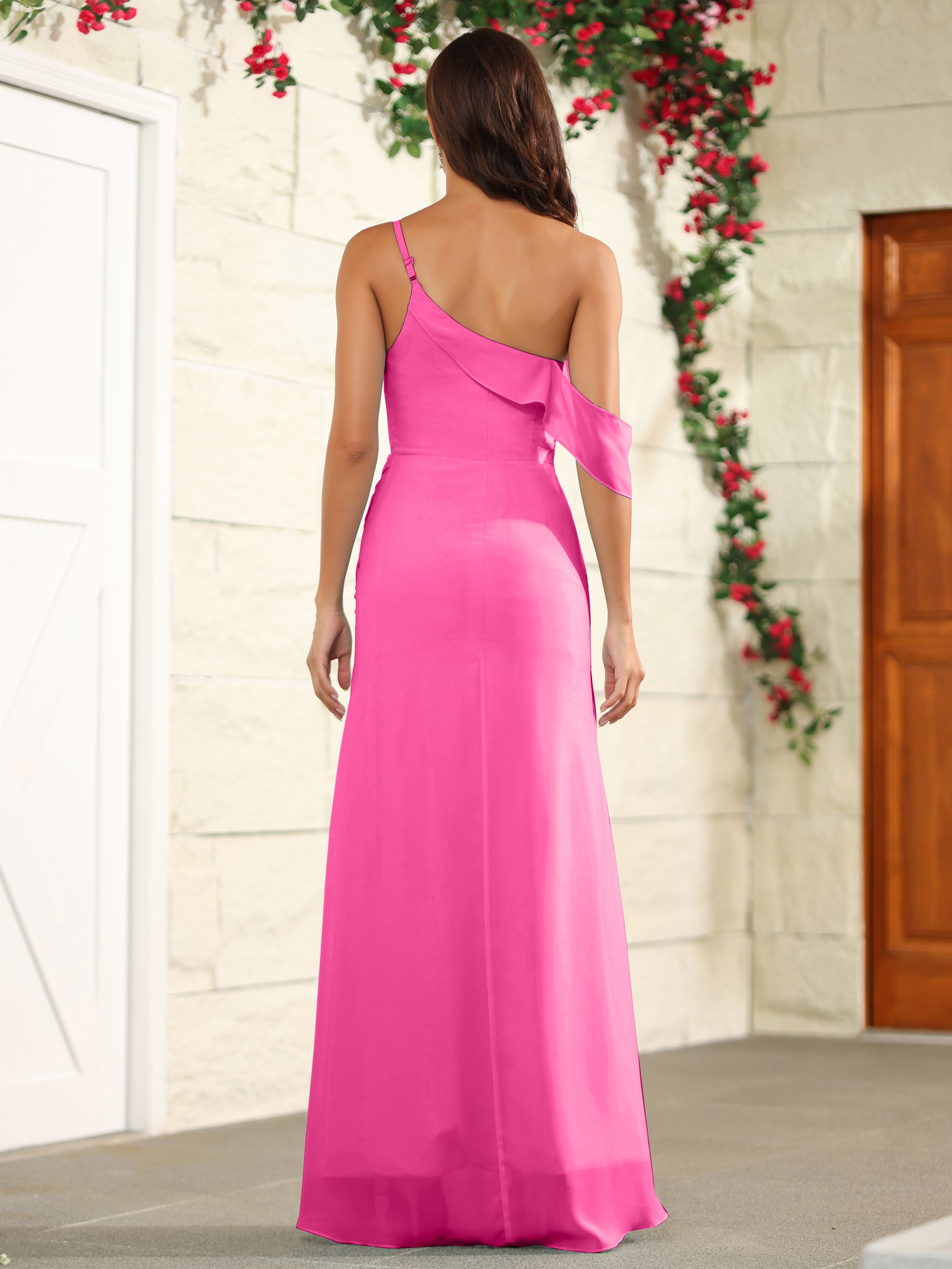 Chiffon One Shoulder Off The Shoulder Bridesmaid Dress
