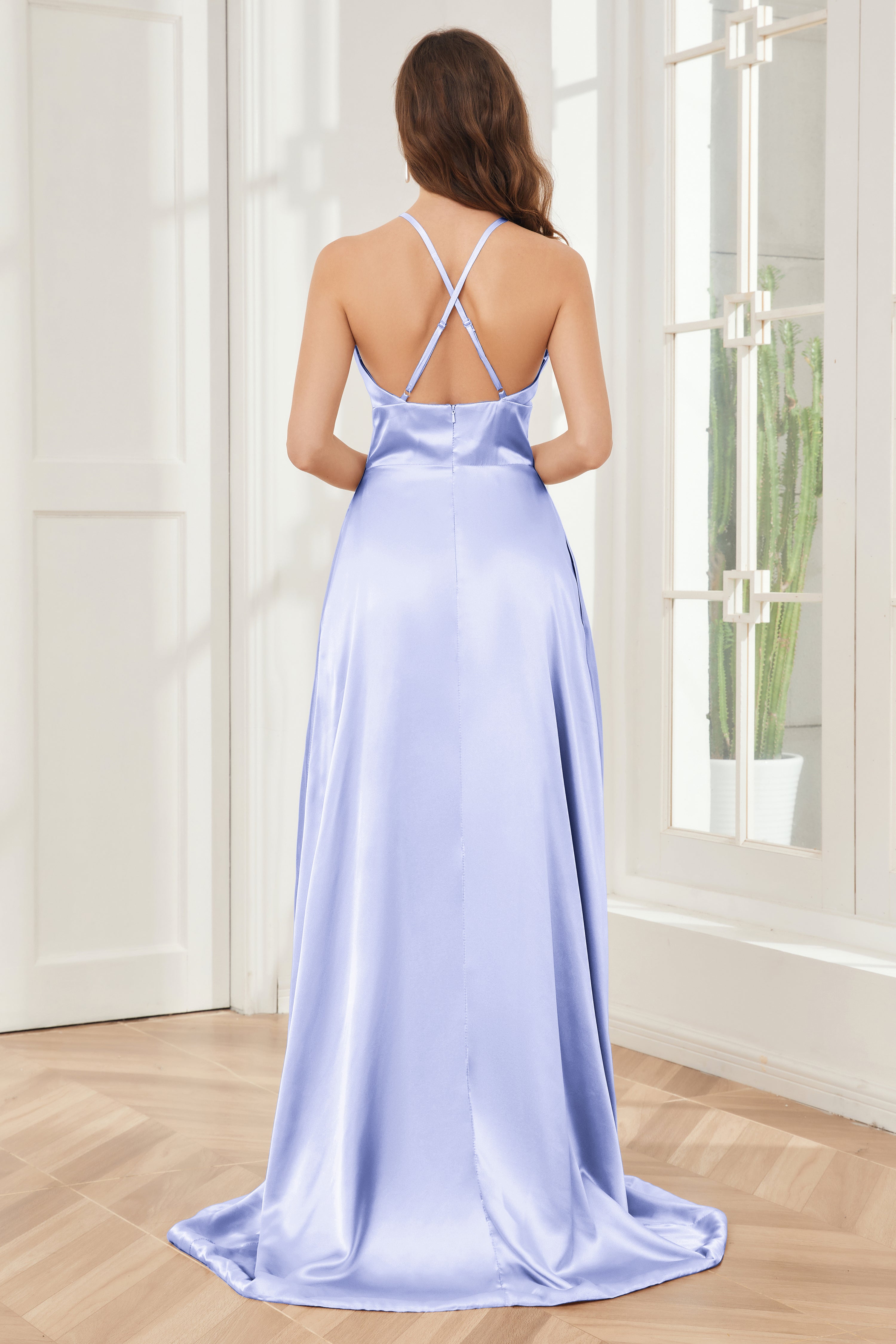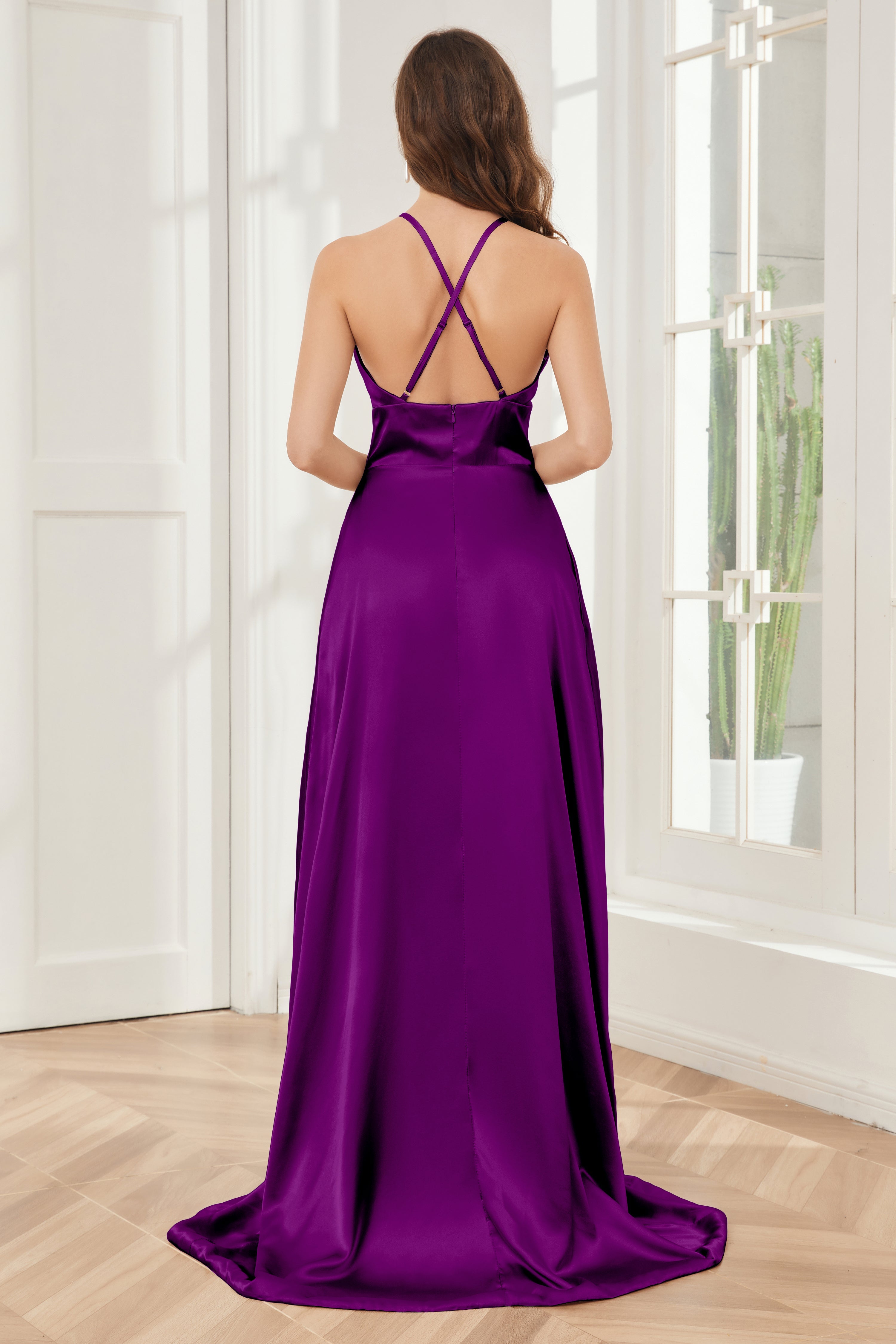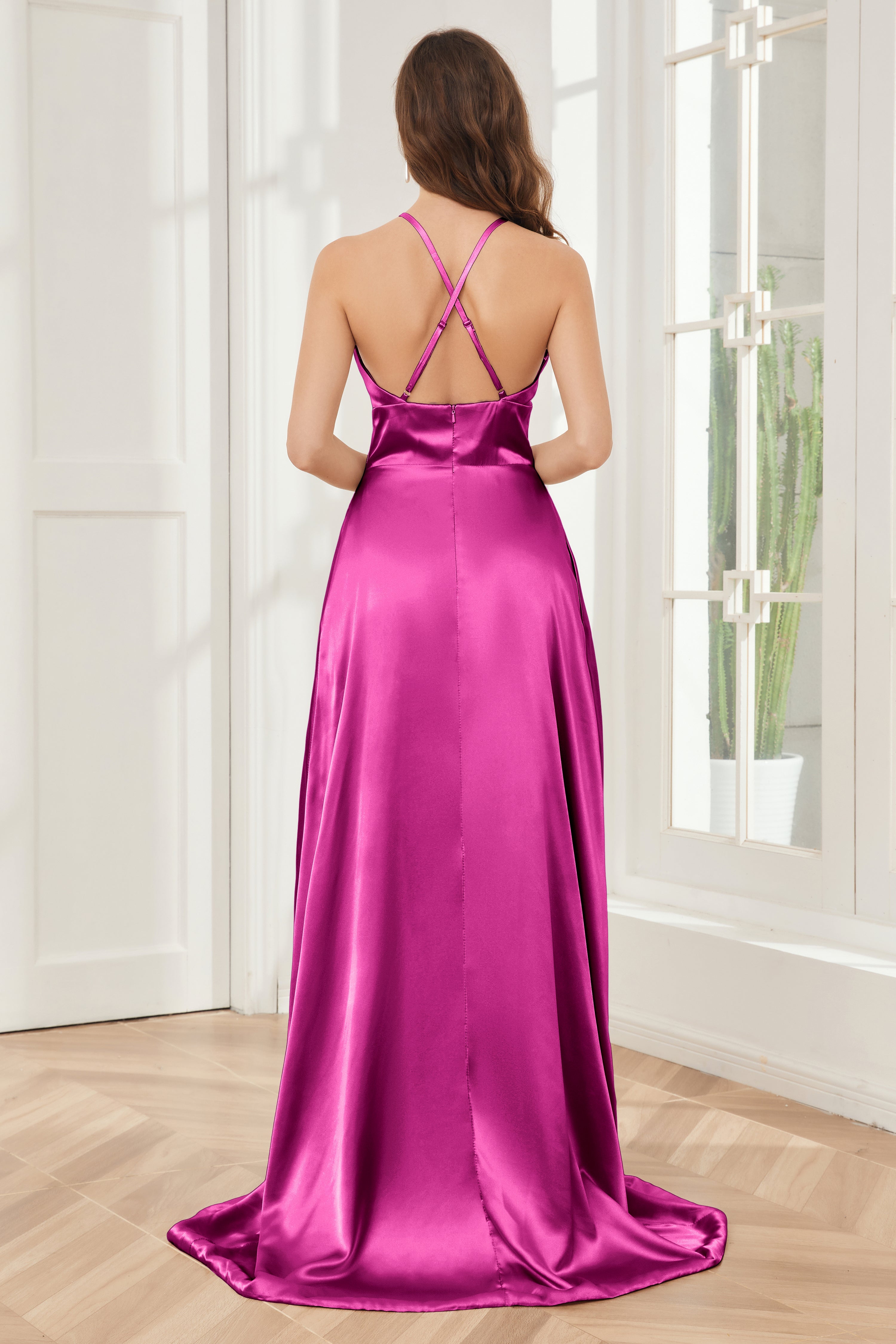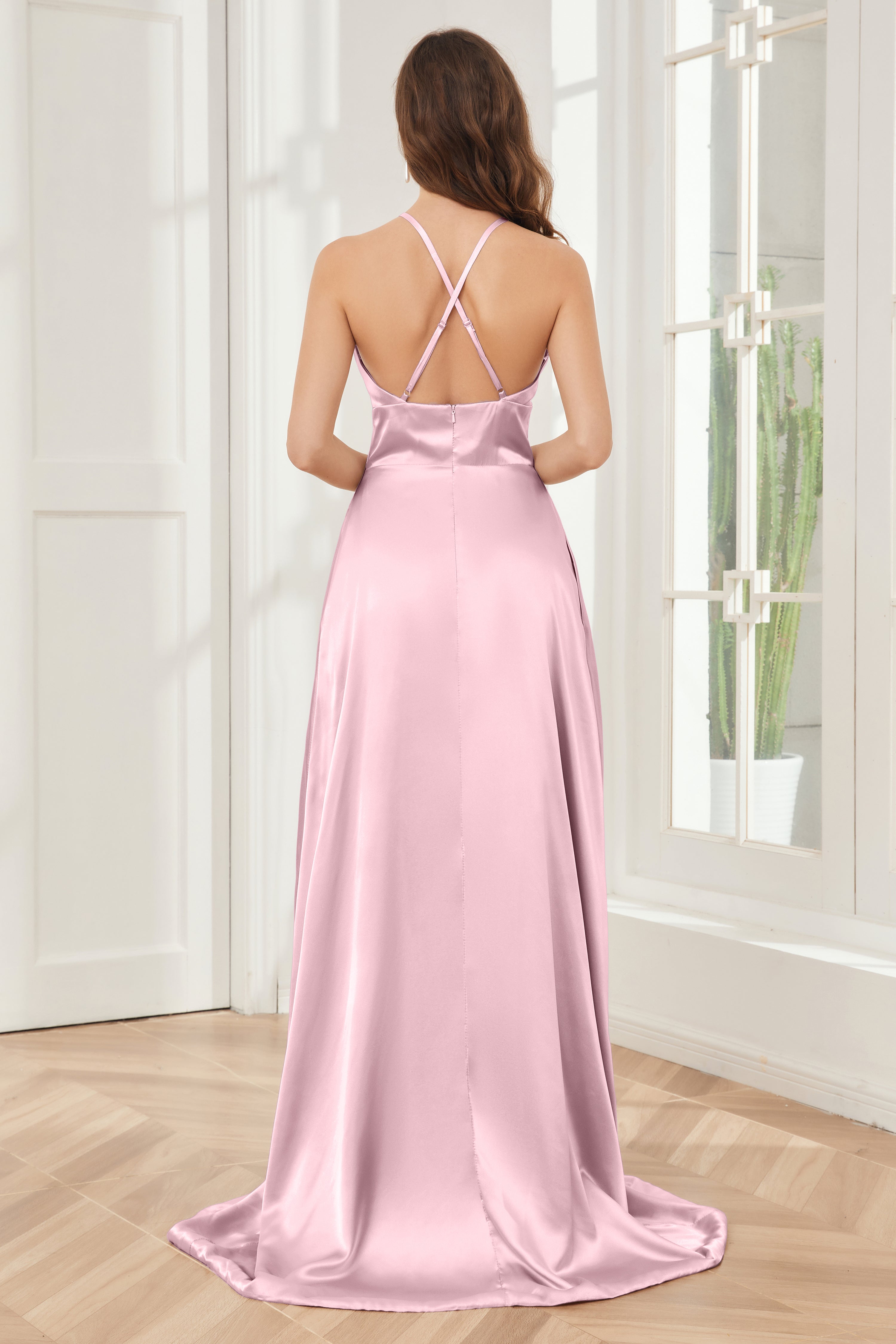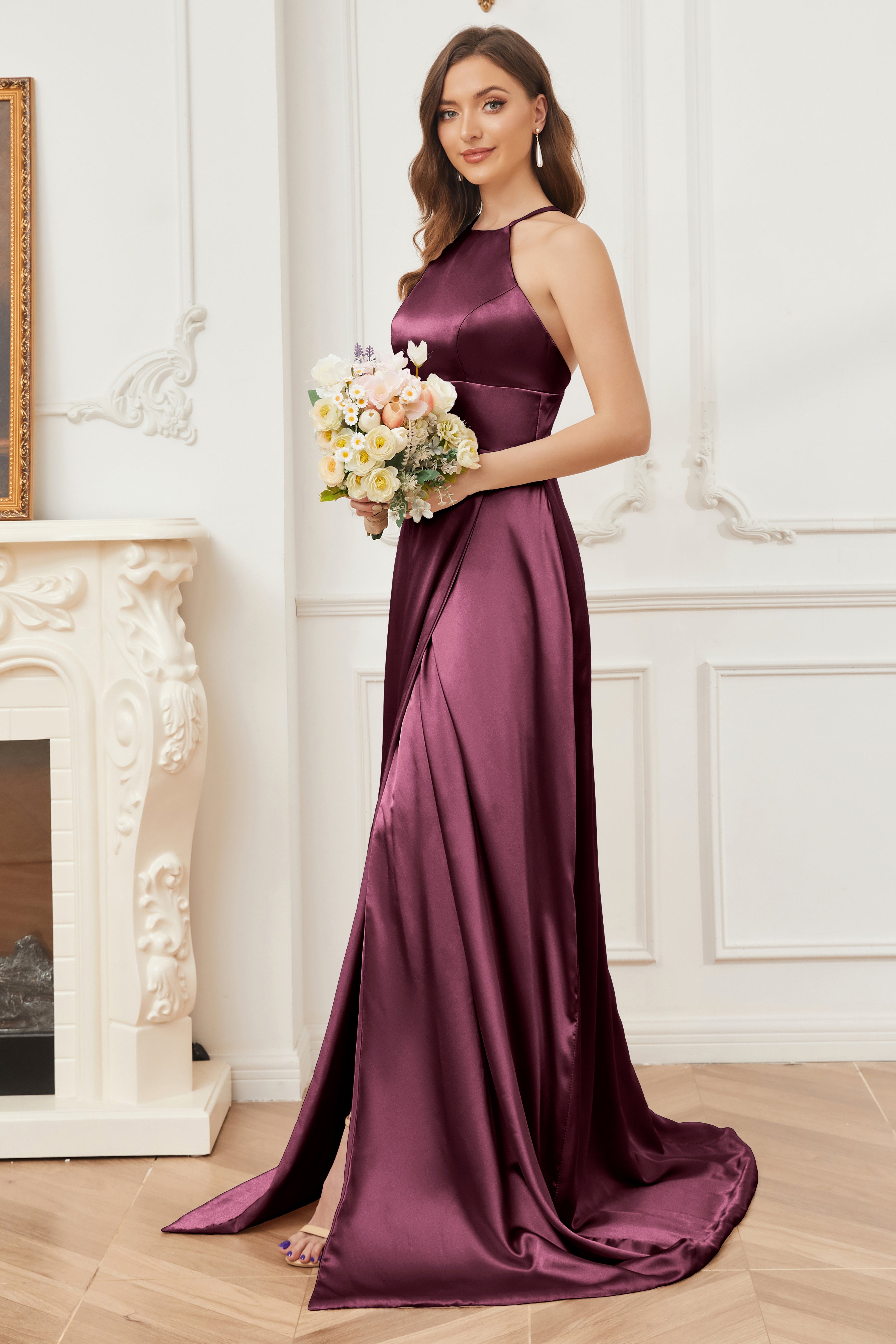 Column Halter Soft Satin Bridesmaid Dress with Pockets