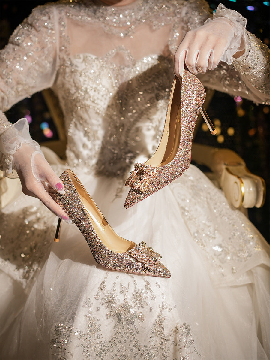 These elegant high heels feature diamond accents, making them the perfect bridal accessory for any wedding. Crafted with high-quality materials, the shoes are designed to provide all-day comfort while making a lasting impression.