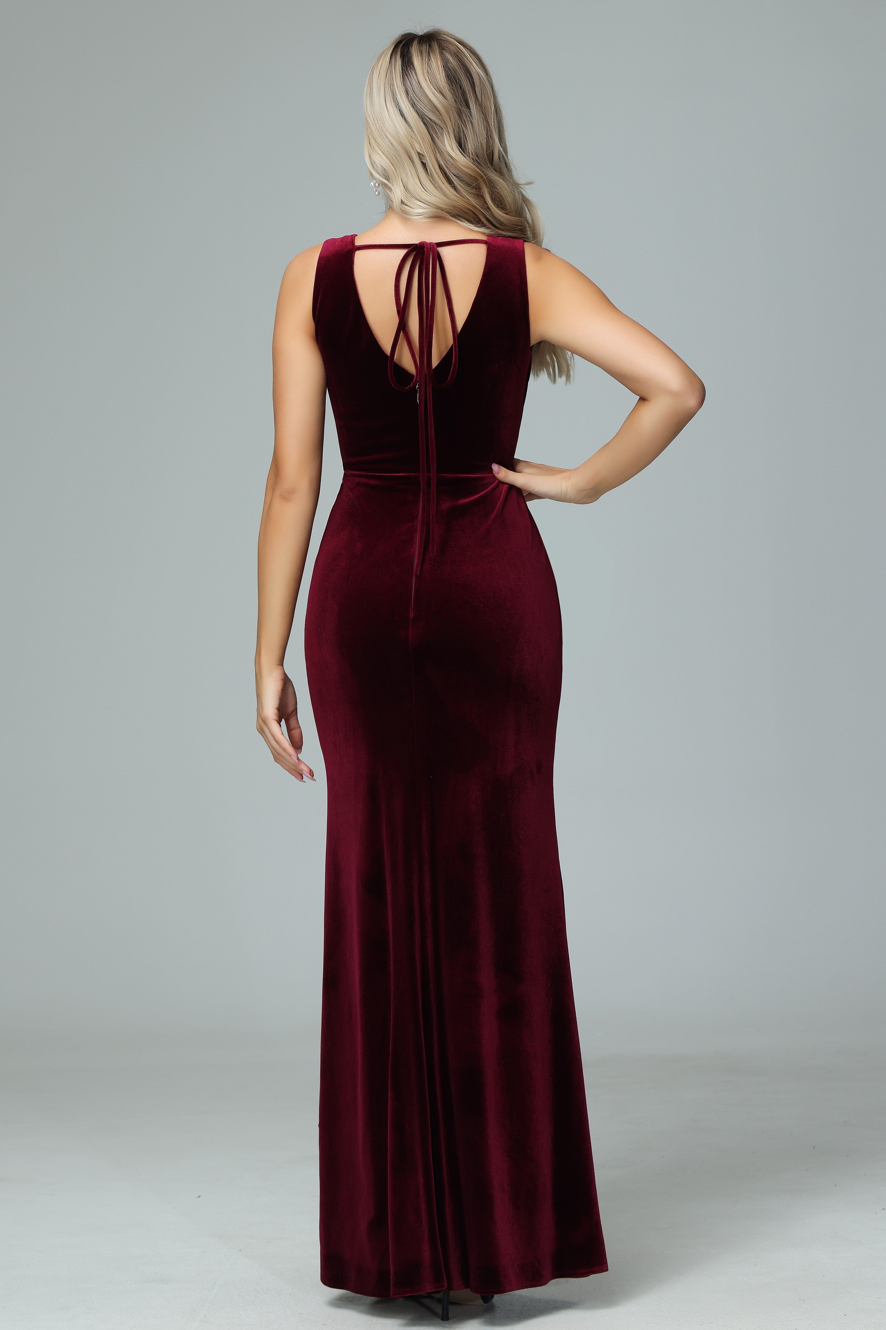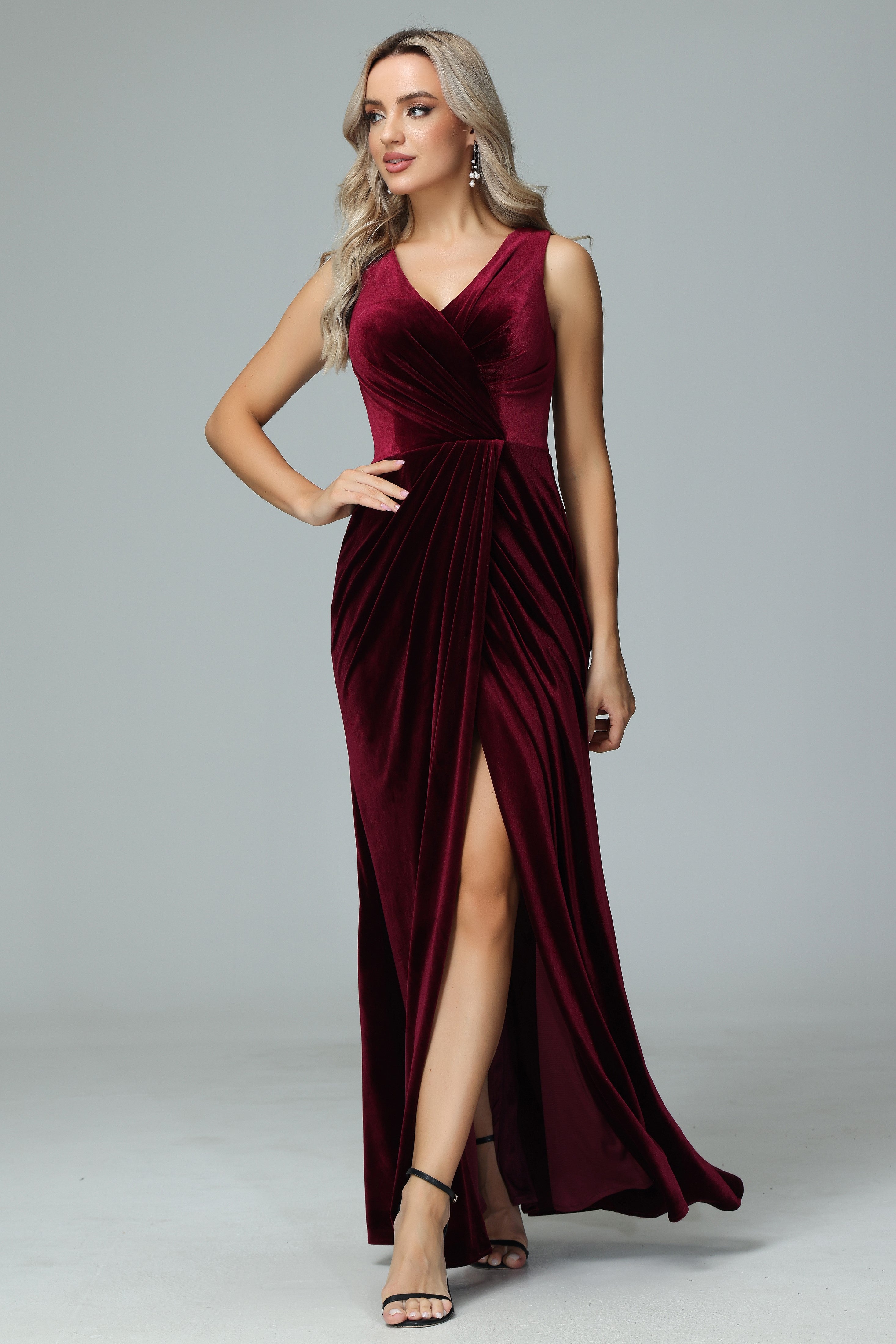 Elegant Sheath V-neck Velvet Winter Wedding Party Dresses